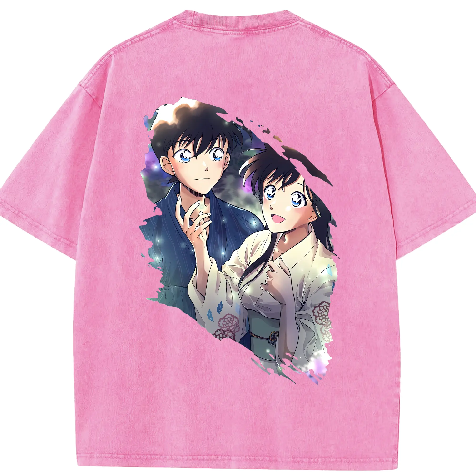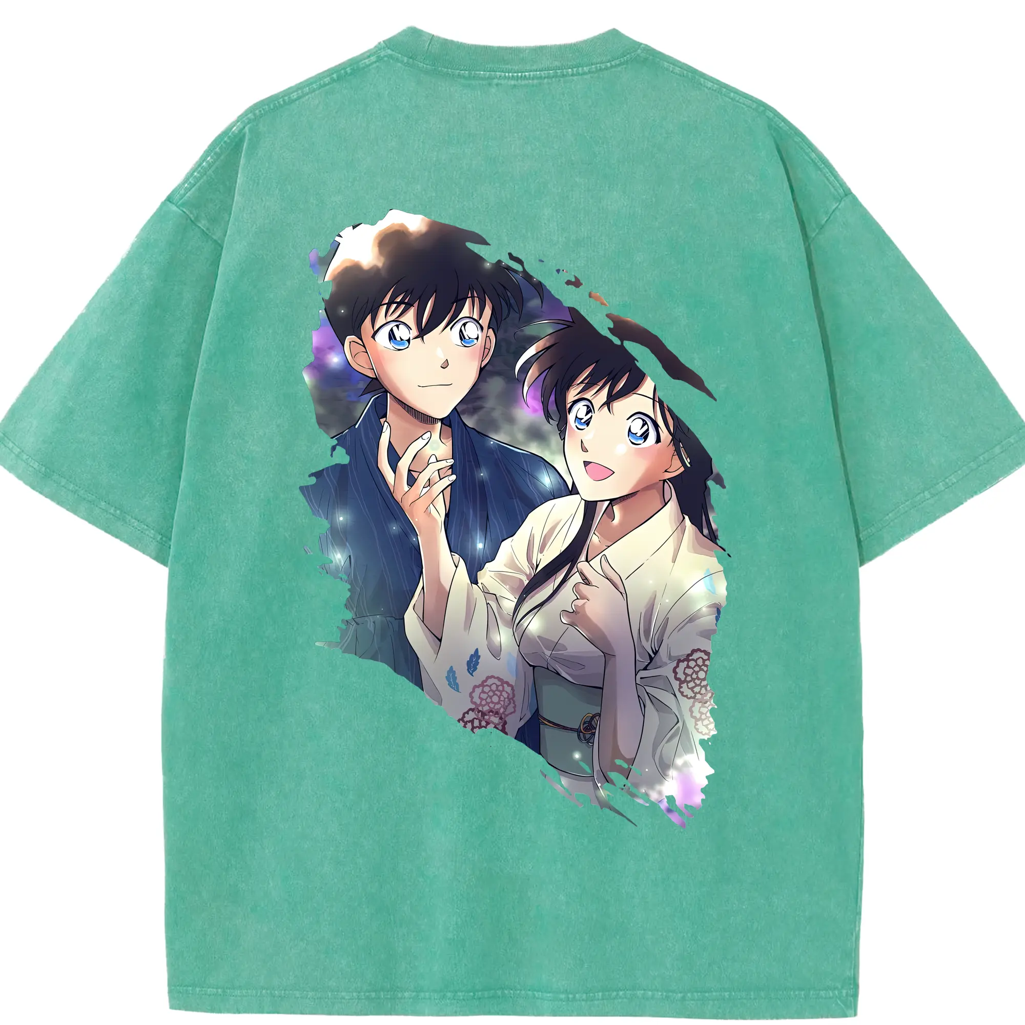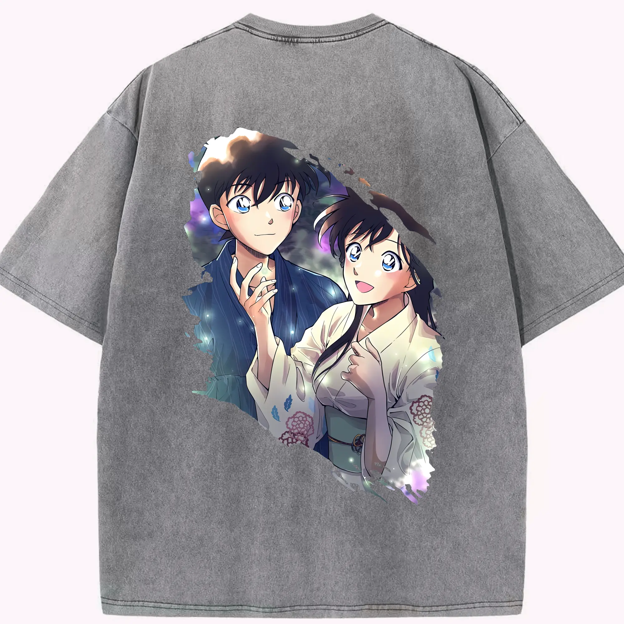 名探偵コナン グッズ 江戸川 コナン - 綿100% ヴィンテージ風 半袖Tシャツ ・ 背面プリント ・ 柔らか肌触り ・ 通気性 快適 ・ スポーツ カジュアル 外出用