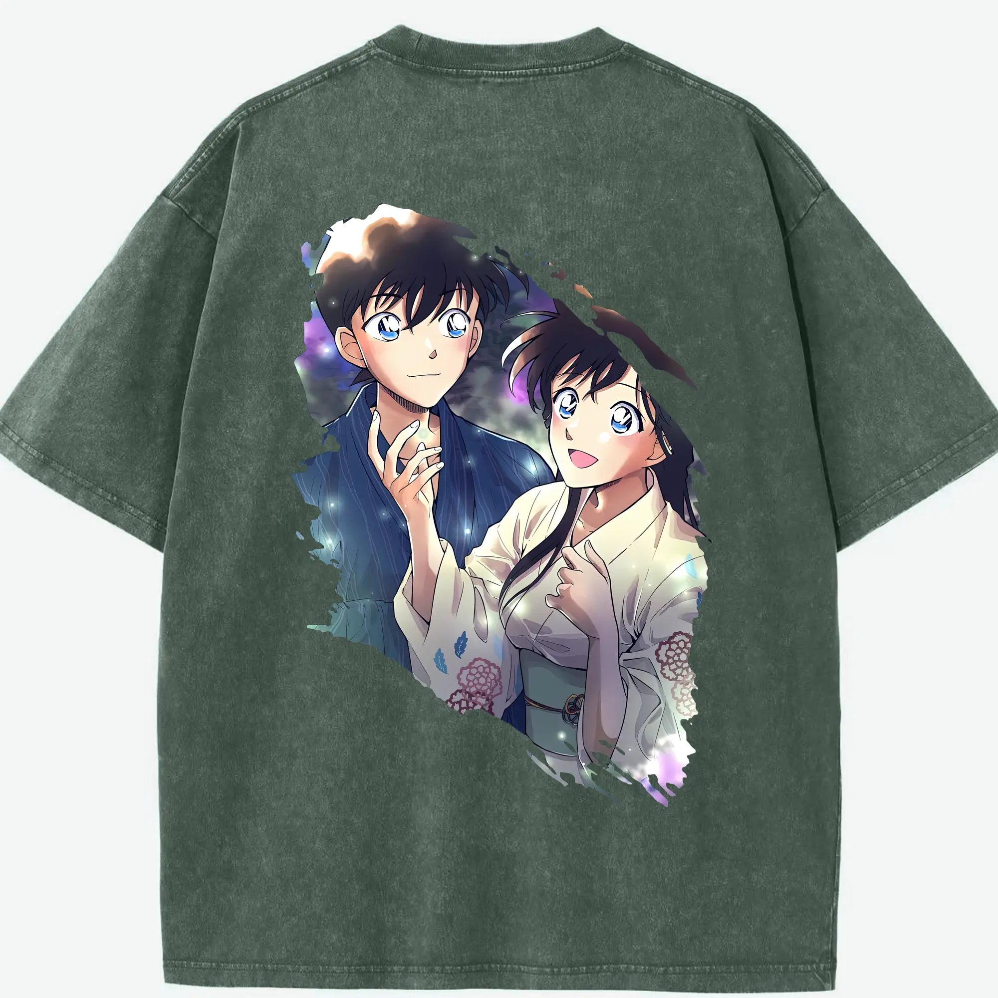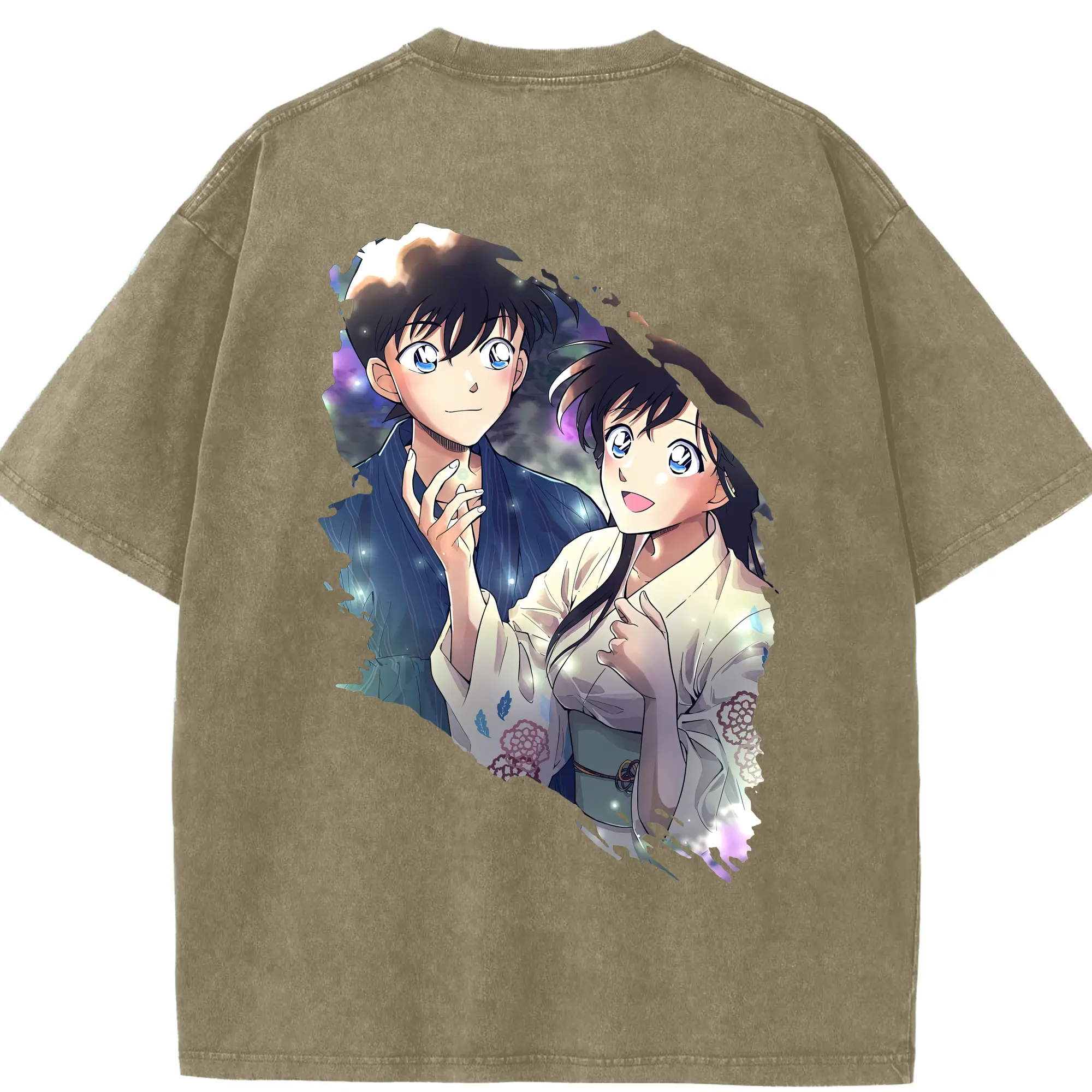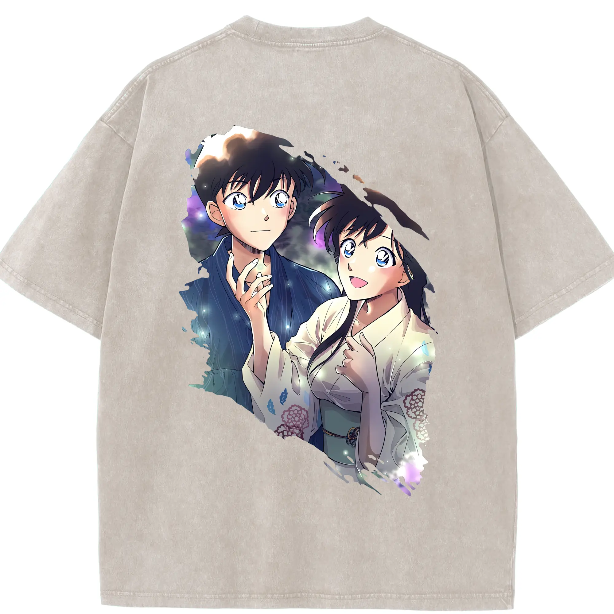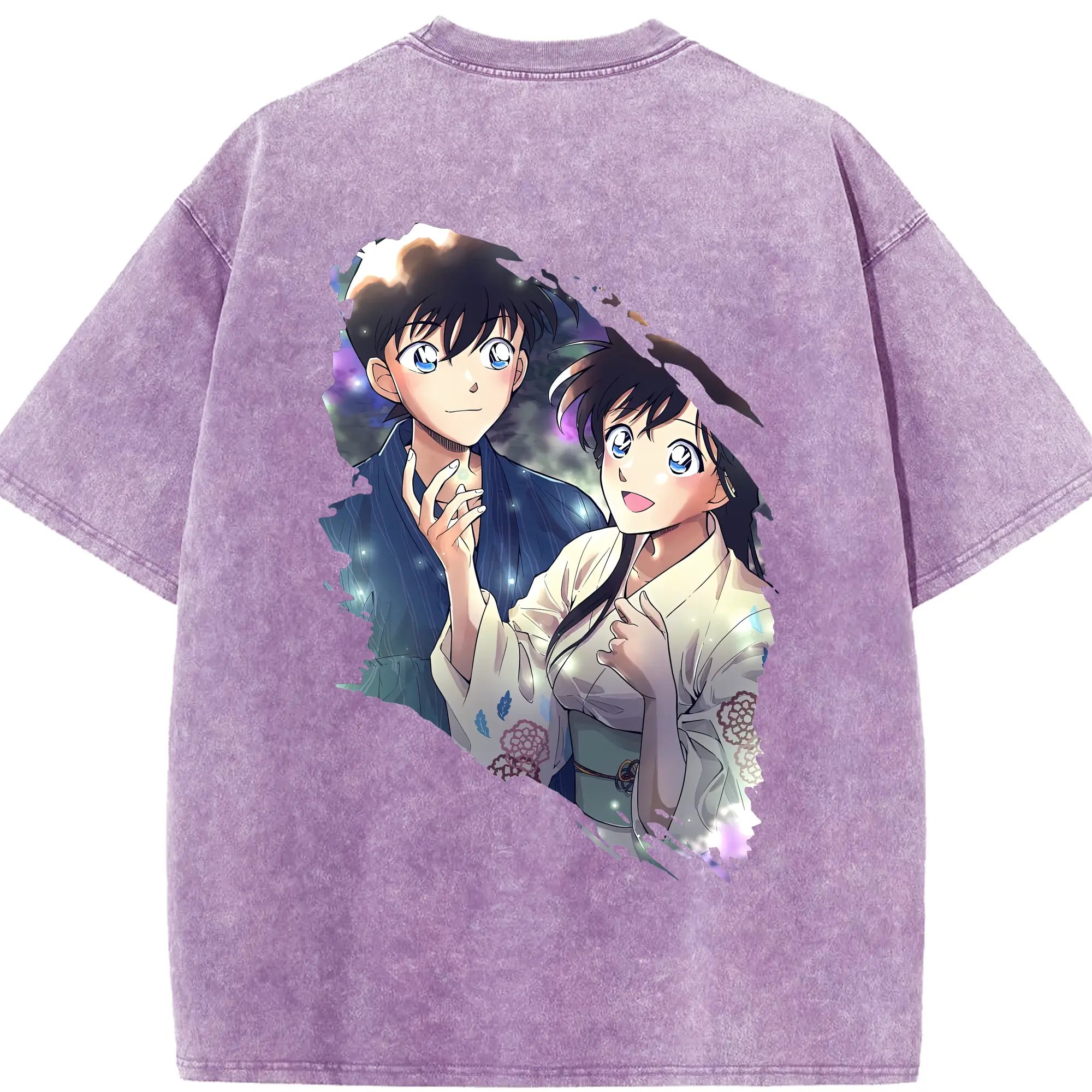 名探偵コナン グッズ 江戸川 コナン - 綿100% ヴィンテージ風 半袖Tシャツ ・ 背面プリント ・ 柔らか肌触り ・ 通気性 快適 ・ スポーツ カジュアル 外出用