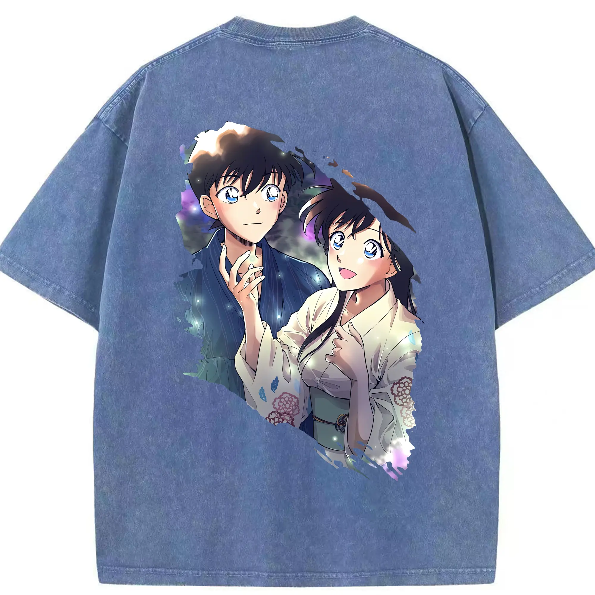 名探偵コナン グッズ 江戸川 コナン - 綿100% ヴィンテージ風 半袖Tシャツ ・ フロントプリント ・ 柔らか肌触り ・ 通気性 快適 ・ スポーツ カジュアル 外出用