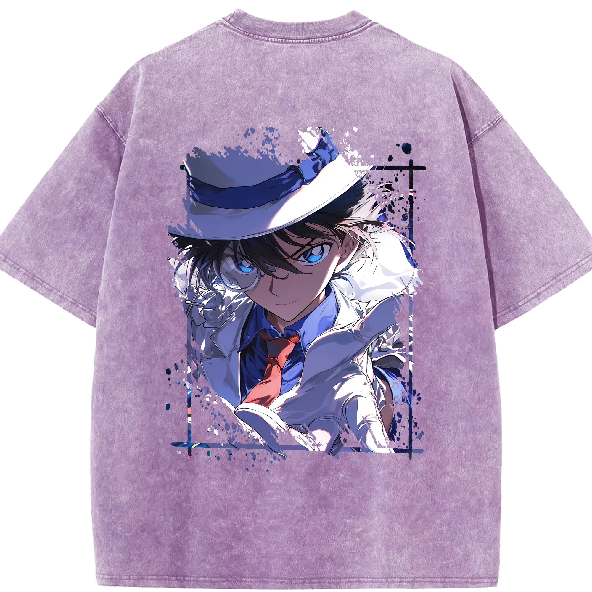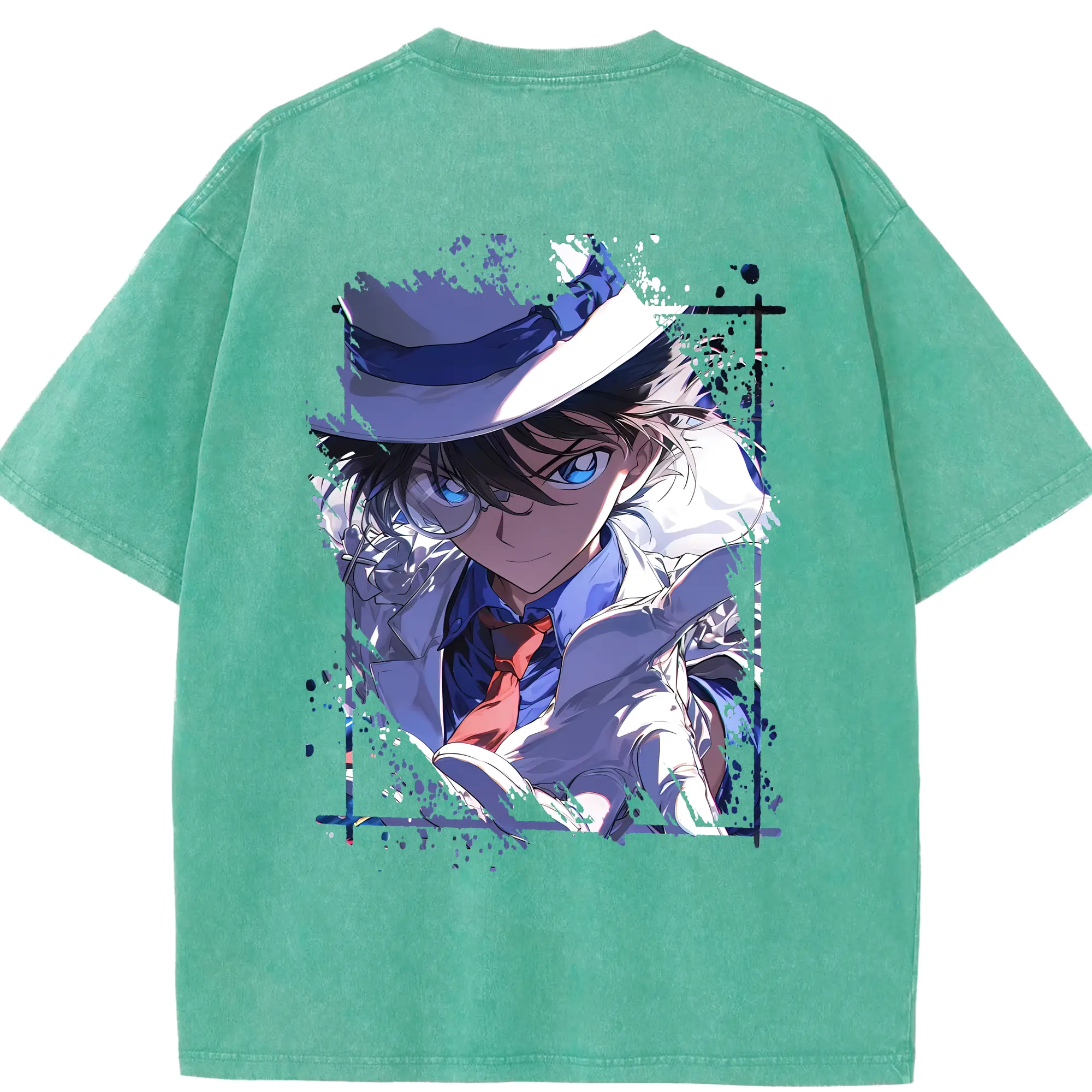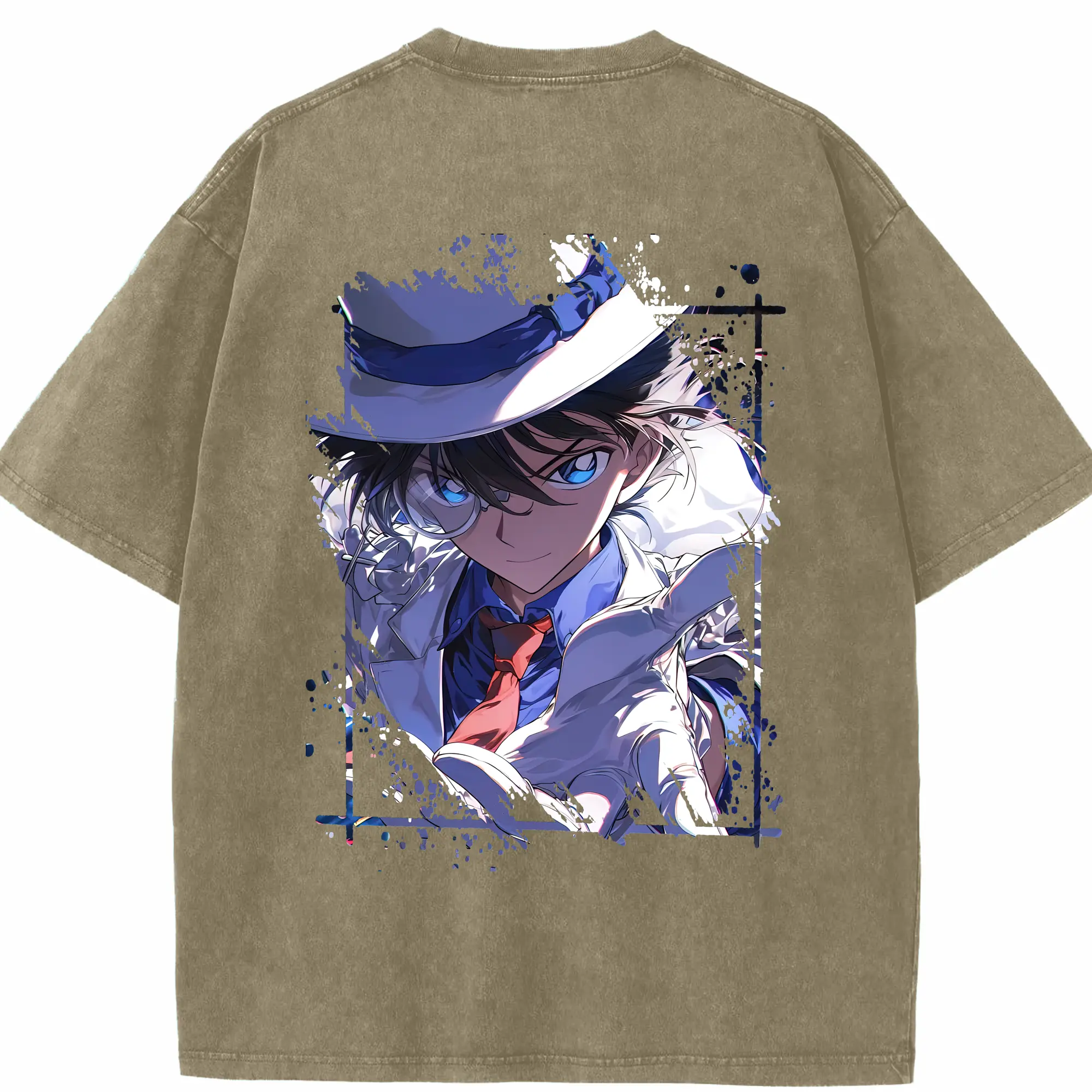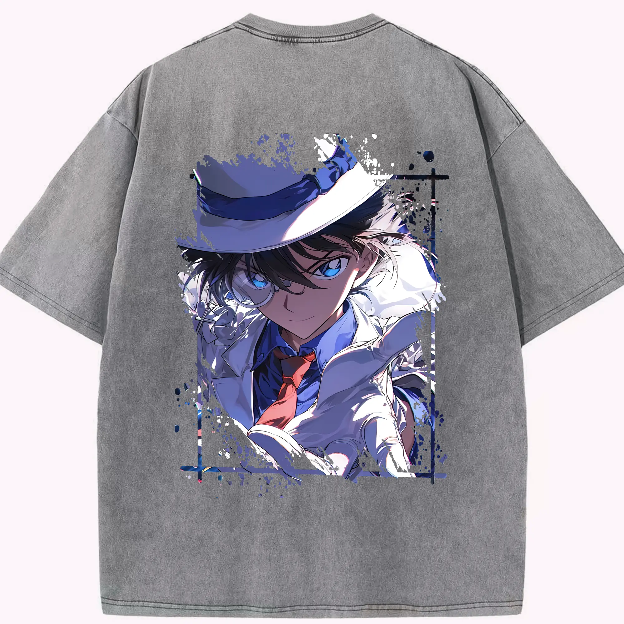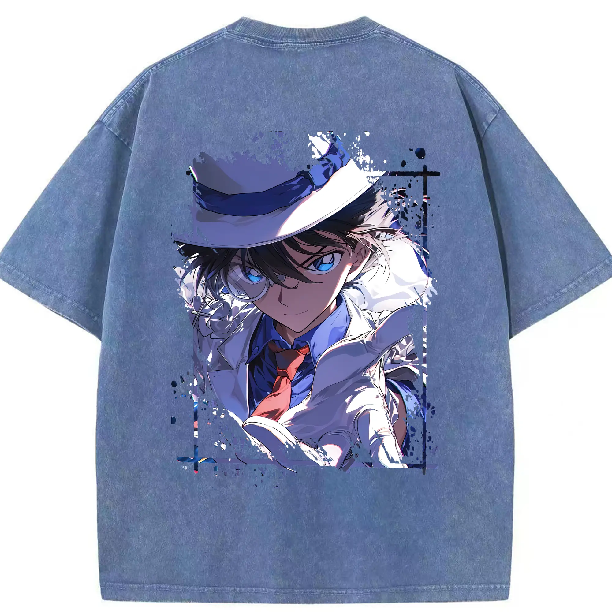 名探偵コナン グッズ 江戸川 コナン - 綿100% ヴィンテージ風 半袖Tシャツ ・ フロントプリント ・ 柔らか肌触り ・ 通気性 快適 ・ スポーツ カジュアル 外出用