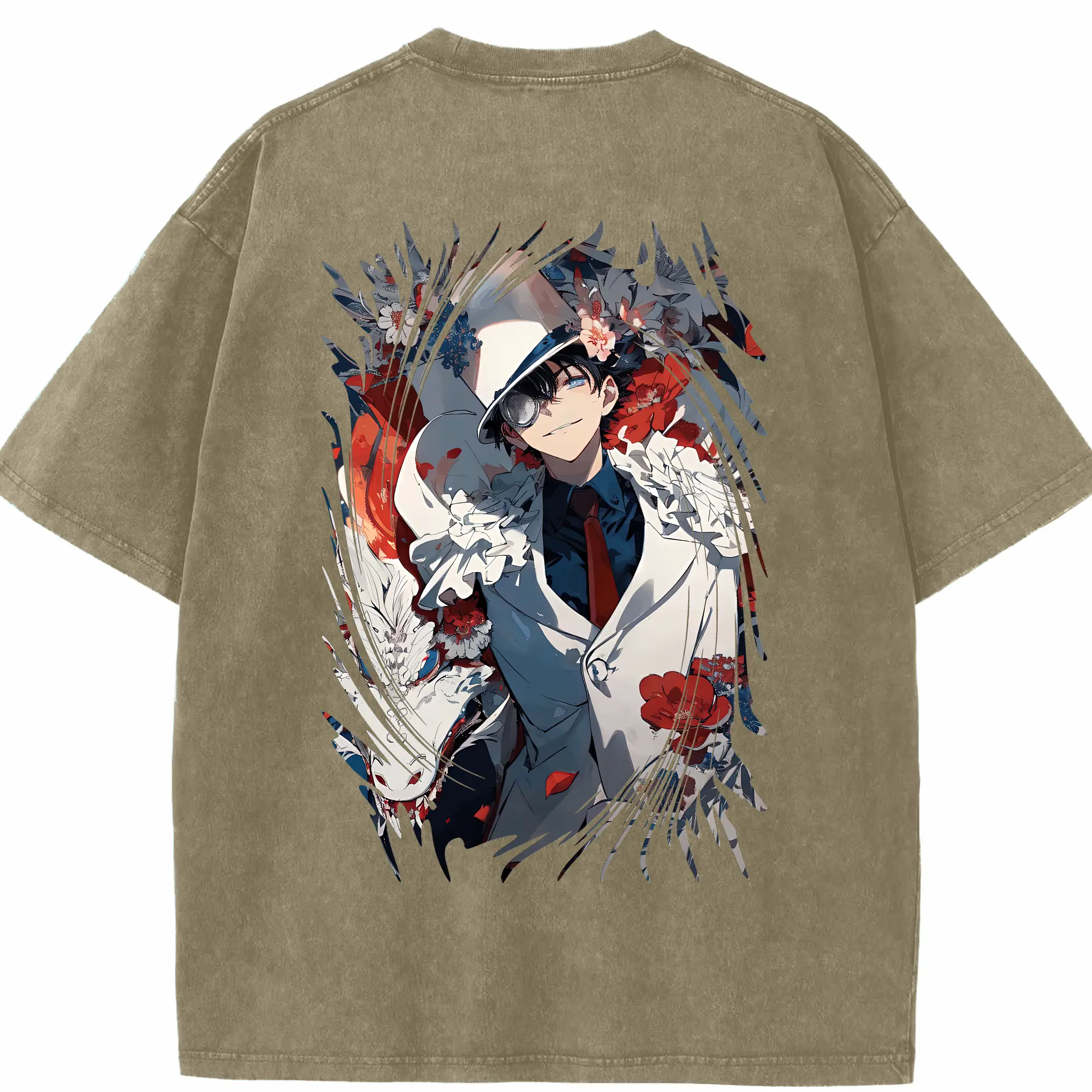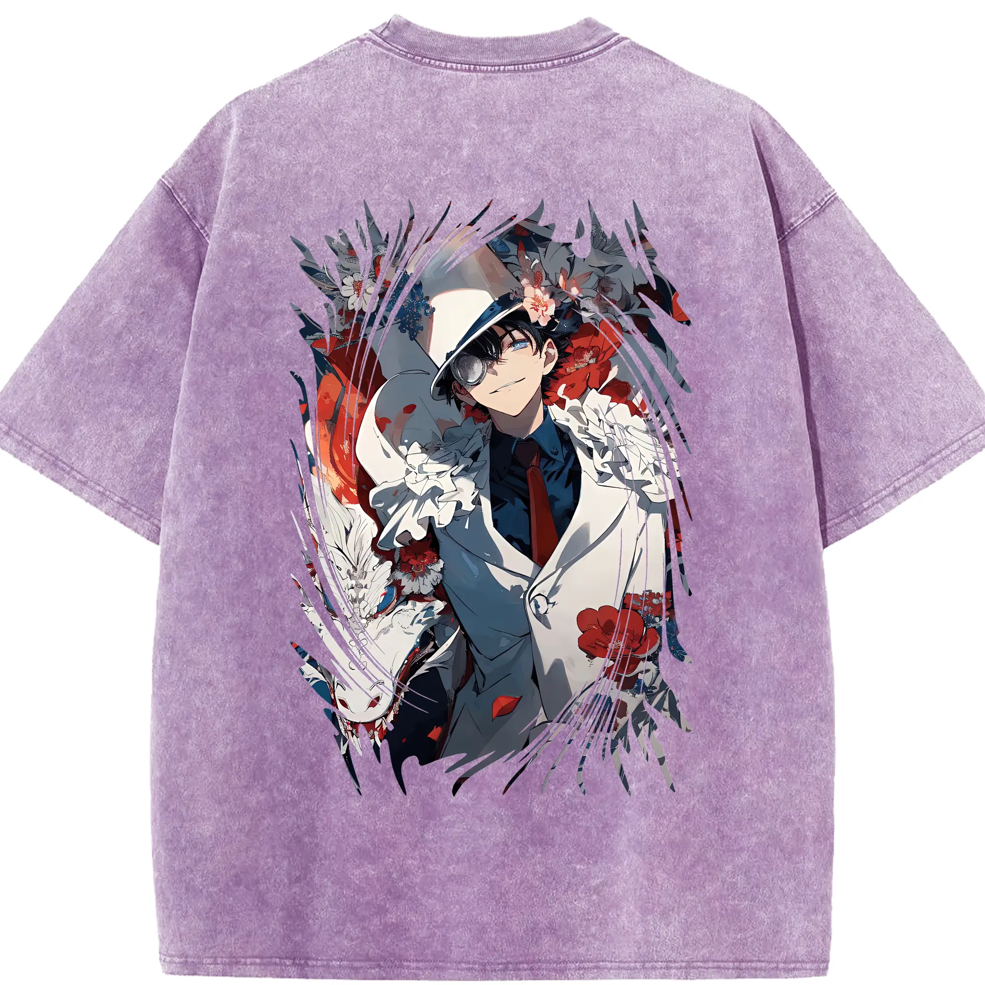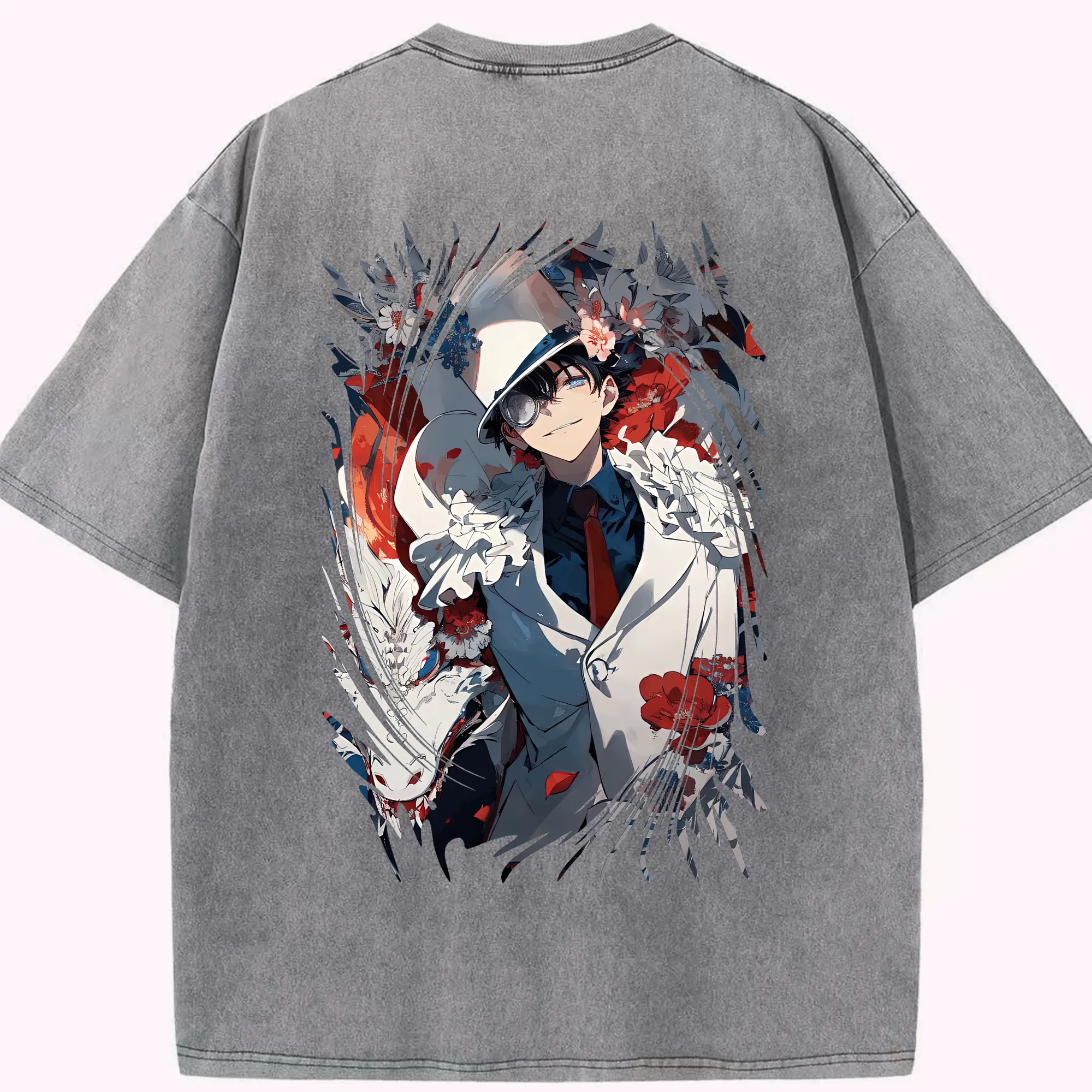 あんさん ぶる グッズ UNDEAD 羽風薫 - 綿100% ヴィンテージ風 半袖Tシャツ ・ 背面プリント ・ 柔らか肌触り ・ 通気性 快適 ・ スポーツ カジュアル 外出用