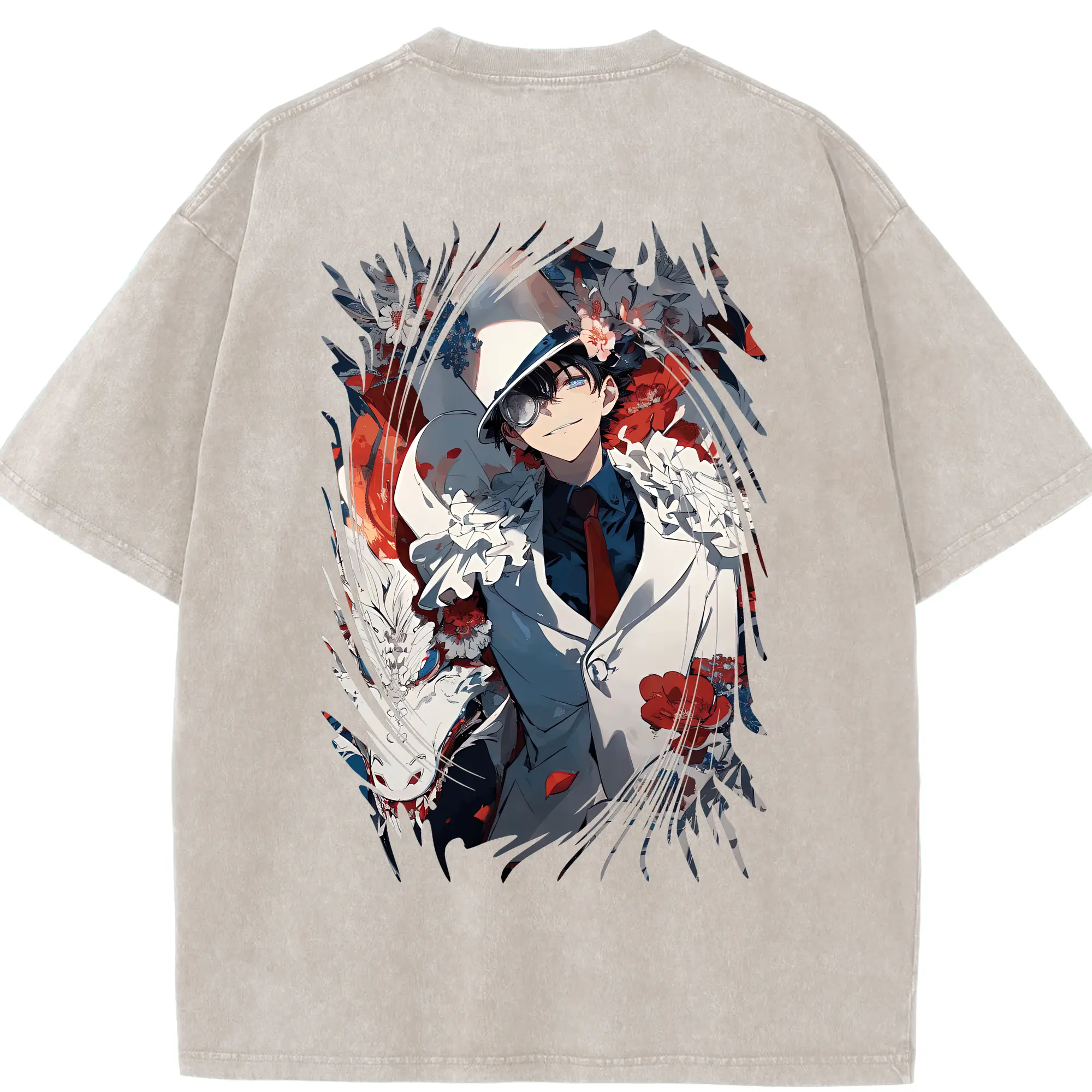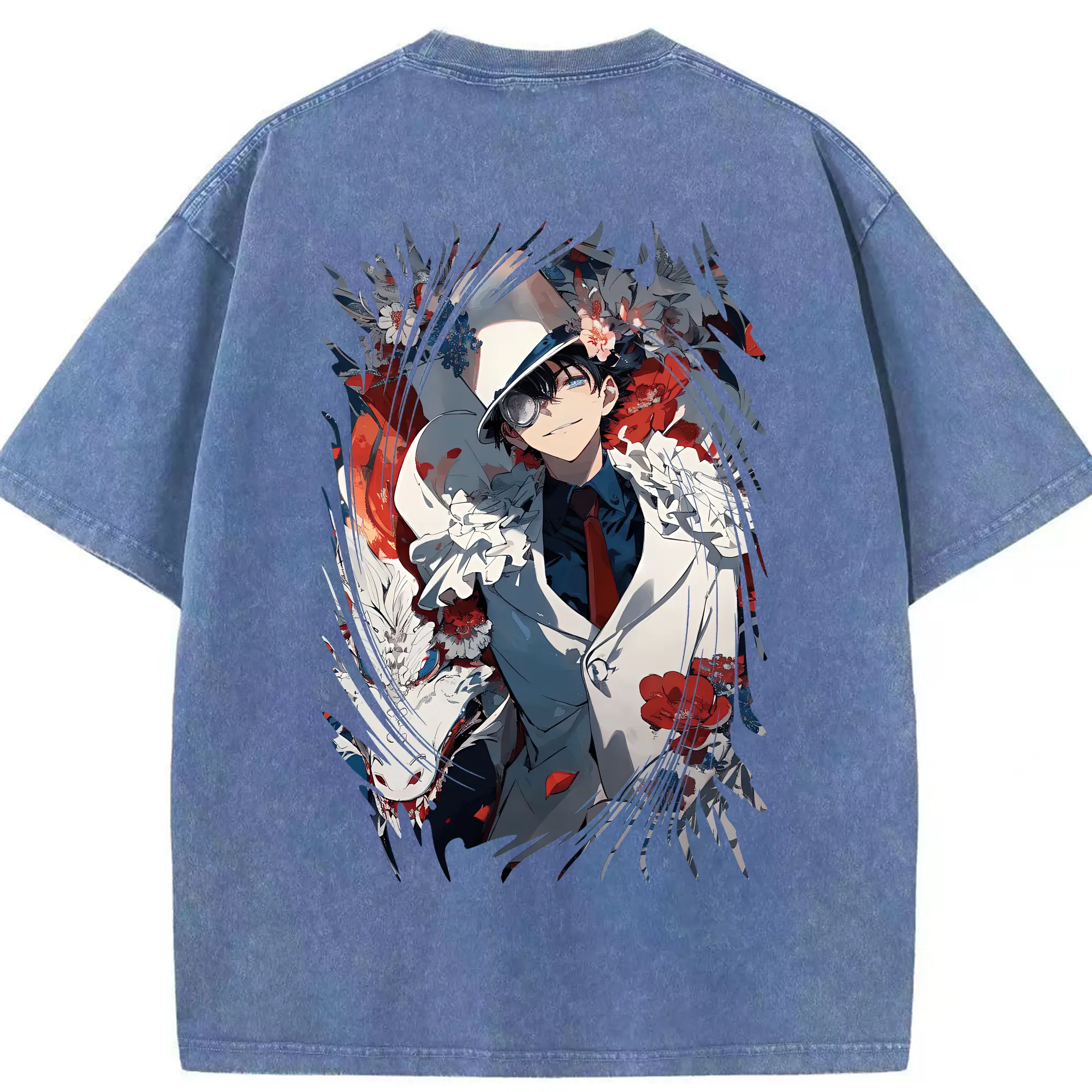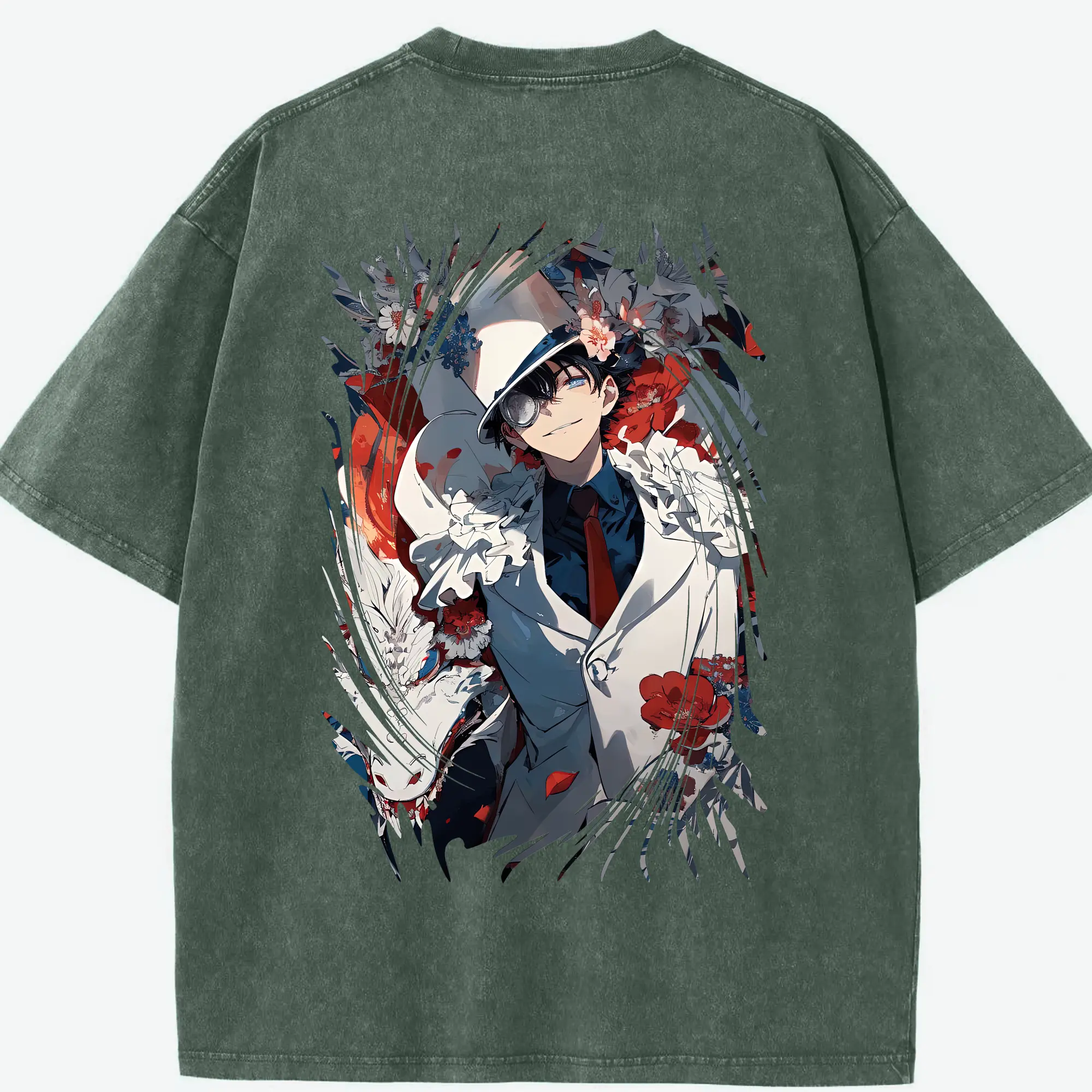 あんさん ぶる グッズ UNDEAD 羽風薫 - 綿100% ヴィンテージ風 半袖Tシャツ ・ 背面プリント ・ 柔らか肌触り ・ 通気性 快適 ・ スポーツ カジュアル 外出用