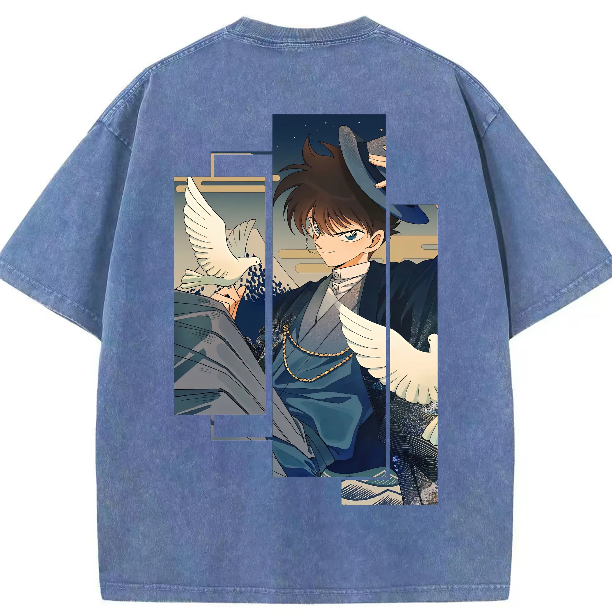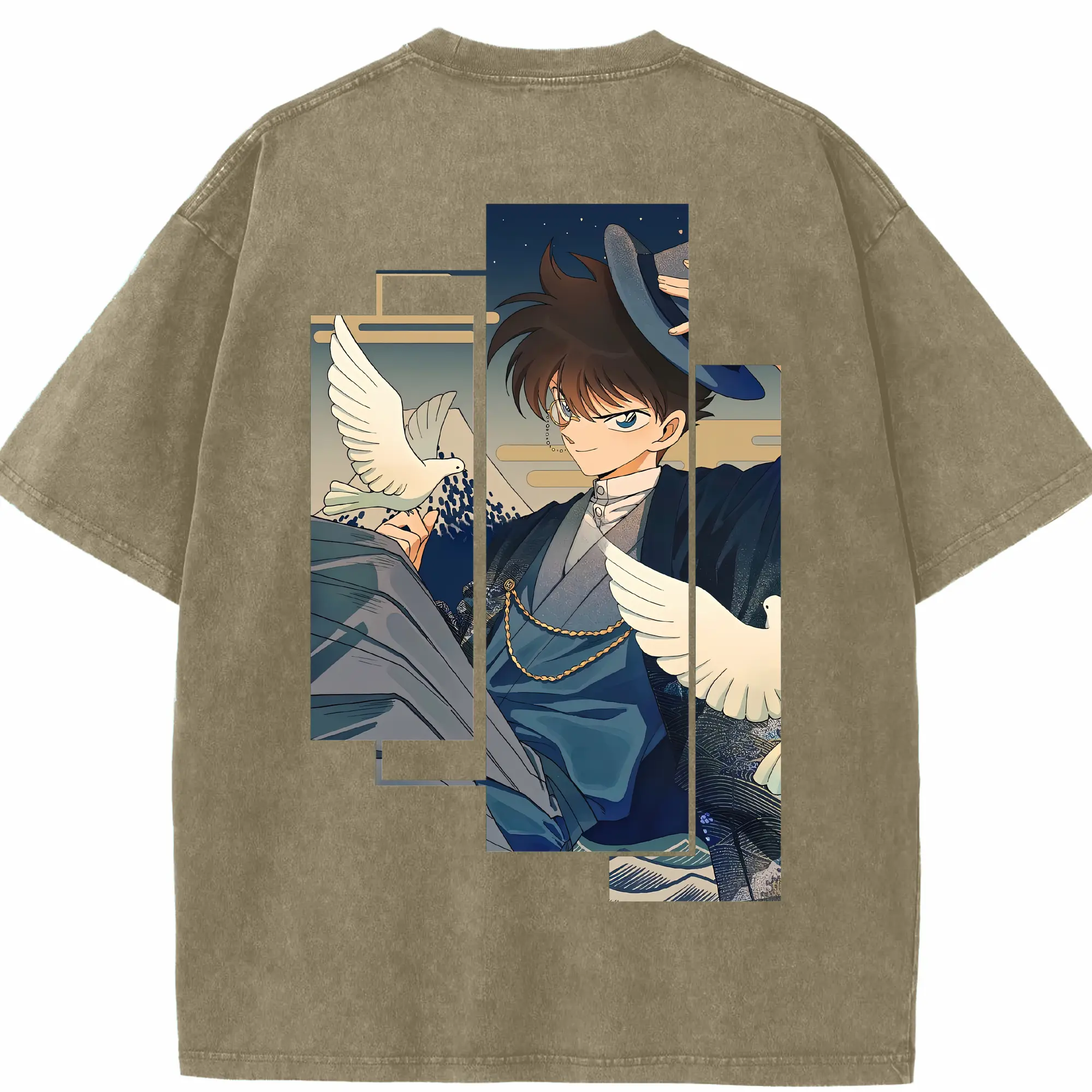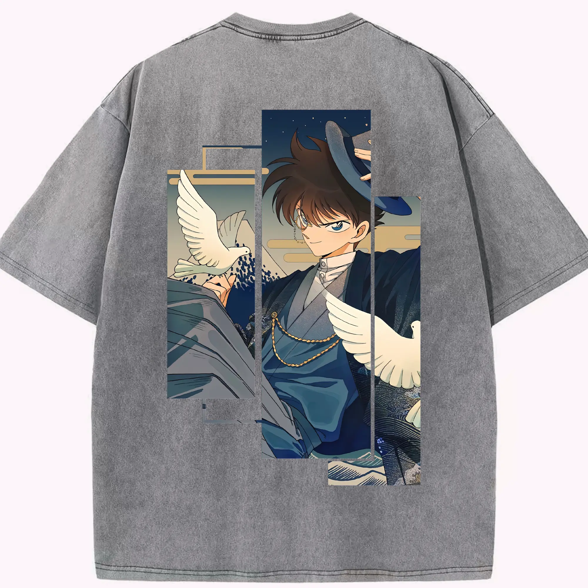 名探偵コナン グッズ 江戸川 コナン - 綿100% ヴィンテージ風 半袖Tシャツ ・ フロントプリント ・ 柔らか肌触り ・ 通気性 快適 ・ スポーツ カジュアル 外出用