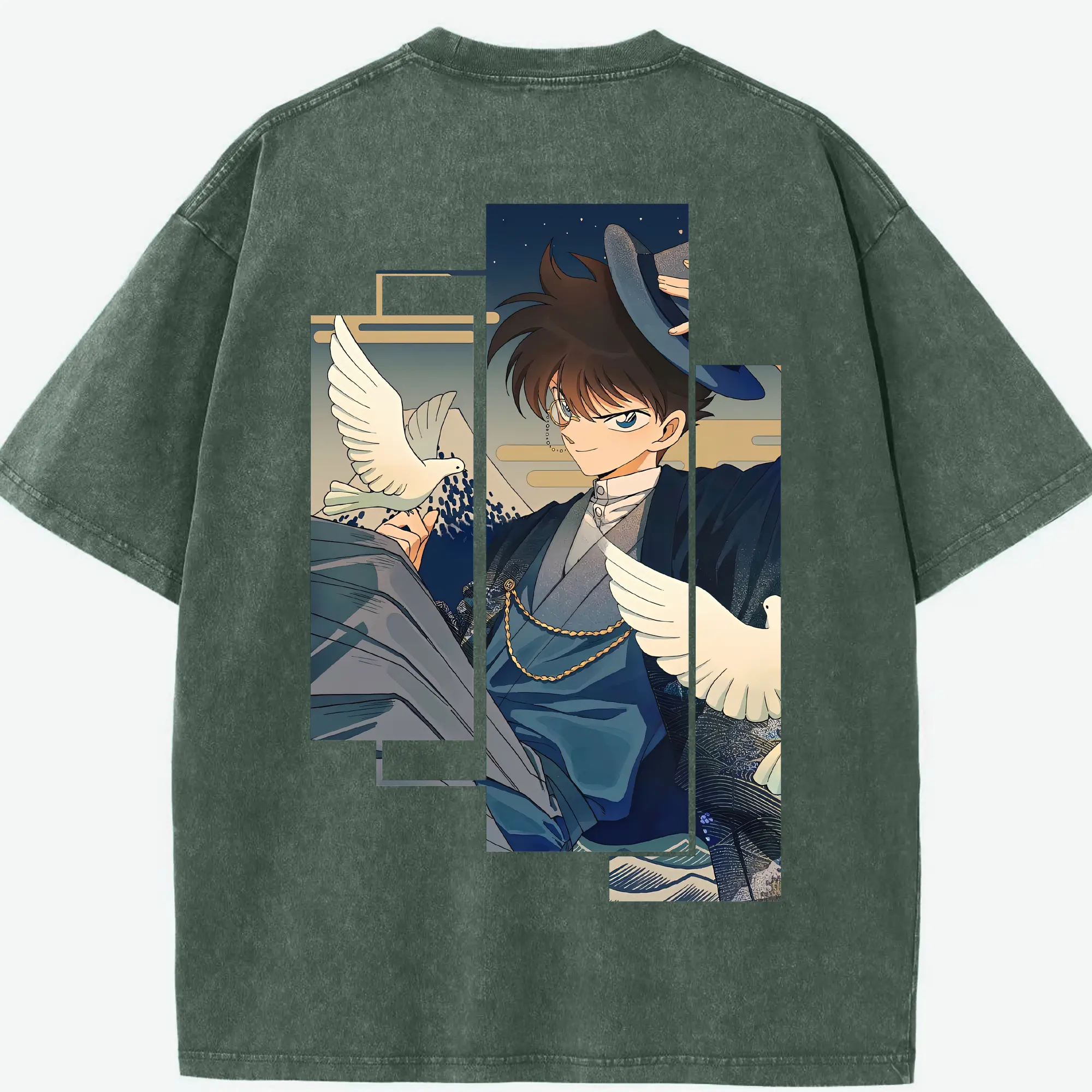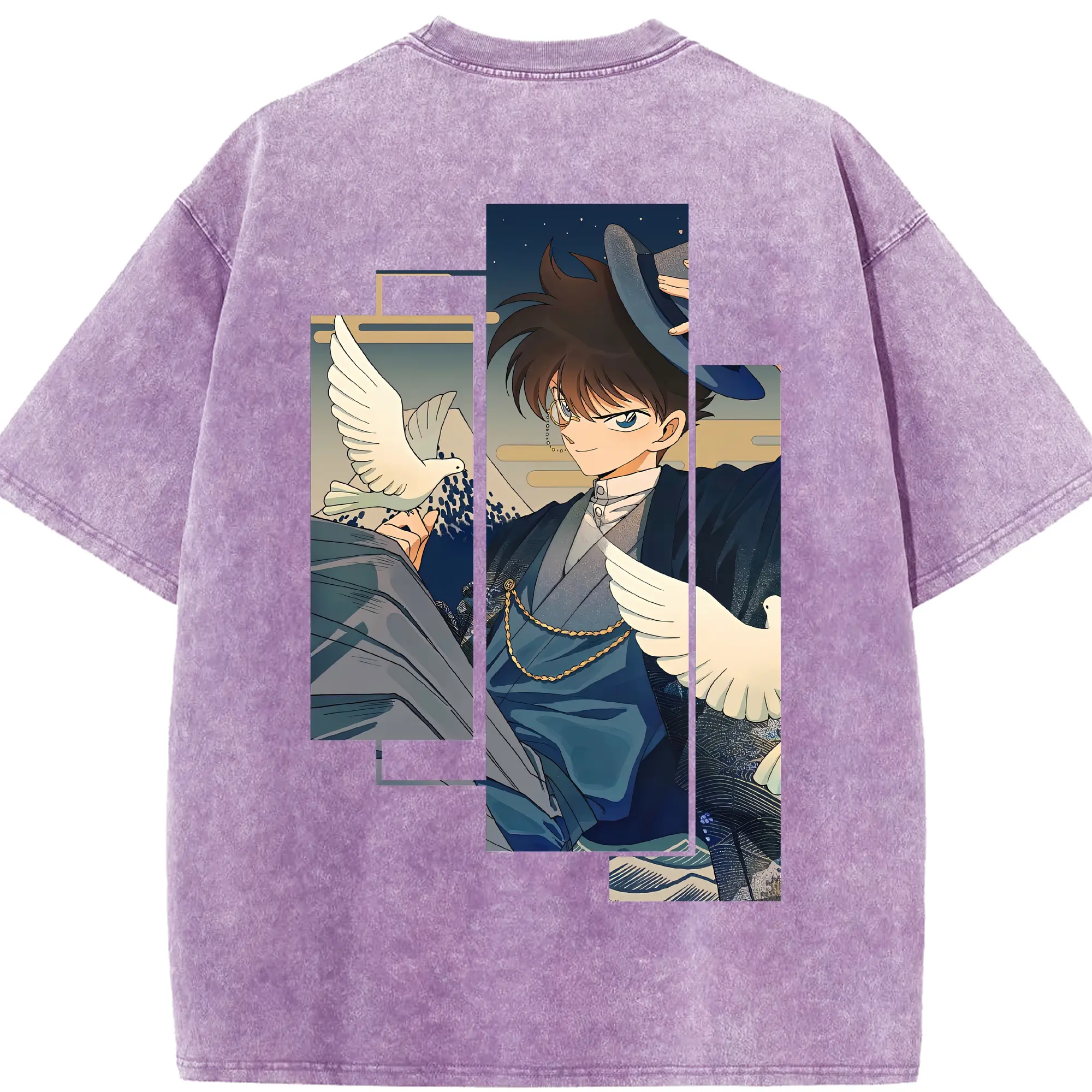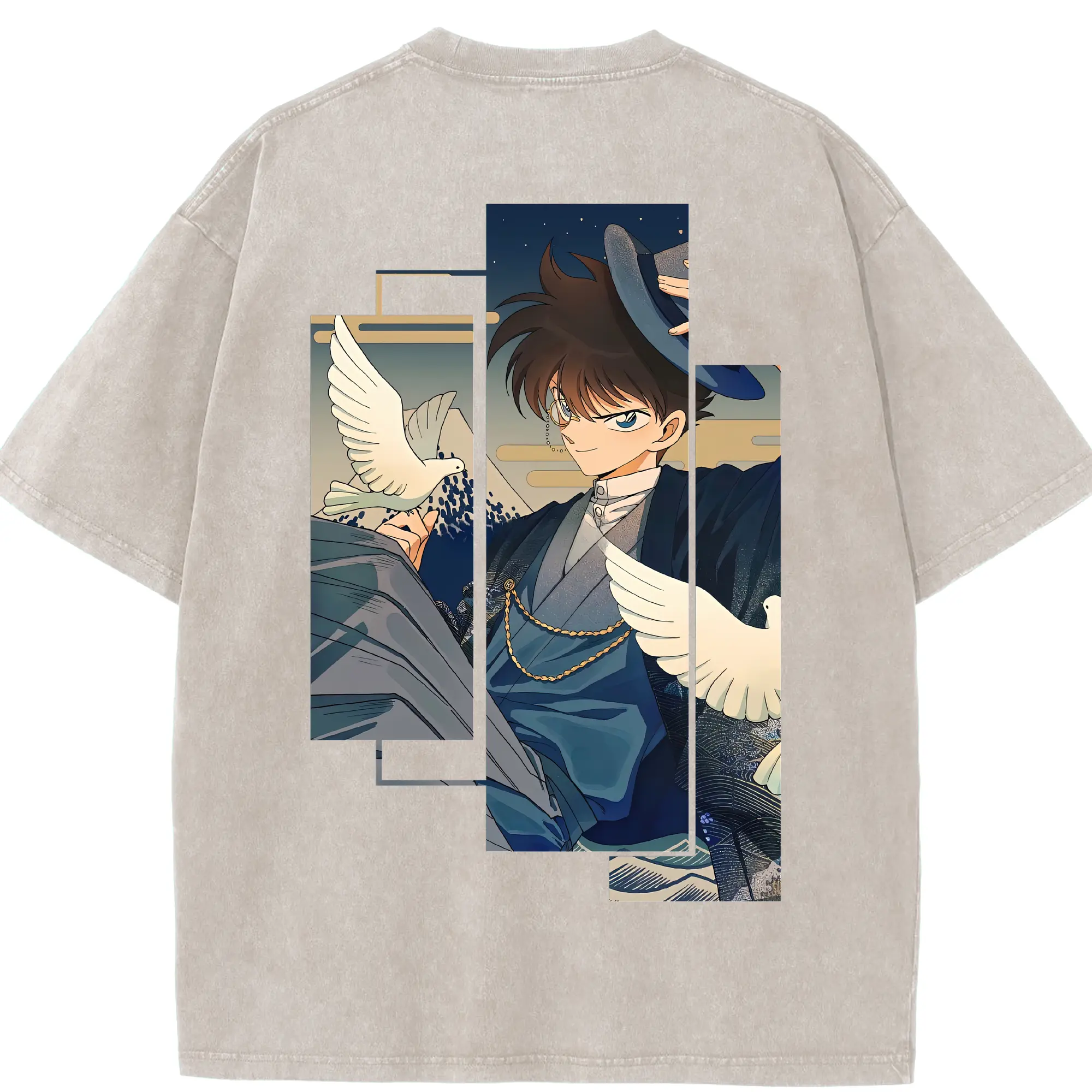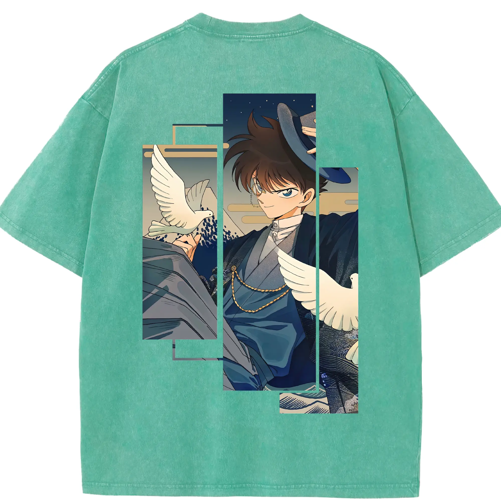 名探偵コナン グッズ 江戸川 コナン - 綿100% ヴィンテージ風 半袖Tシャツ ・ フロントプリント ・ 柔らか肌触り ・ 通気性 快適 ・ スポーツ カジュアル 外出用