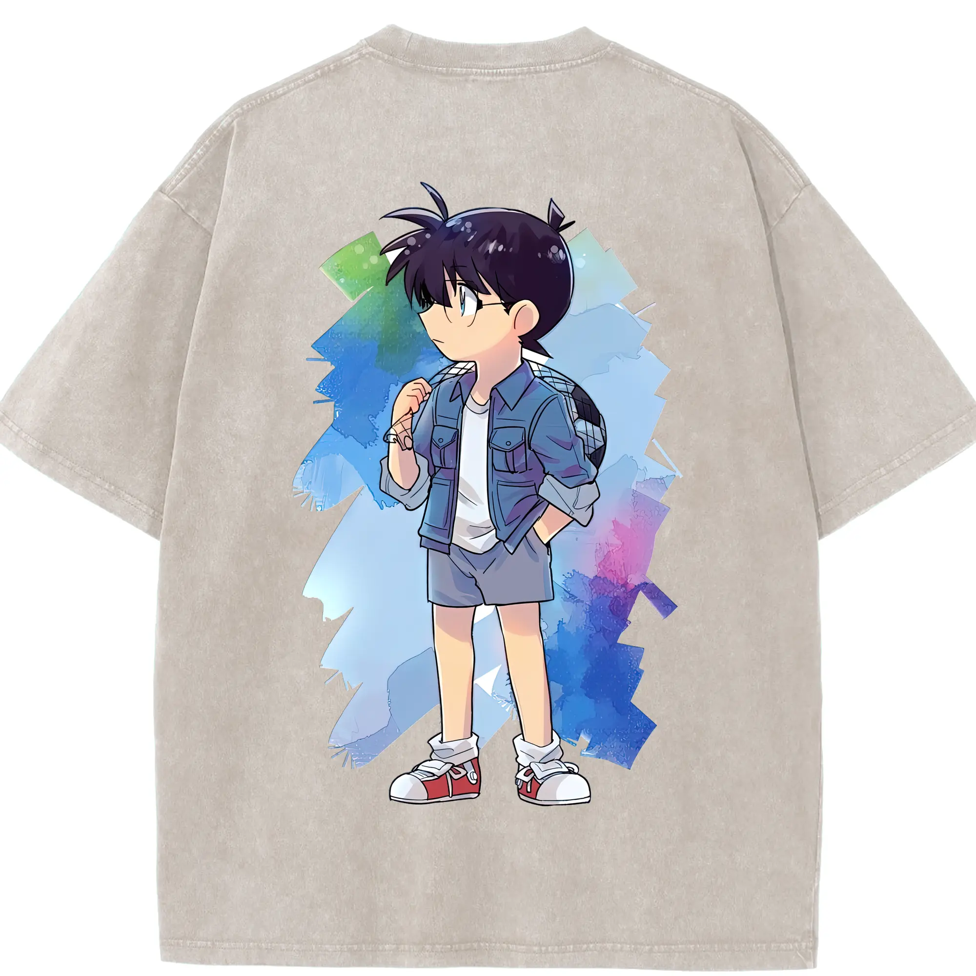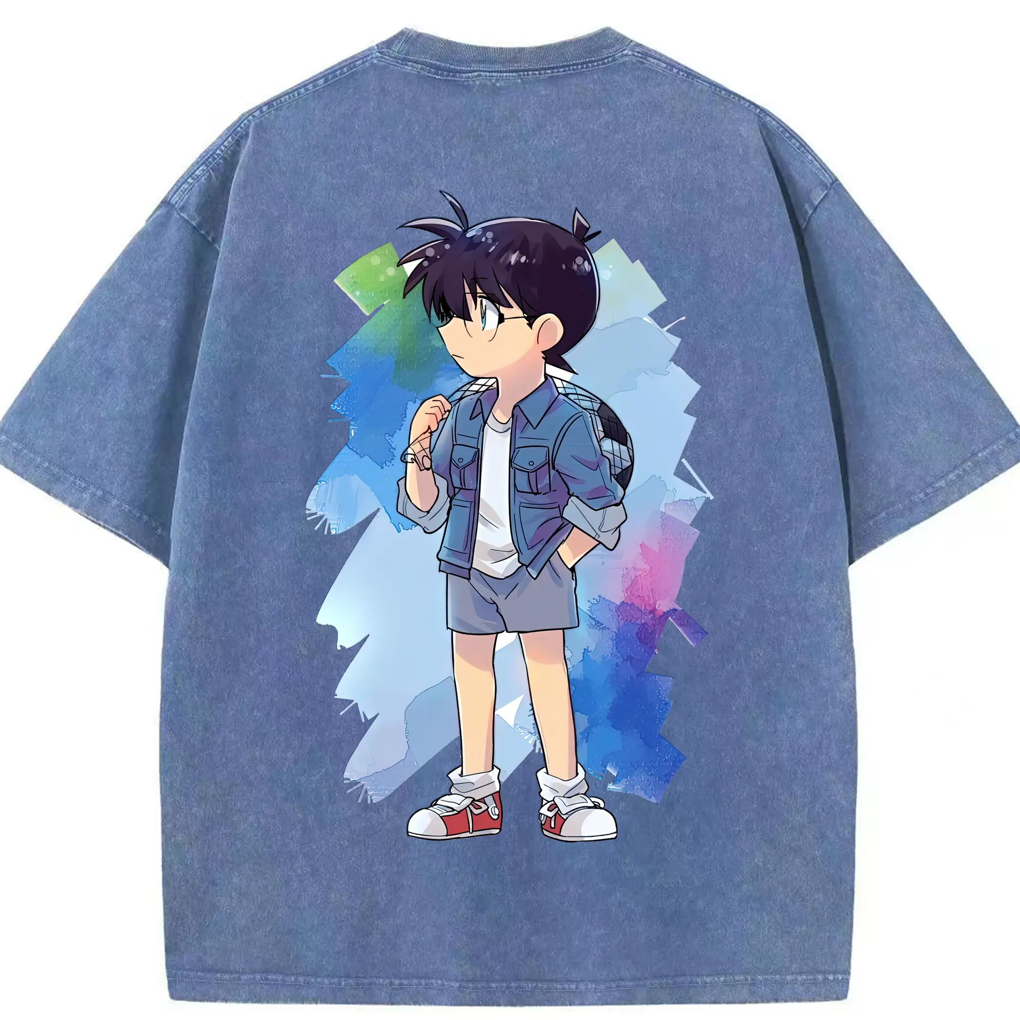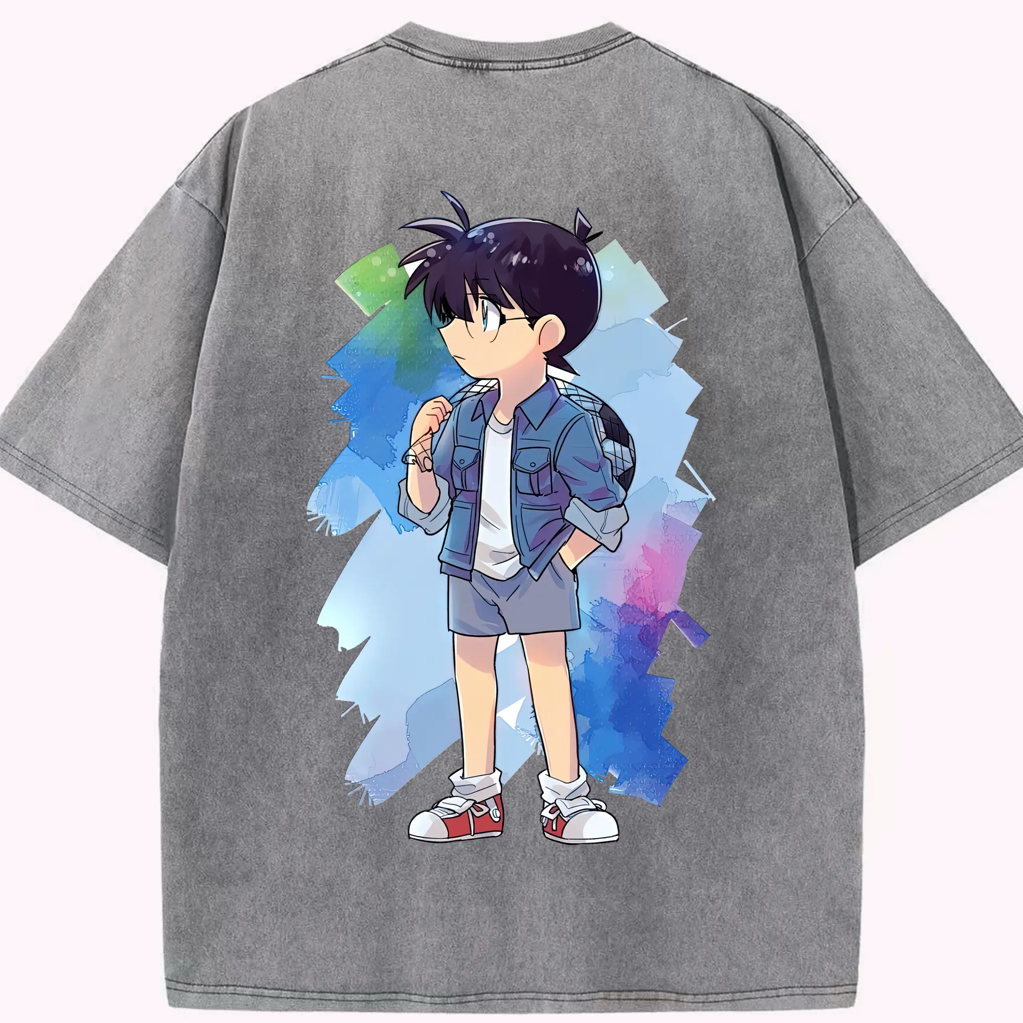 名探偵コナン グッズ 江戸川 コナン - 綿100% ヴィンテージ風 半袖Tシャツ ・ フロントプリント ・ 柔らか肌触り ・ 通気性 快適 ・ スポーツ カジュアル 外出用