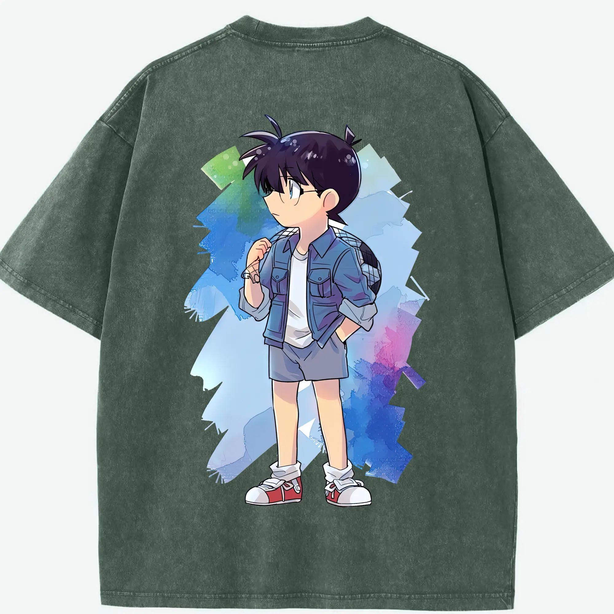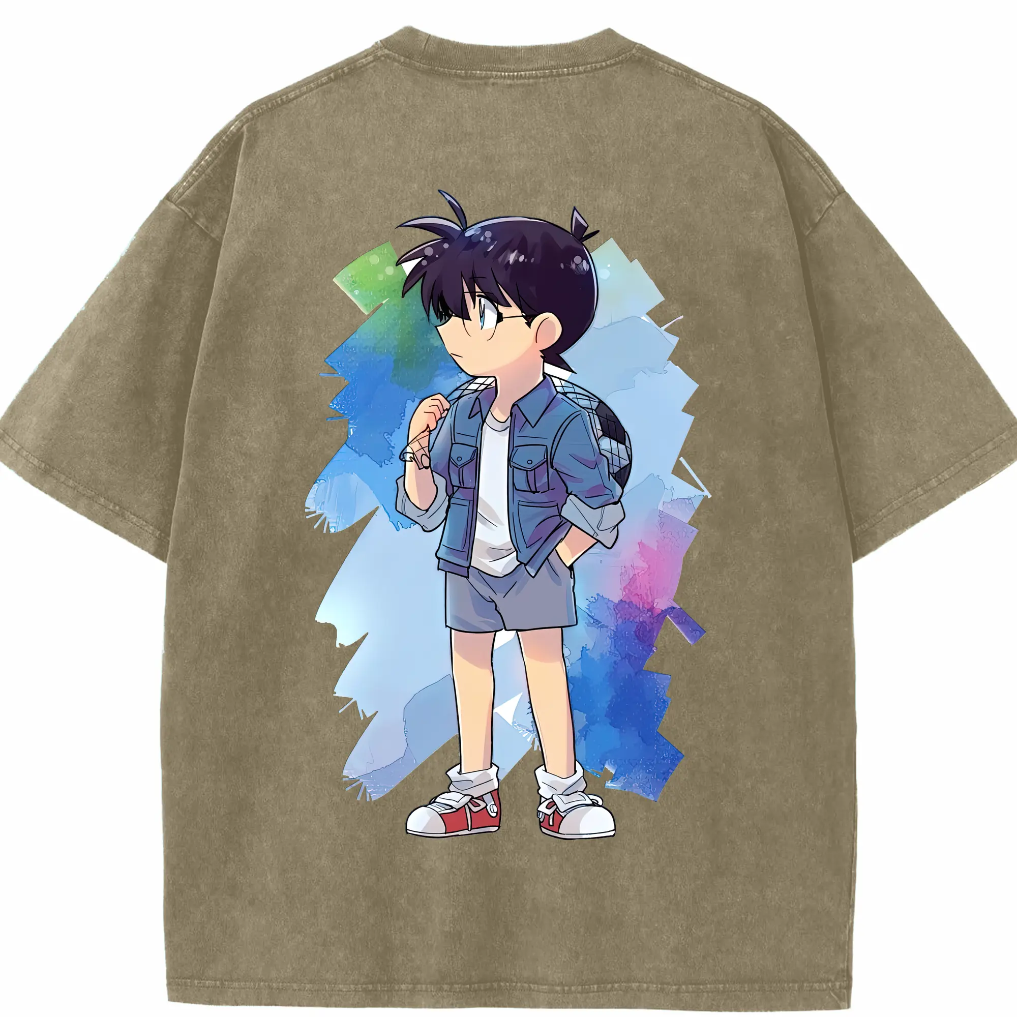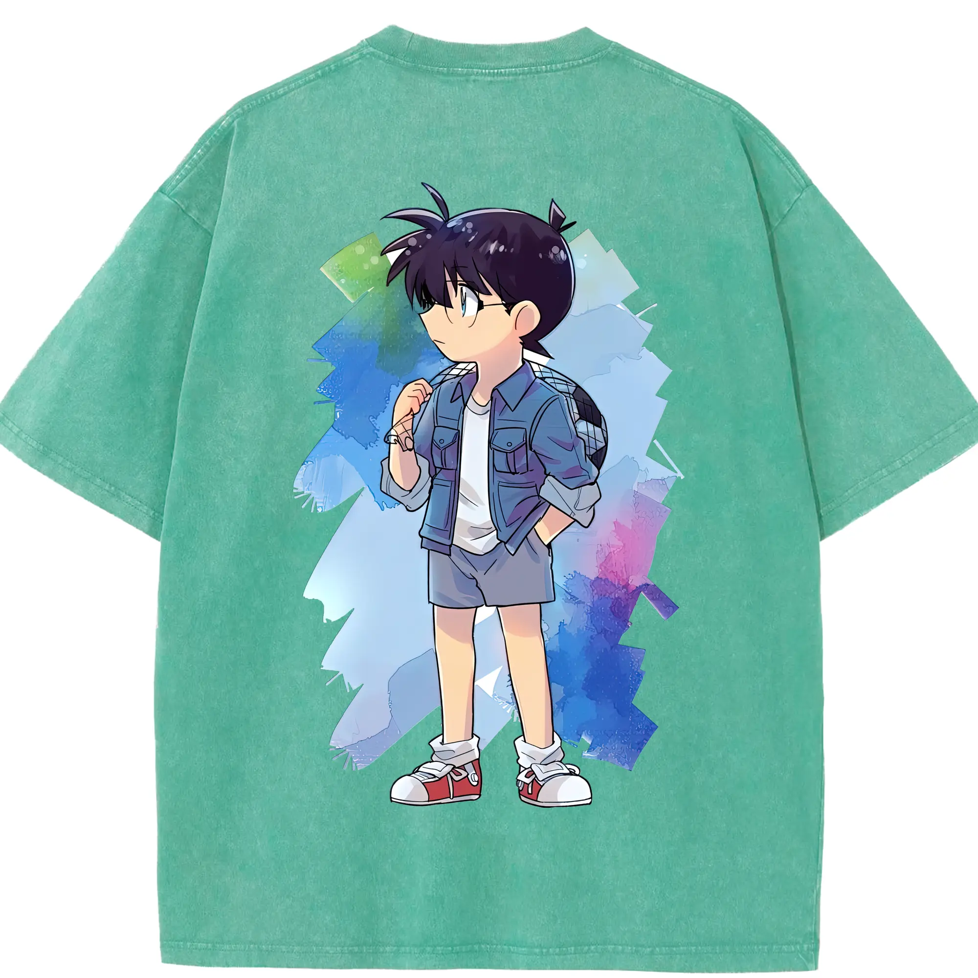 名探偵コナン グッズ 江戸川 コナン - 綿100% ヴィンテージ風 半袖Tシャツ ・ フロントプリント ・ 柔らか肌触り ・ 通気性 快適 ・ スポーツ カジュアル 外出用