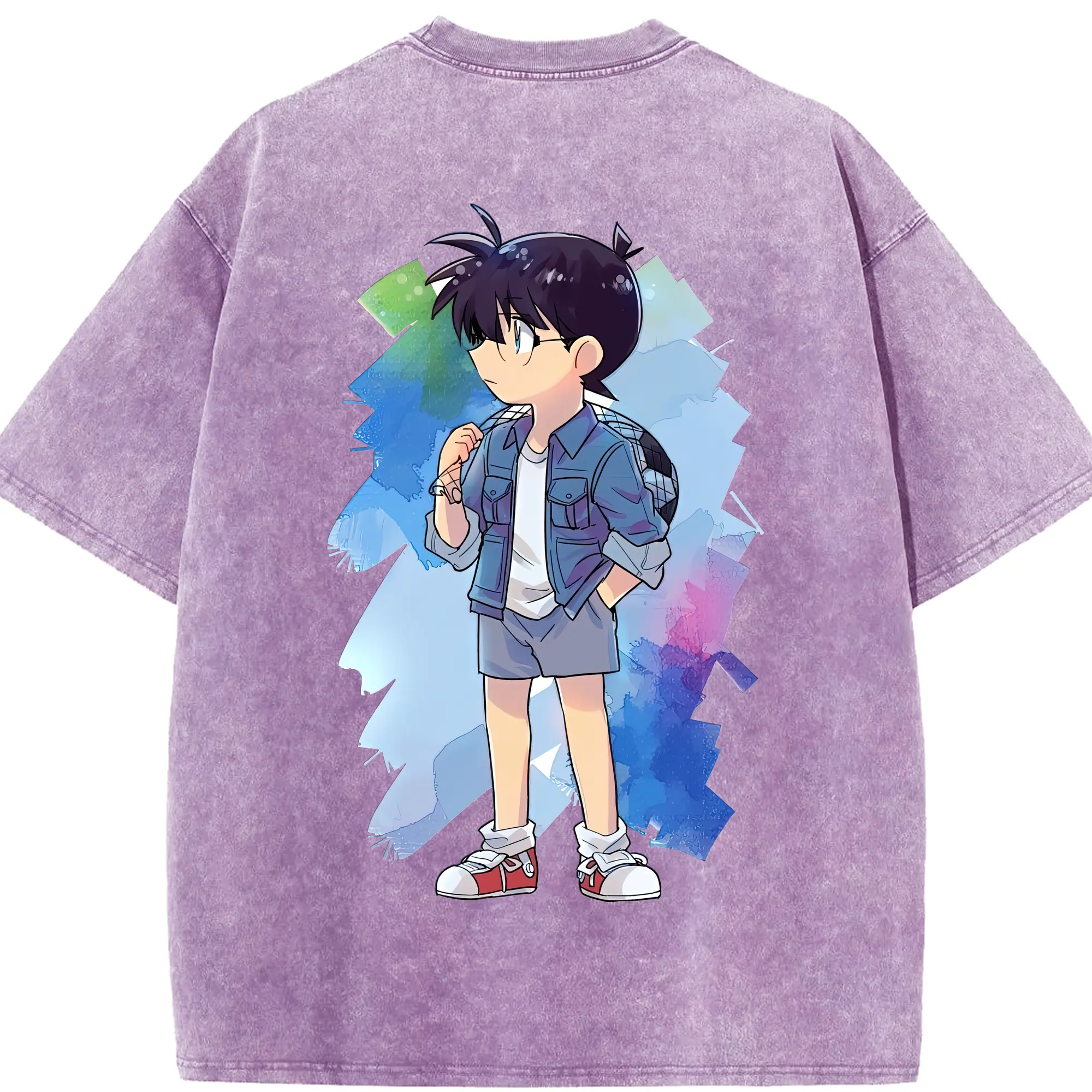 名探偵コナン グッズ 江戸川 コナン - 綿100% 半袖Tシャツ ・ バックプリント ・ 快適 通気性 ・ 日常使い 散歩 スポーツ用