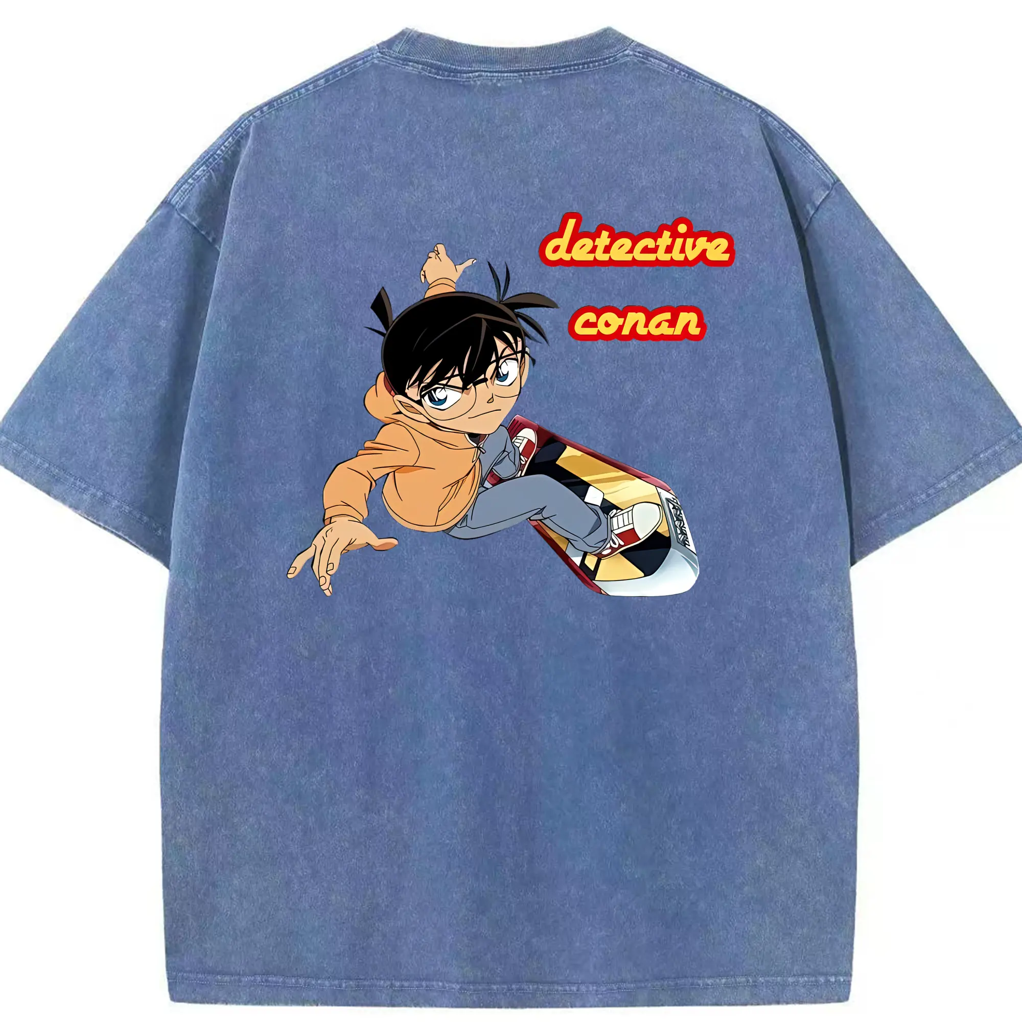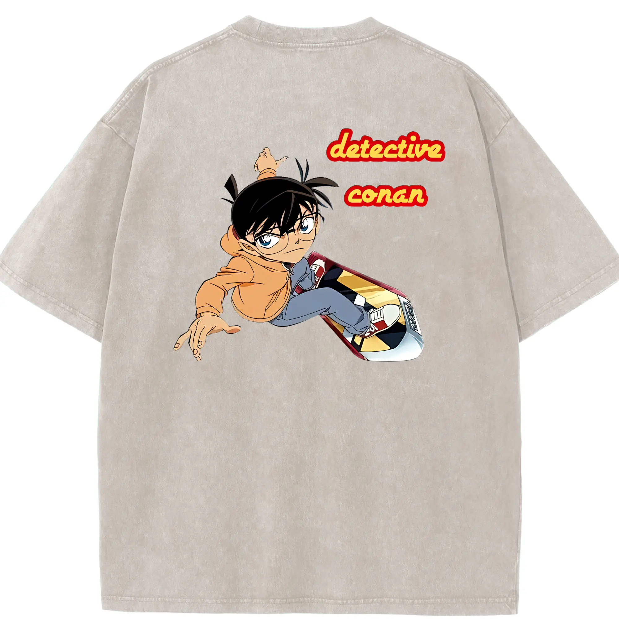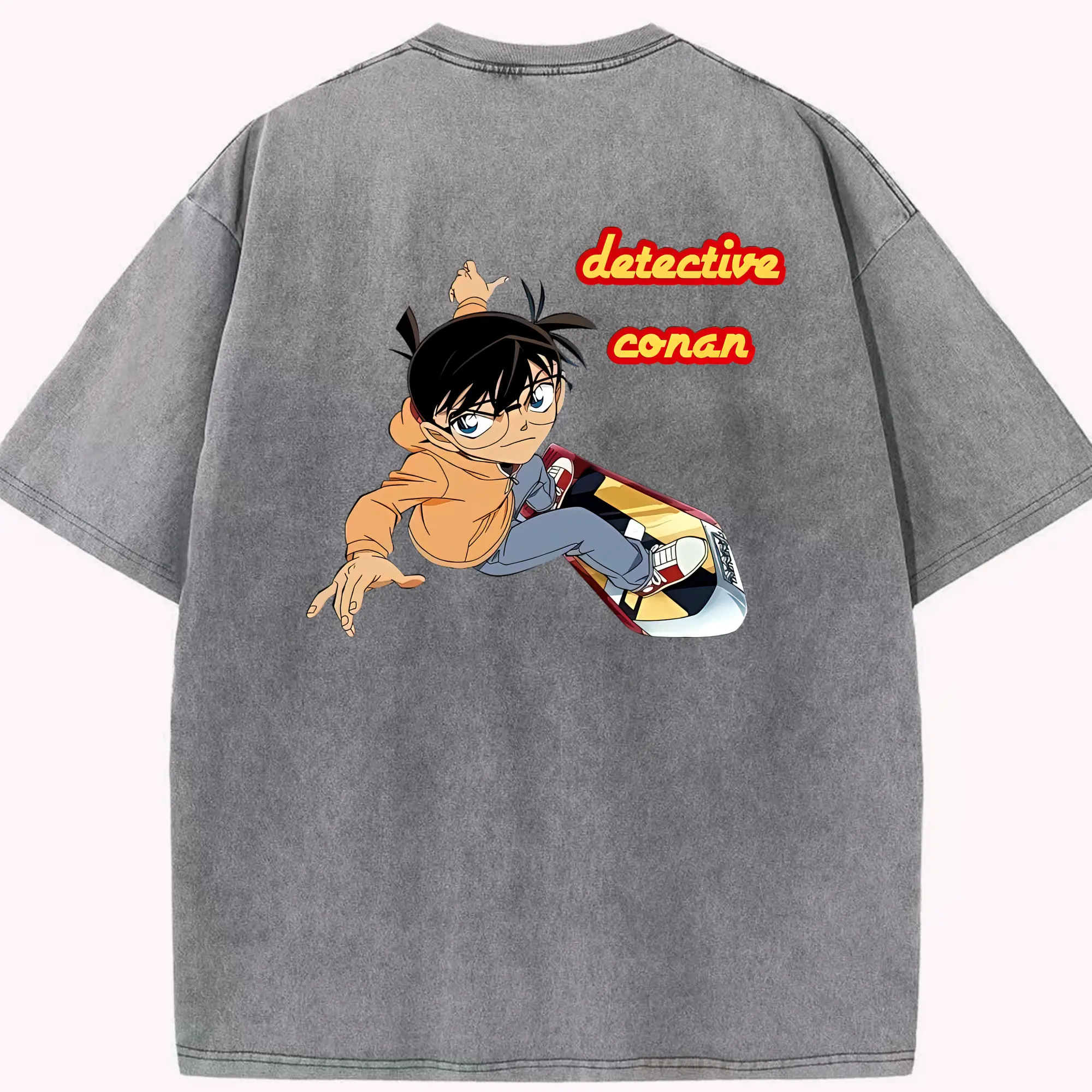 名探偵コナン グッズ 江戸川 コナン - 綿100% ヴィンテージ風 半袖Tシャツ ・ フロントプリント ・ 柔らか肌触り ・ 通気性 快適 ・ スポーツ カジュアル 外出用