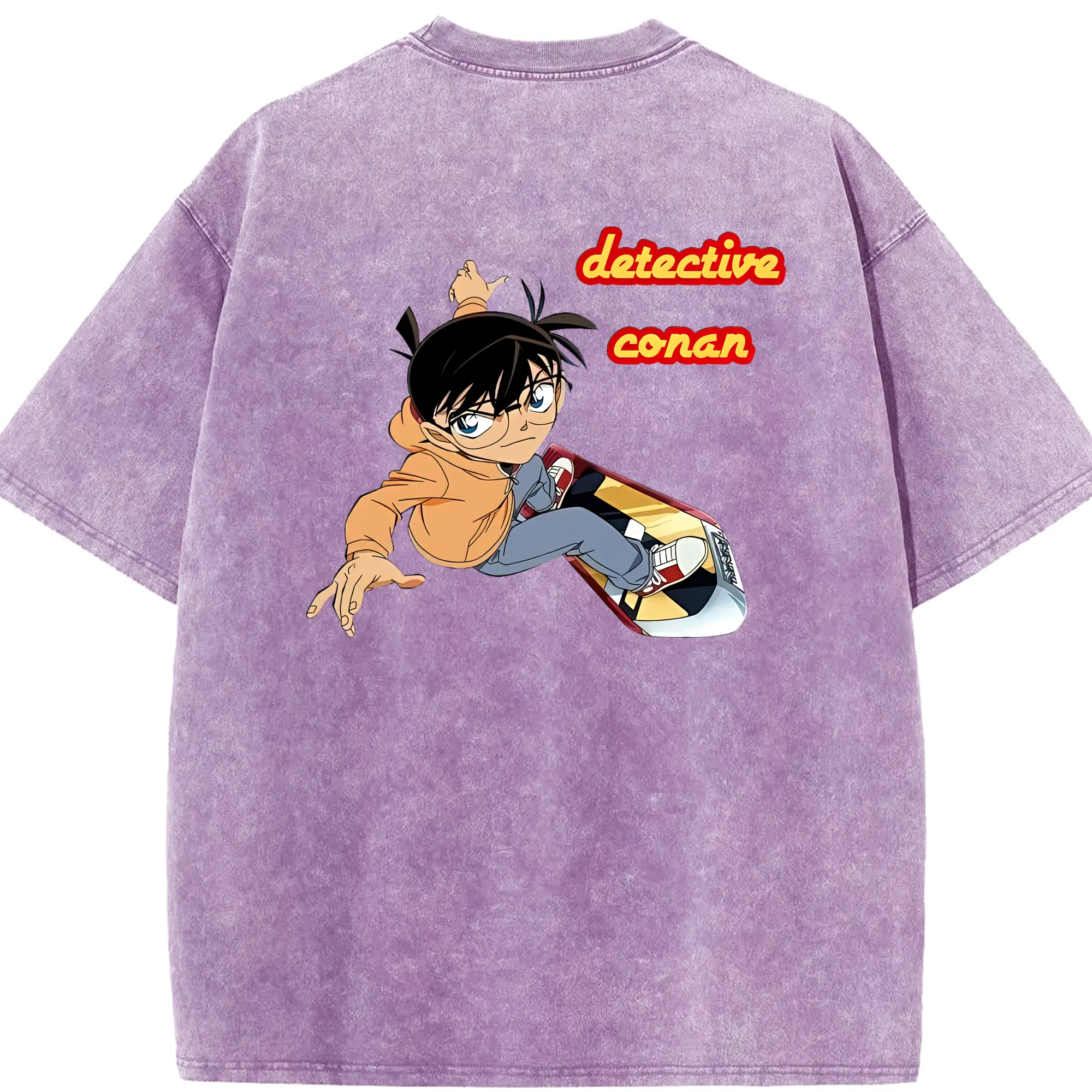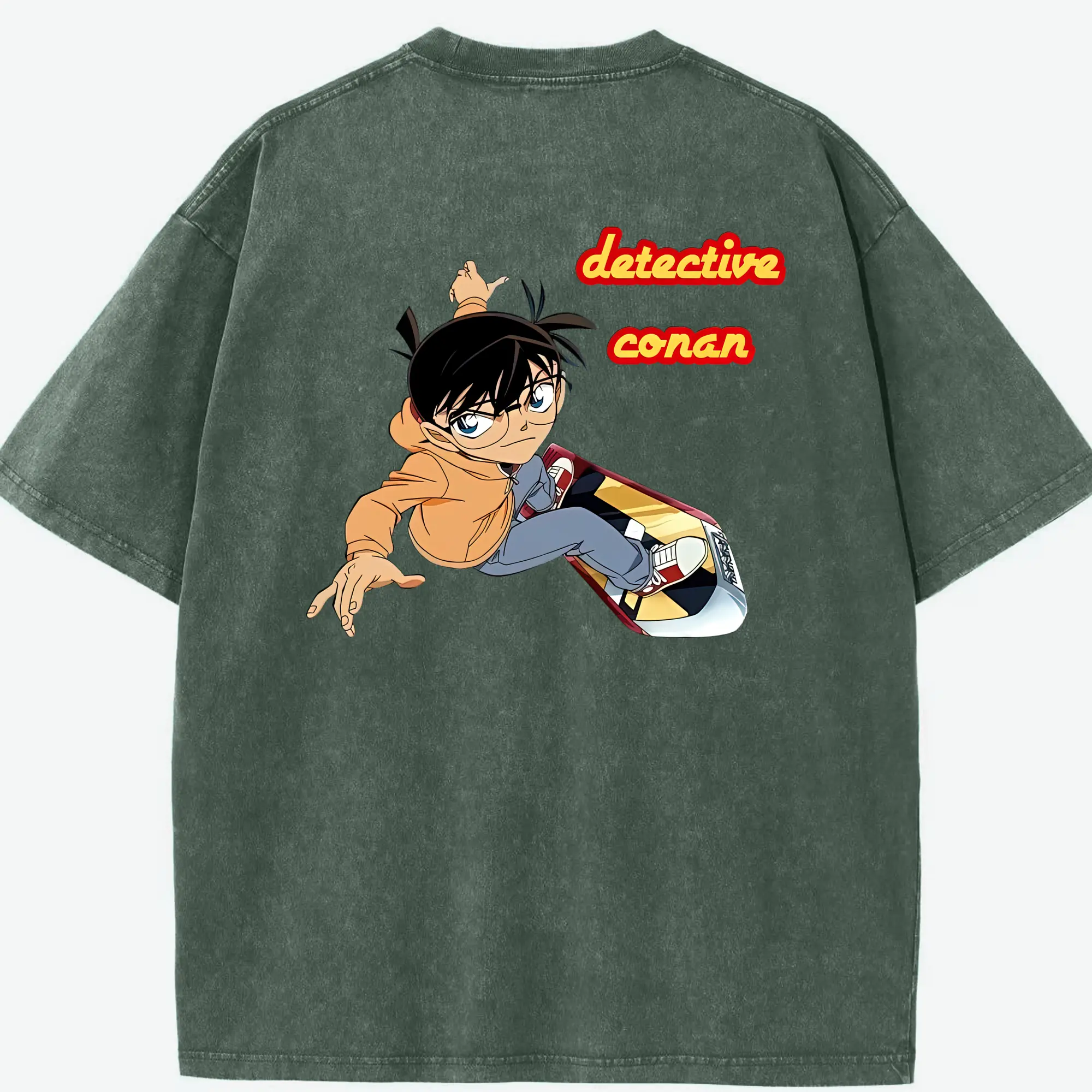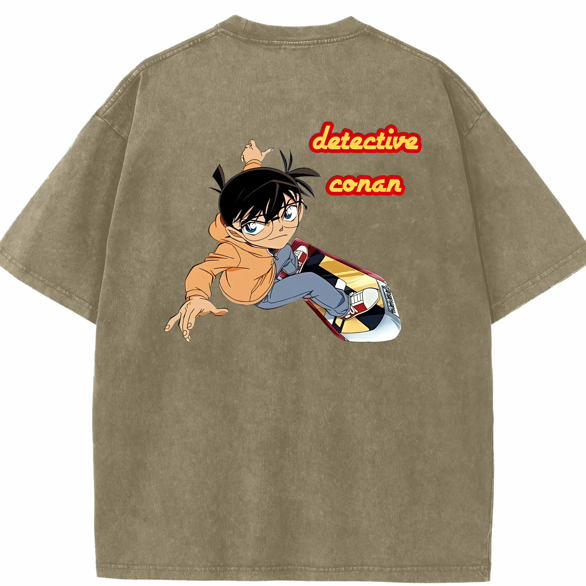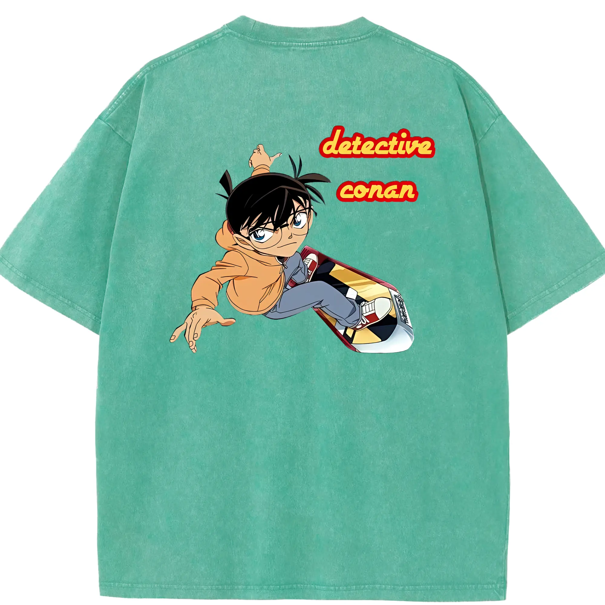 名探偵コナン グッズ 江戸川 コナン - 綿100% ヴィンテージ風 半袖Tシャツ ・ フロントプリント ・ 柔らか肌触り ・ 通気性 快適 ・ スポーツ カジュアル 外出用
