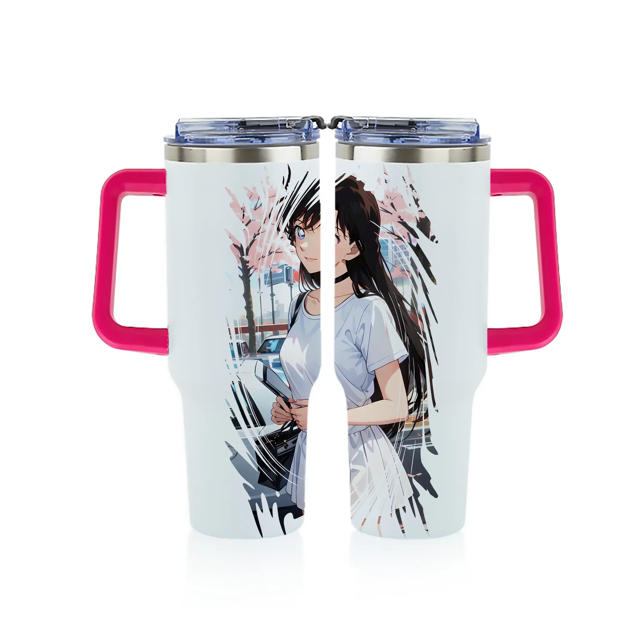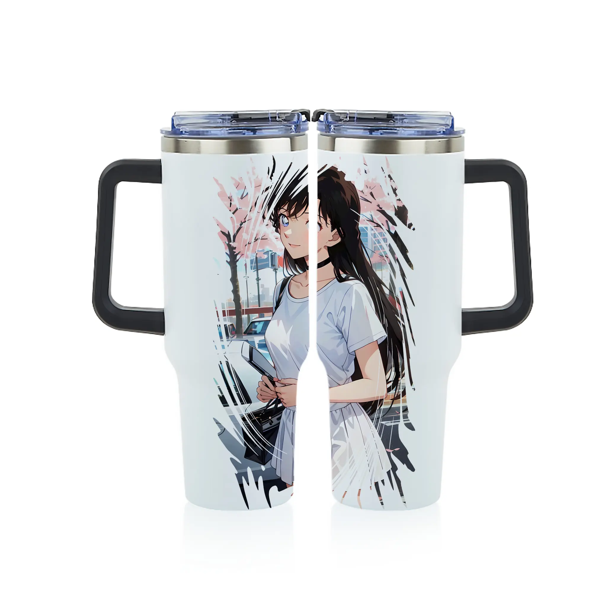 名探偵コナン グッズ 毛利 蘭 - 1200mL フルプリント車用タンブラー ・ 304ステンレス 内側 ・ 201ステンレス 外側 ・ 保温 保冷 ・ 通勤 ドライブ アウトドア用