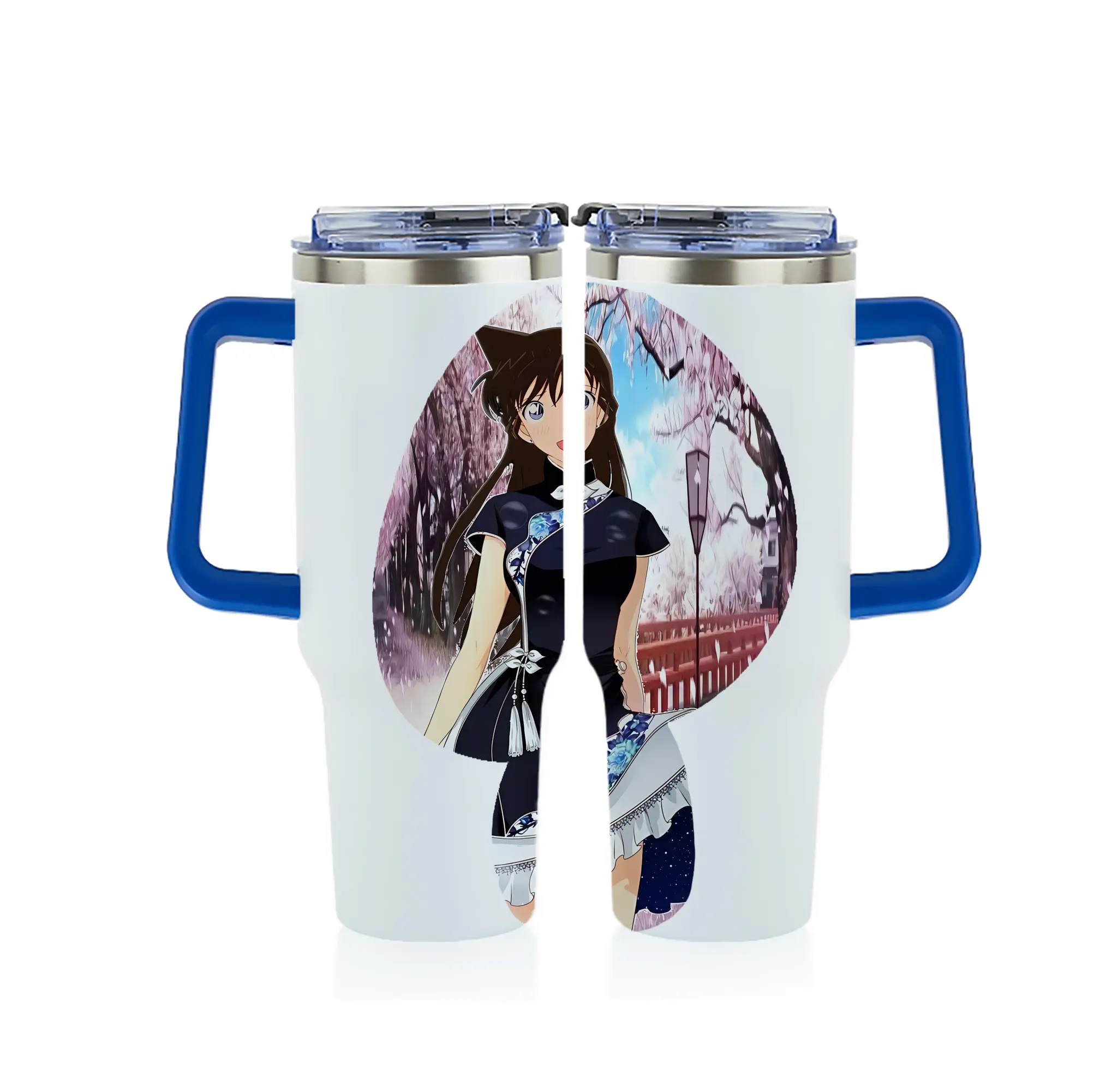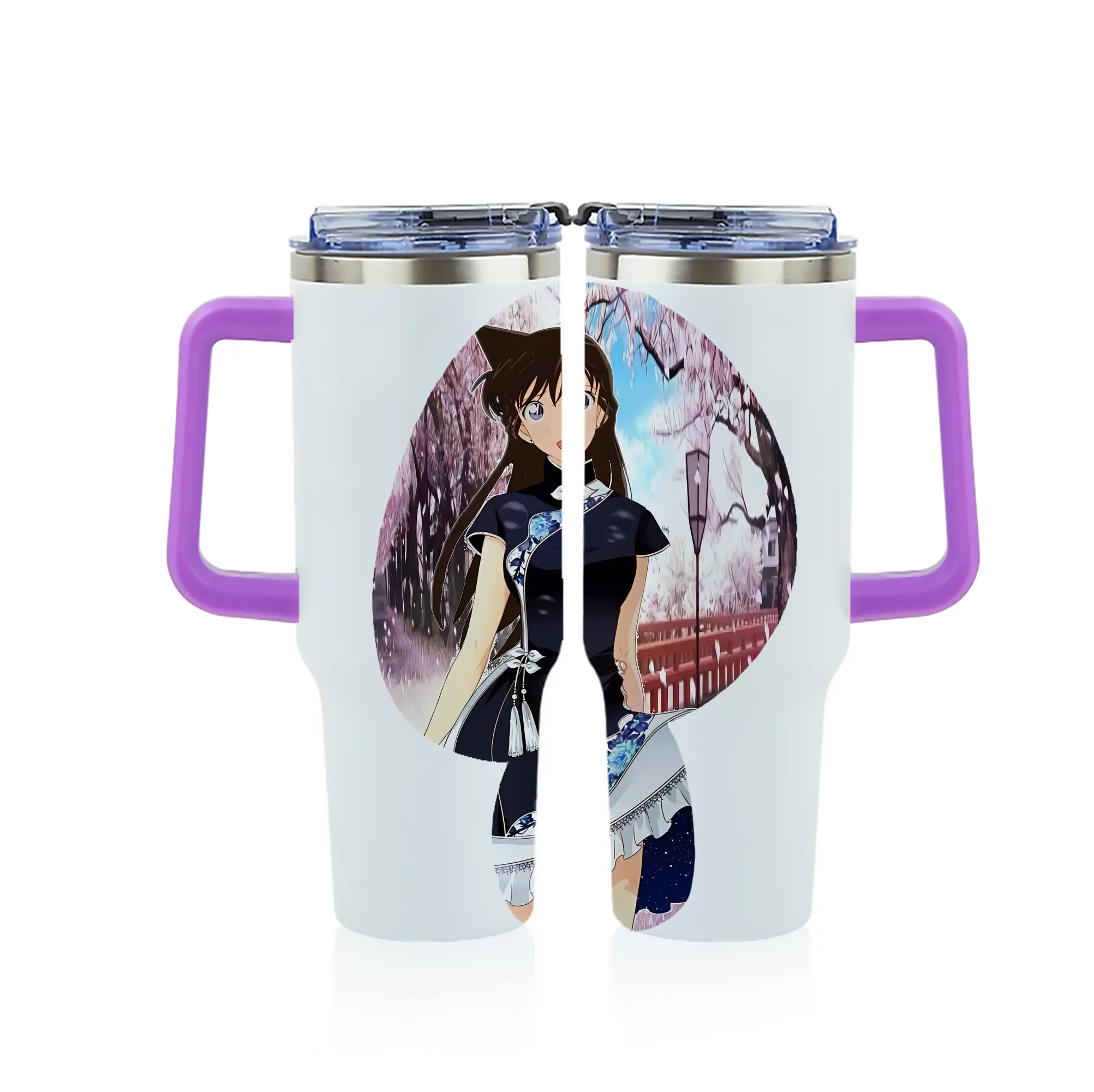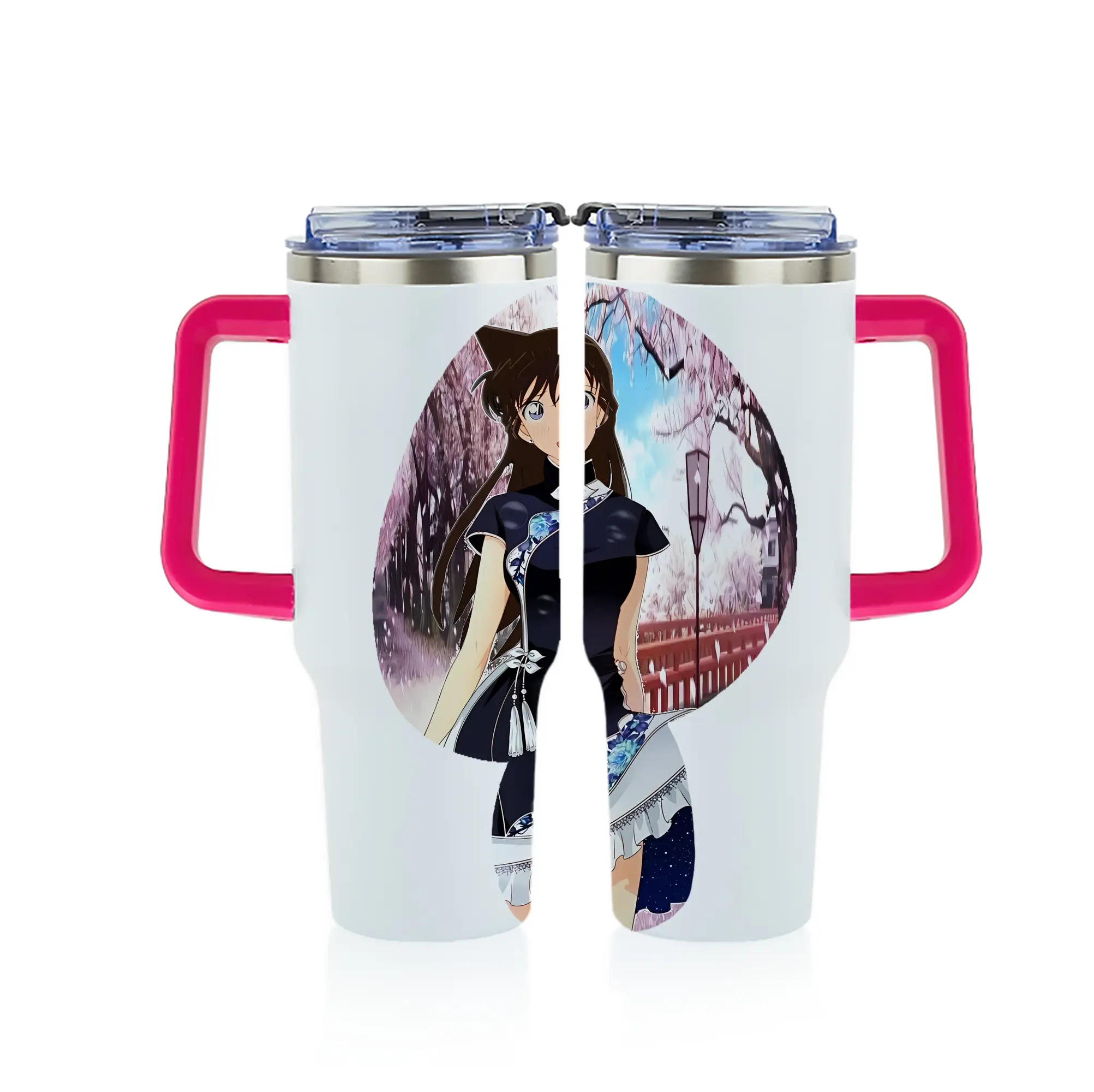 名探偵コナン グッズ 毛利 蘭 - 1200mL フルプリント車用タンブラー ・ 304ステンレス 内側 ・ 201ステンレス 外側 ・ 保温 保冷 ・ 通勤 ドライブ アウトドア用