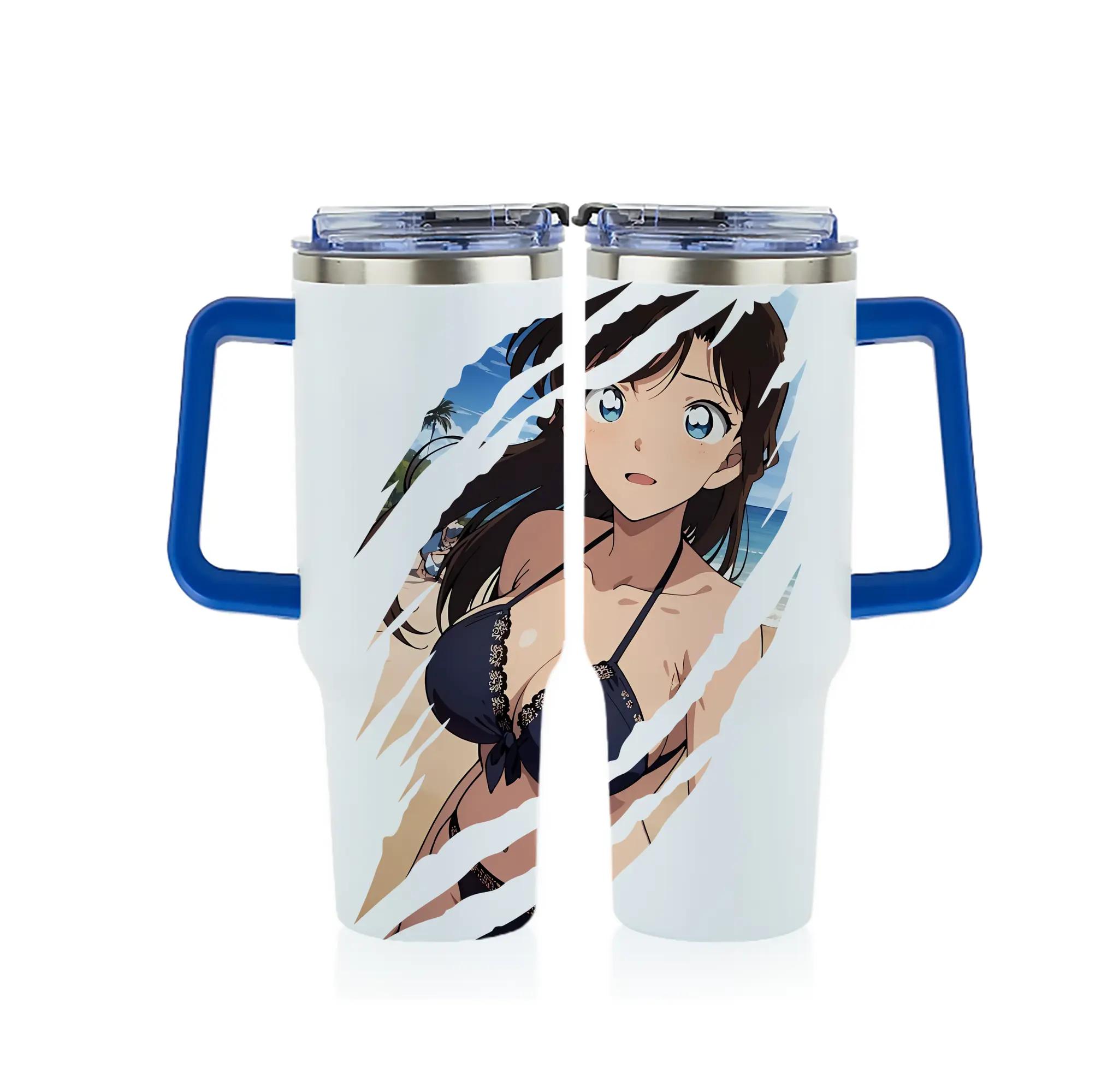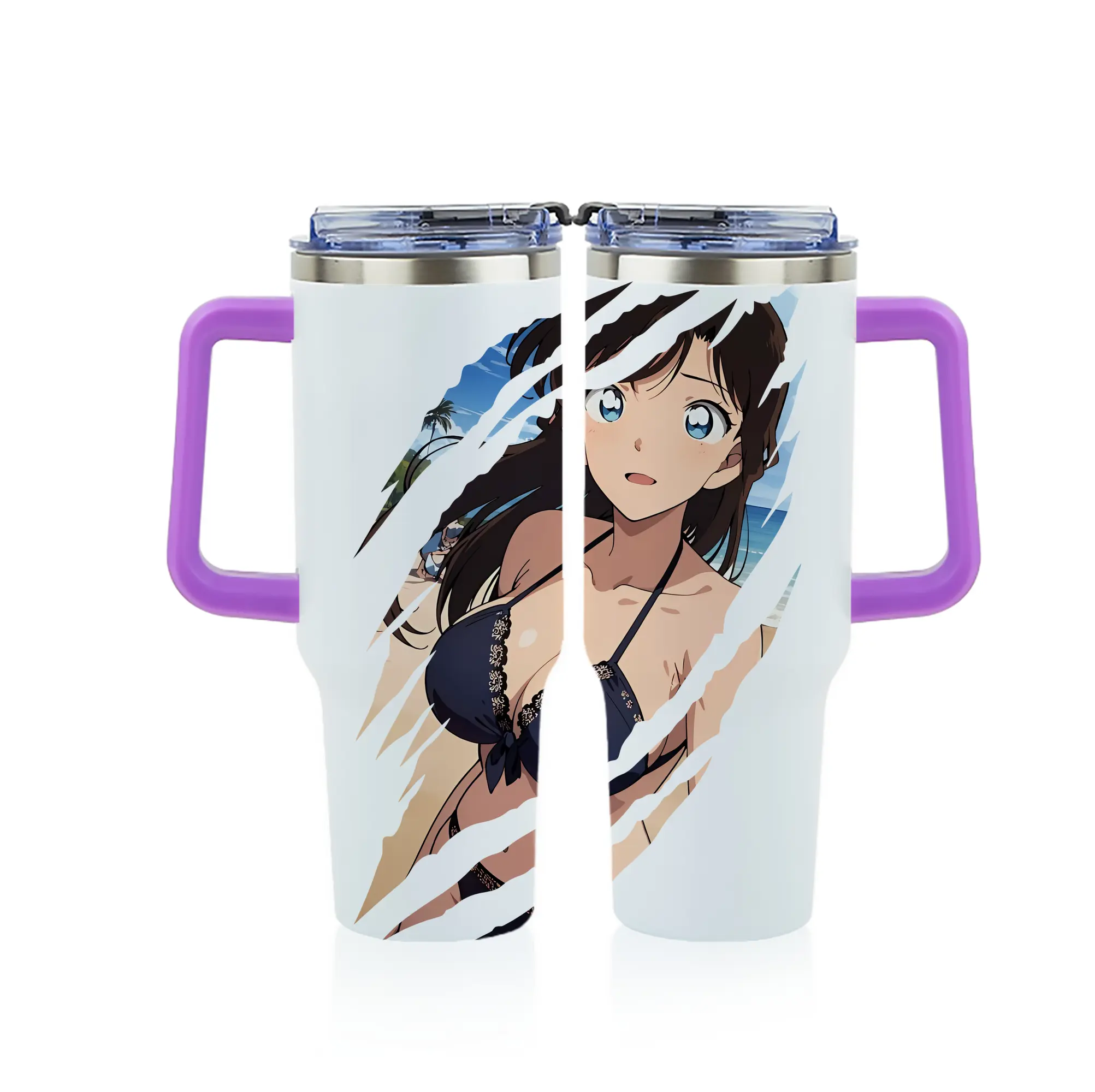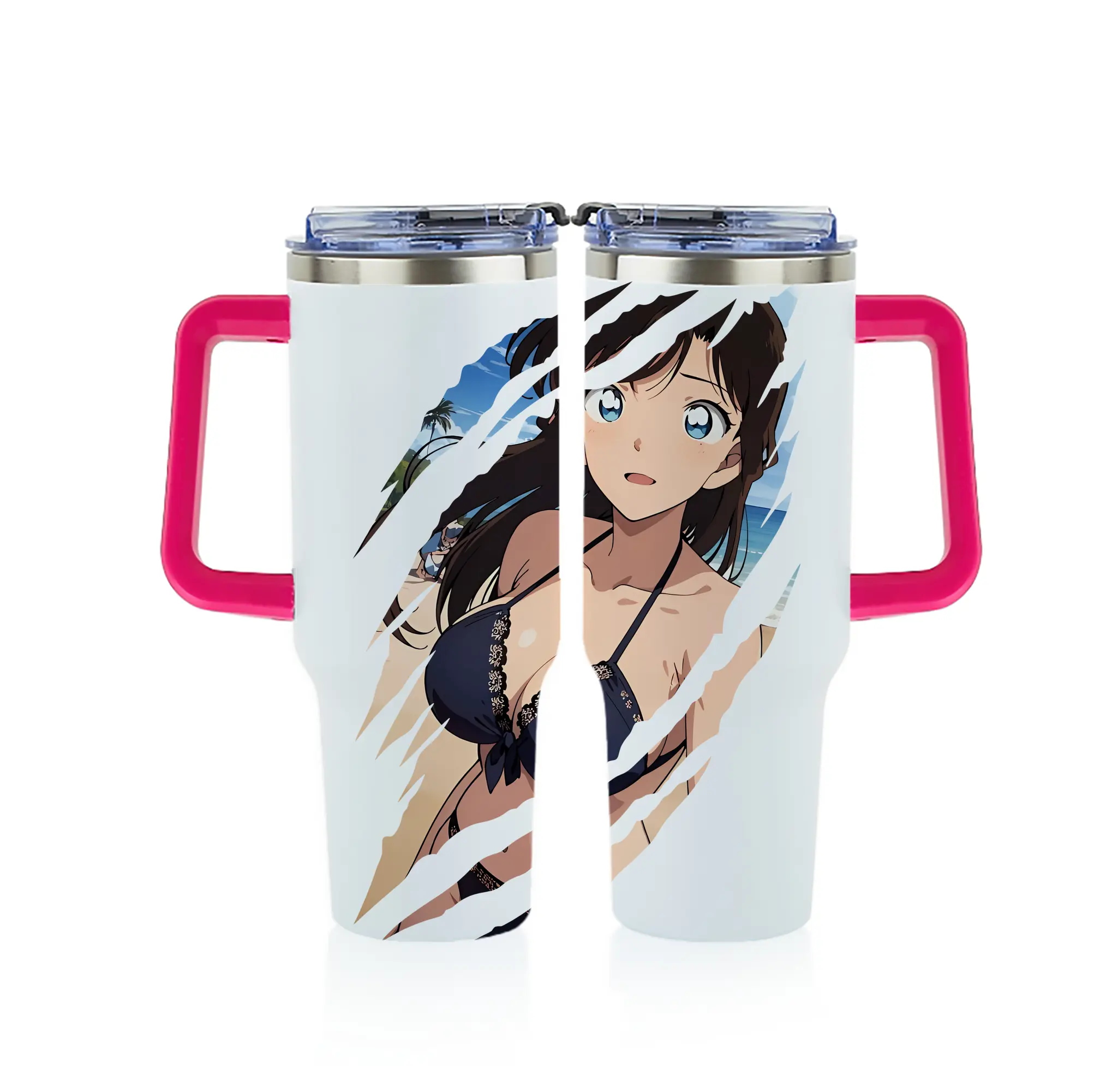 名探偵コナン グッズ 毛利 蘭 - 1200mL フルプリント車用タンブラー ・ 304ステンレス 内側 ・ 201ステンレス 外側 ・ 保温 保冷 ・ 通勤 ドライブ アウトドア用