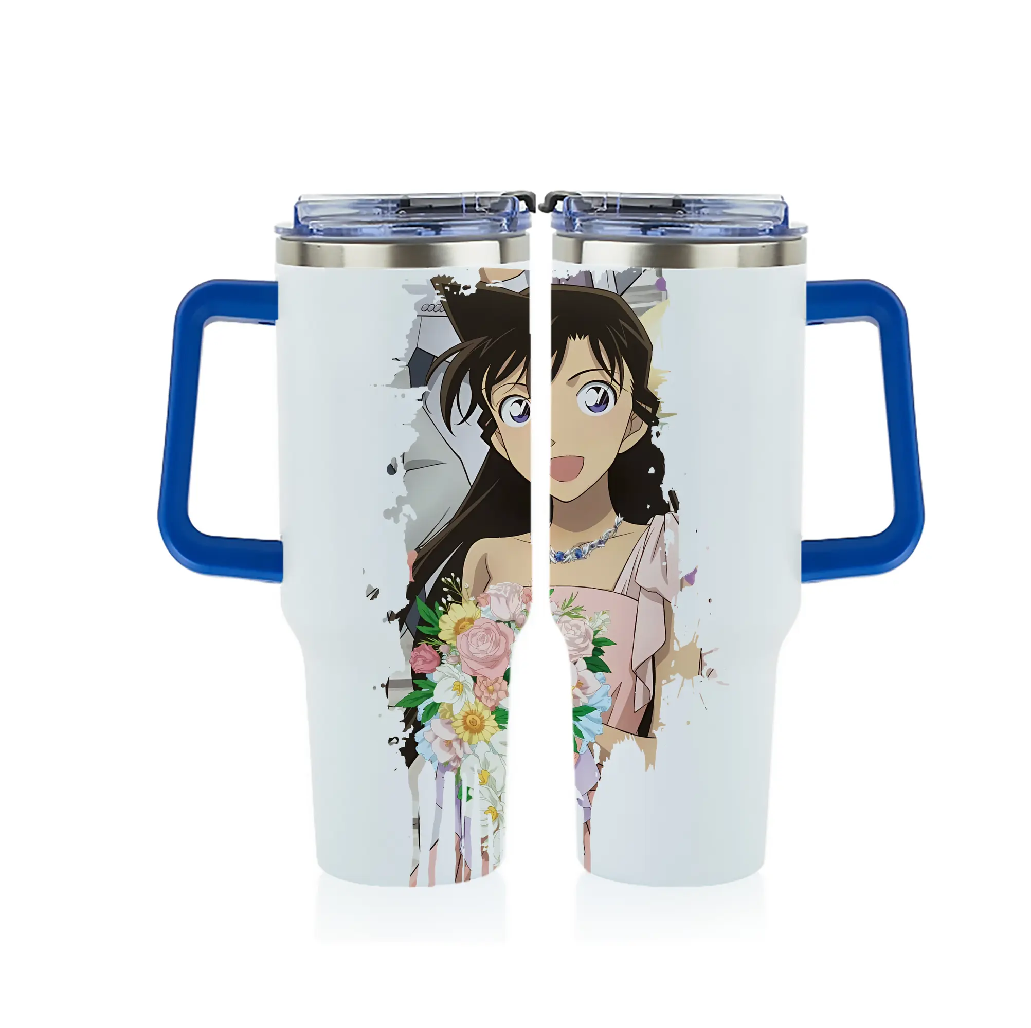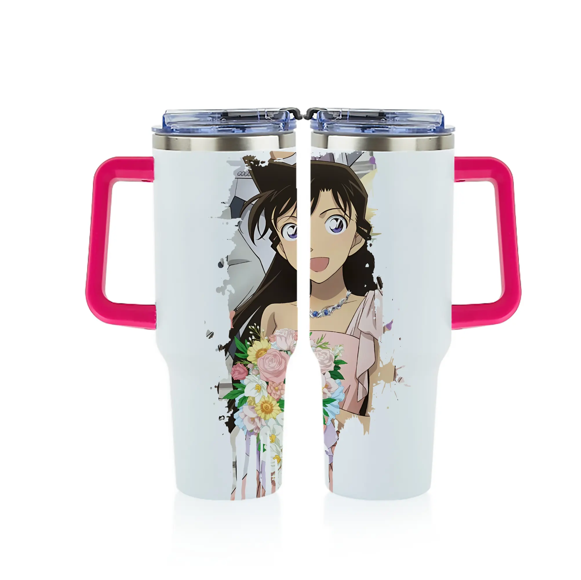 名探偵コナン グッズ 毛利 蘭 - 1200mL フルプリント車用タンブラー ・ 304ステンレス 内側 ・ 201ステンレス 外側 ・ 保温 保冷 ・ 通勤 ドライブ アウトドア用