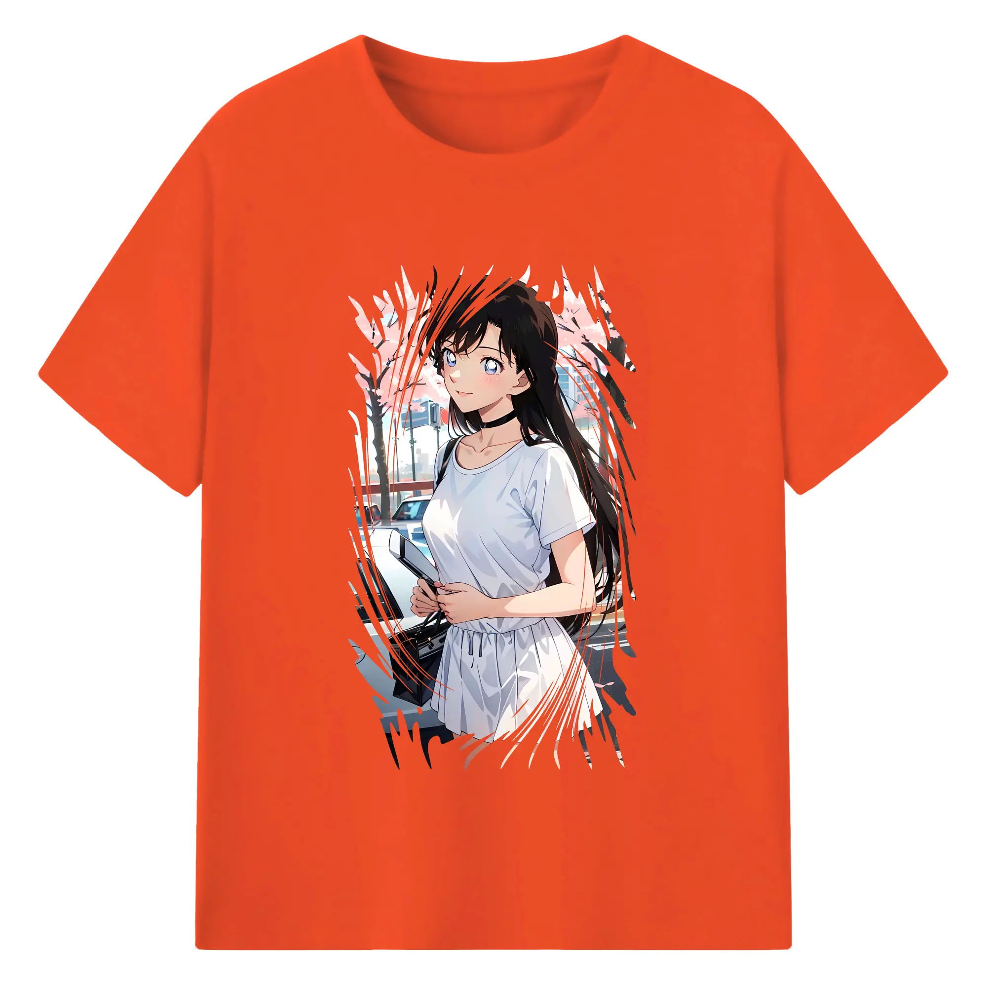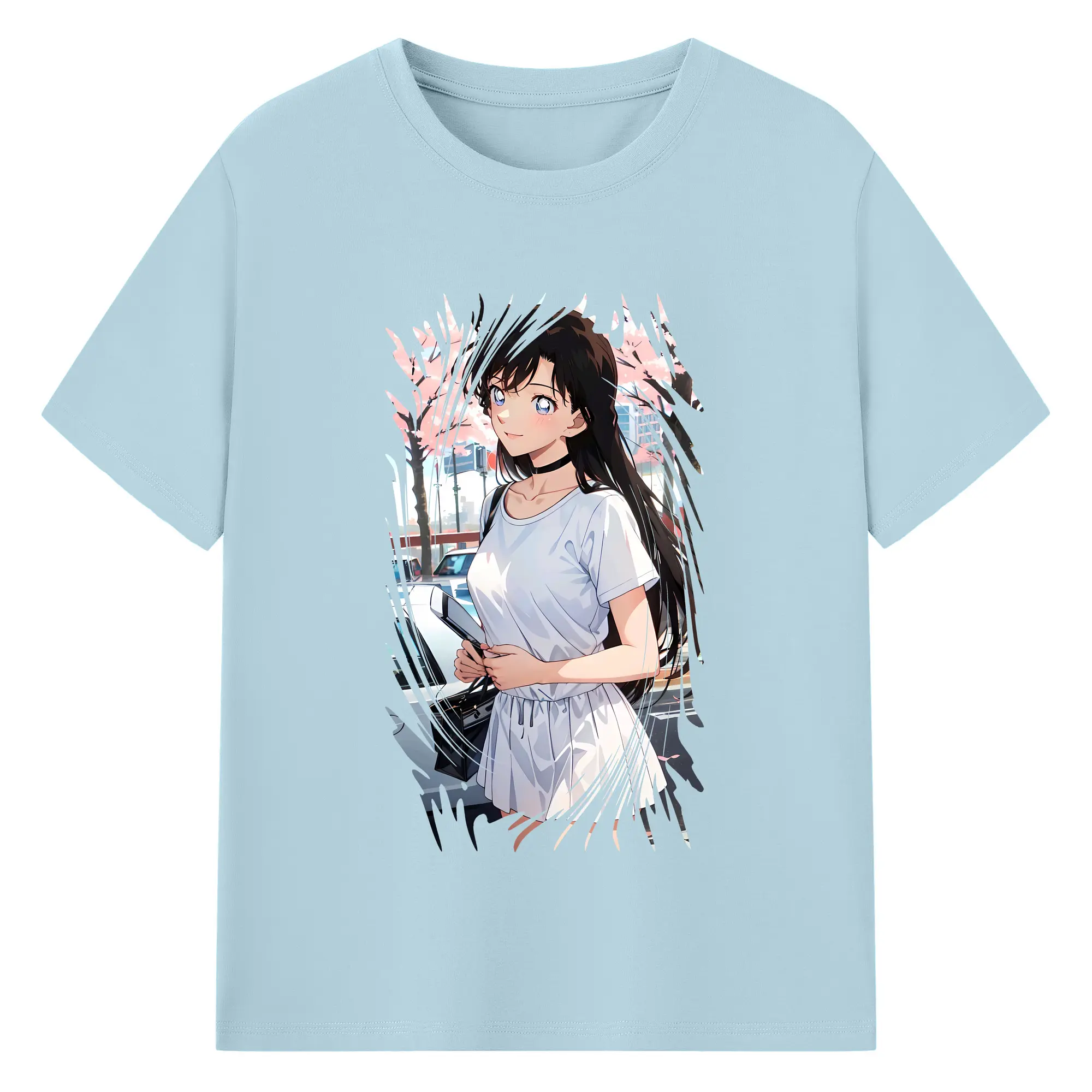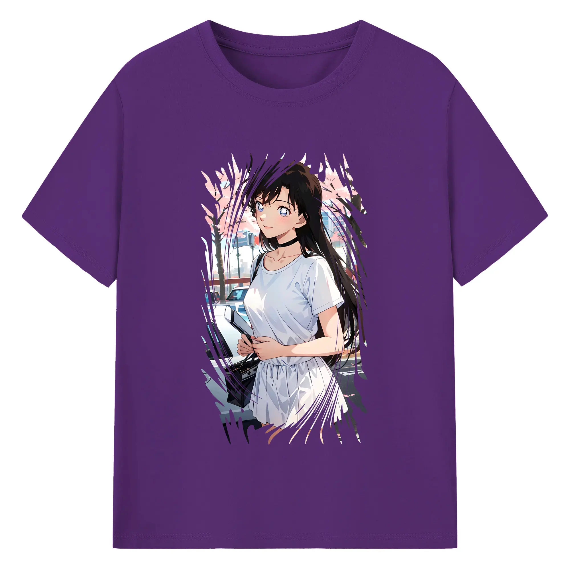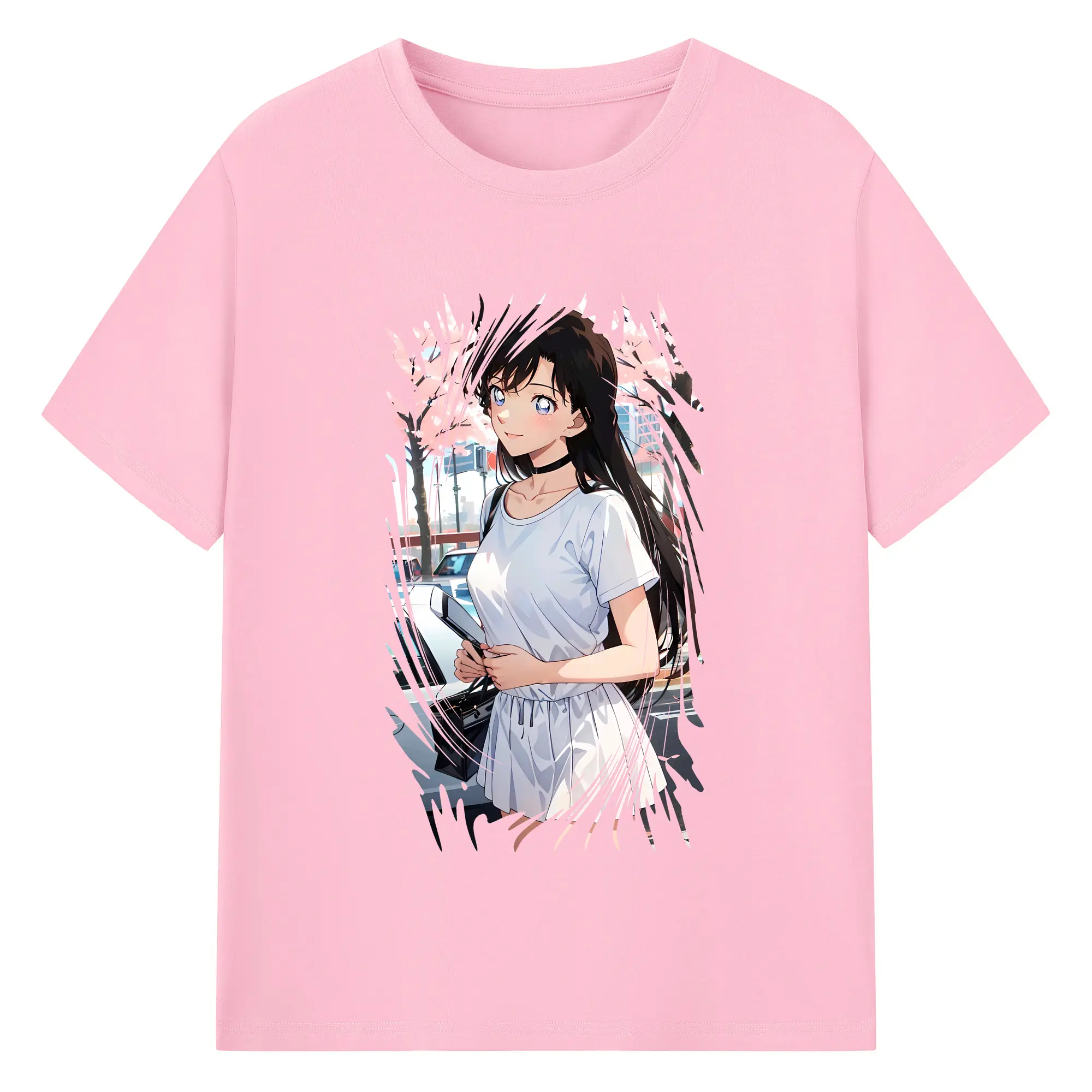 名探偵コナン グッズ 毛利 蘭 - 綿100% 半袖Tシャツ ・ フロントプリント ・ 快適 通気性 ・ 日常使い 散歩 スポーツ用