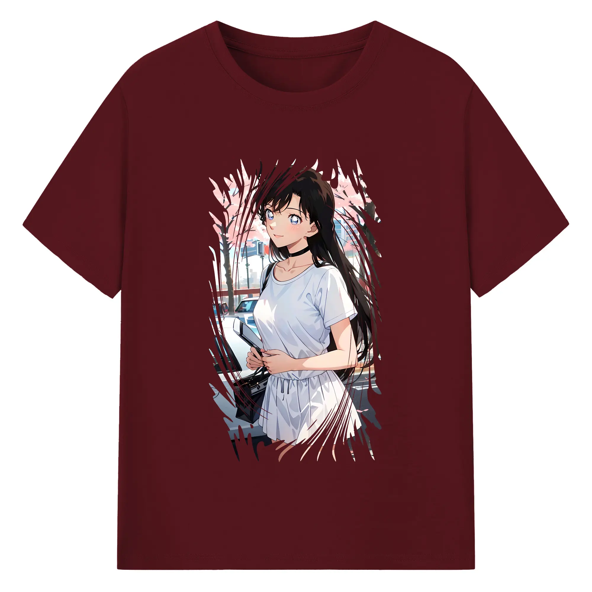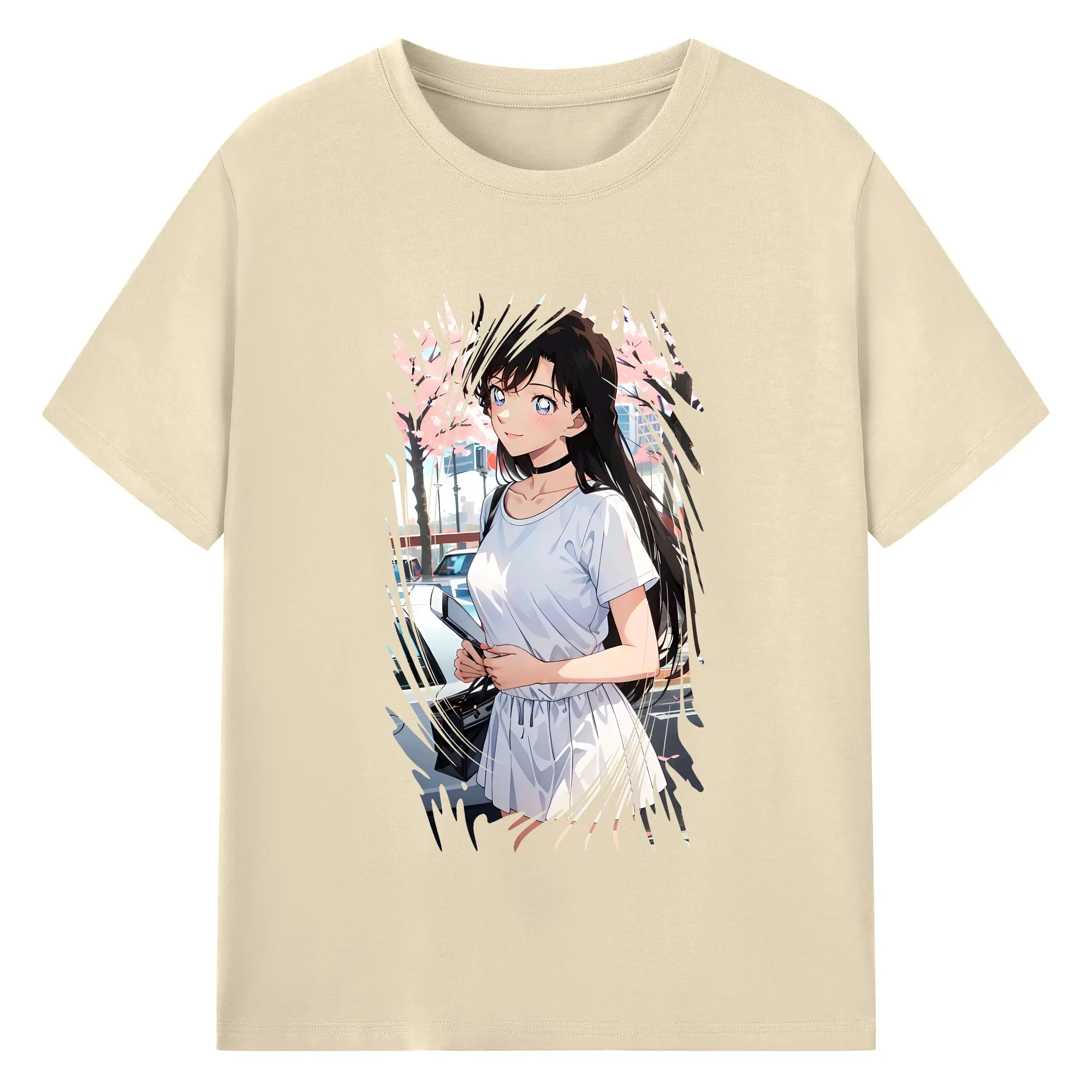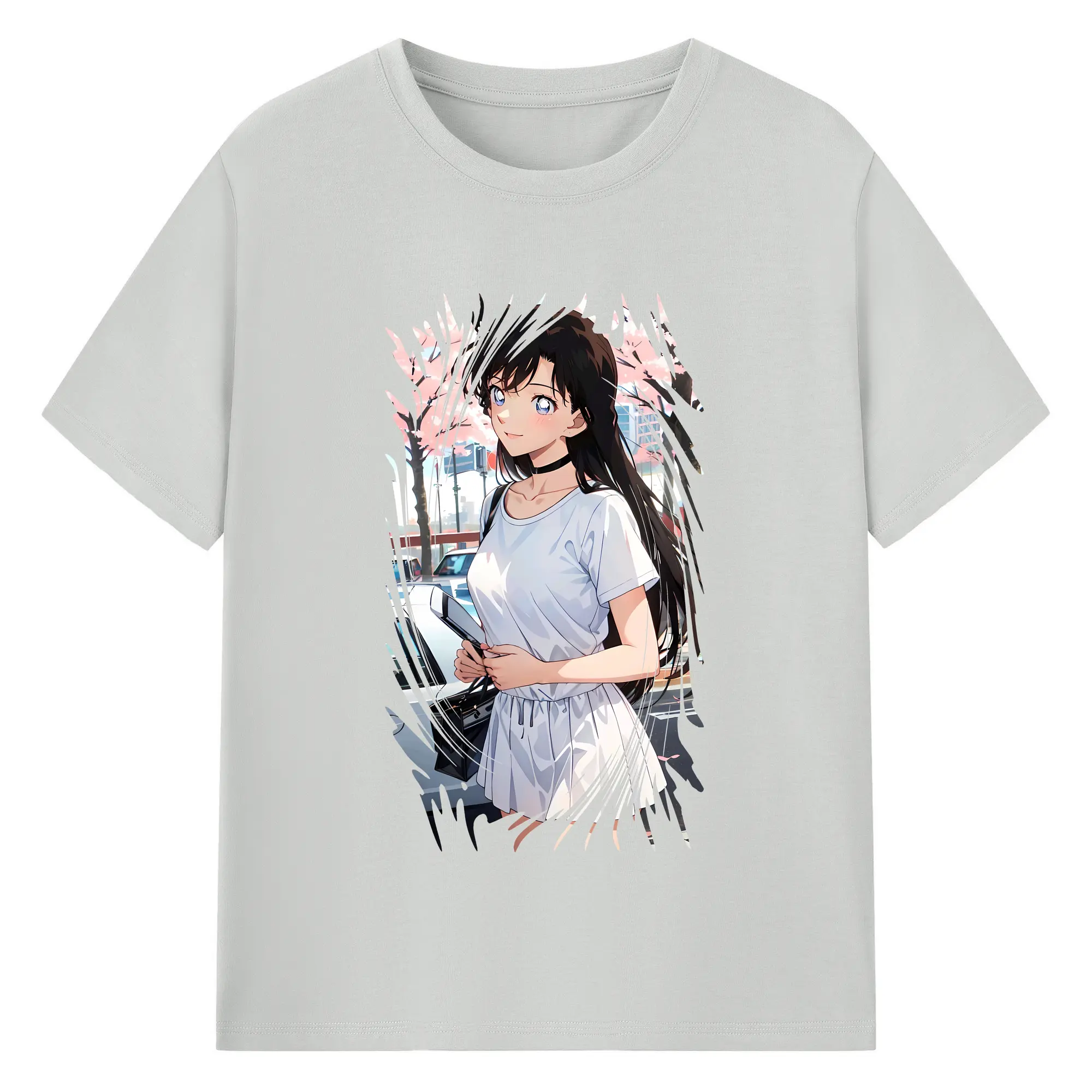名探偵コナン グッズ 毛利 蘭 - 綿100% 半袖Tシャツ ・ フロントプリント ・ 快適 通気性 ・ 日常使い 散歩 スポーツ用
