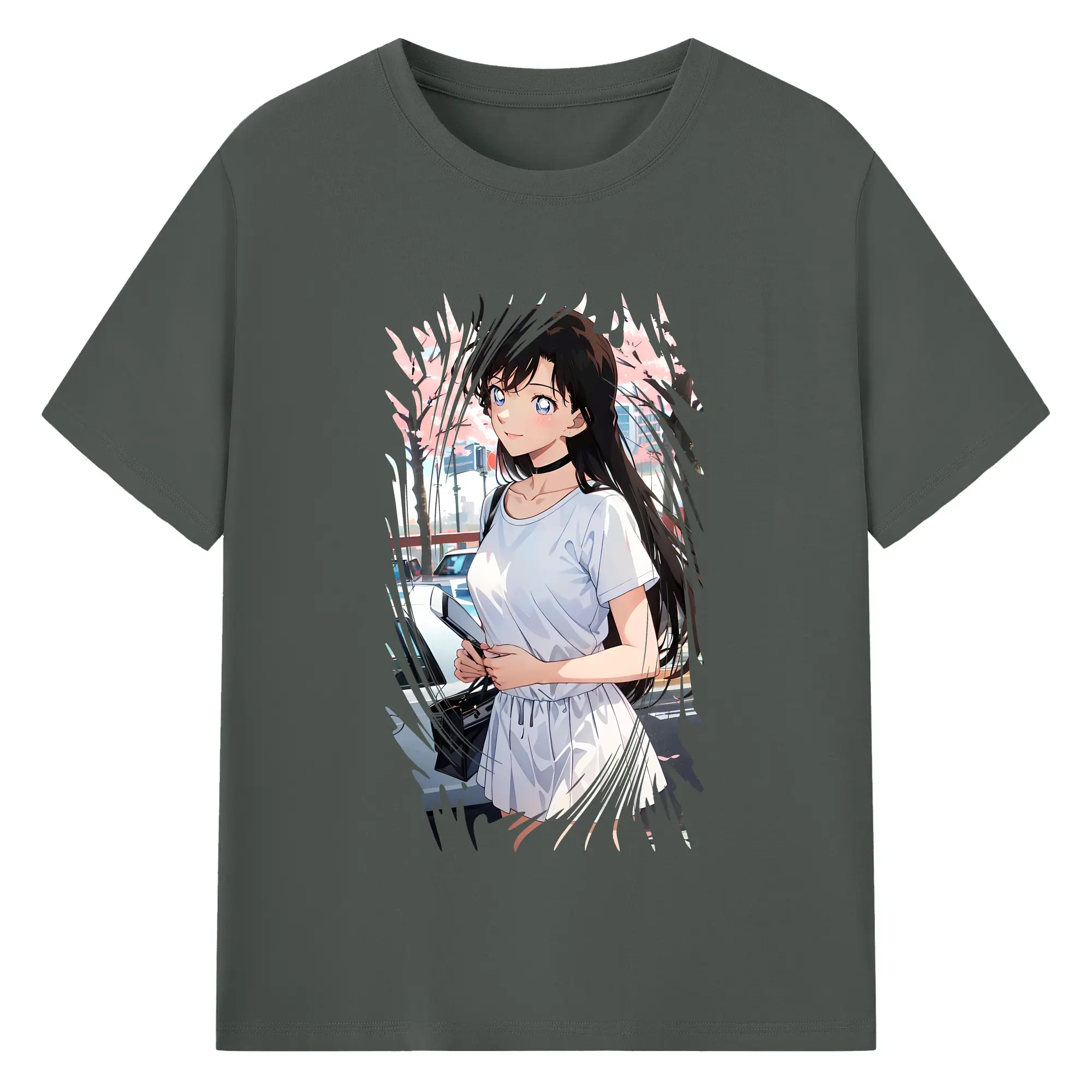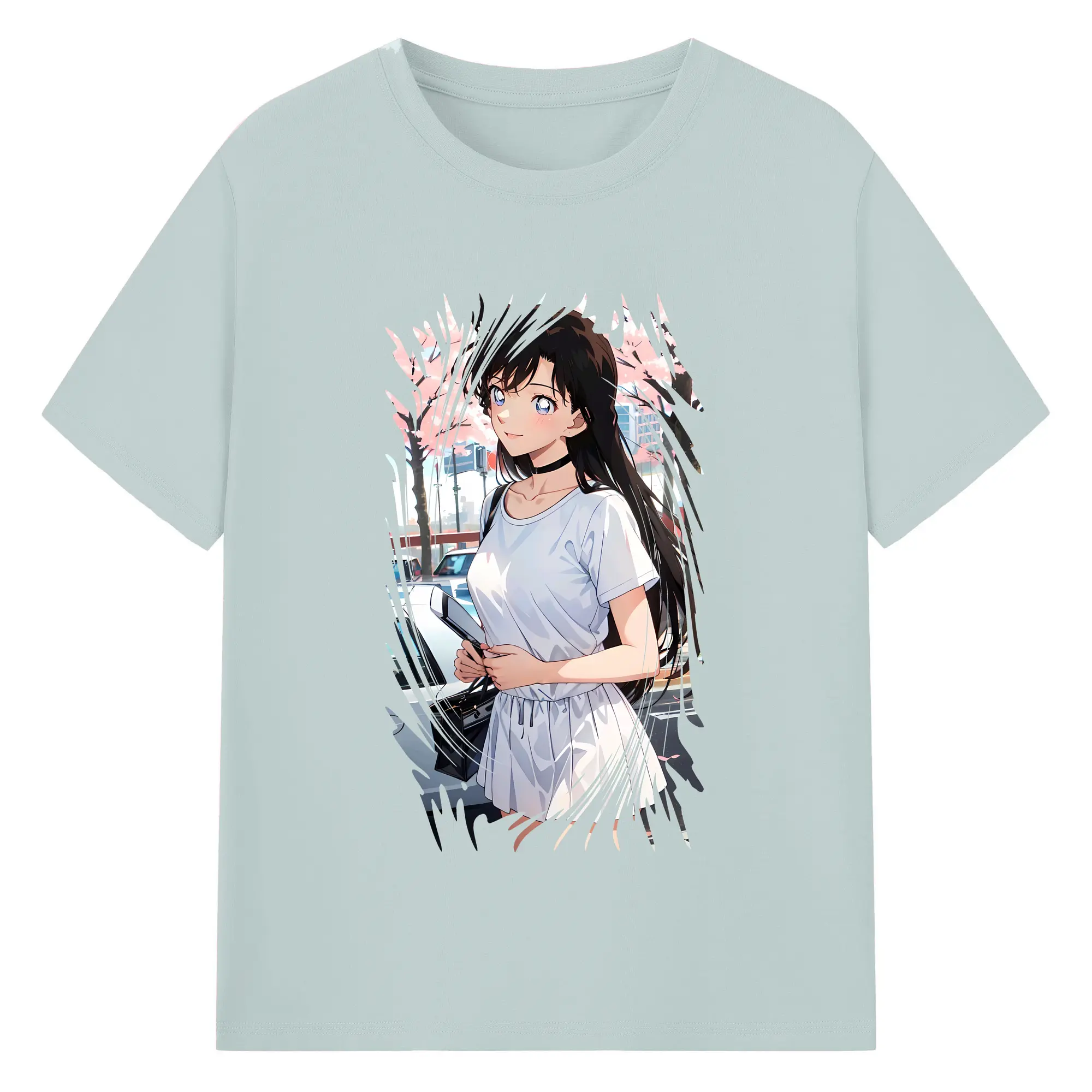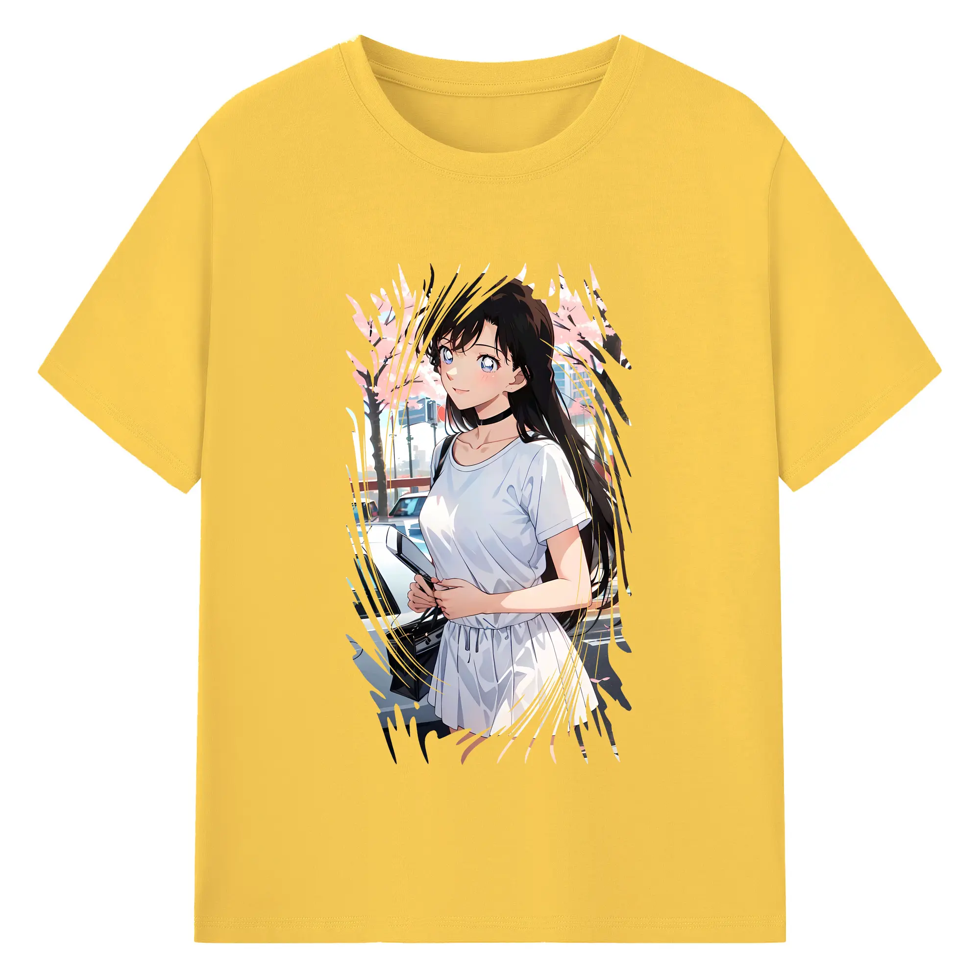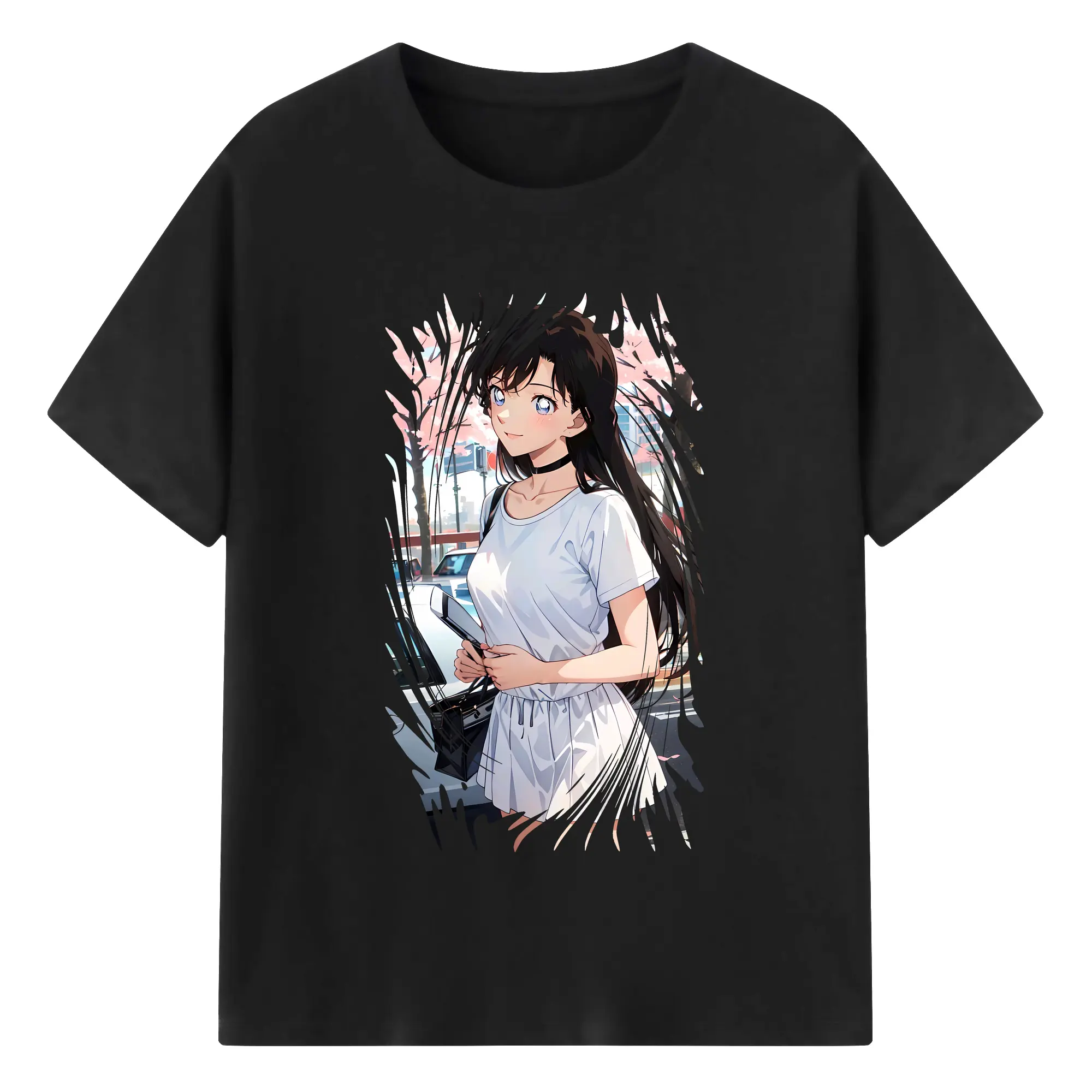 名探偵コナン グッズ 毛利 蘭 - 綿100% 半袖Tシャツ ・ フロントプリント ・ 快適 通気性 ・ 日常使い 散歩 スポーツ用
