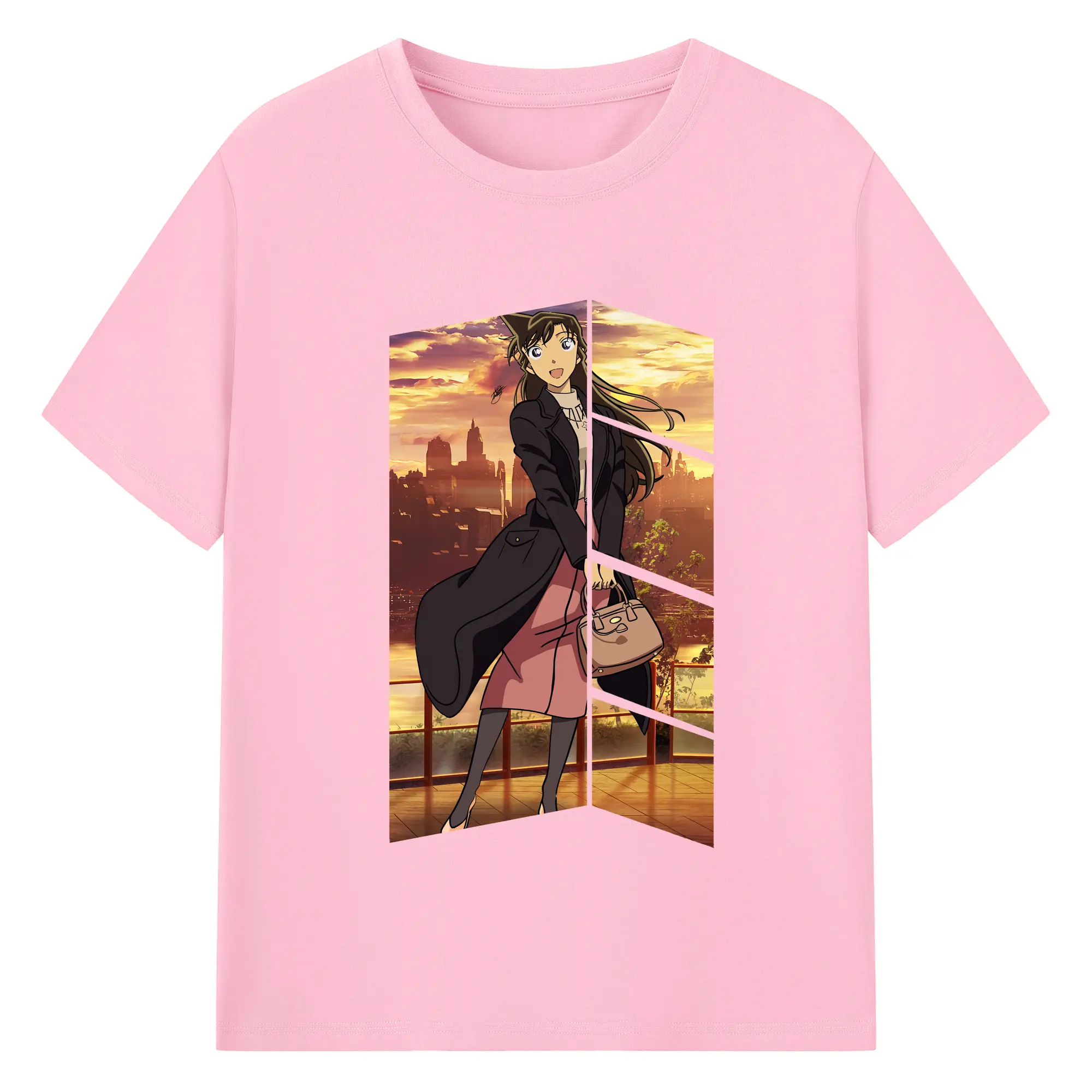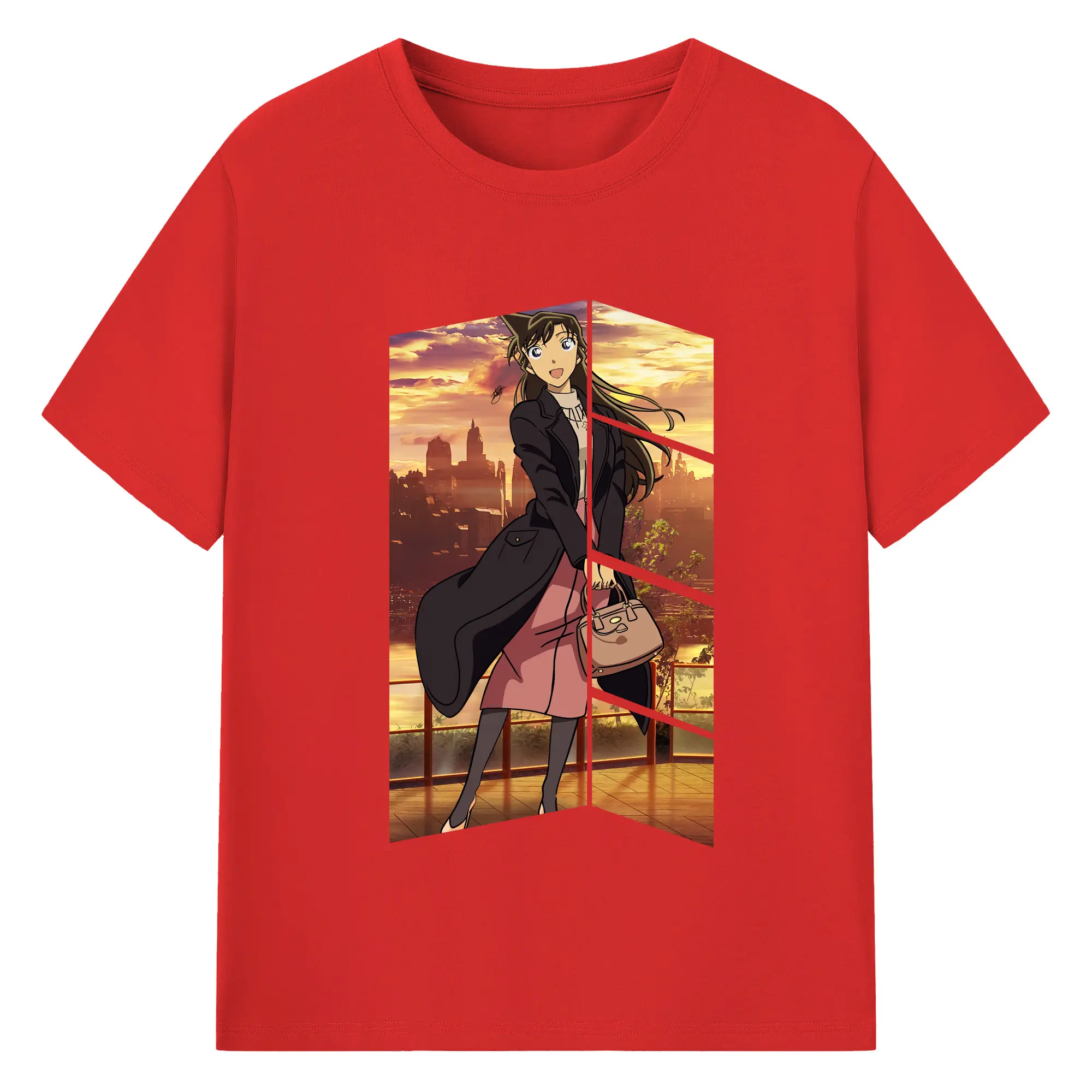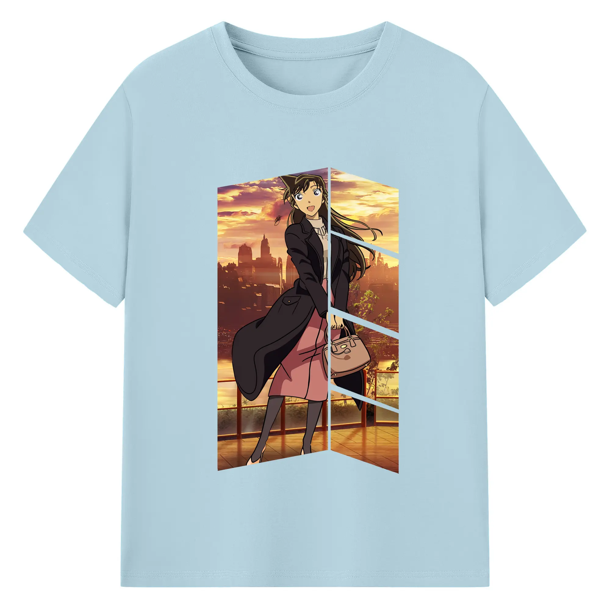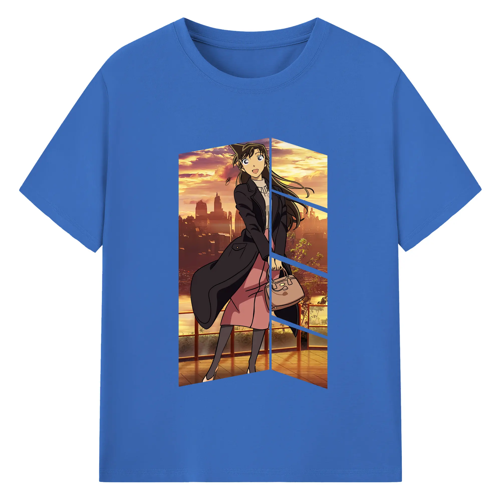 名探偵コナン グッズ 毛利 蘭 - 綿100% 半袖Tシャツ ・ バックプリント ・ 快適 通気性 ・ 日常使い 散歩 スポーツ用