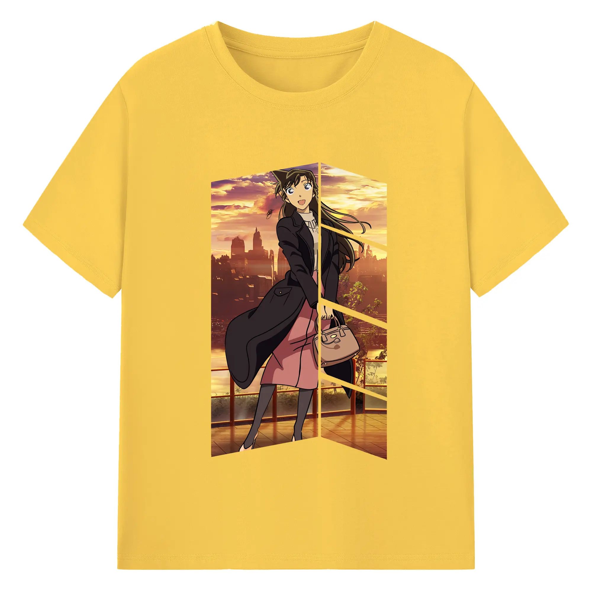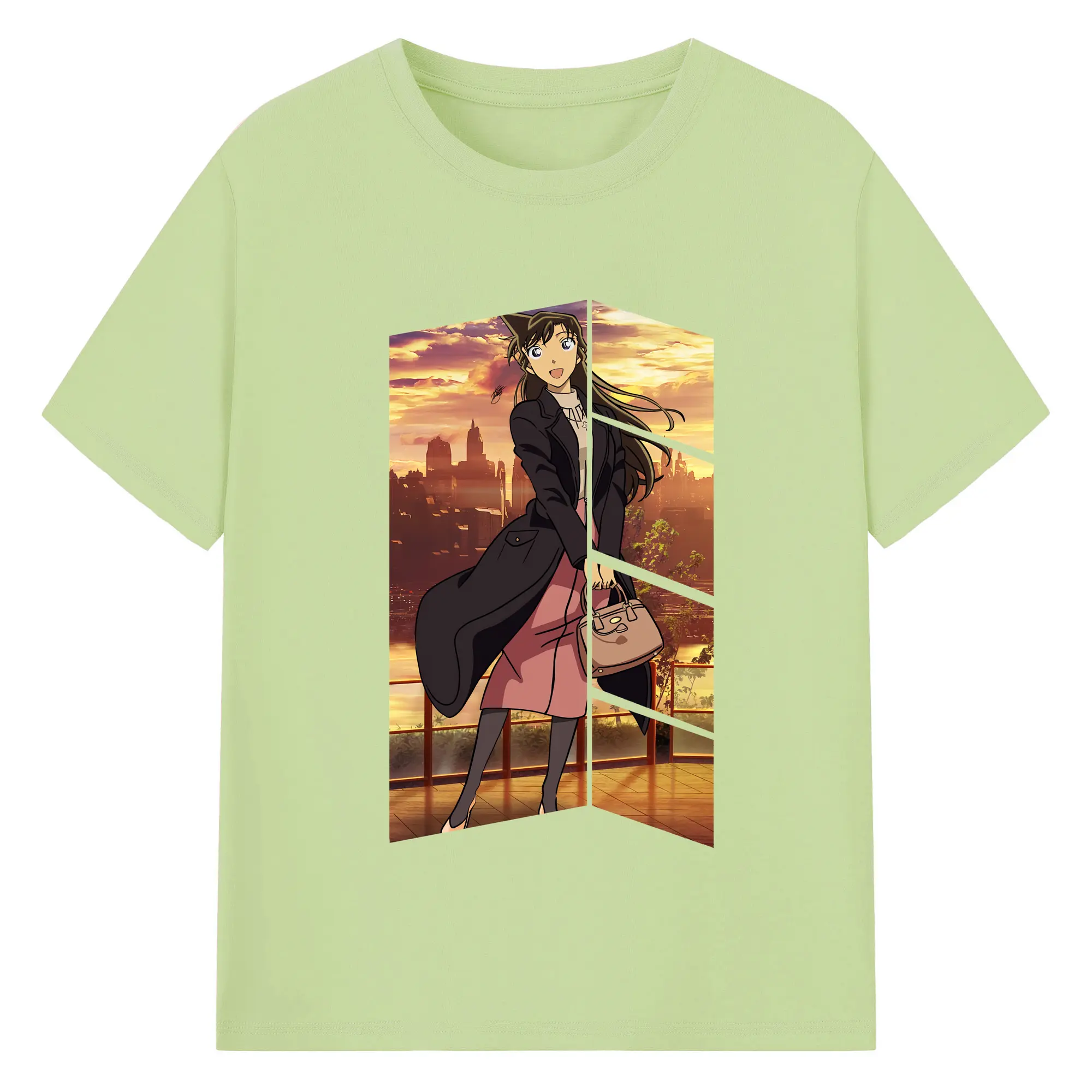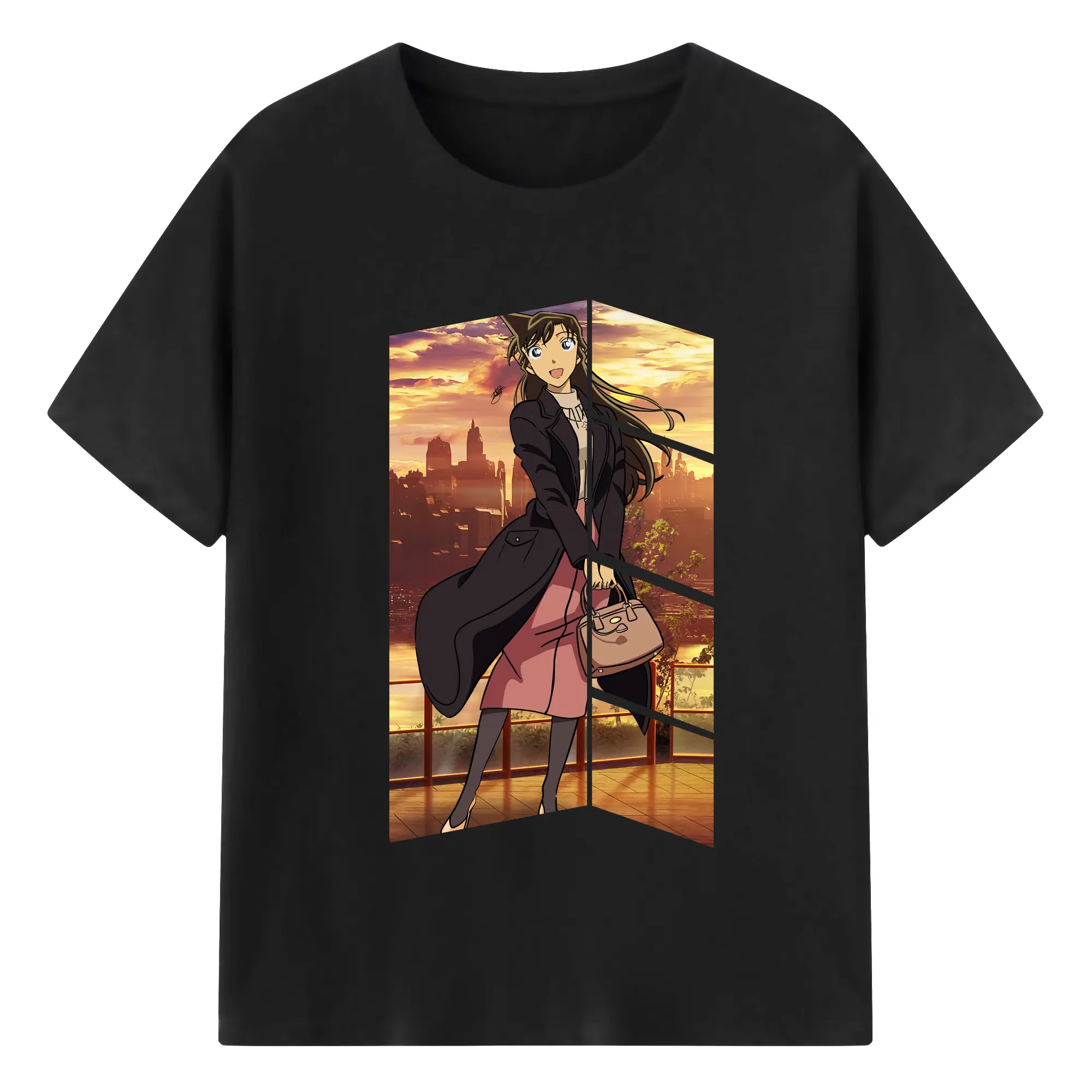 名探偵コナン グッズ 毛利 蘭 - 綿100% 半袖Tシャツ ・ バックプリント ・ 快適 通気性 ・ 日常使い 散歩 スポーツ用