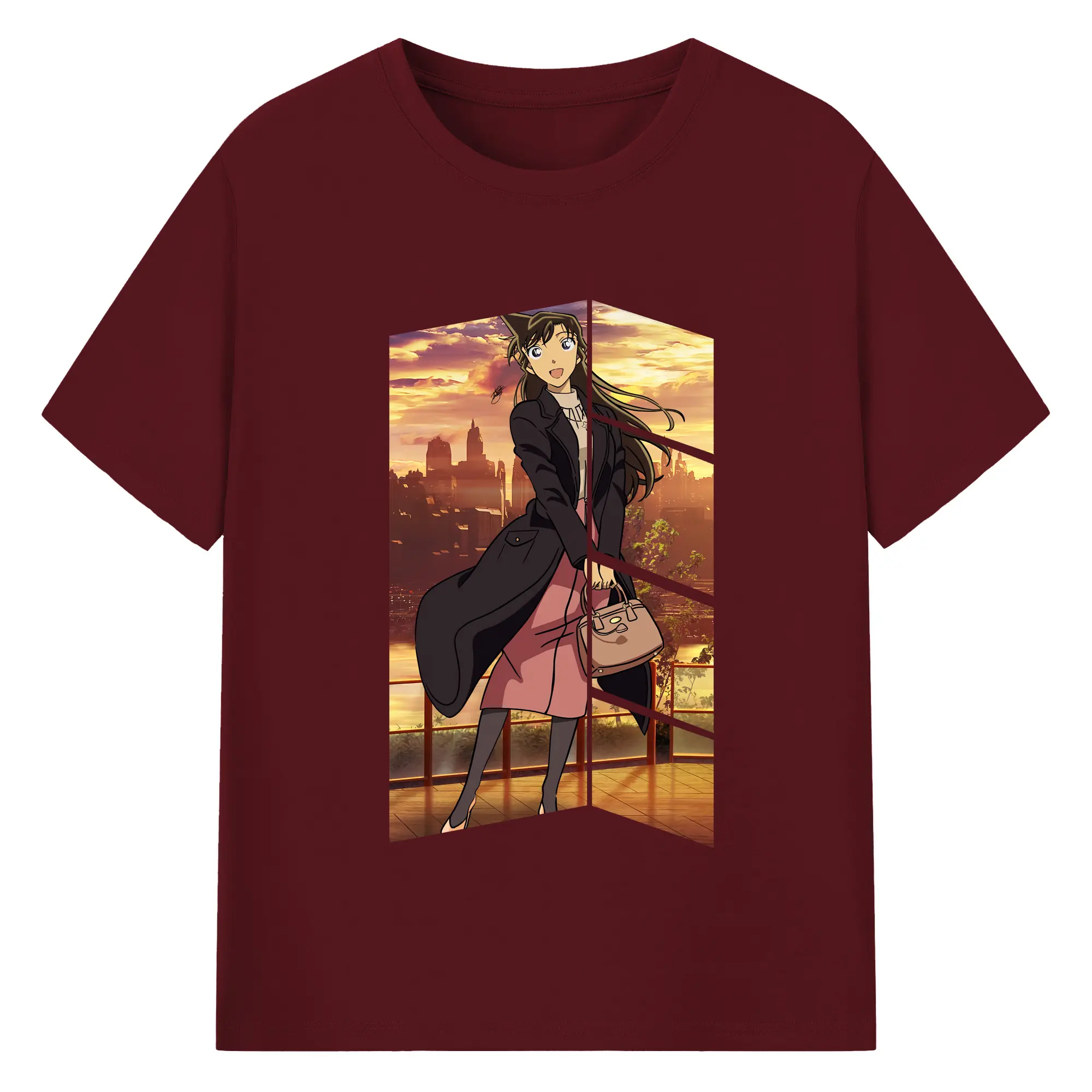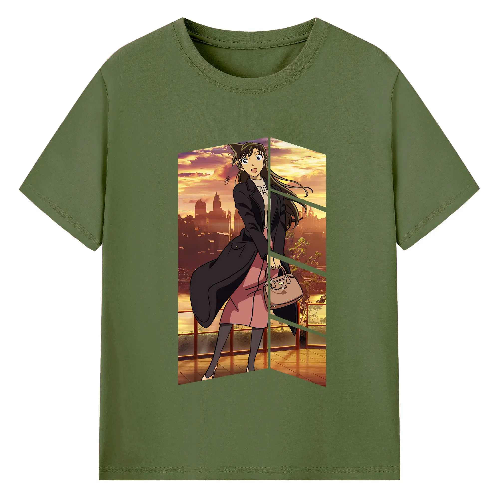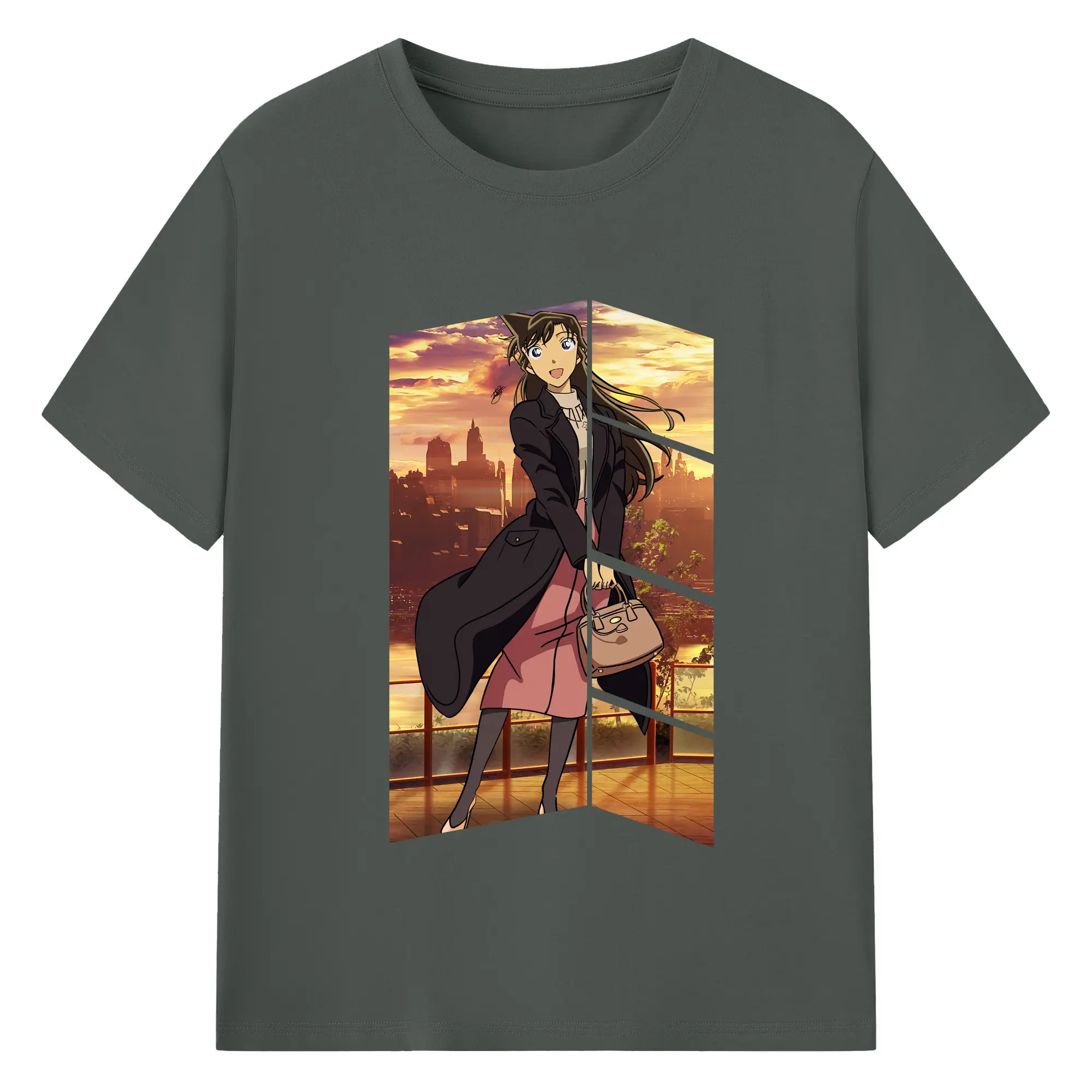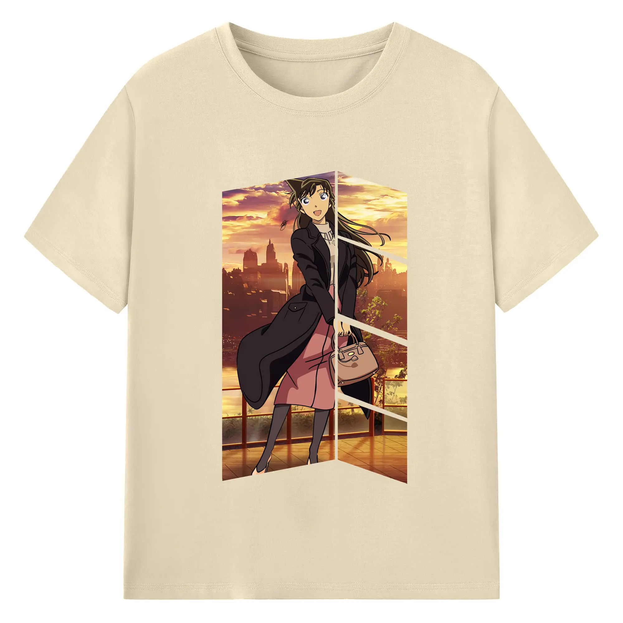 名探偵コナン グッズ 毛利 蘭 - 綿100% 半袖Tシャツ ・ バックプリント ・ 快適 通気性 ・ 日常使い 散歩 スポーツ用