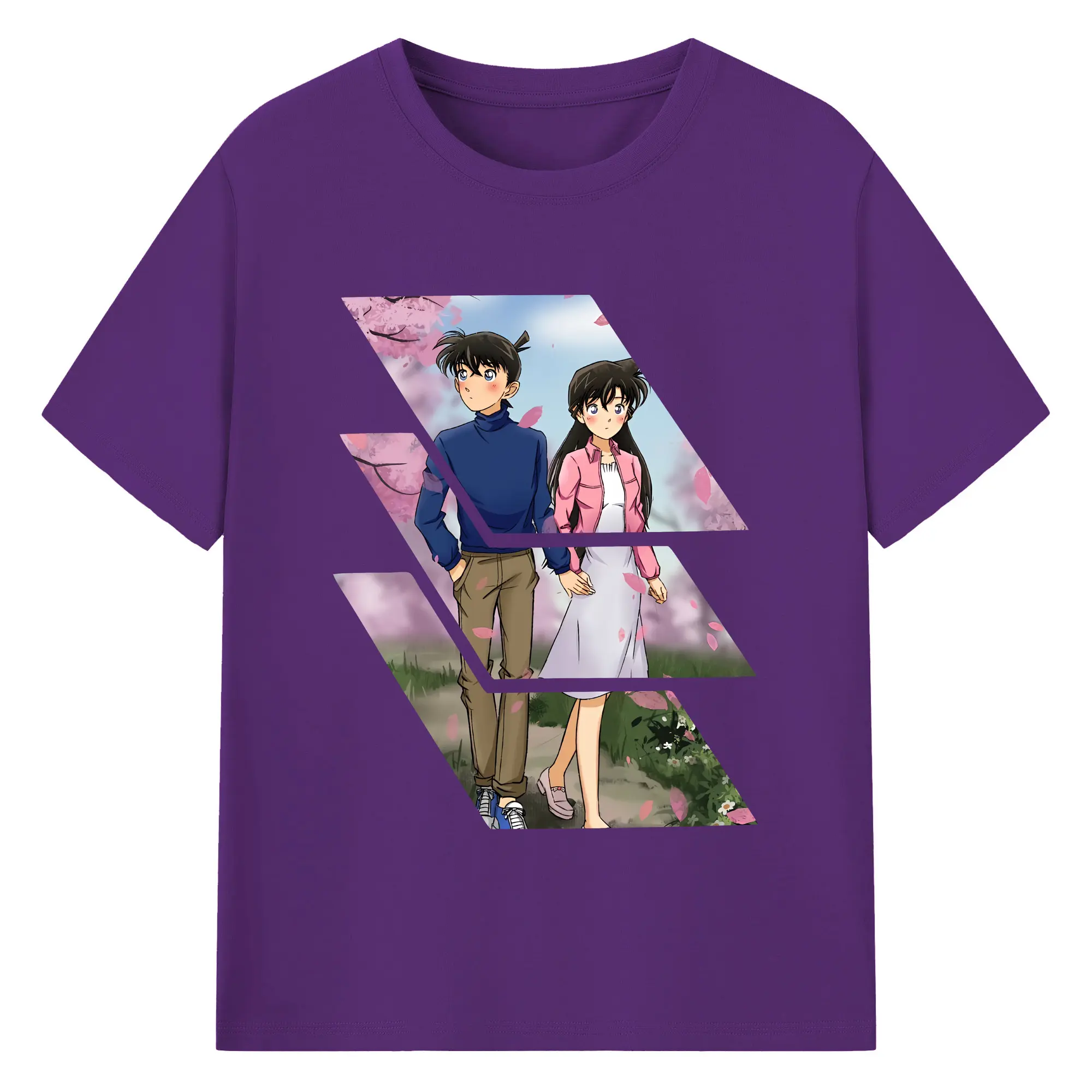 名探偵コナン グッズ 毛利 蘭 - 綿100% 半袖Tシャツ ・ バックプリント ・ 快適 通気性 ・ 日常使い 散歩 スポーツ用
