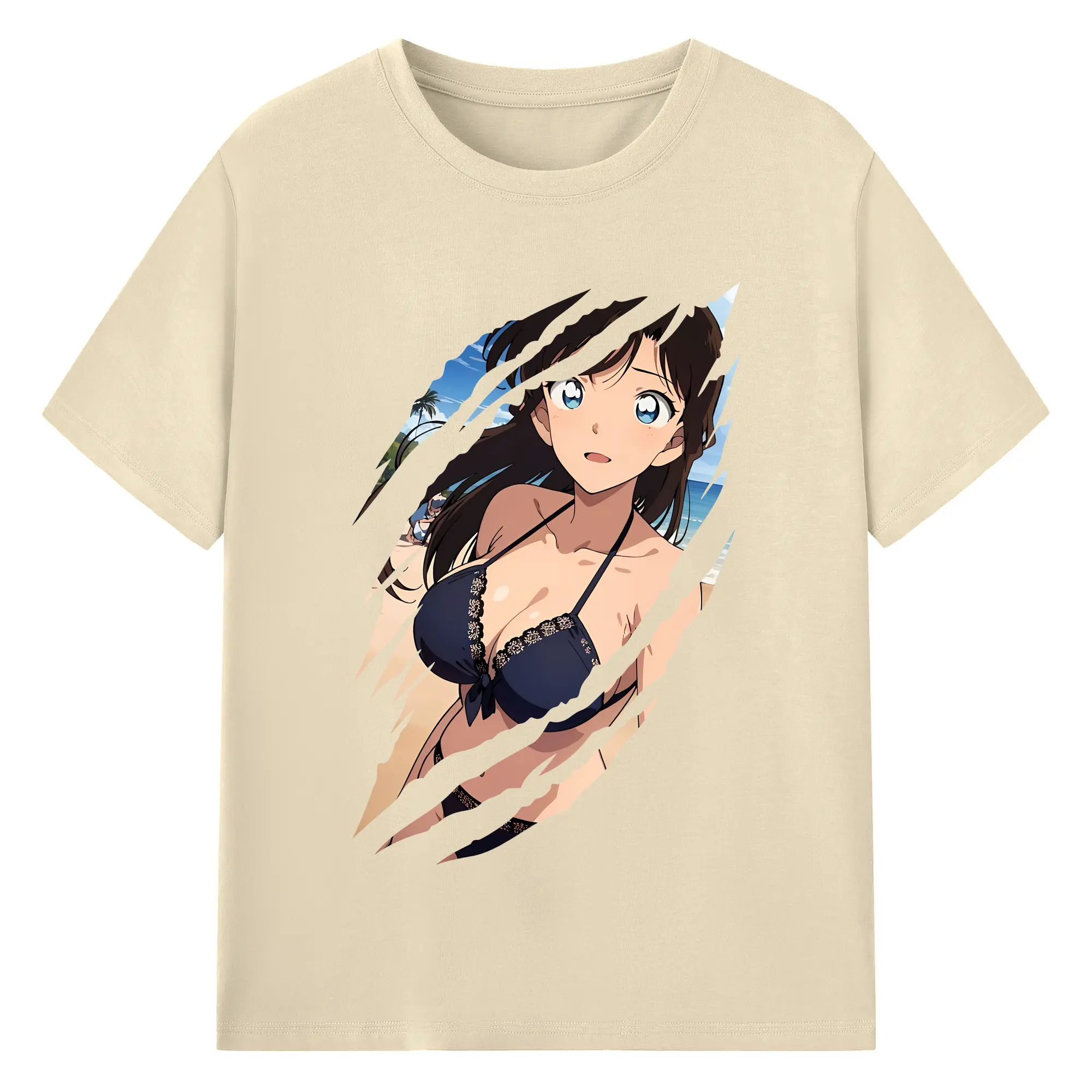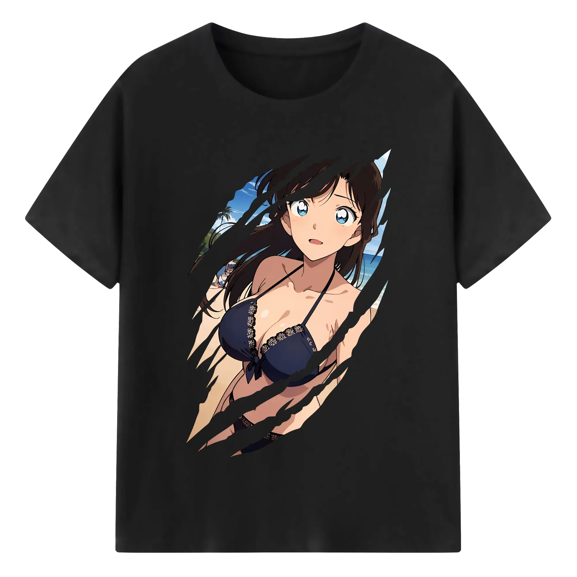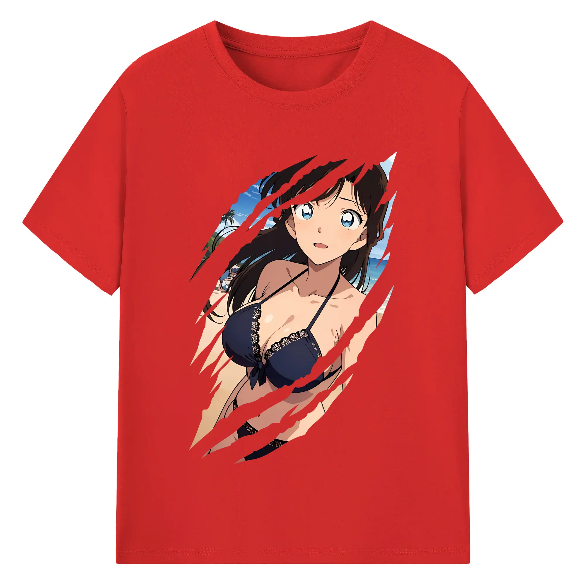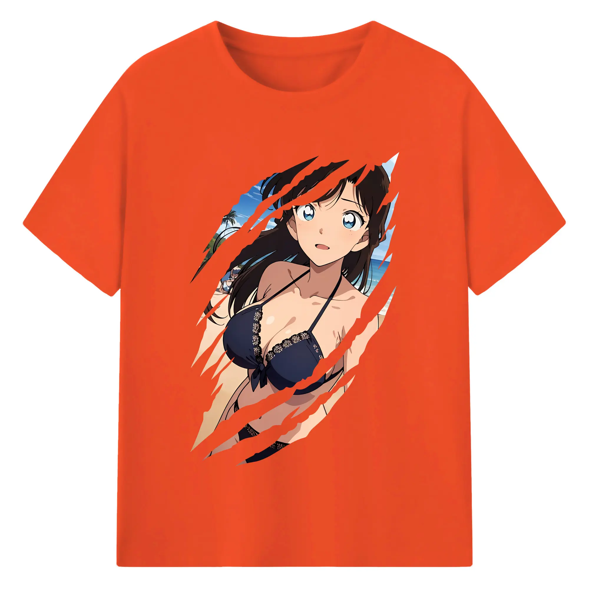 名探偵コナン グッズ 毛利 蘭 - 綿100% 半袖Tシャツ ・ バックプリント ・ 快適 通気性 ・ 日常使い 散歩 スポーツ用