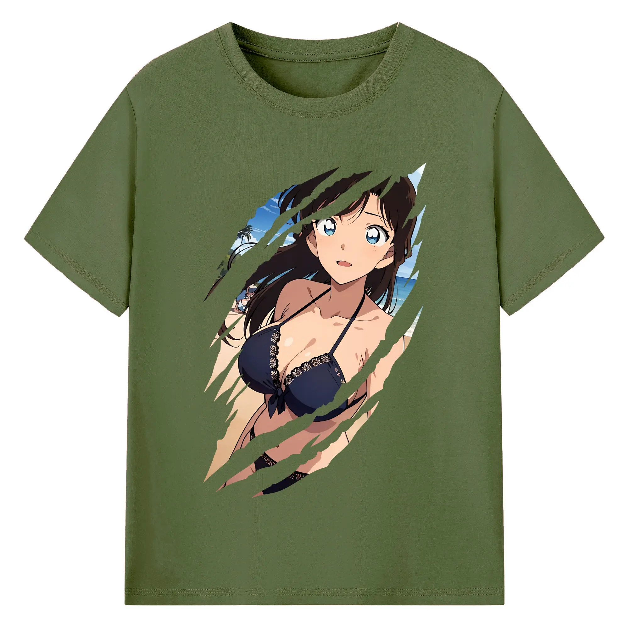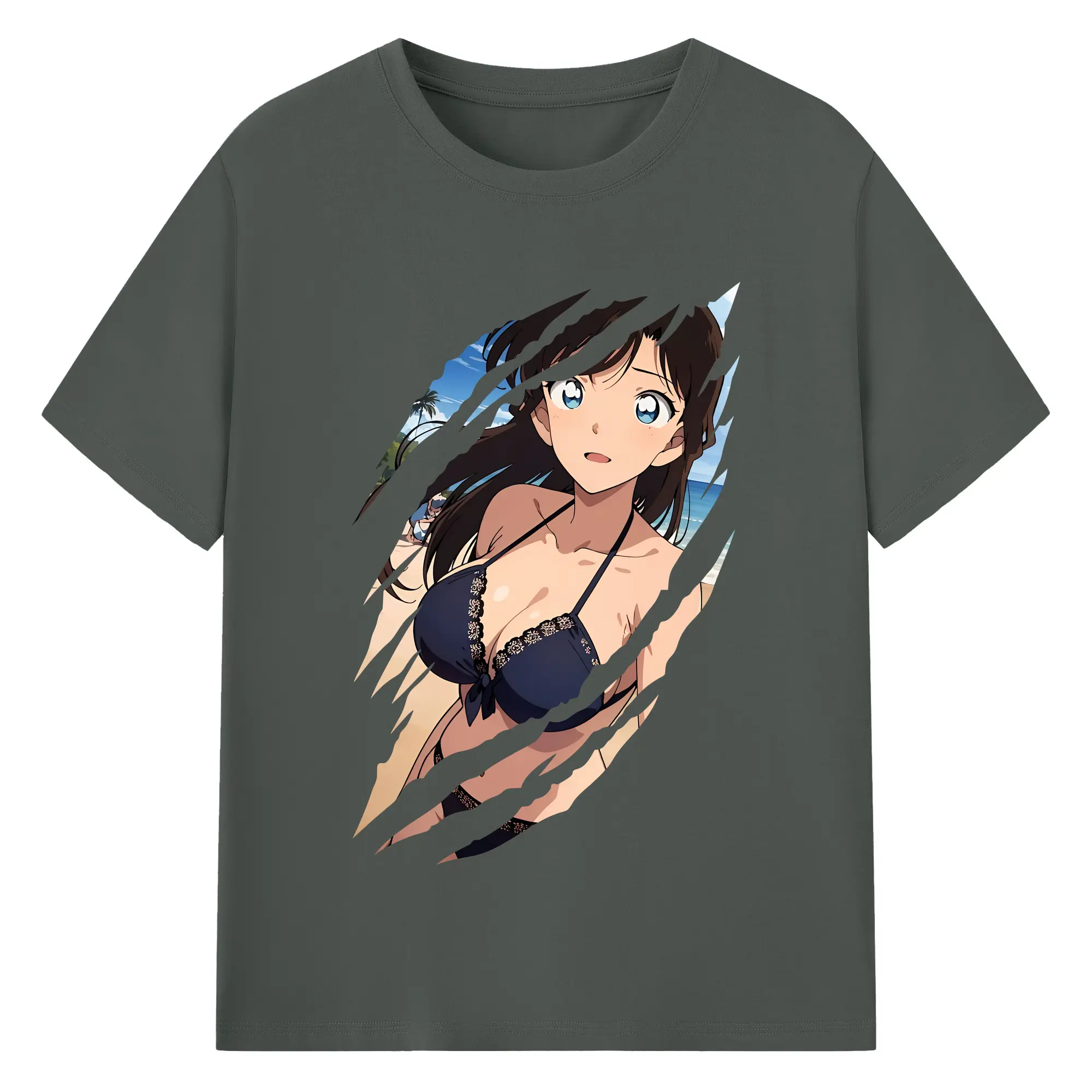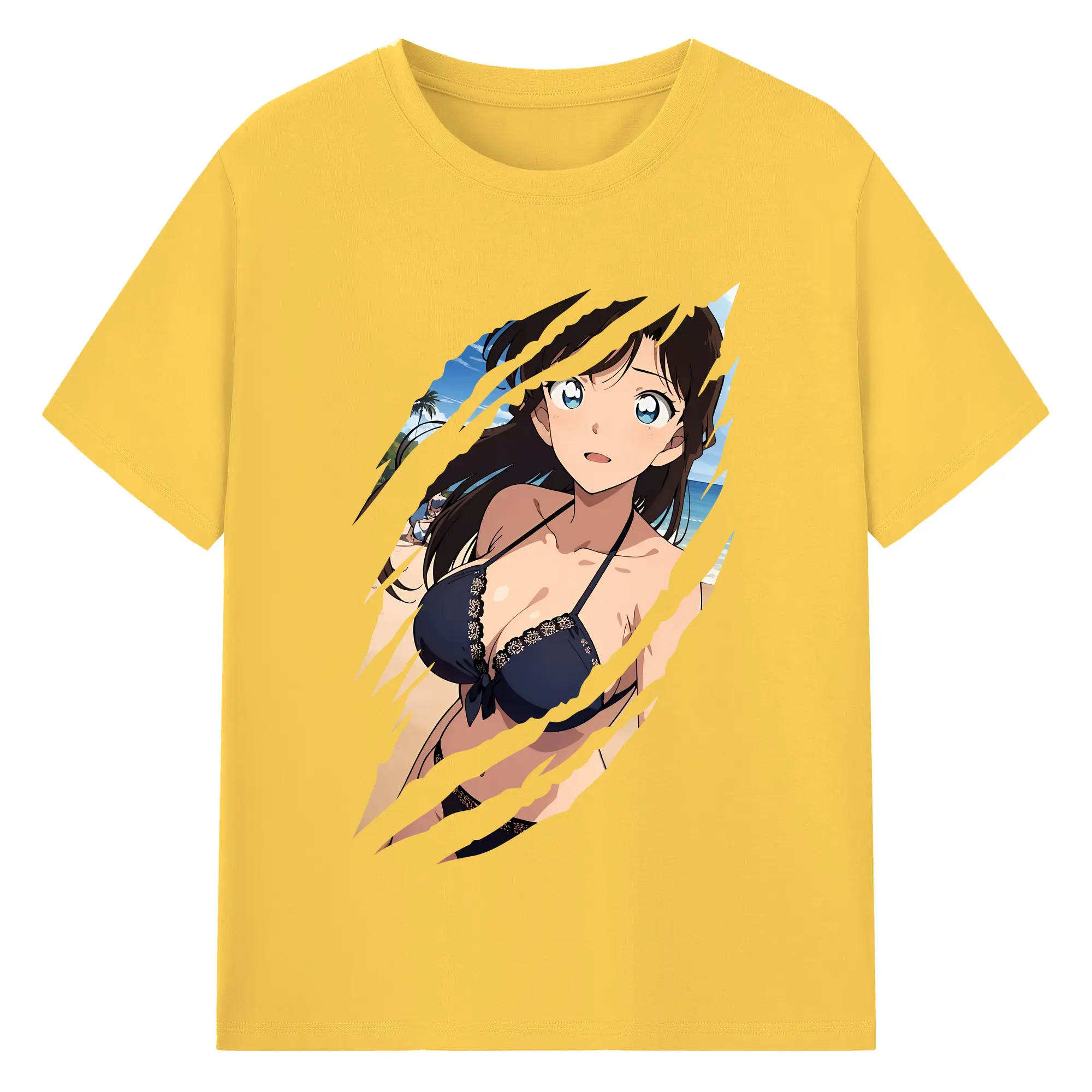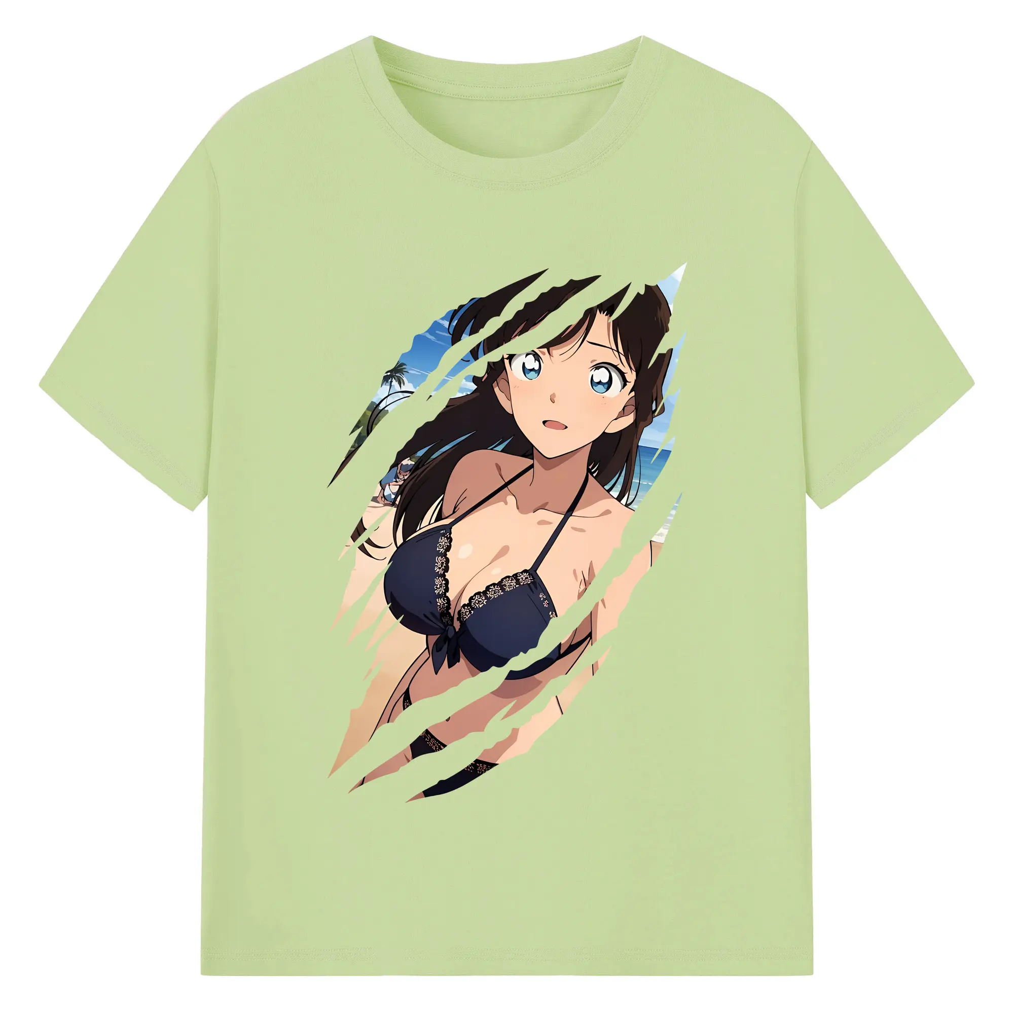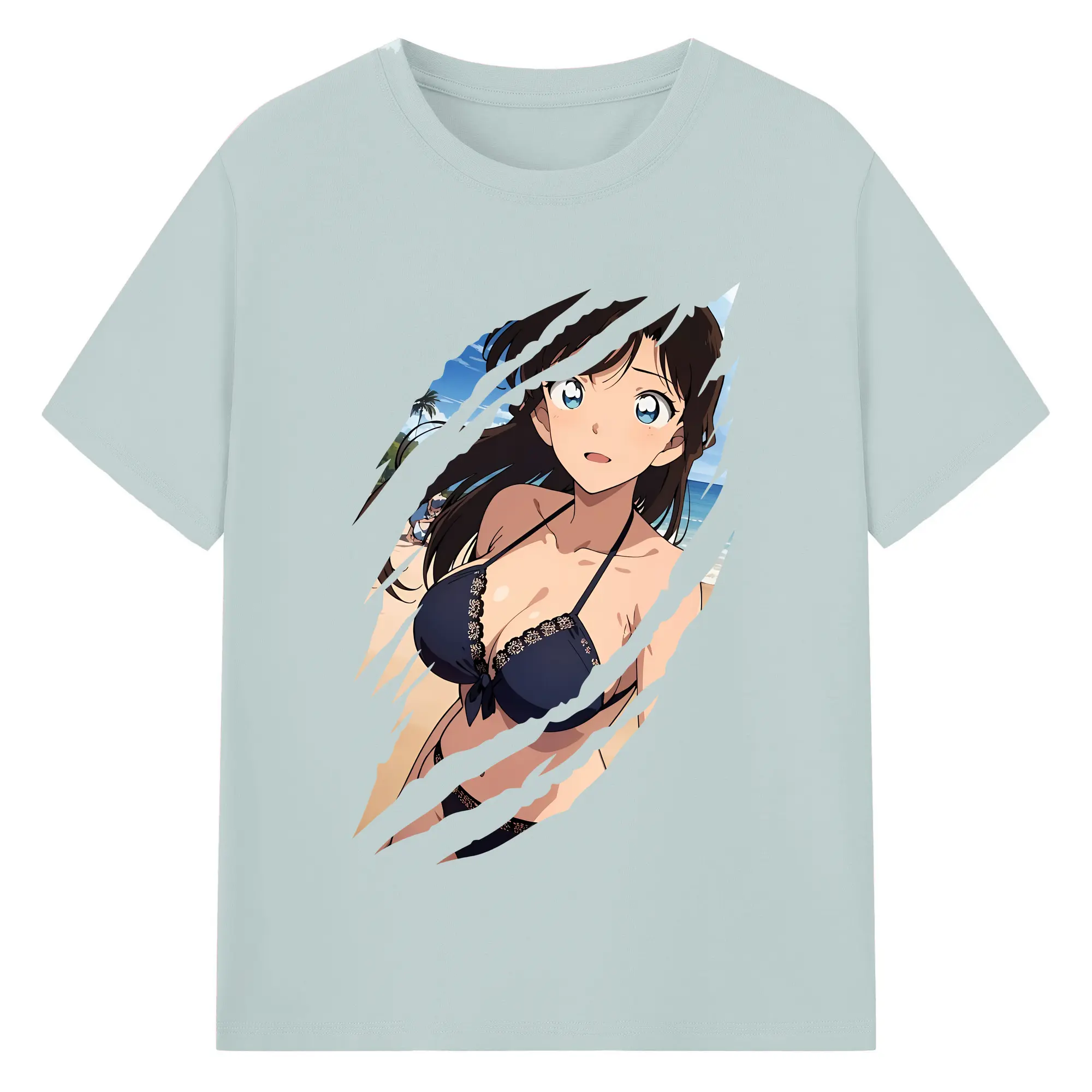 名探偵コナン グッズ 毛利 蘭 - 綿100% 半袖Tシャツ ・ バックプリント ・ 快適 通気性 ・ 日常使い 散歩 スポーツ用