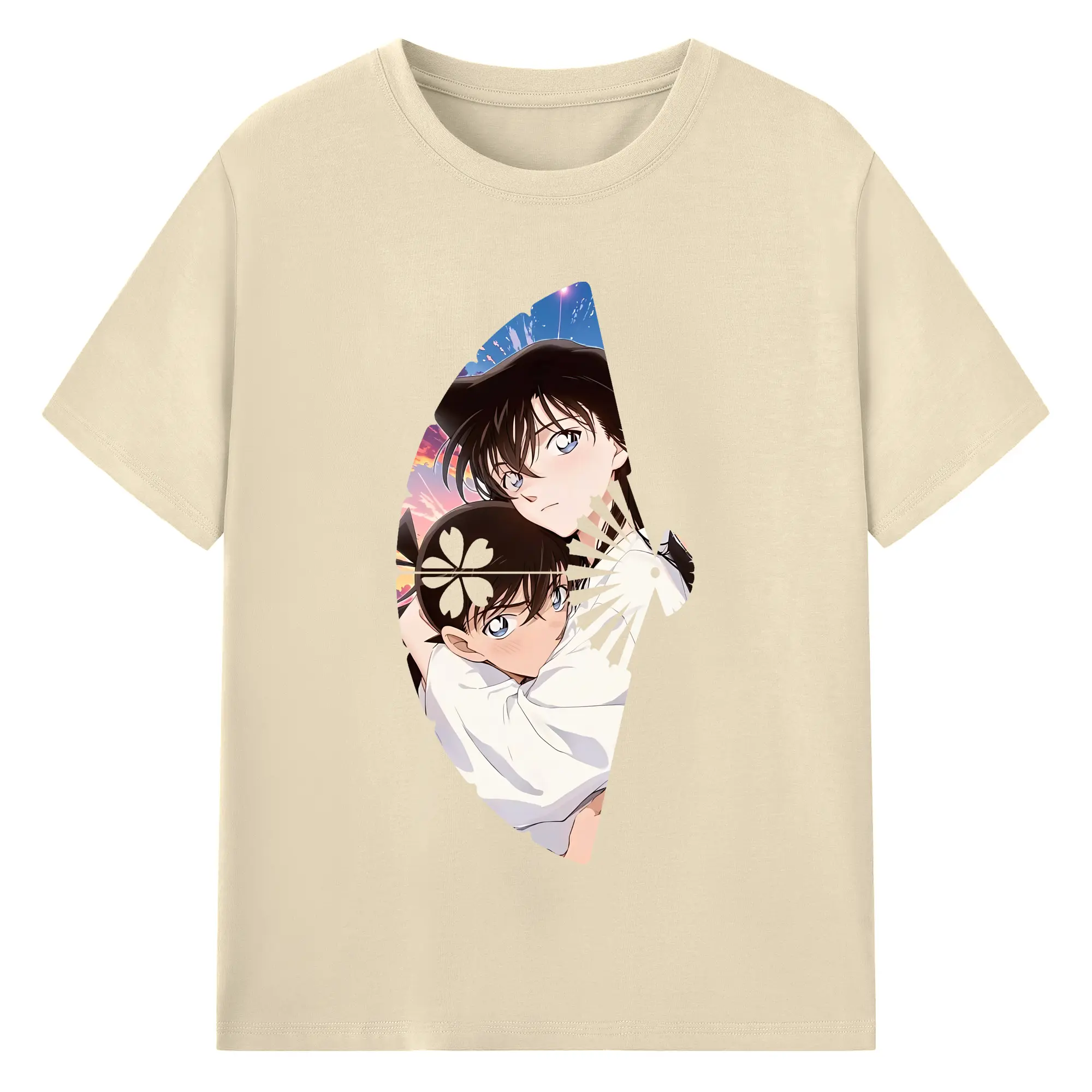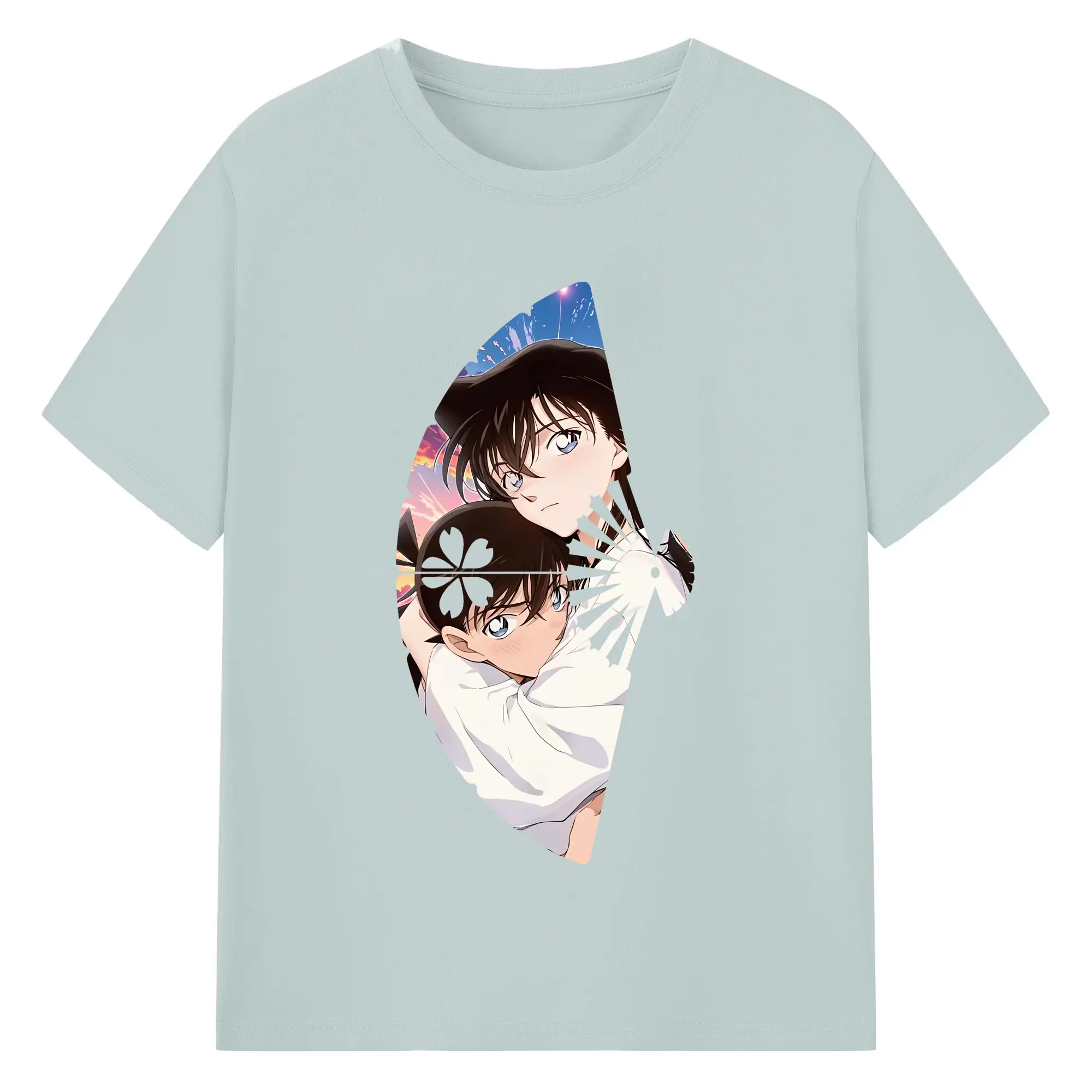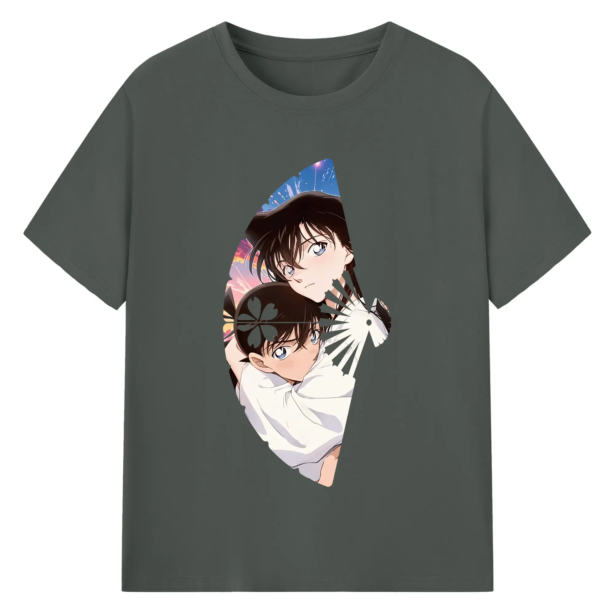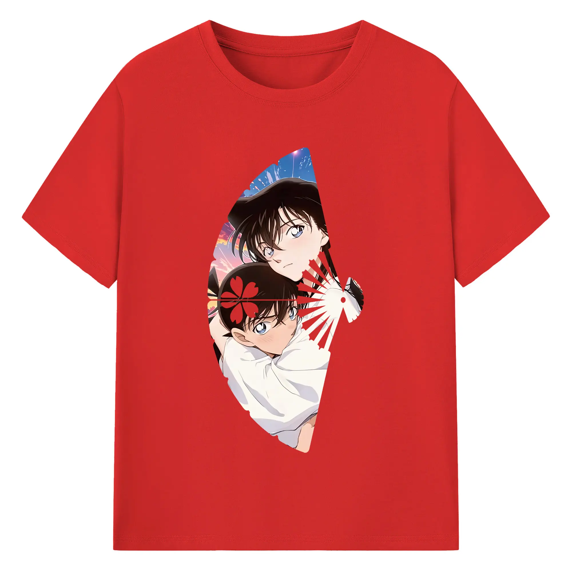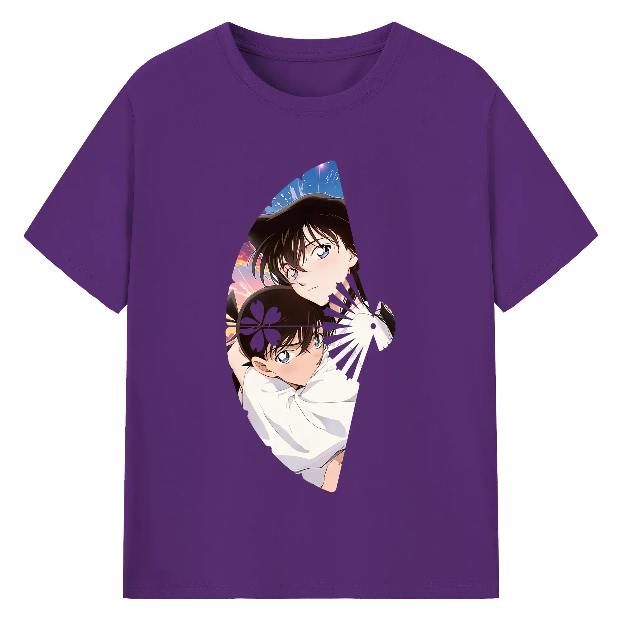 名探偵コナン グッズ 毛利 蘭 - 綿100% 半袖Tシャツ ・ バックプリント ・ 快適 通気性 ・ 日常使い 散歩 スポーツ用