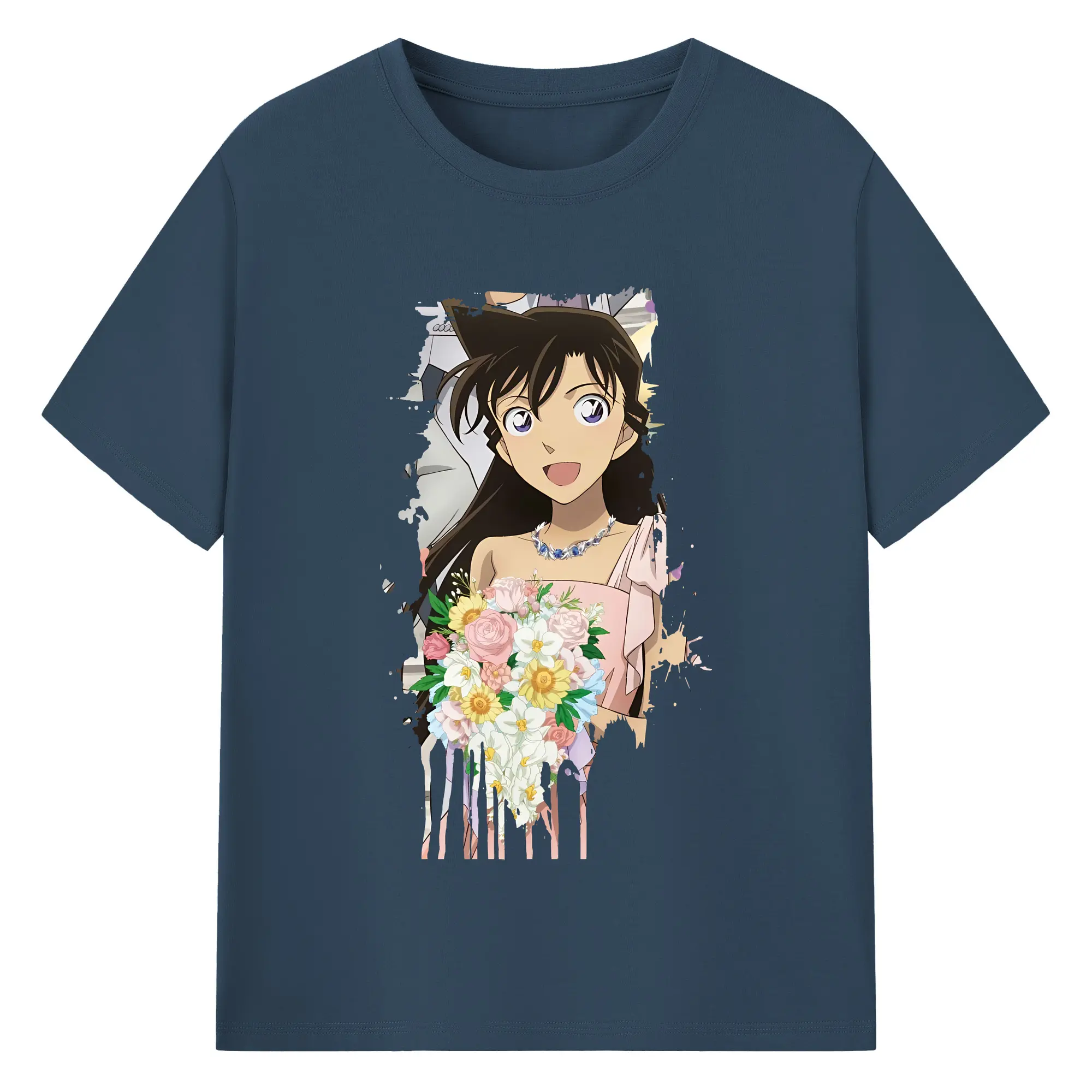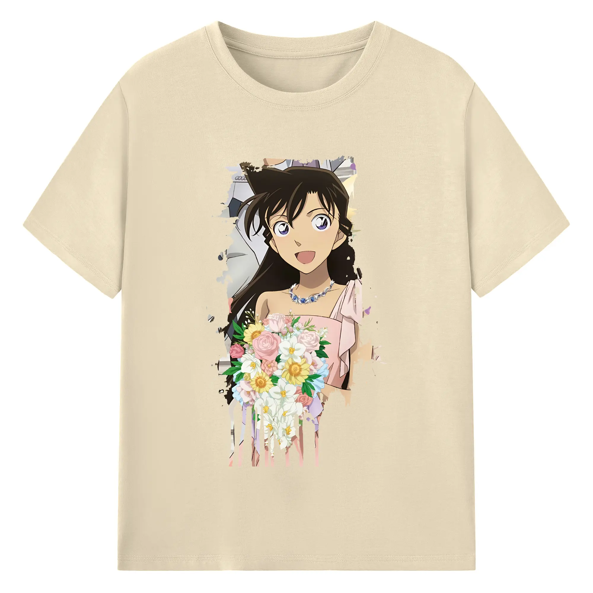名探偵コナン グッズ 毛利 蘭 - 綿100% ヴィンテージ風 半袖Tシャツ ・ フロントプリント ・ 柔らか肌触り ・ 通気性 快適 ・ スポーツ カジュアル 外出用