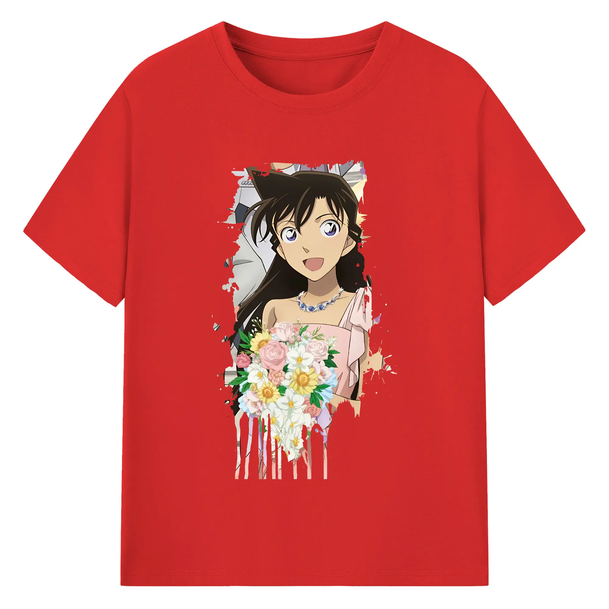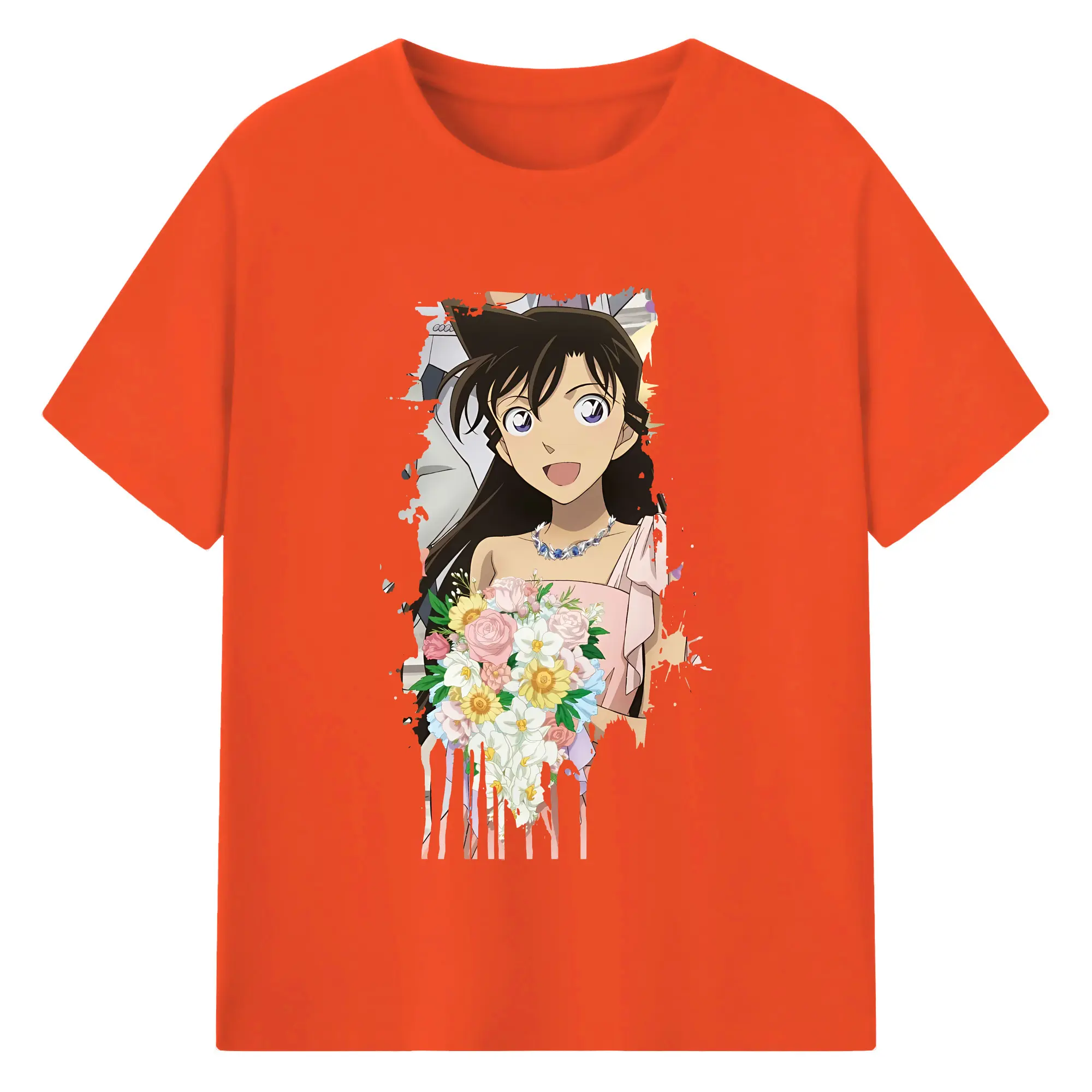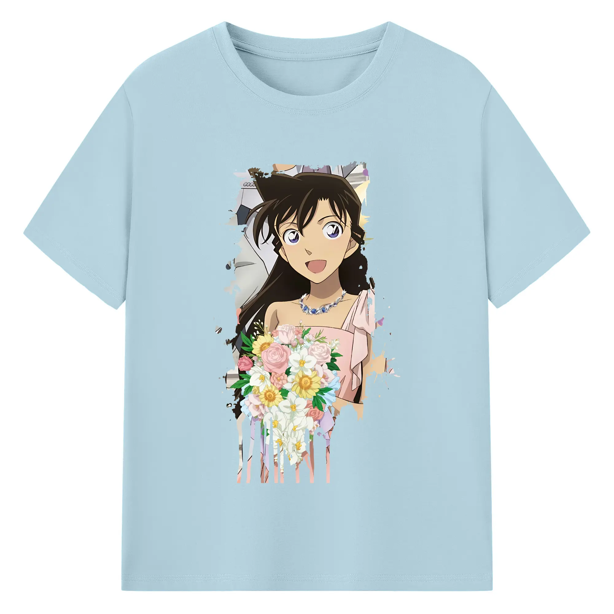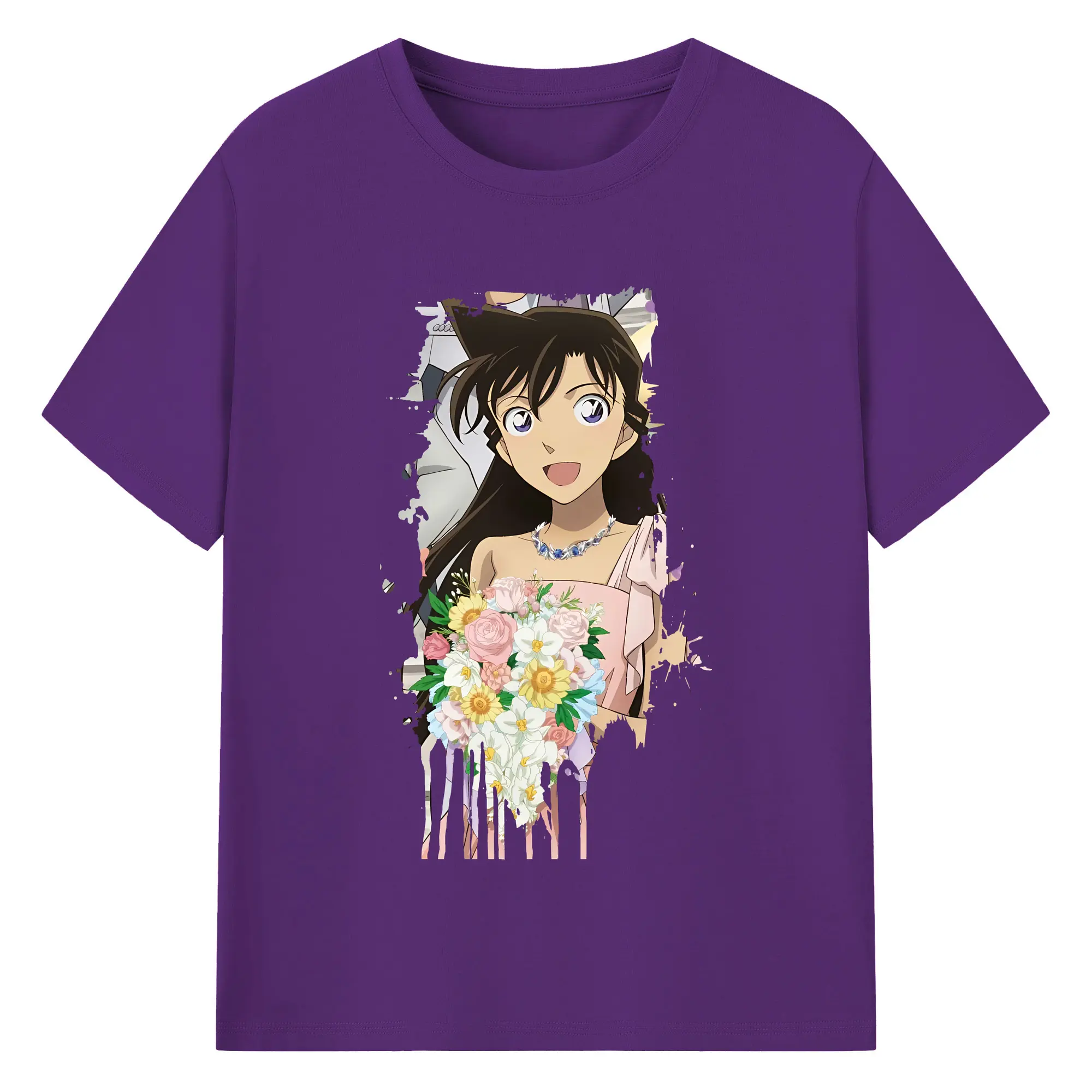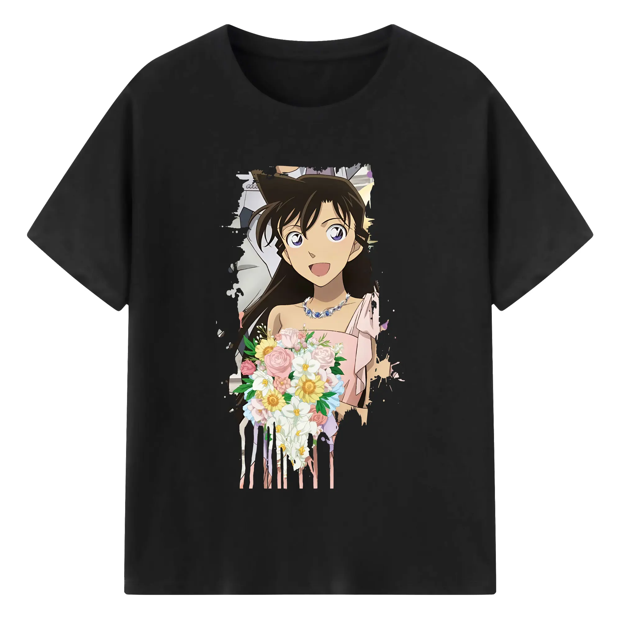 名探偵コナン グッズ 毛利 蘭 - 綿100% 半袖Tシャツ ・ バックプリント ・ 快適 通気性 ・ 日常使い 散歩 スポーツ用