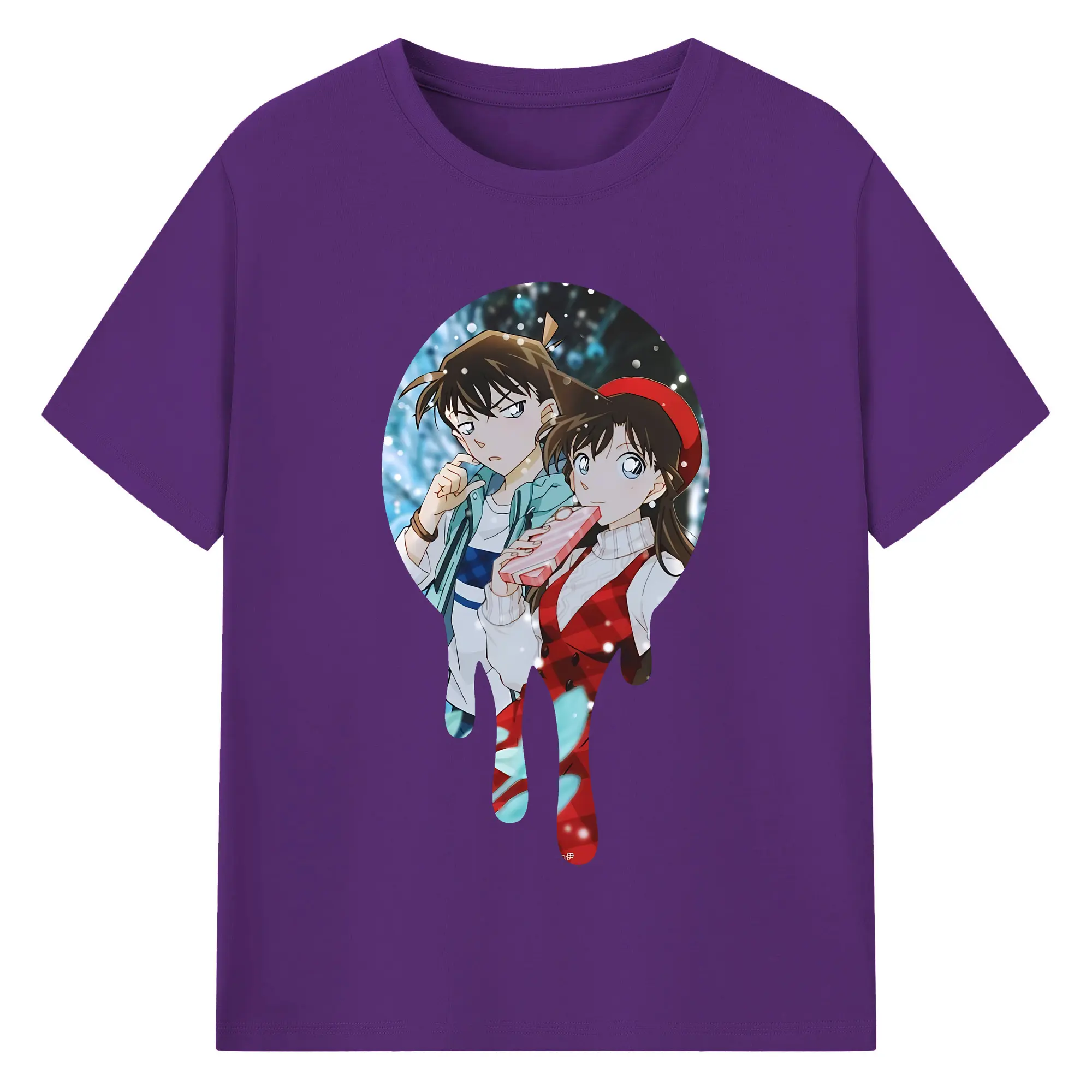 名探偵コナン グッズ 毛利 蘭 - 綿100% 半袖Tシャツ ・ バックプリント ・ 快適 通気性 ・ 日常使い 散歩 スポーツ用
