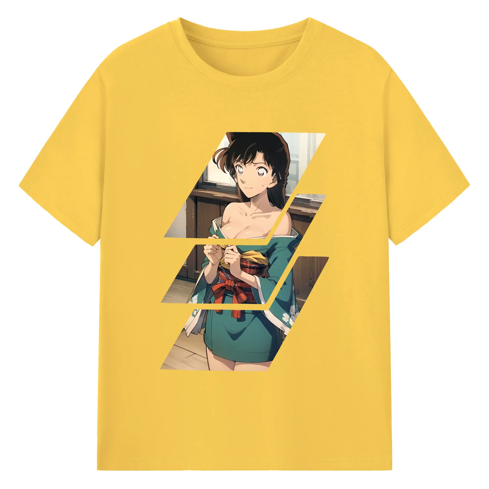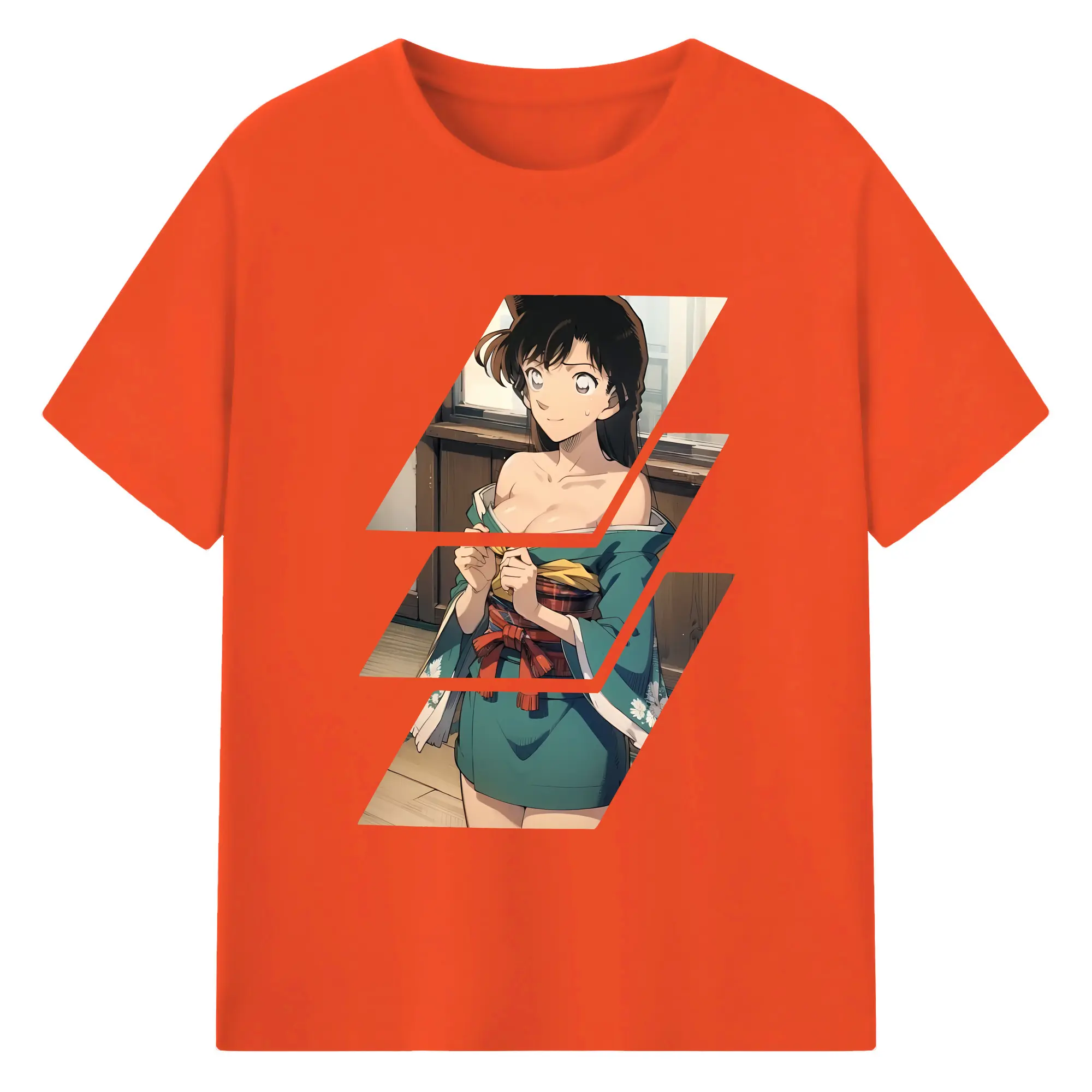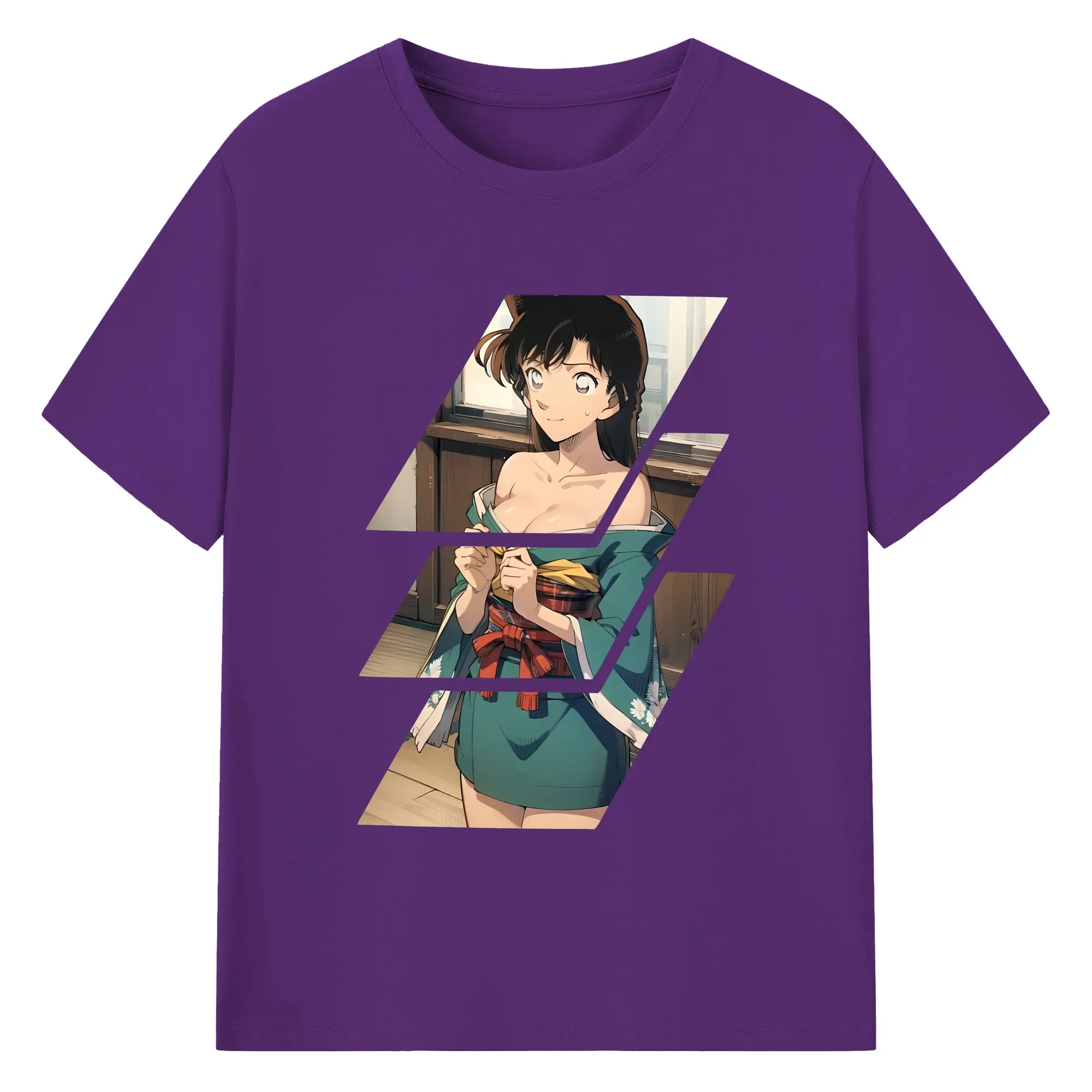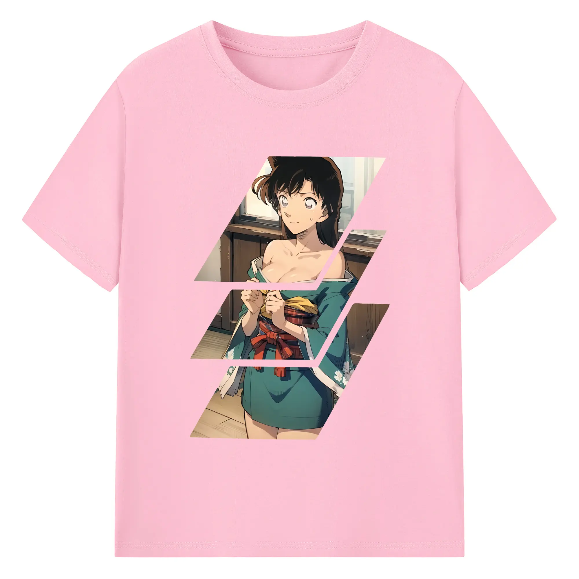 名探偵コナン グッズ 毛利 蘭 - 綿100% 半袖Tシャツ ・ バックプリント ・ 快適 通気性 ・ 日常使い 散歩 スポーツ用