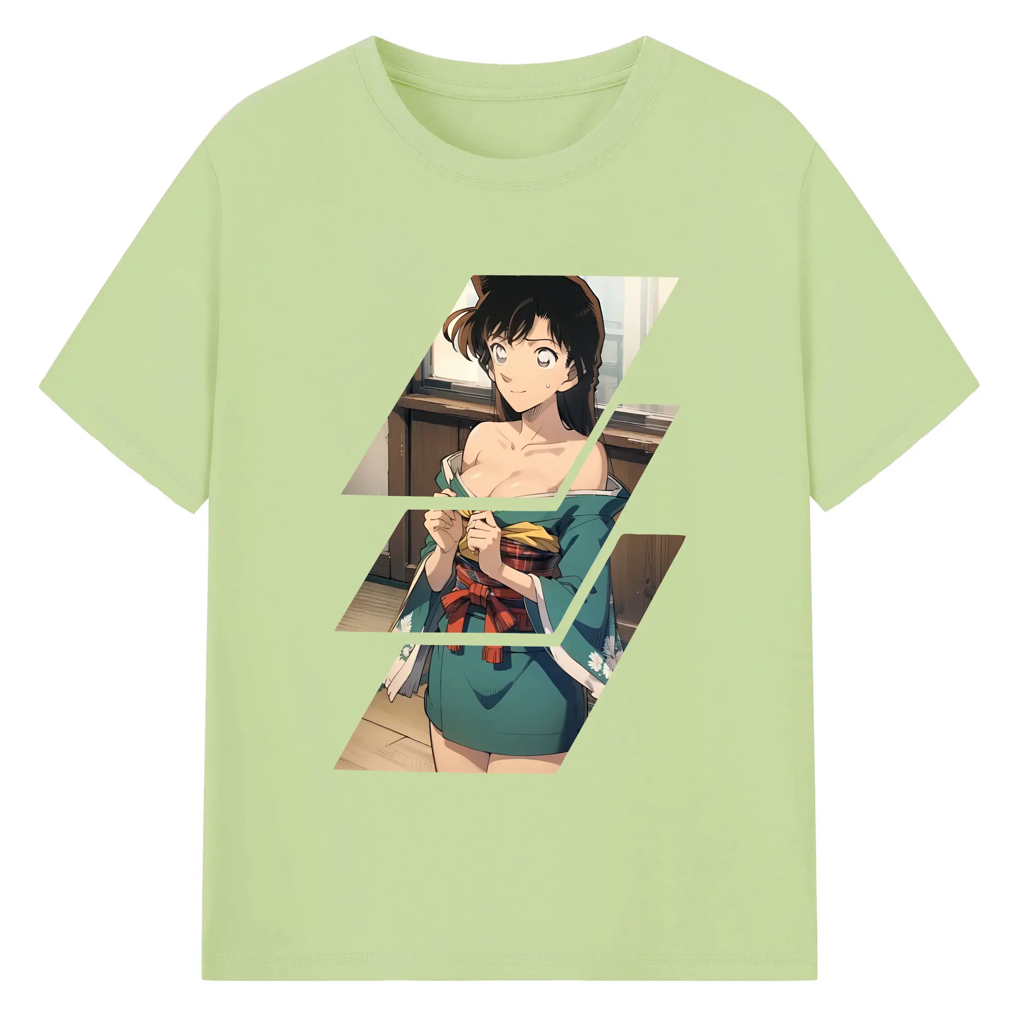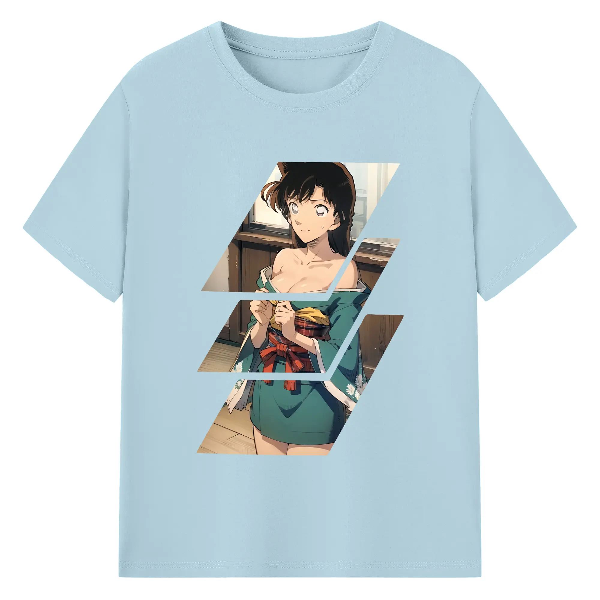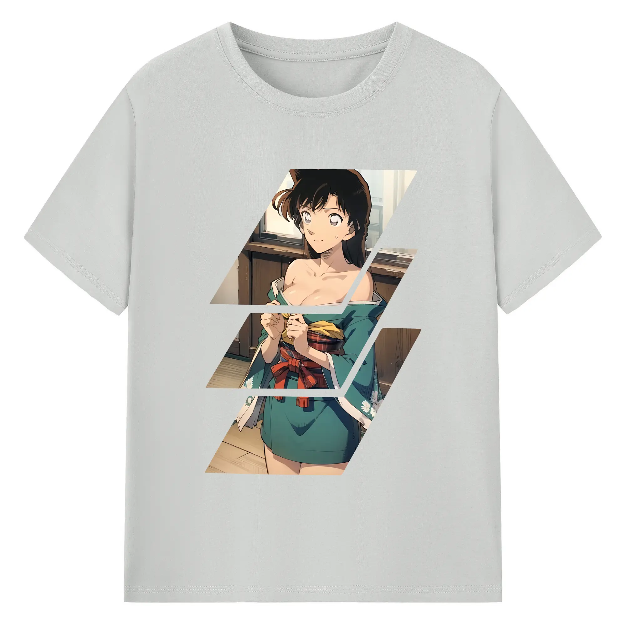 名探偵コナン グッズ 毛利 蘭 - 綿100% 半袖Tシャツ ・ バックプリント ・ 快適 通気性 ・ 日常使い 散歩 スポーツ用