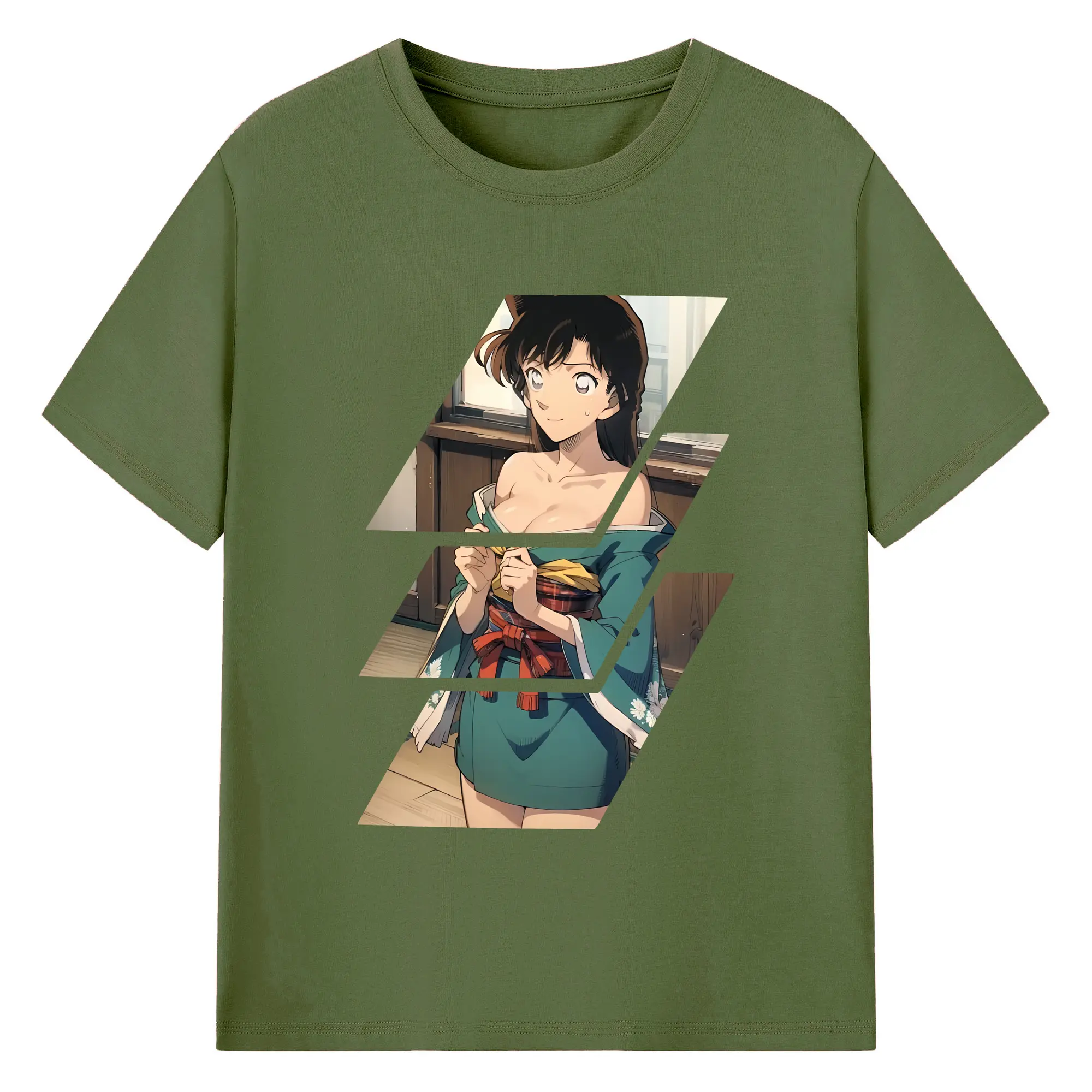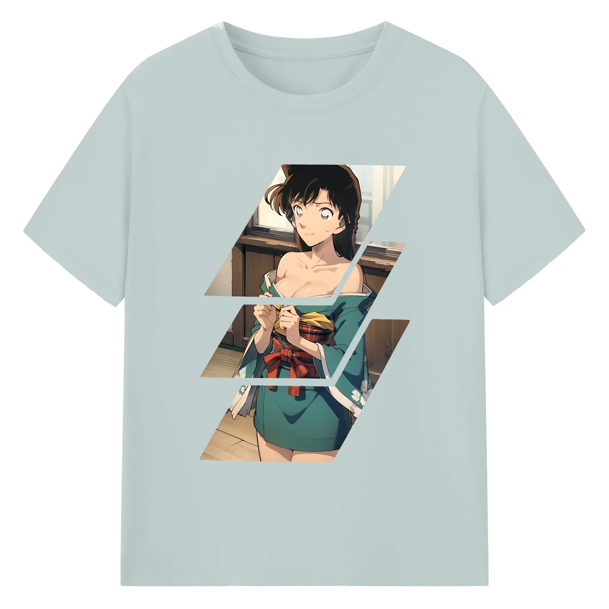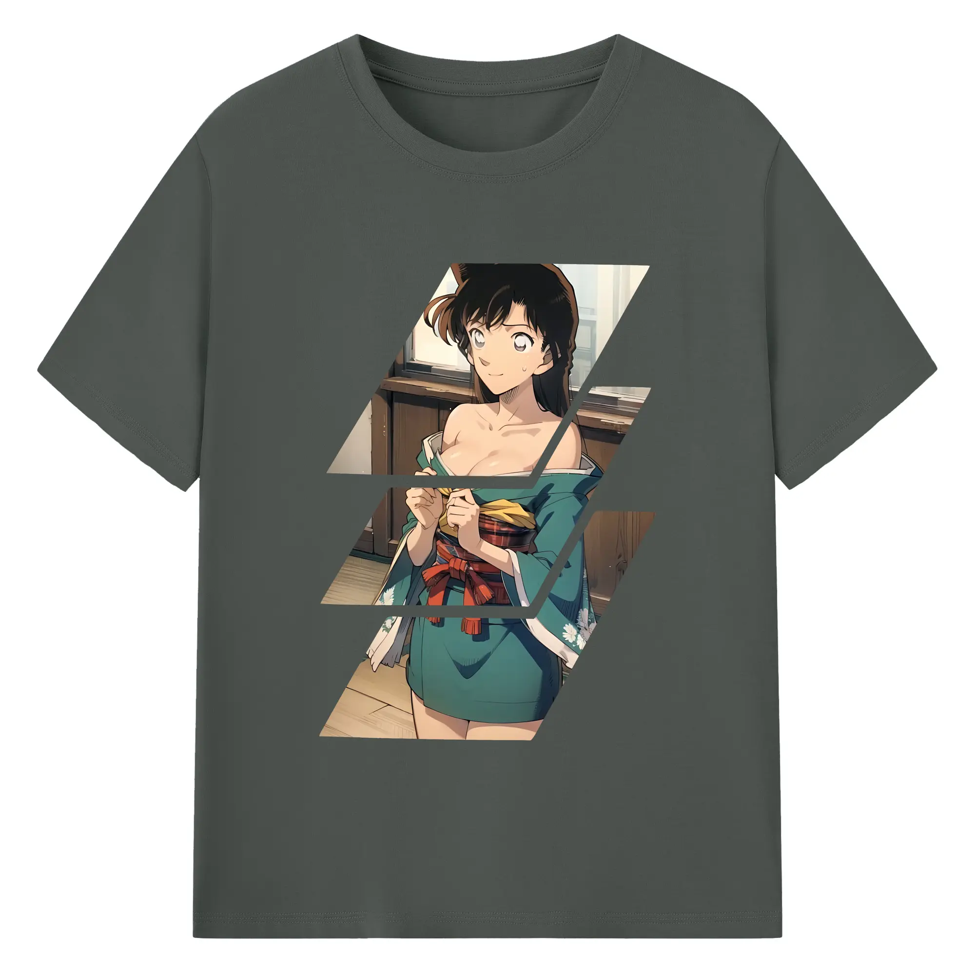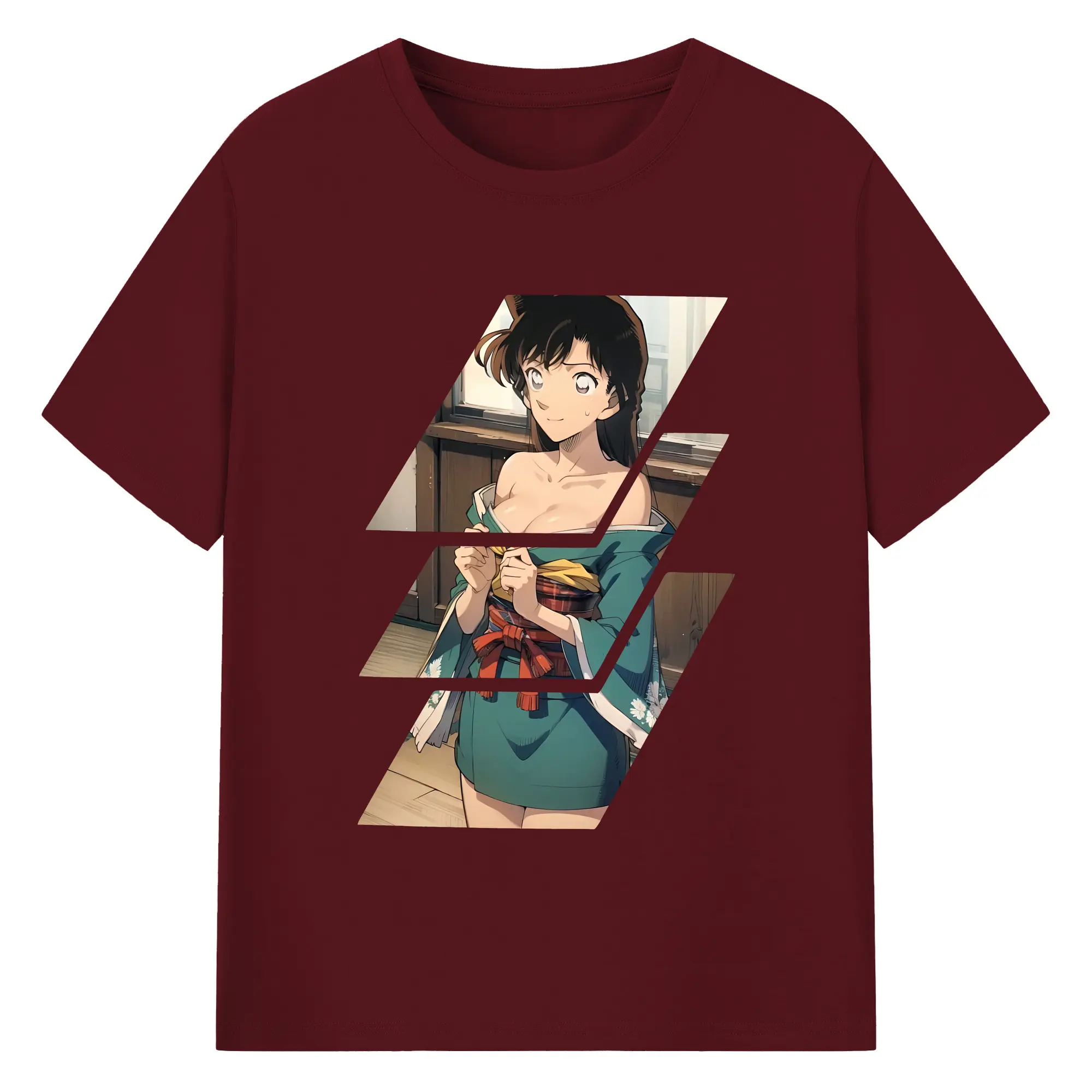 名探偵コナン グッズ 毛利 蘭 - 綿100% 半袖Tシャツ ・ バックプリント ・ 快適 通気性 ・ 日常使い 散歩 スポーツ用