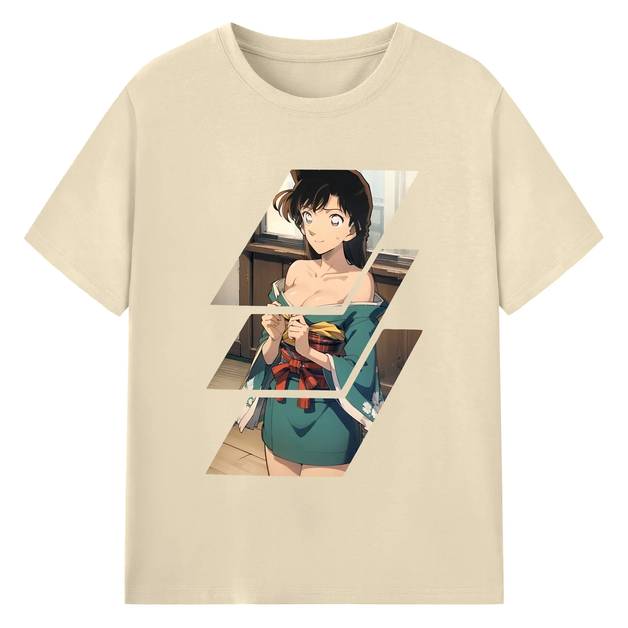 名探偵コナン グッズ 毛利 蘭 - 綿100% ヴィンテージ風 半袖Tシャツ ・ フロントプリント ・ 柔らか肌触り ・ 通気性 快適 ・ スポーツ カジュアル 外出用