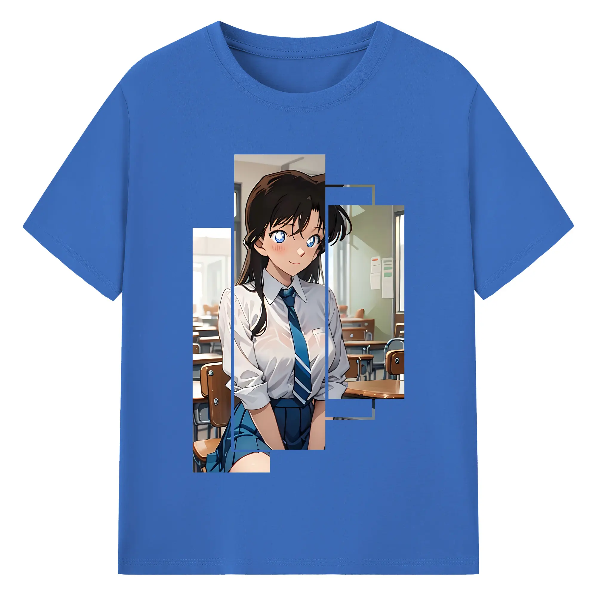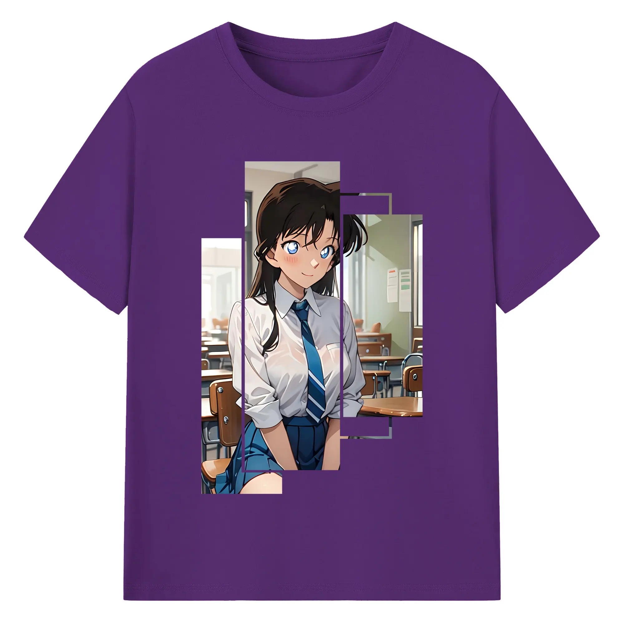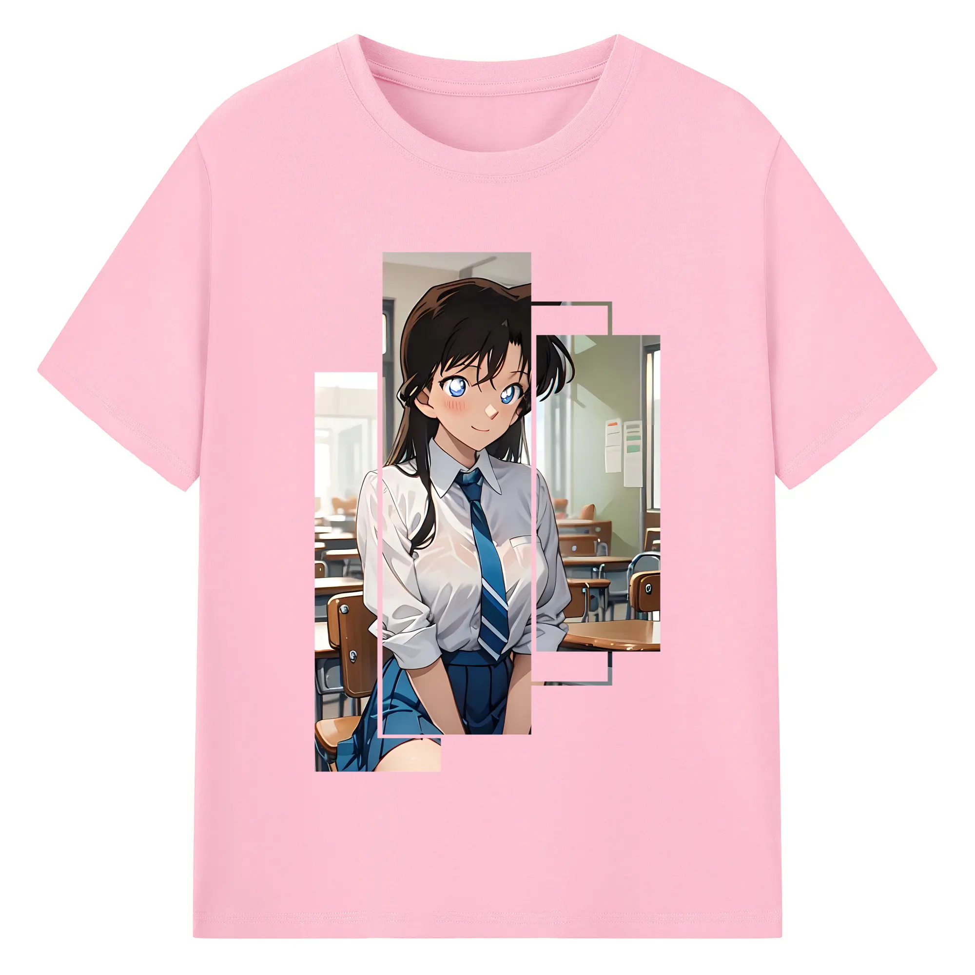 名探偵コナン グッズ 毛利 蘭 - 綿100% 半袖Tシャツ ・ バックプリント ・ 快適 通気性 ・ 日常使い 散歩 スポーツ用