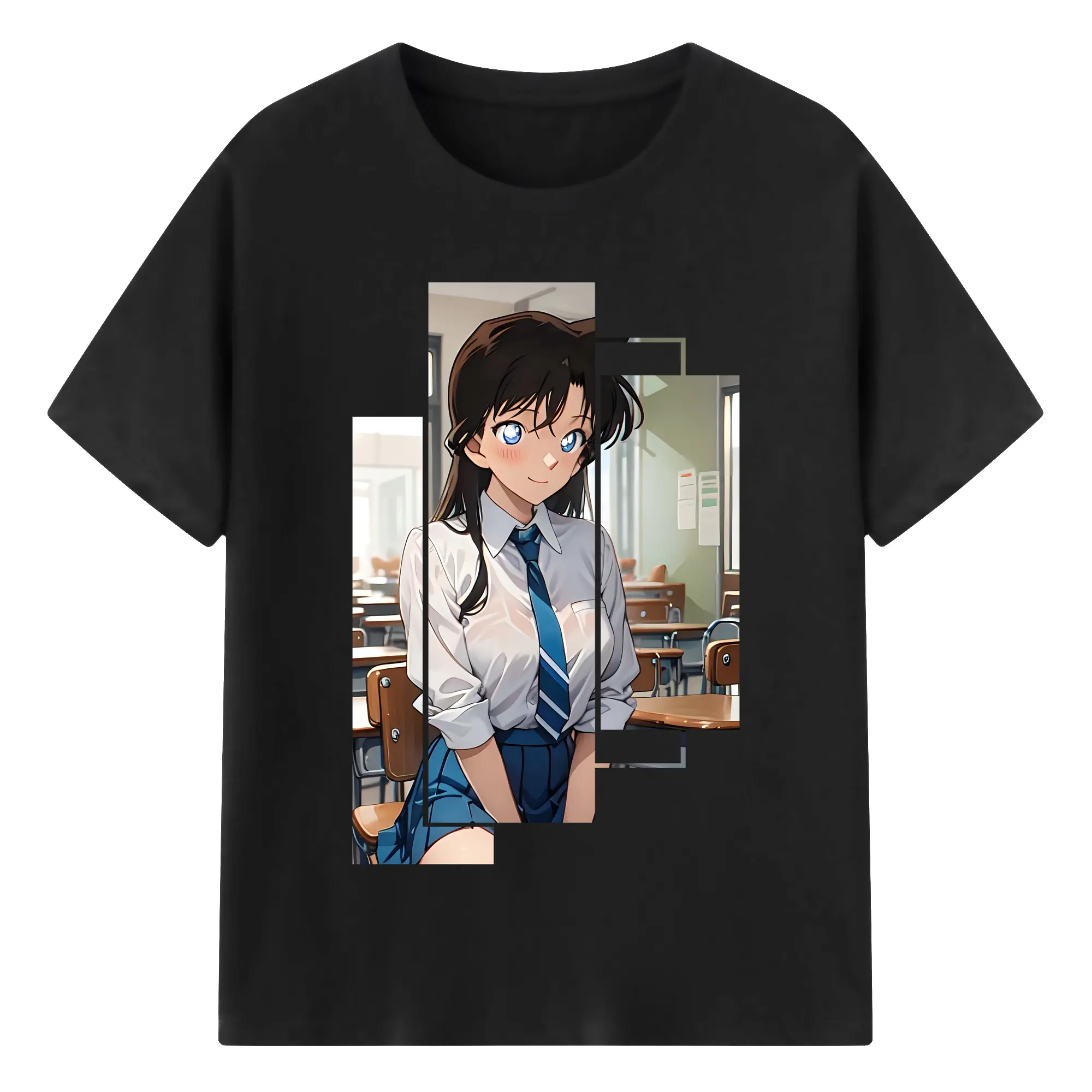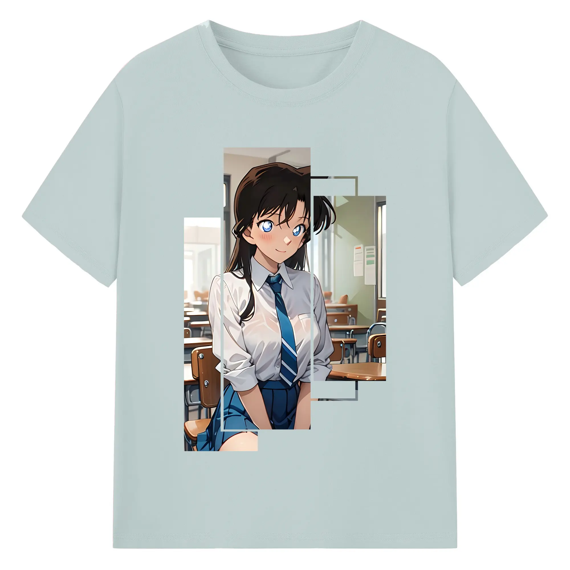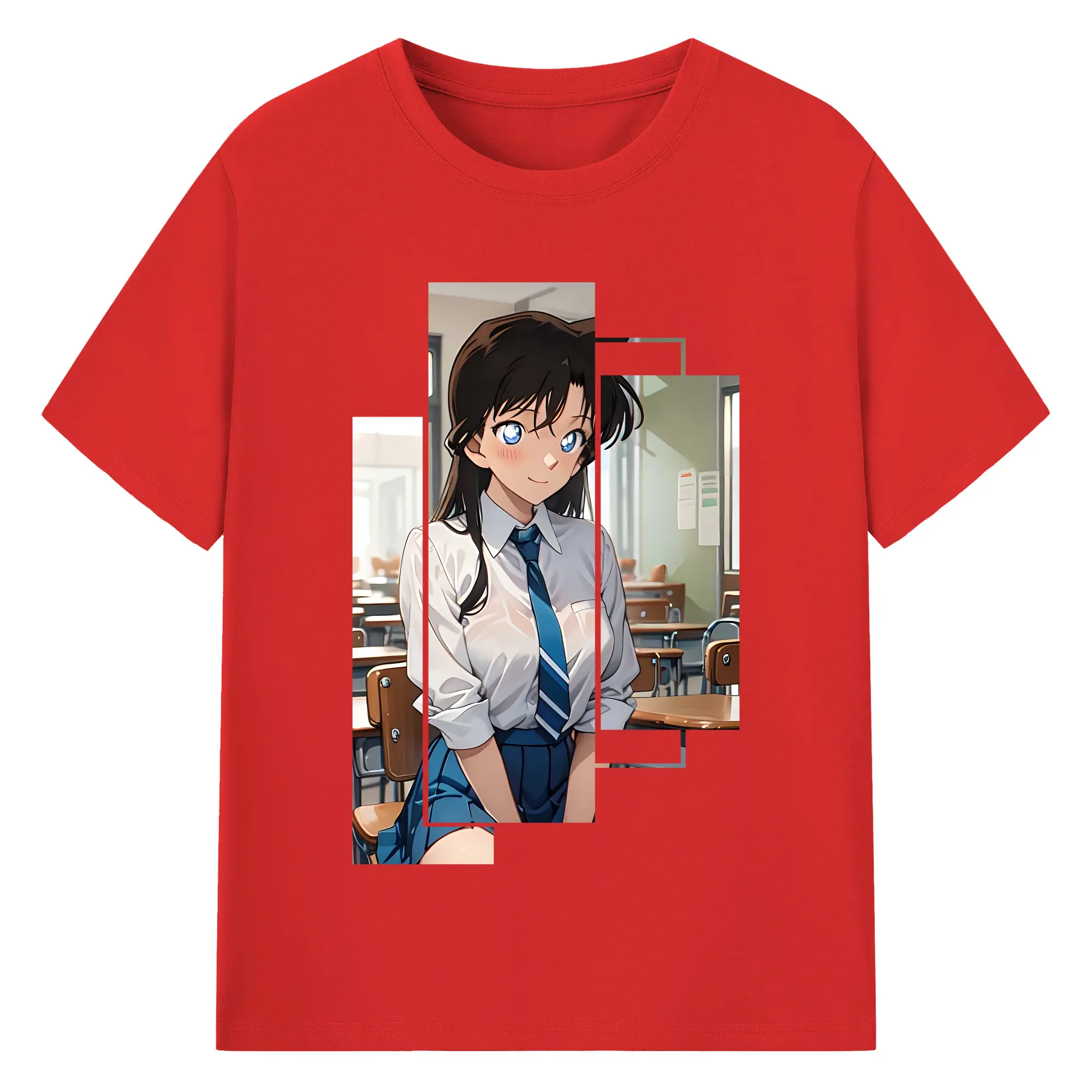 名探偵コナン グッズ 毛利 蘭 - 綿100% 半袖Tシャツ ・ バックプリント ・ 快適 通気性 ・ 日常使い 散歩 スポーツ用