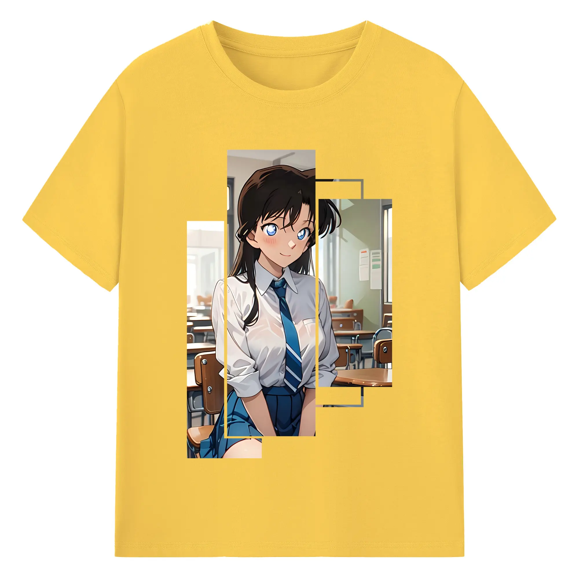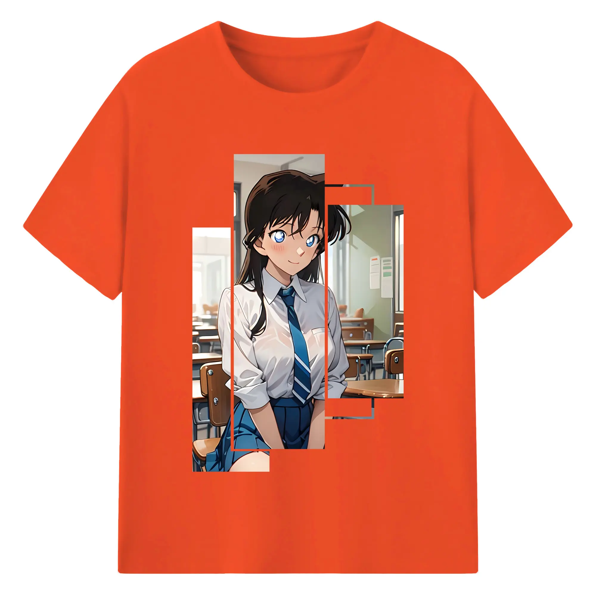 名探偵コナン グッズ 毛利 蘭 - 綿100% キッズTシャツ ・ フロントプリント ・ 快適 通気性 ・ スポーツ カジュアル 散歩用