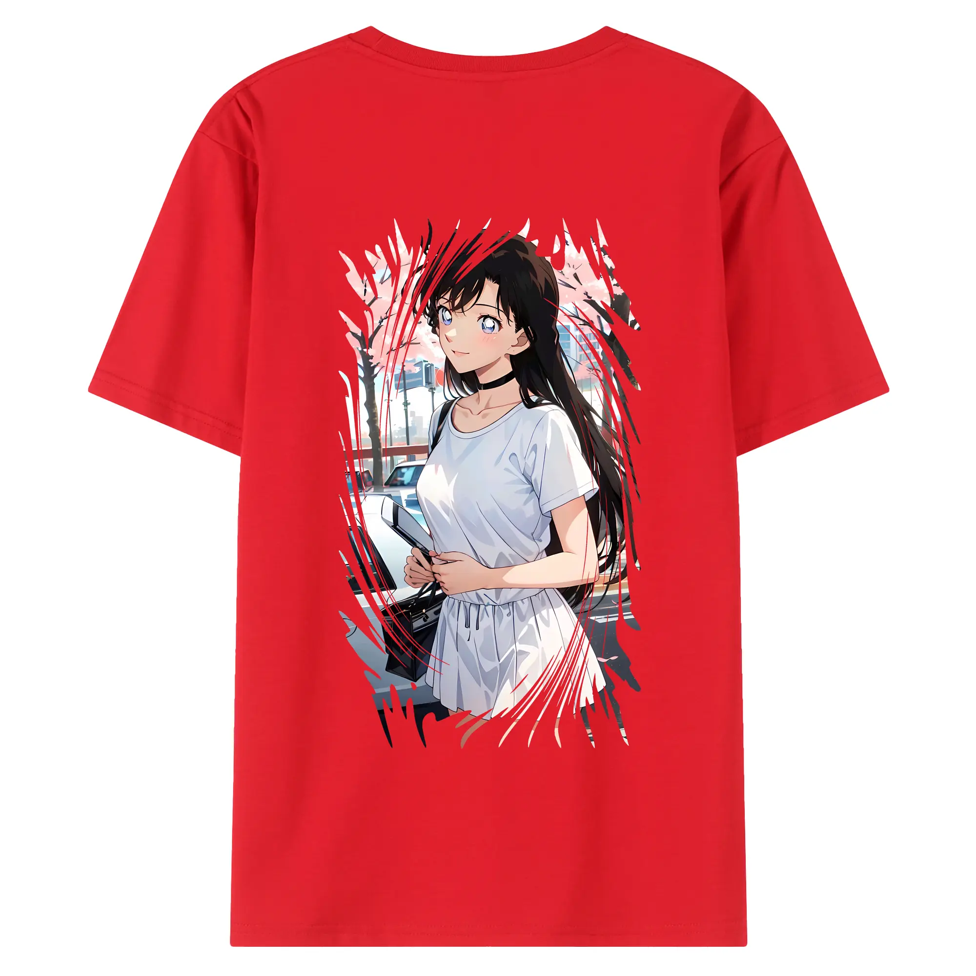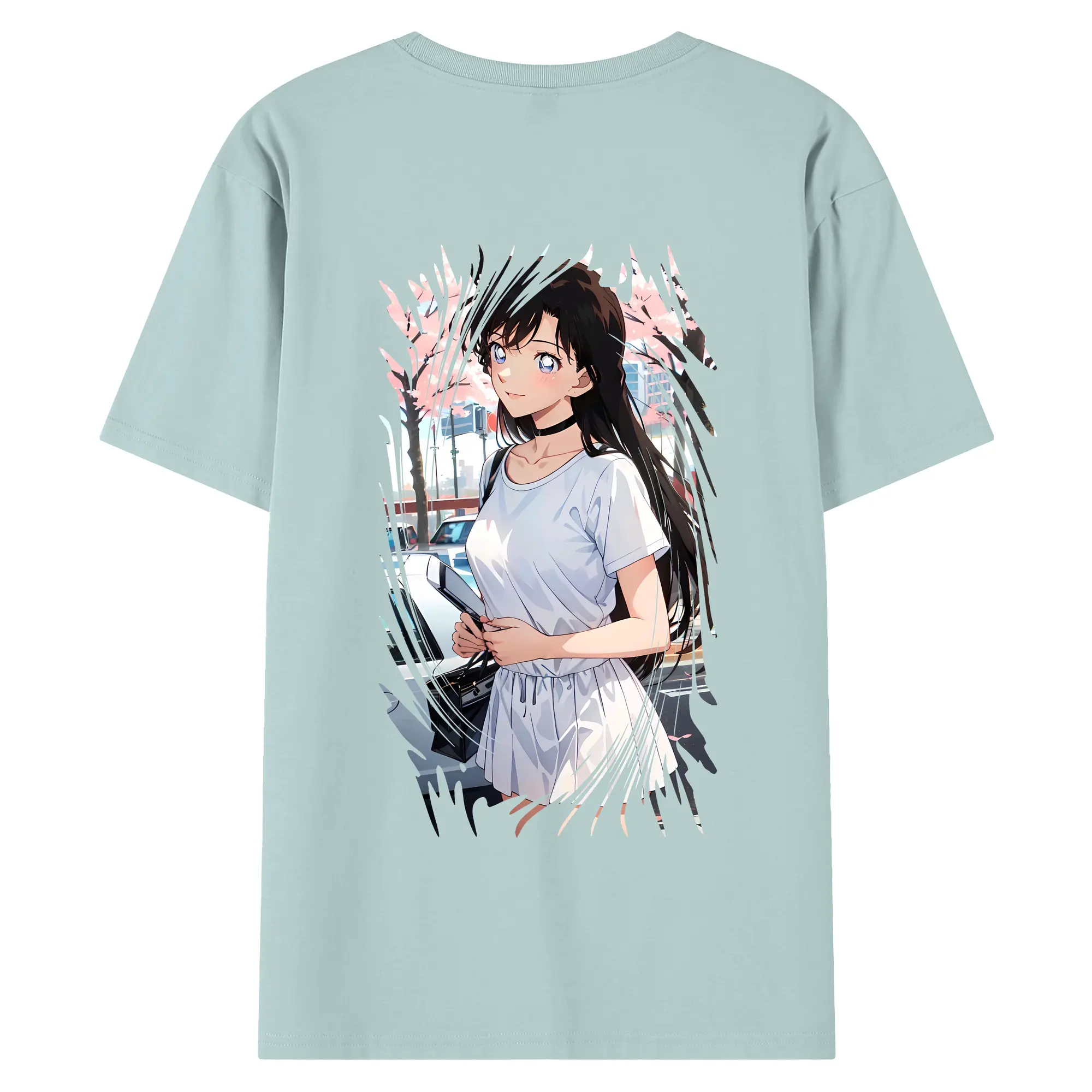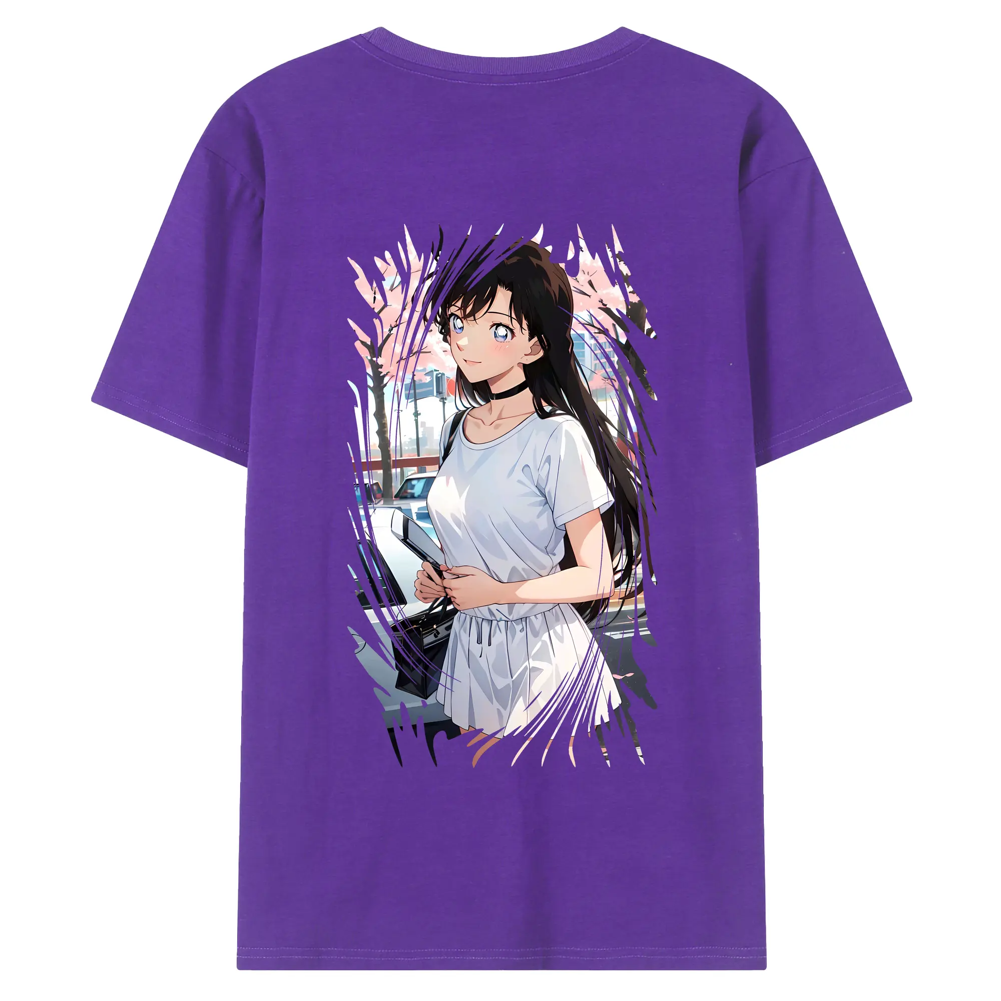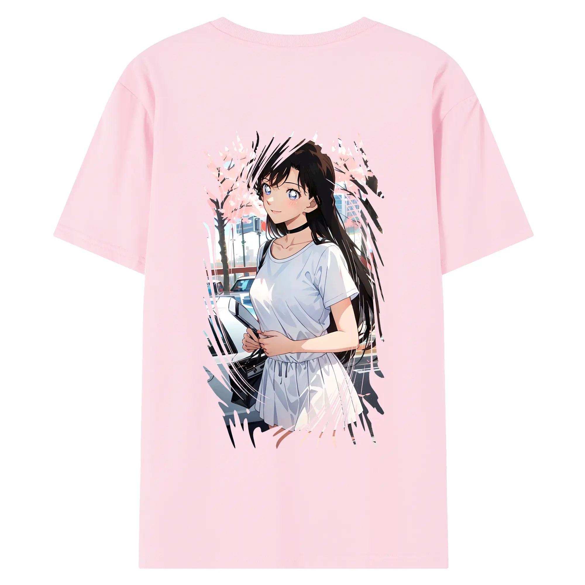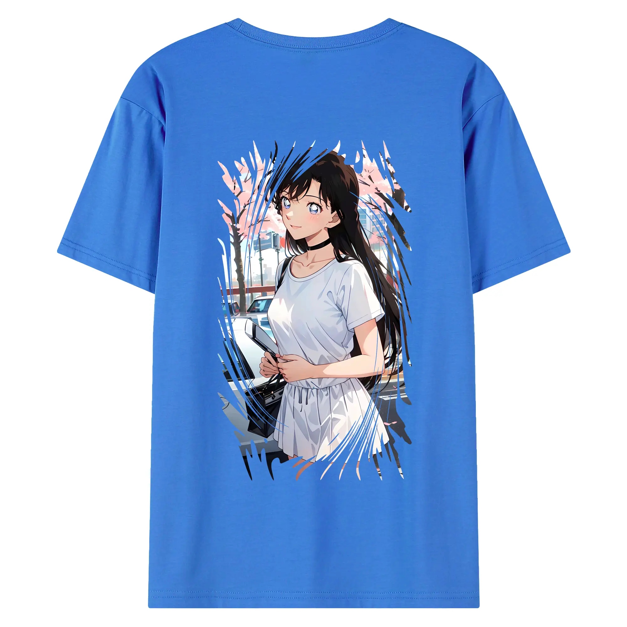 名探偵コナン グッズ 毛利 蘭 - 綿100% 半袖Tシャツ ・ フロントプリント ・ 快適 通気性 ・ 日常使い 散歩 スポーツ用