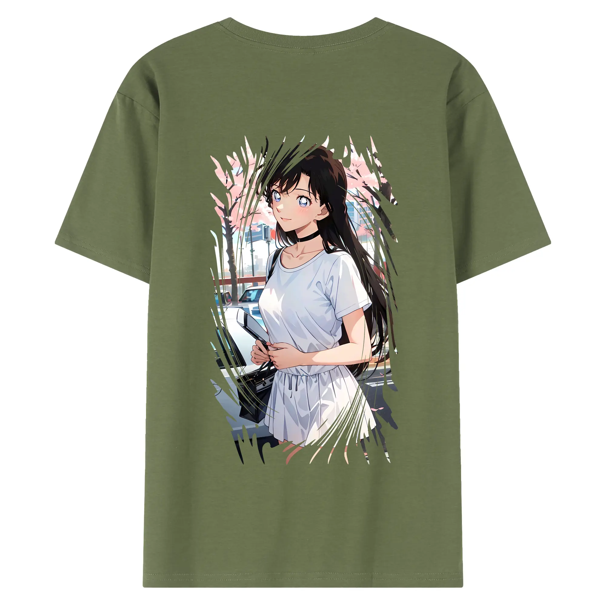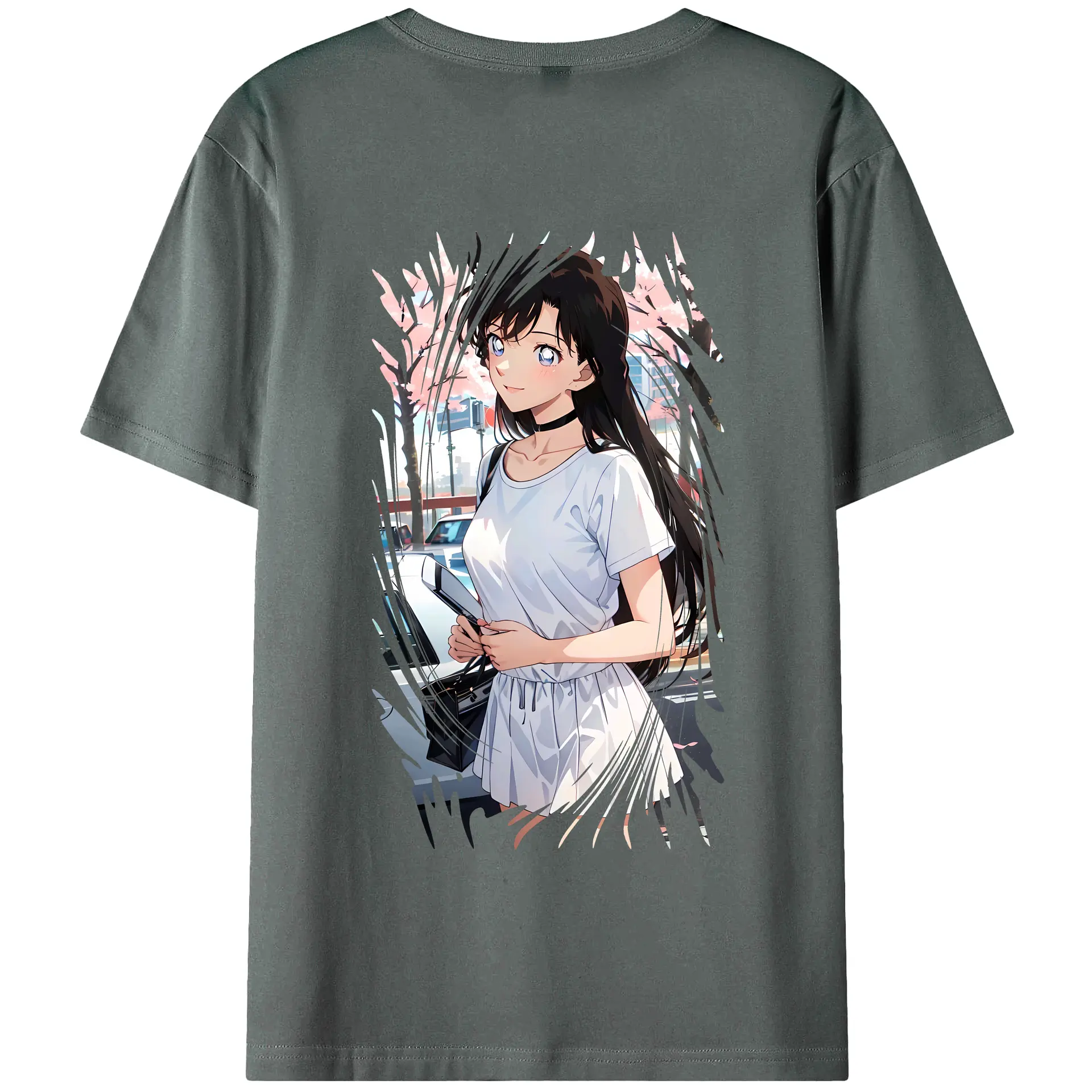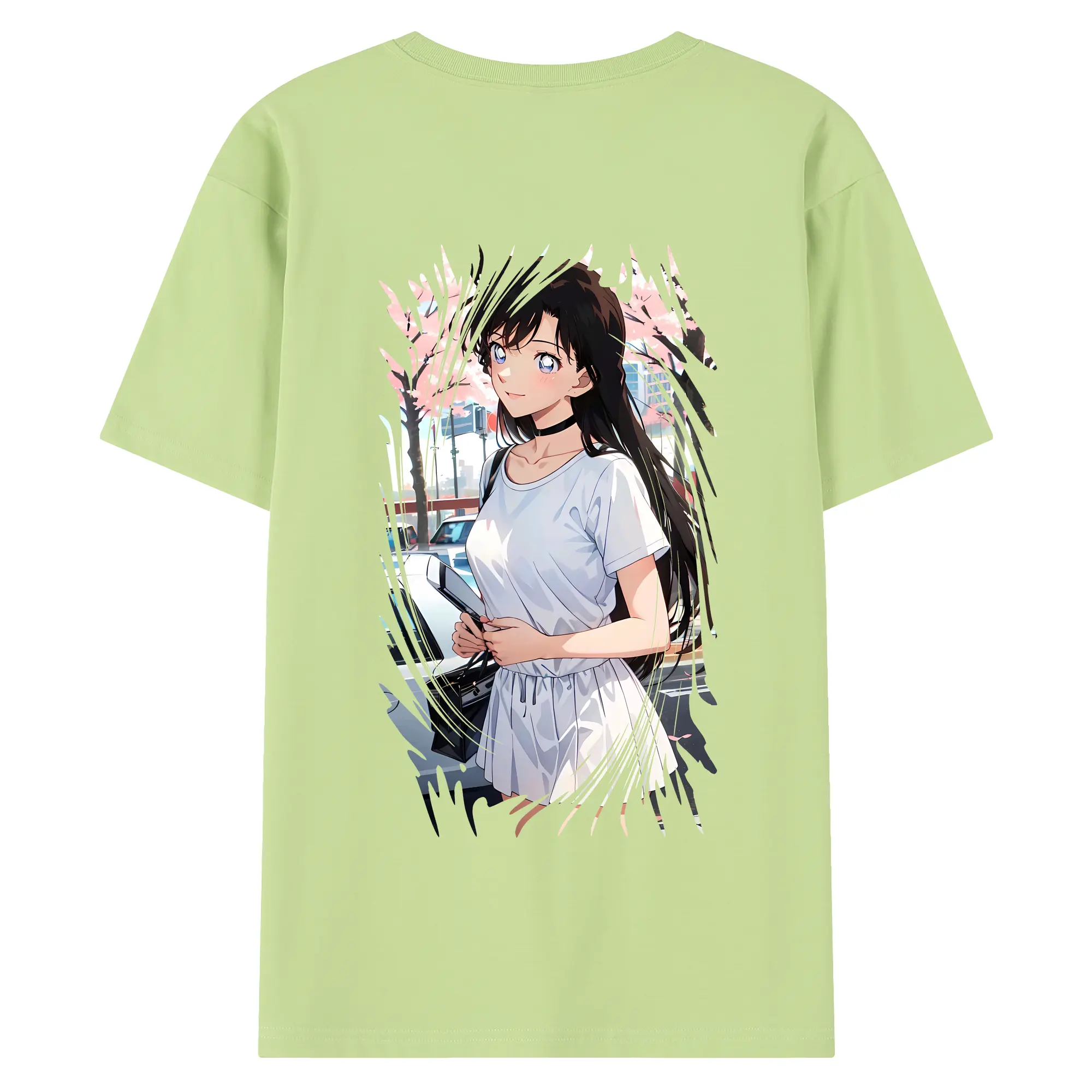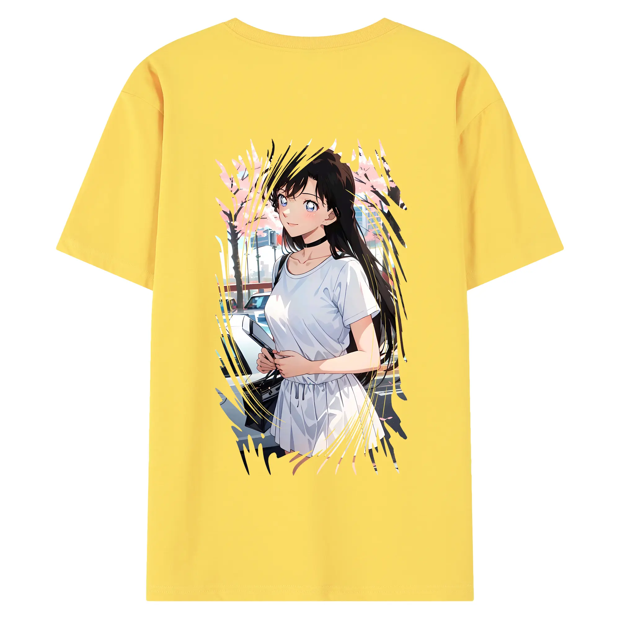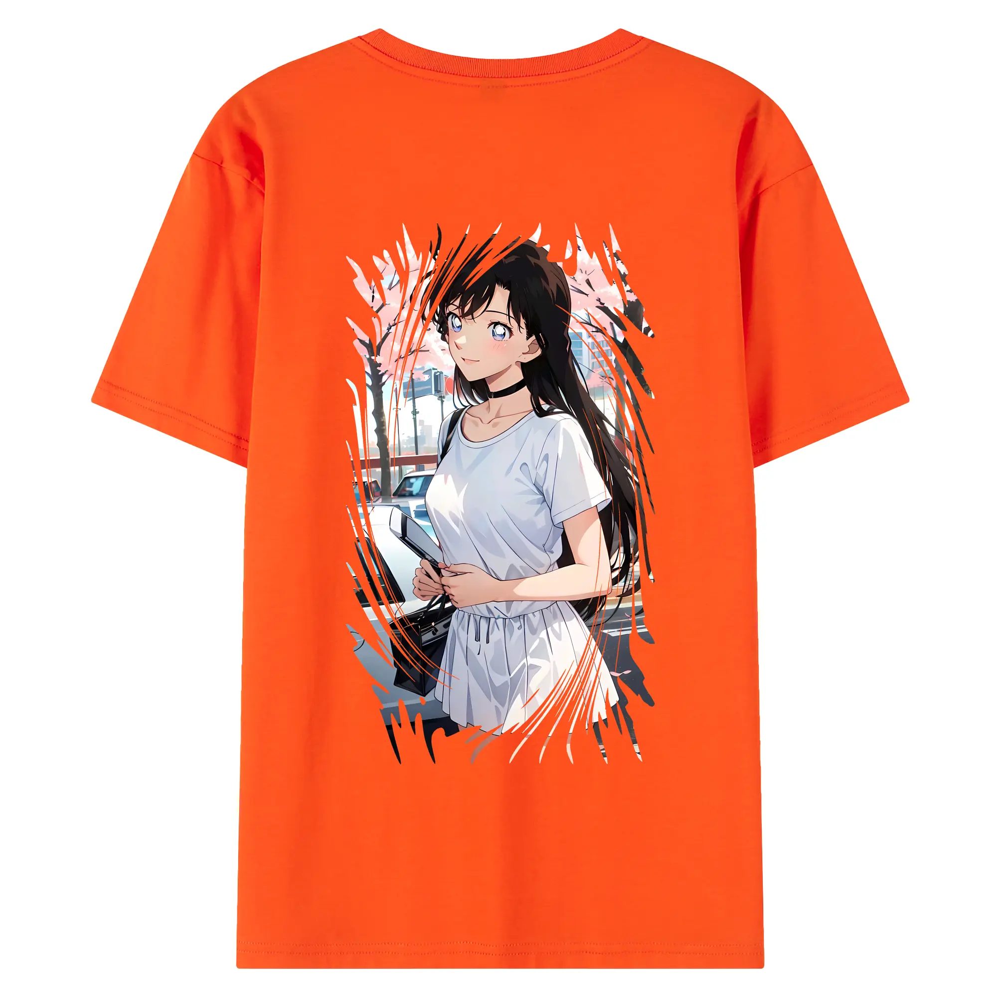 名探偵コナン グッズ 毛利 蘭 - 綿100% 半袖Tシャツ ・ フロントプリント ・ 快適 通気性 ・ 日常使い 散歩 スポーツ用