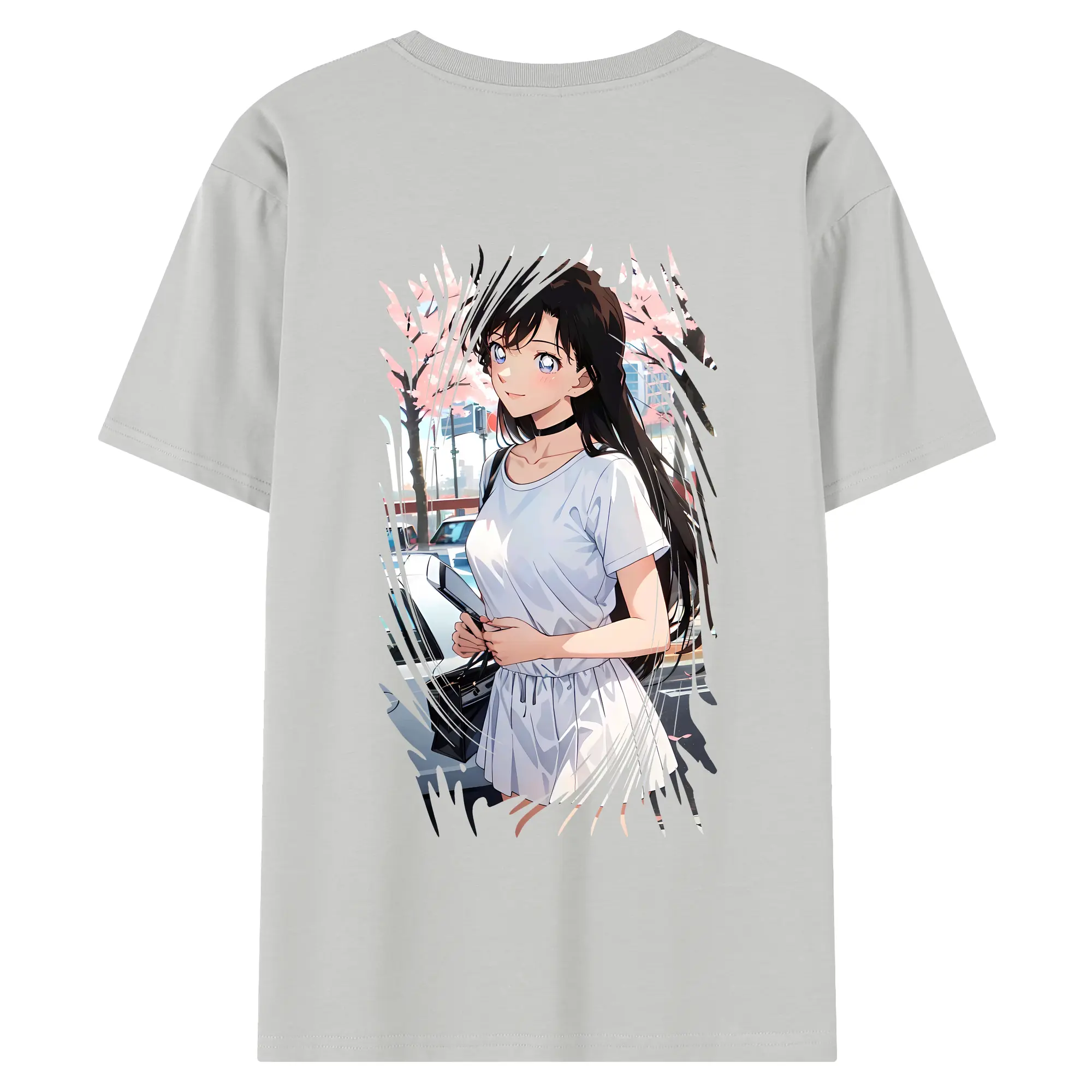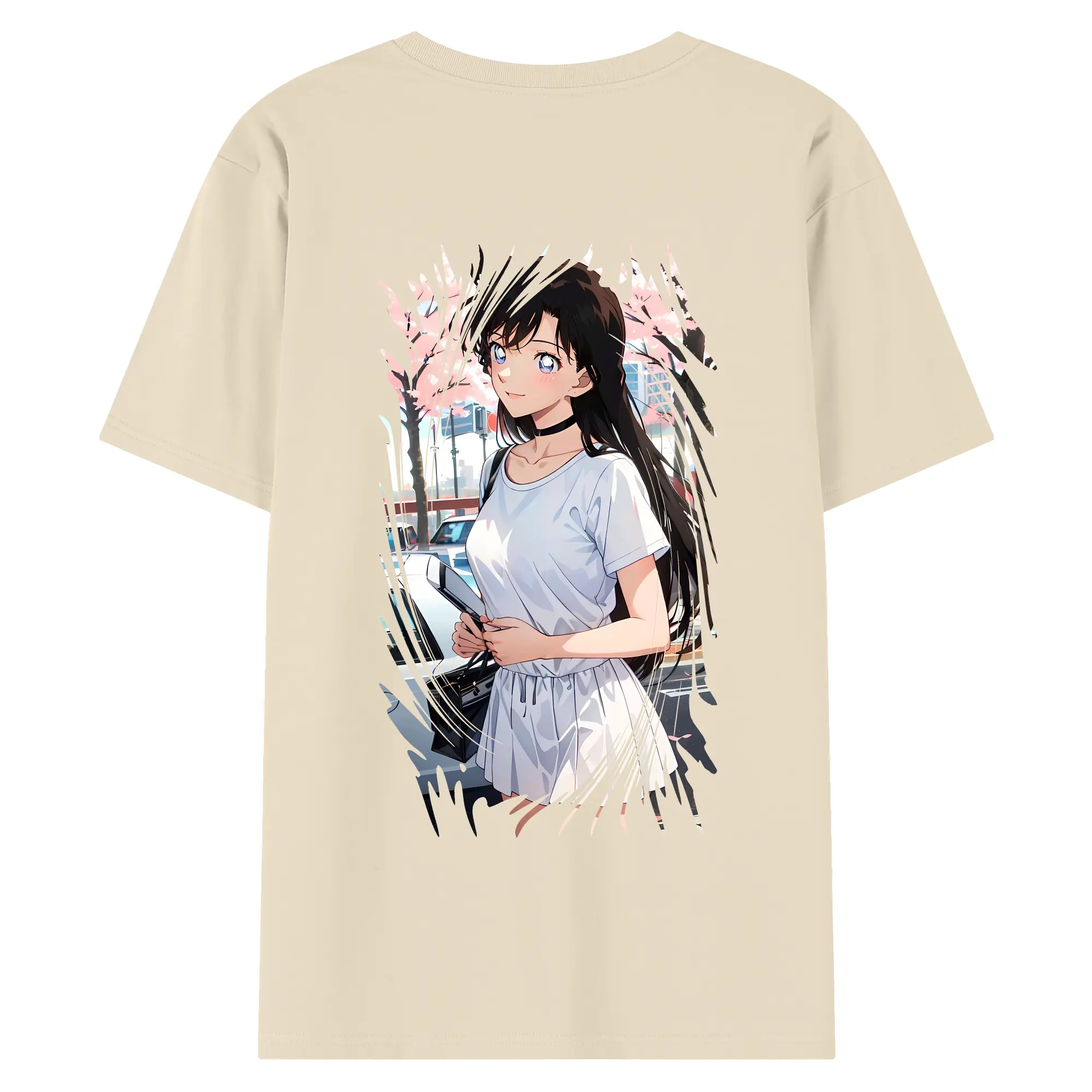 名探偵コナン グッズ 毛利 蘭 - 綿100% ヴィンテージ風 半袖Tシャツ ・ 背面プリント ・ 柔らか肌触り ・ 通気性 快適 ・ スポーツ カジュアル 外出用