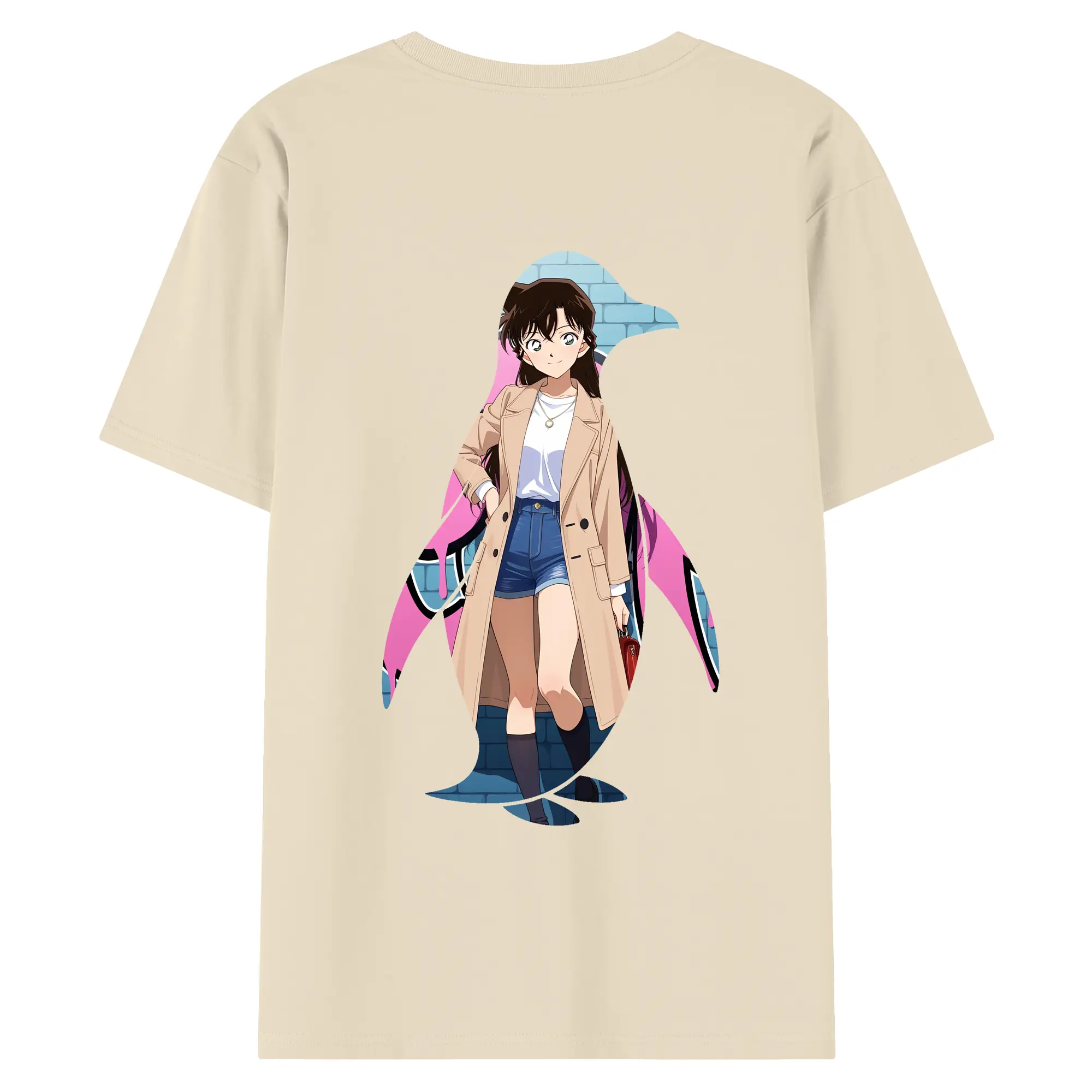 名探偵コナン グッズ 毛利 蘭 - 綿100% ヴィンテージ風 半袖Tシャツ ・ 背面プリント ・ 柔らか肌触り ・ 通気性 快適 ・ スポーツ カジュアル 外出用