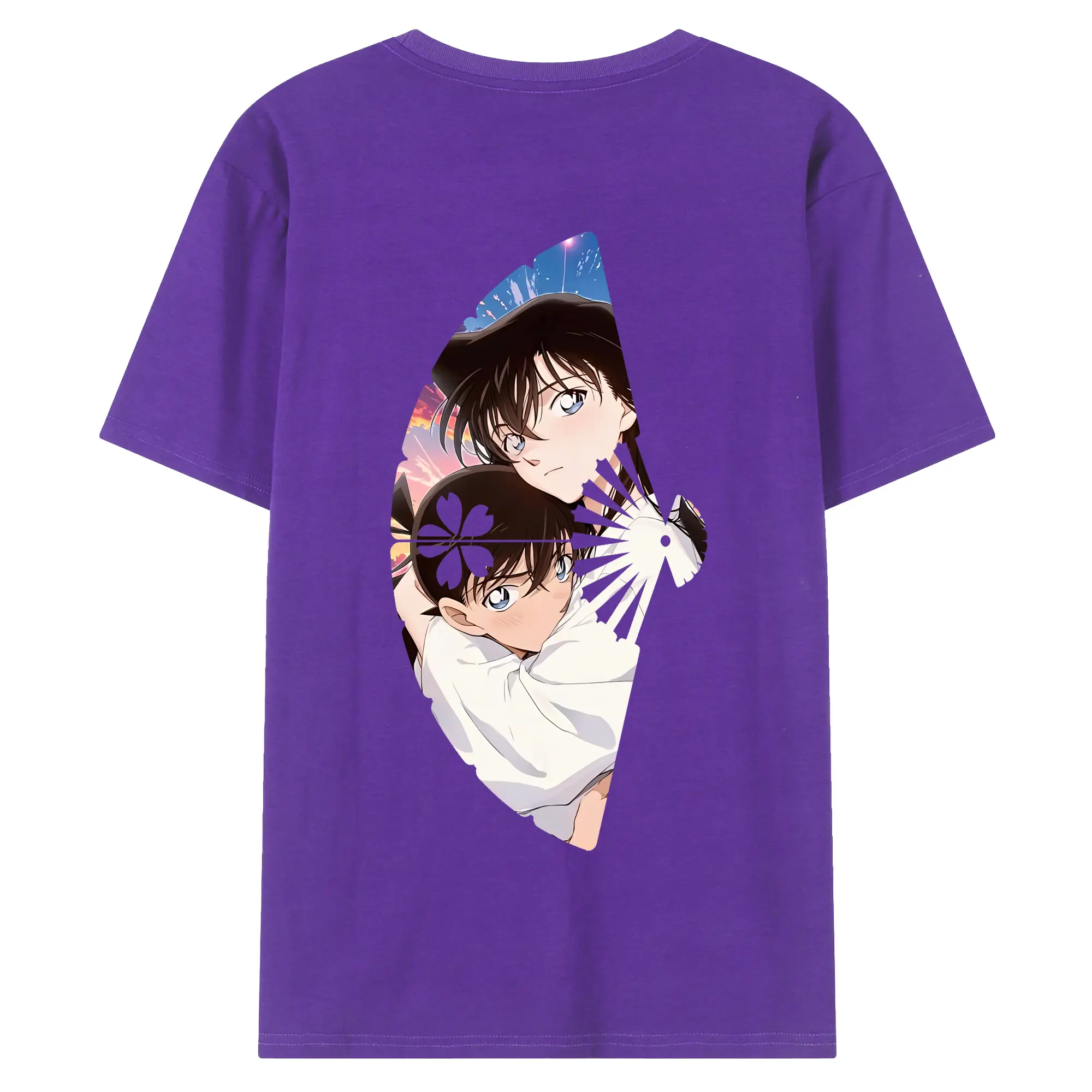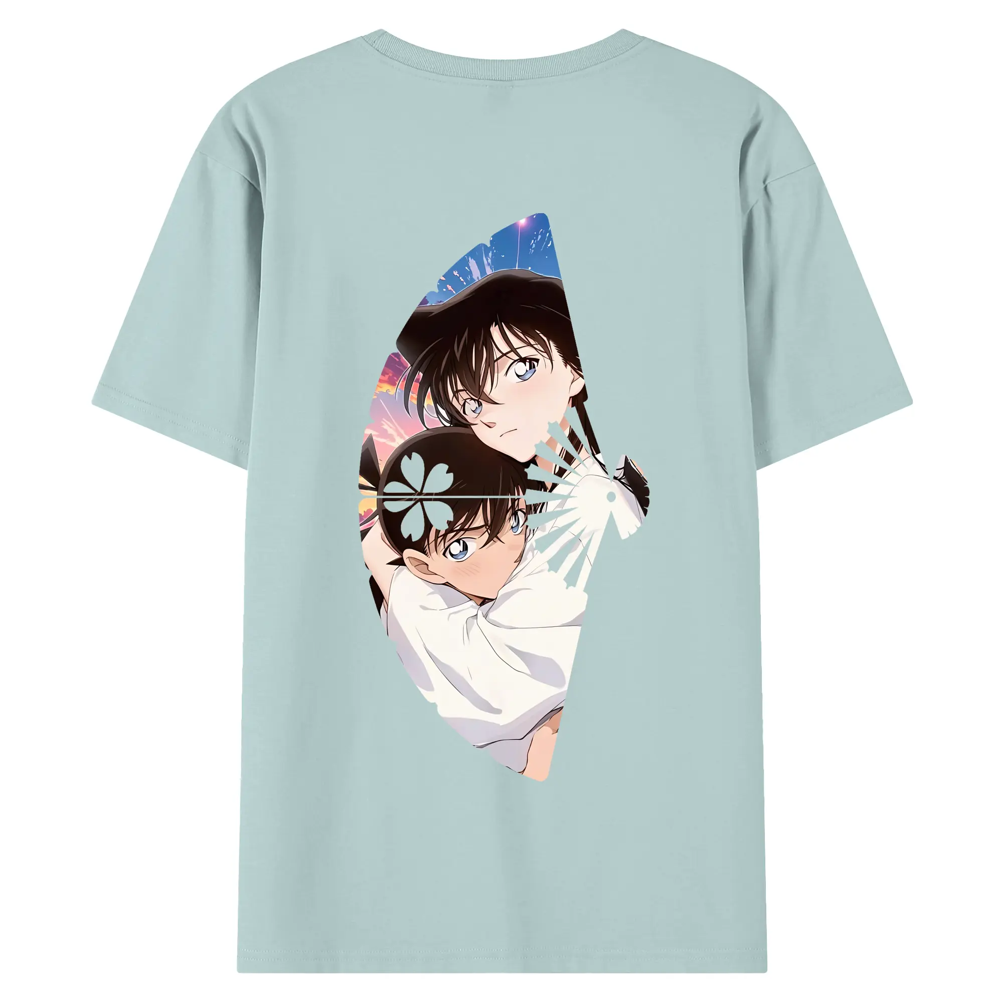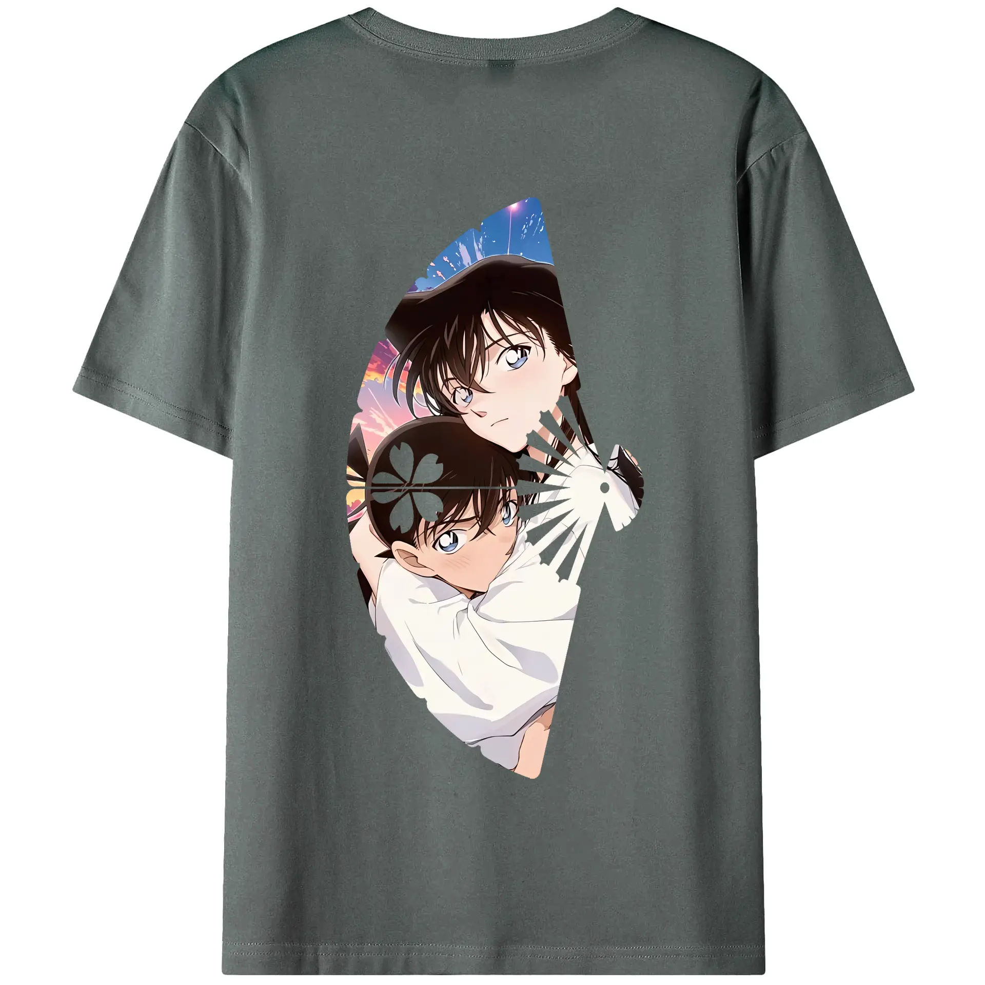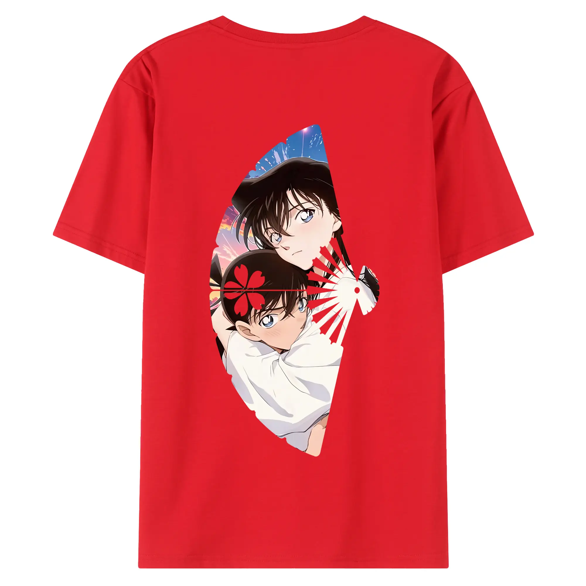 名探偵コナン グッズ 毛利 蘭 - 綿100% 半袖Tシャツ ・ フロントプリント ・ 快適 通気性 ・ 日常使い 散歩 スポーツ用