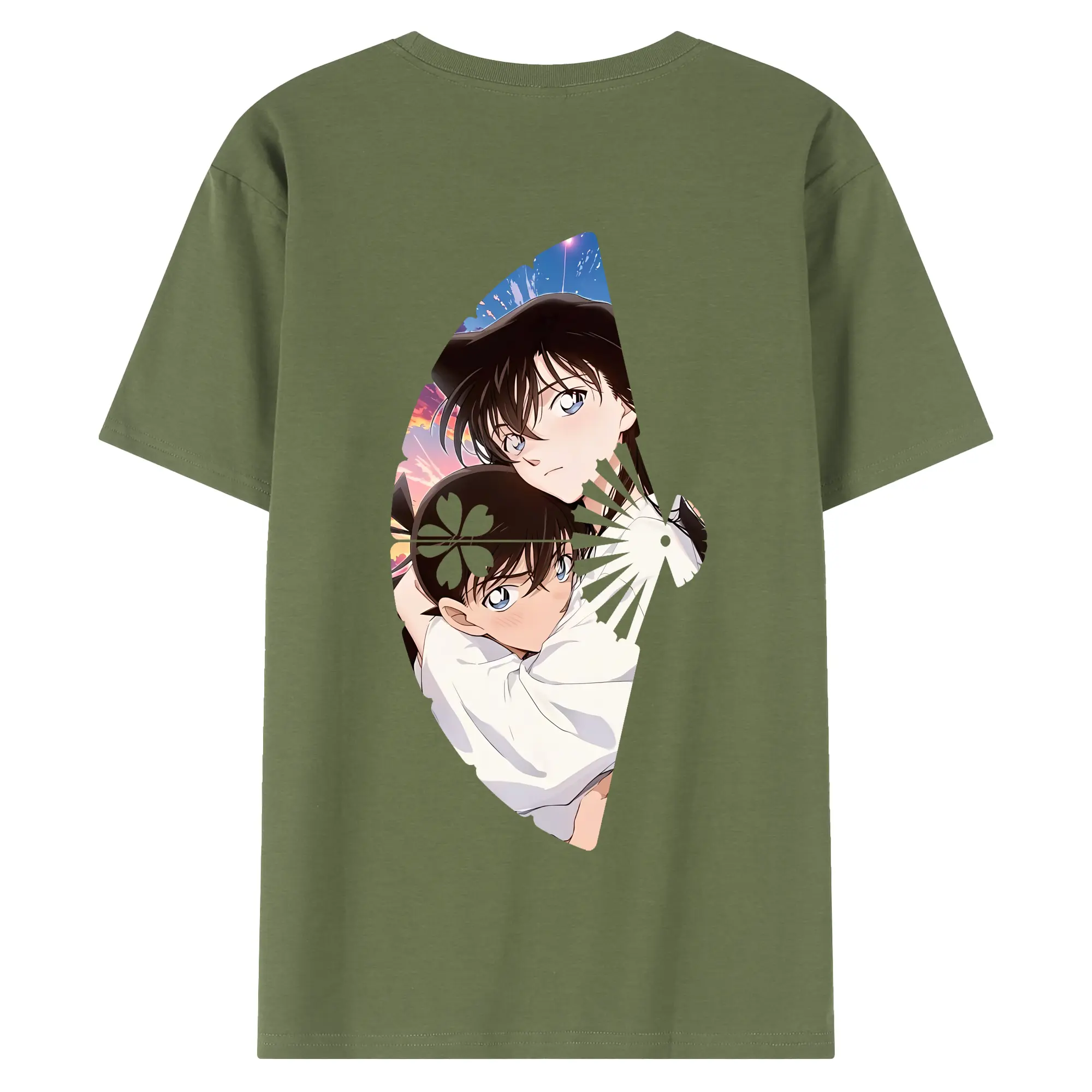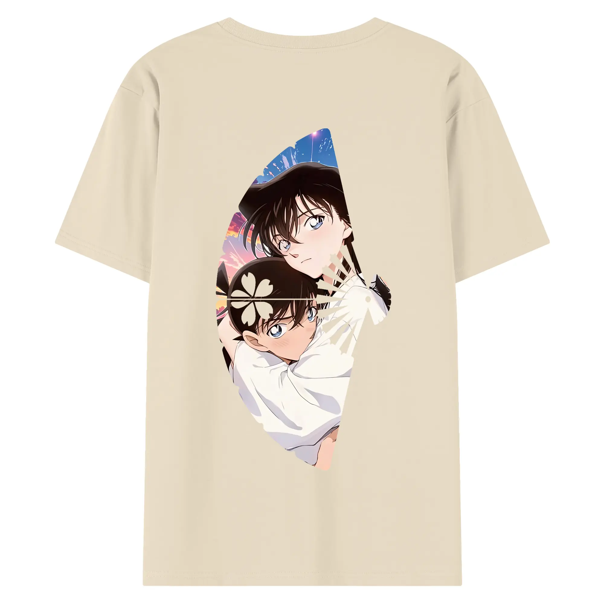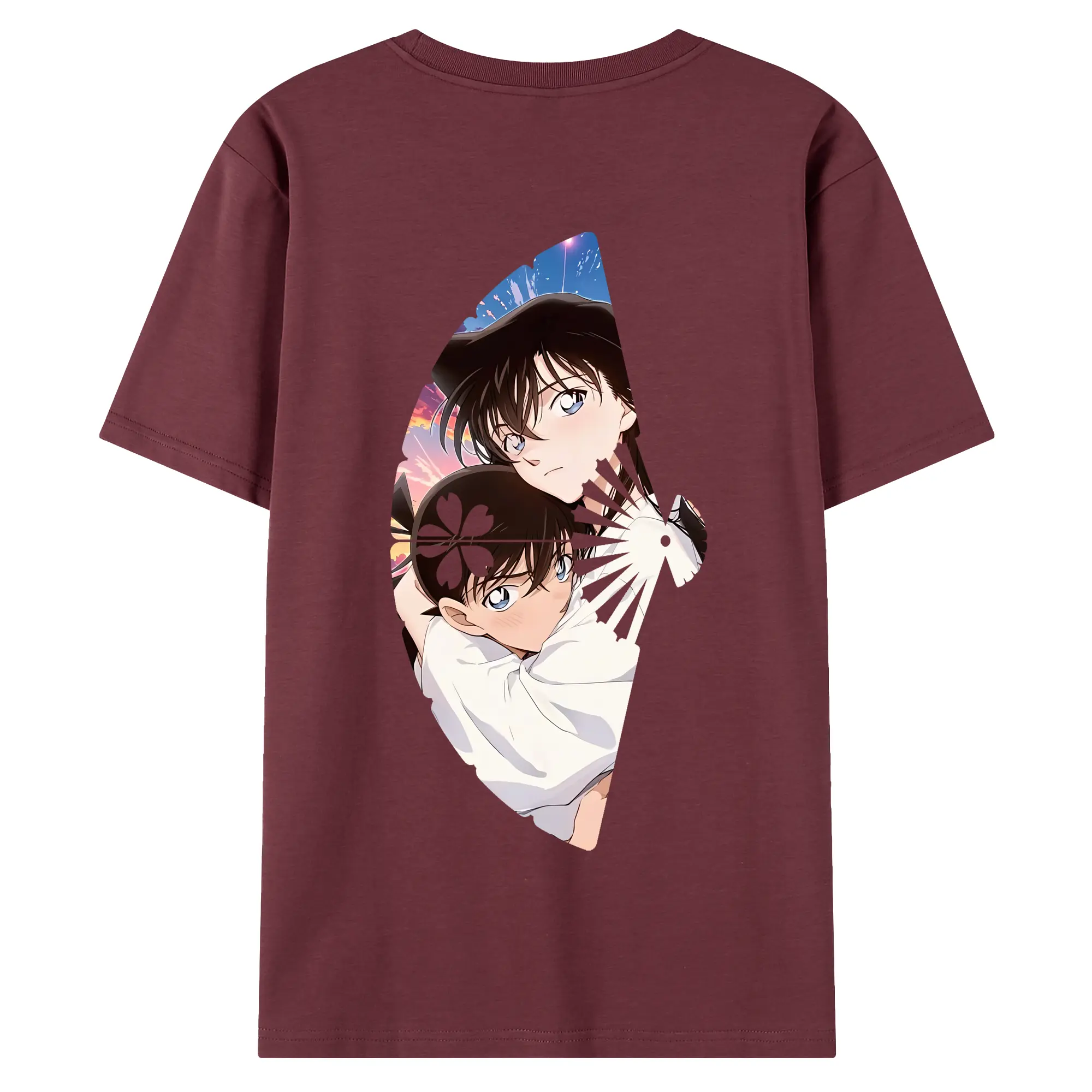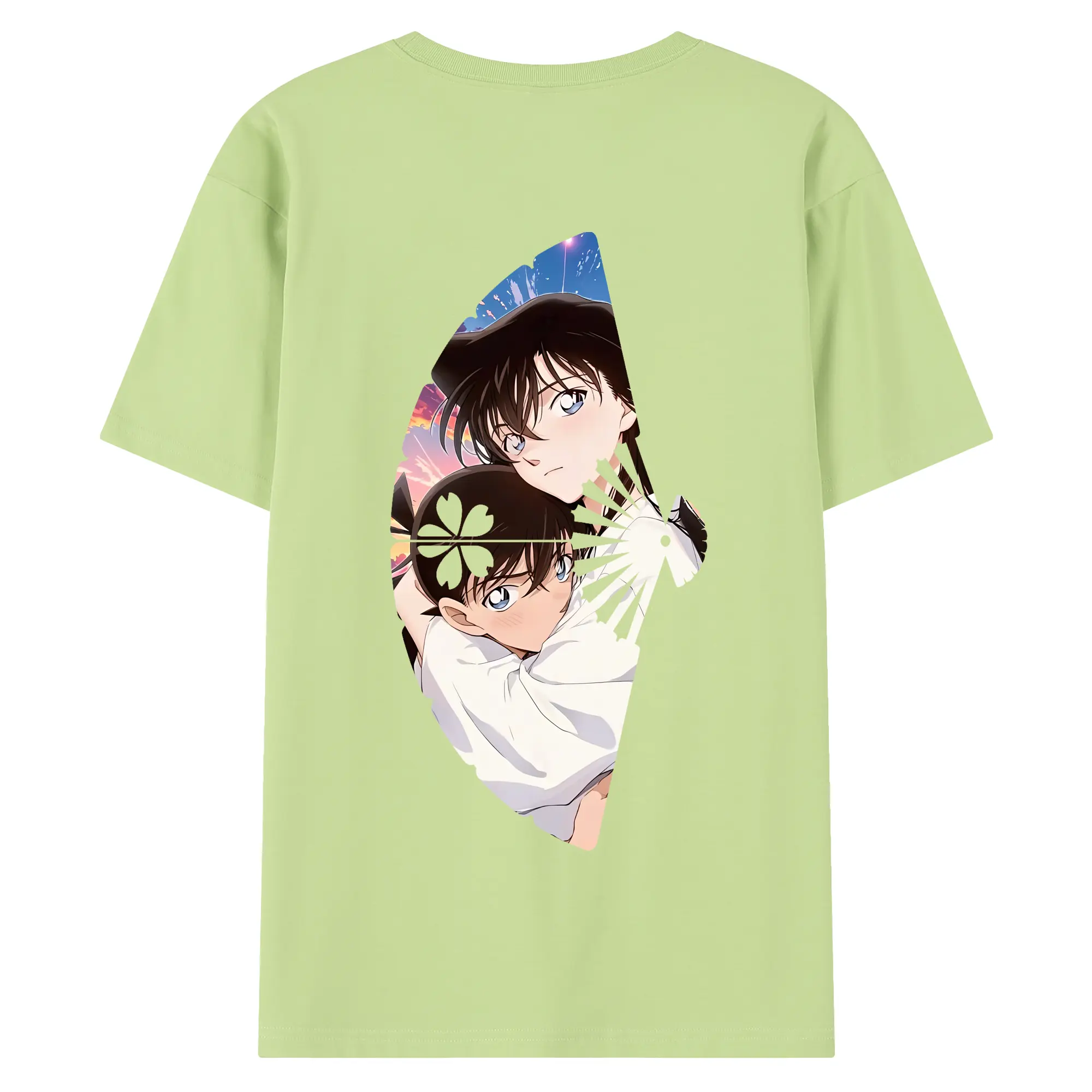 名探偵コナン グッズ 毛利 蘭 - 綿100% 半袖Tシャツ ・ フロントプリント ・ 快適 通気性 ・ 日常使い 散歩 スポーツ用