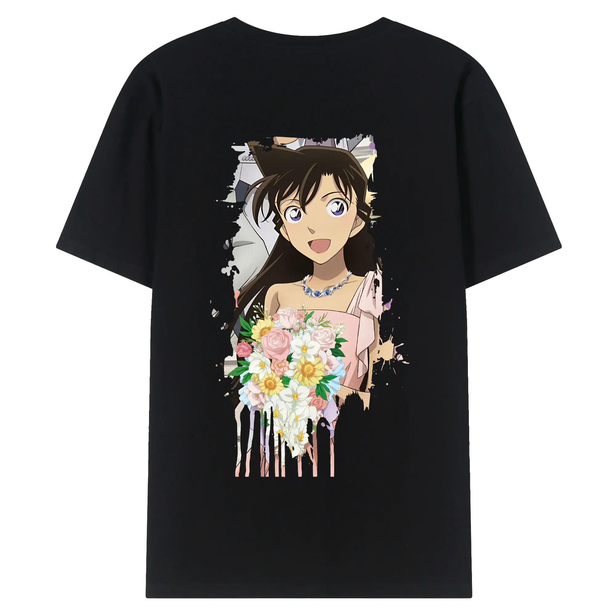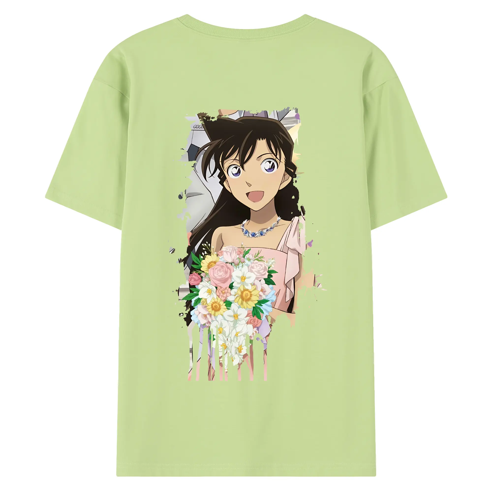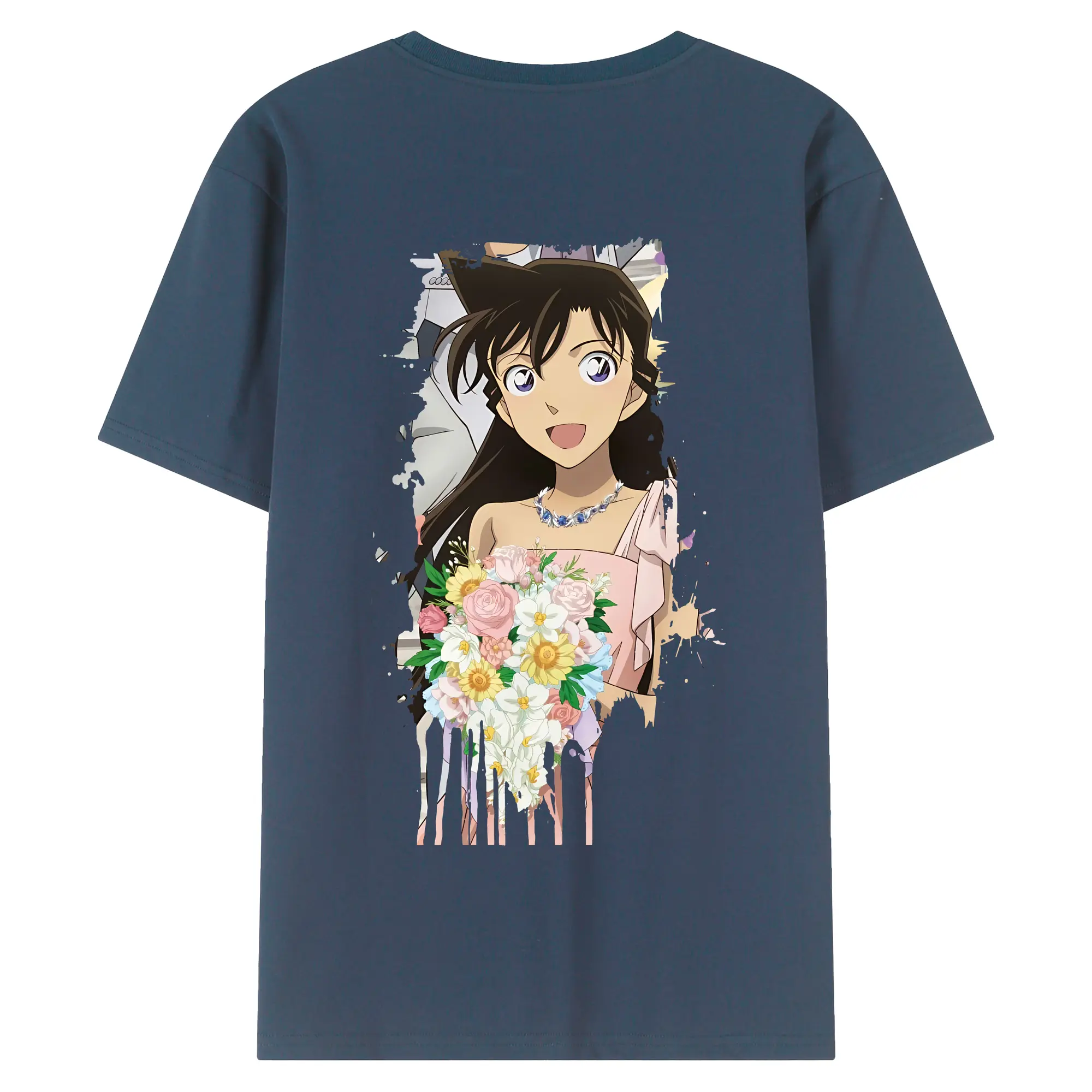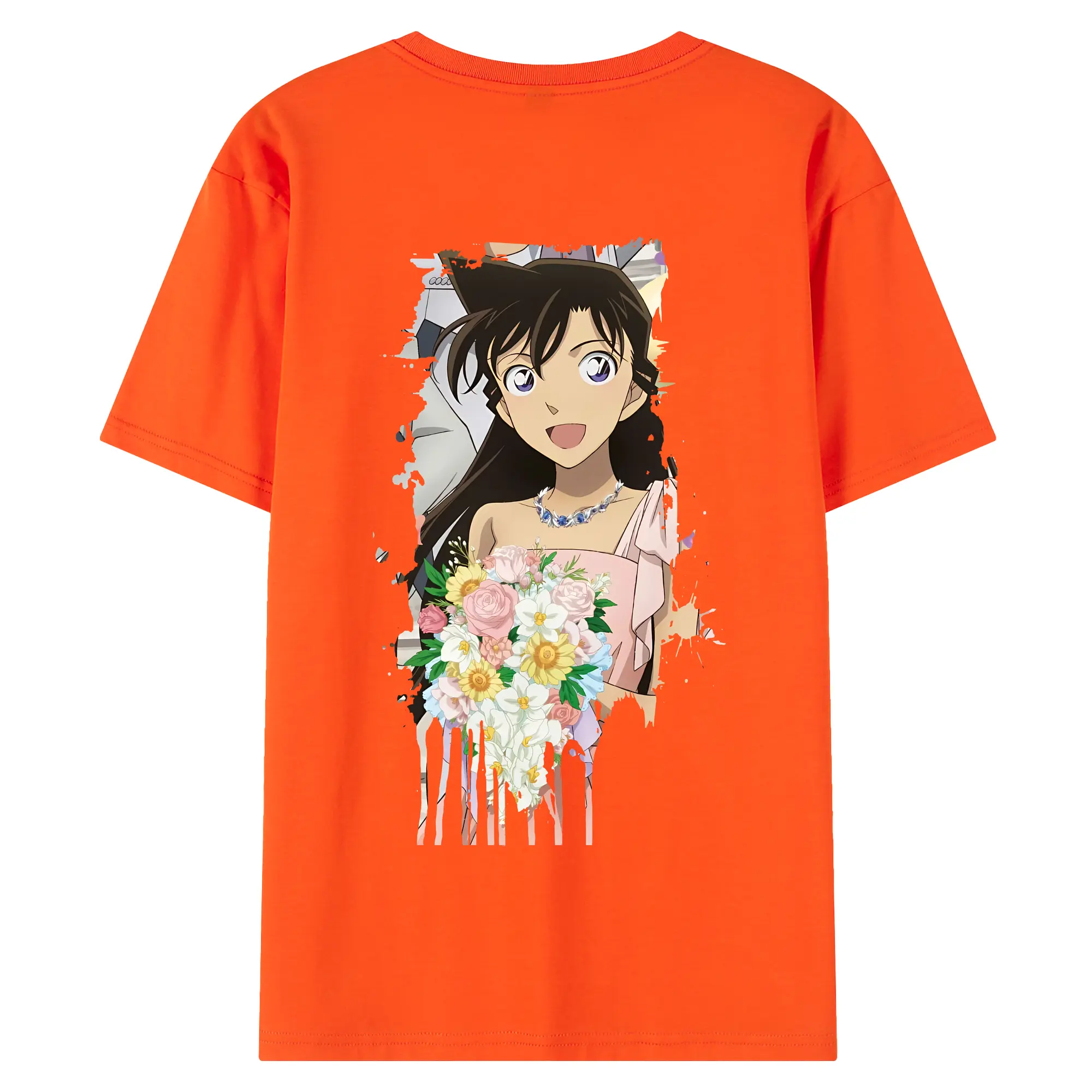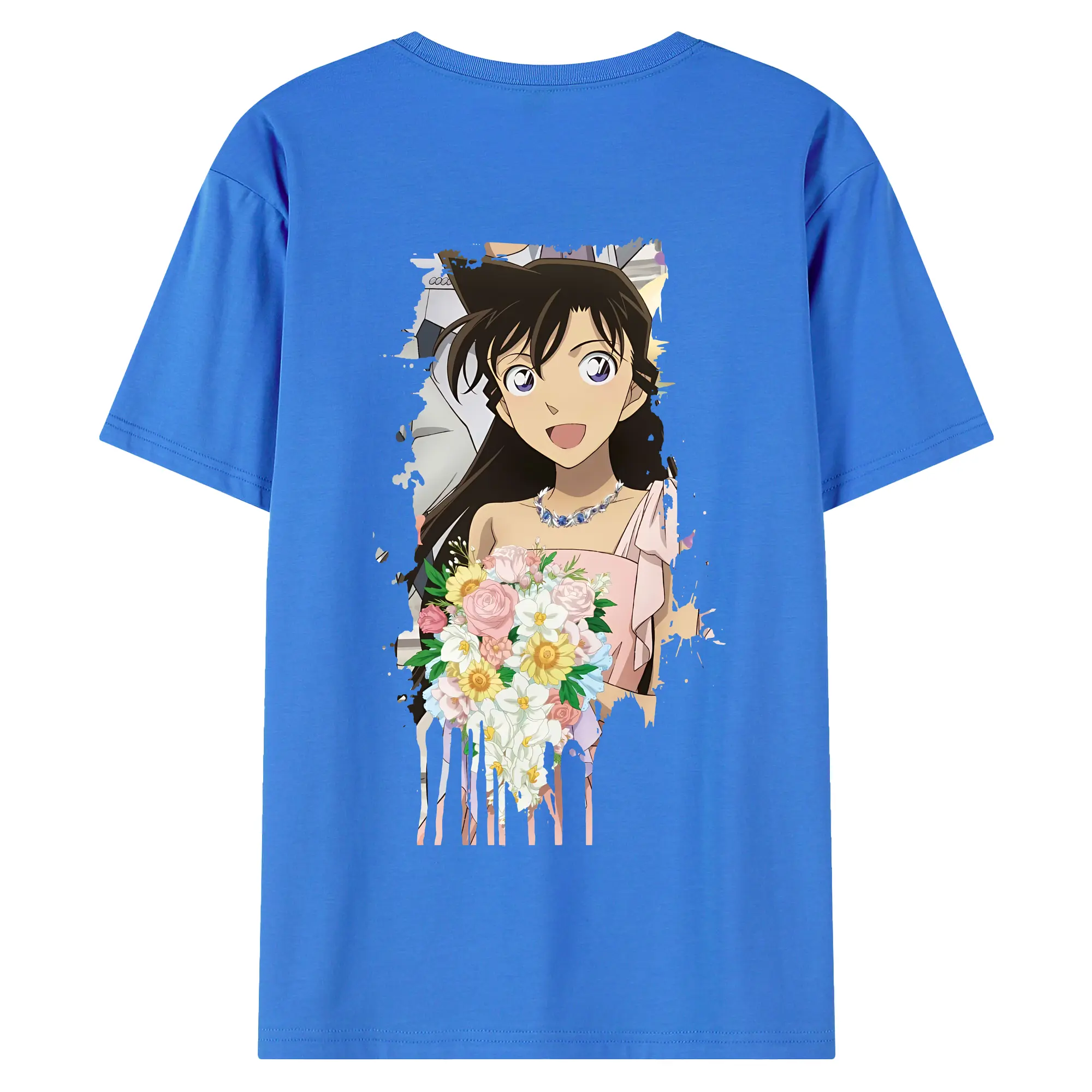 名探偵コナン グッズ 毛利 蘭 - 綿100% 半袖Tシャツ ・ フロントプリント ・ 快適 通気性 ・ 日常使い 散歩 スポーツ用