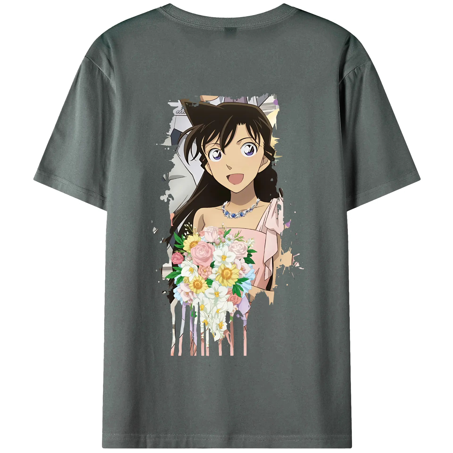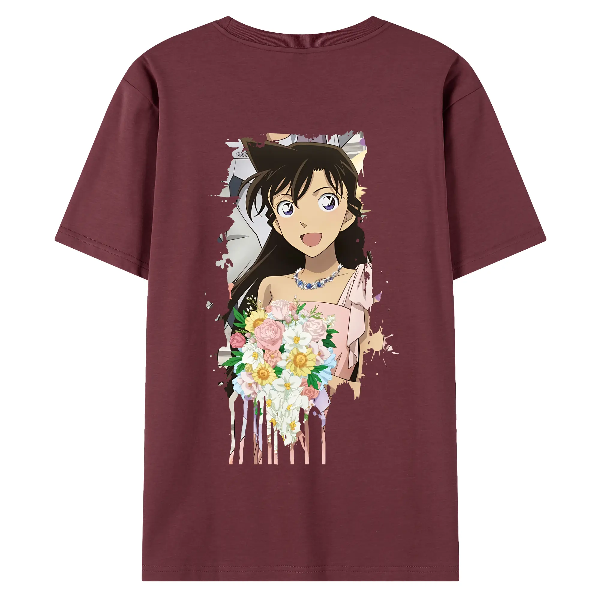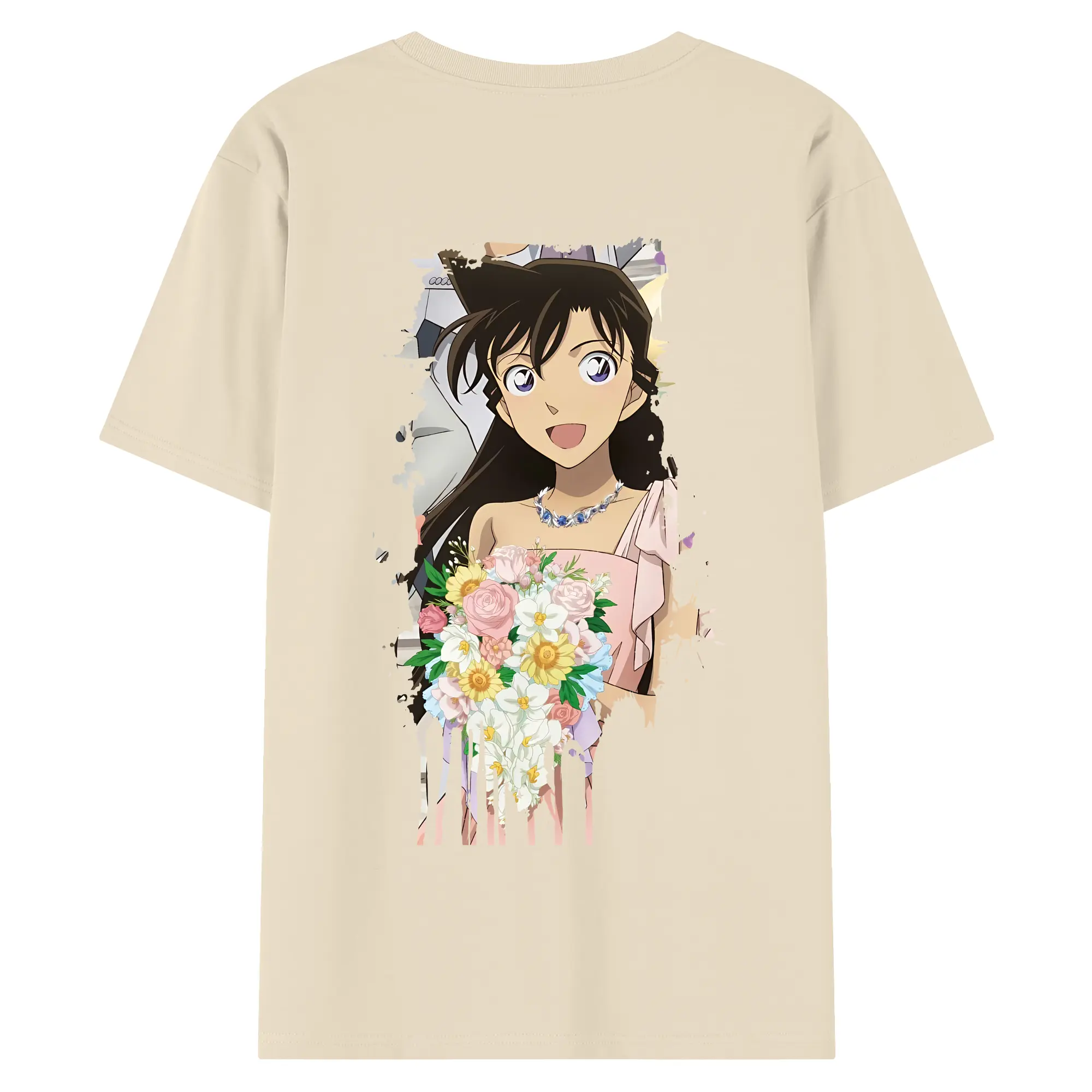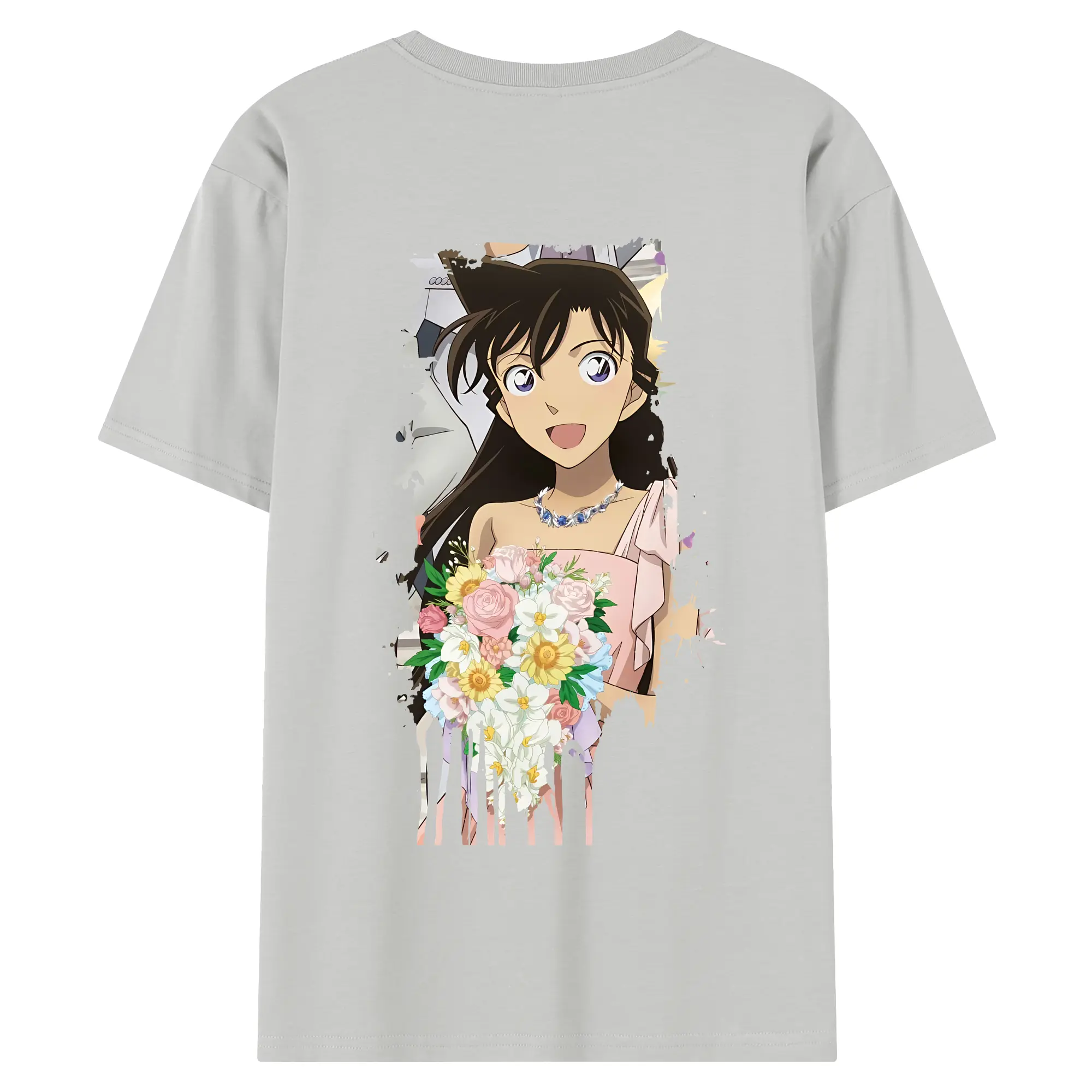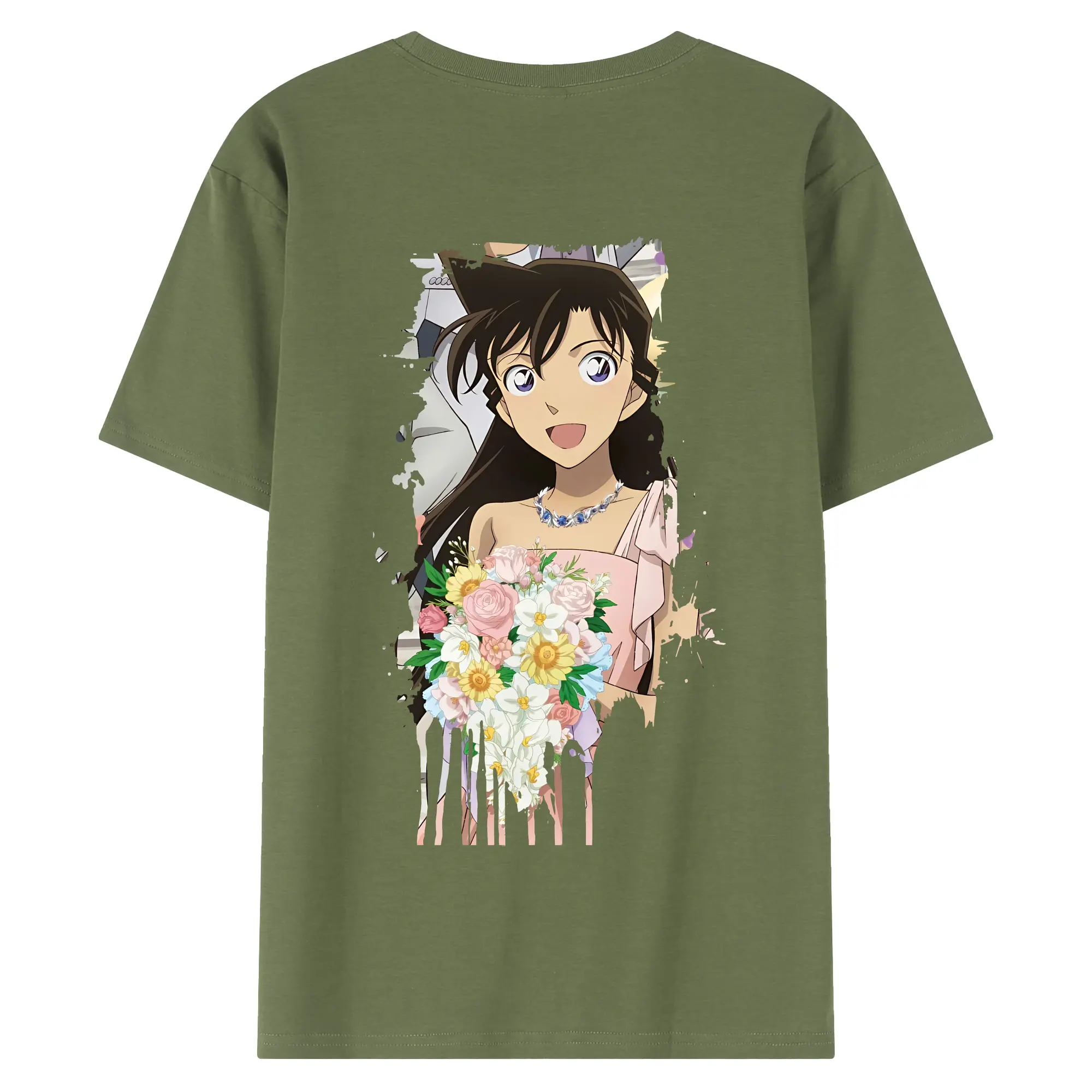 名探偵コナン グッズ 毛利 蘭 - 綿100% 半袖Tシャツ ・ フロントプリント ・ 快適 通気性 ・ 日常使い 散歩 スポーツ用