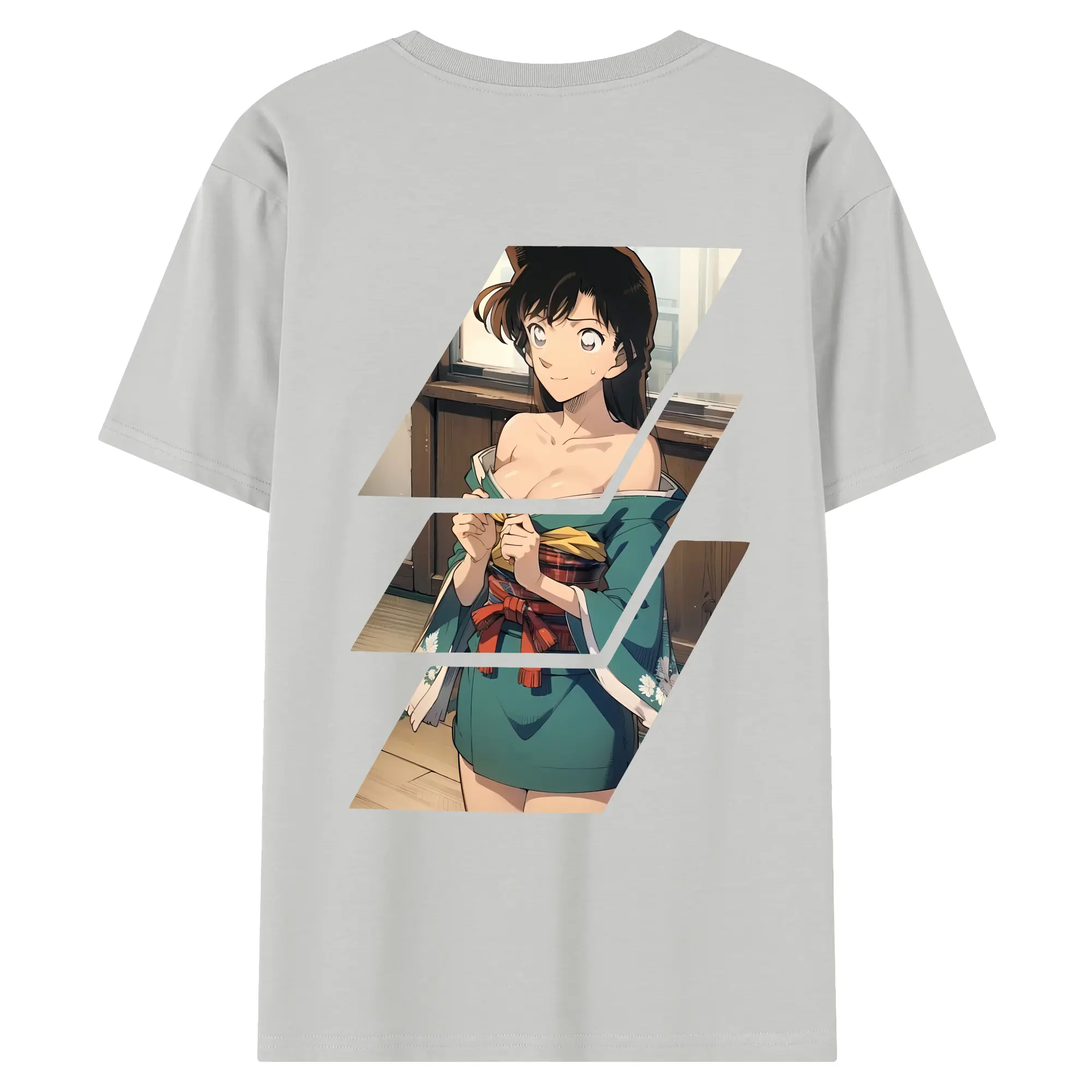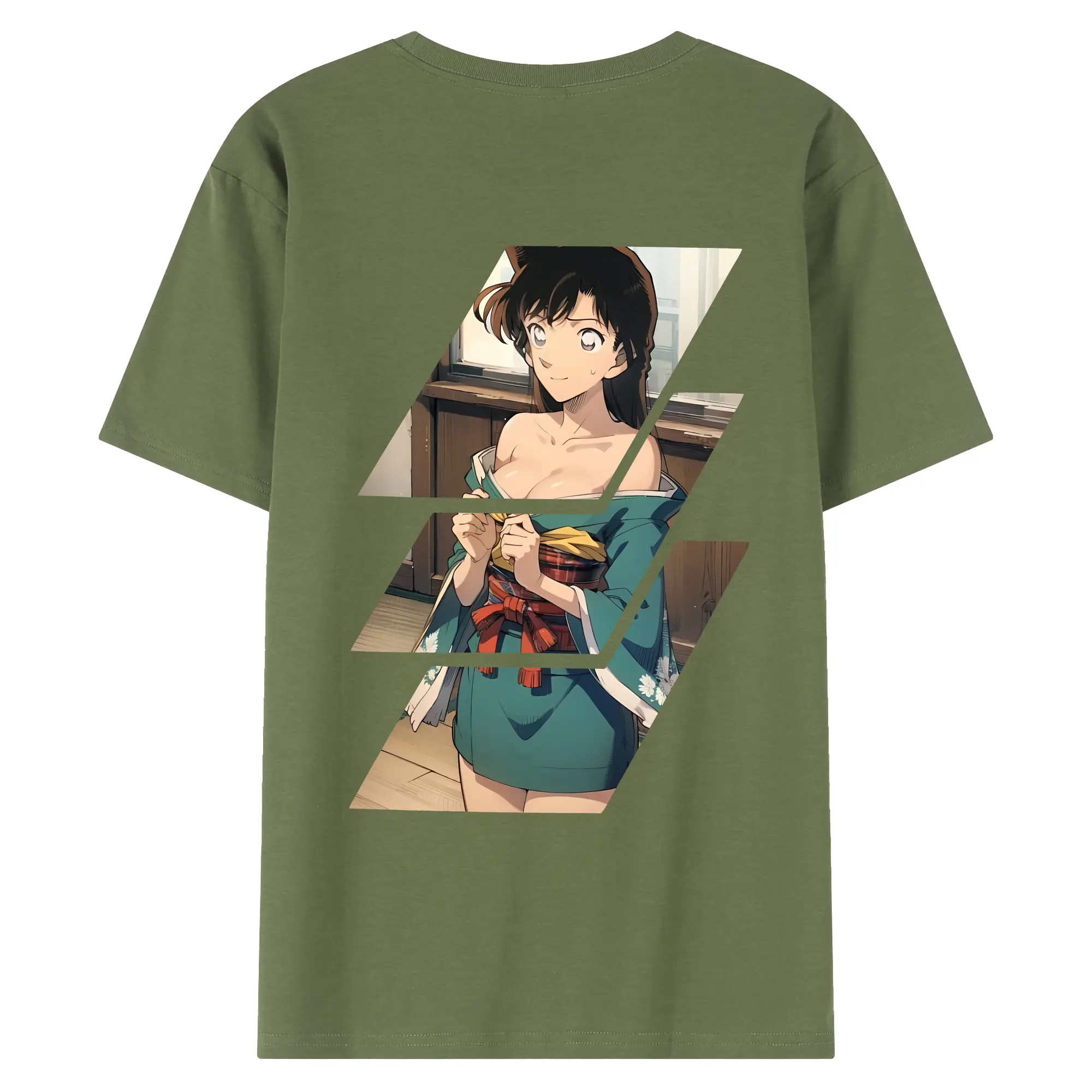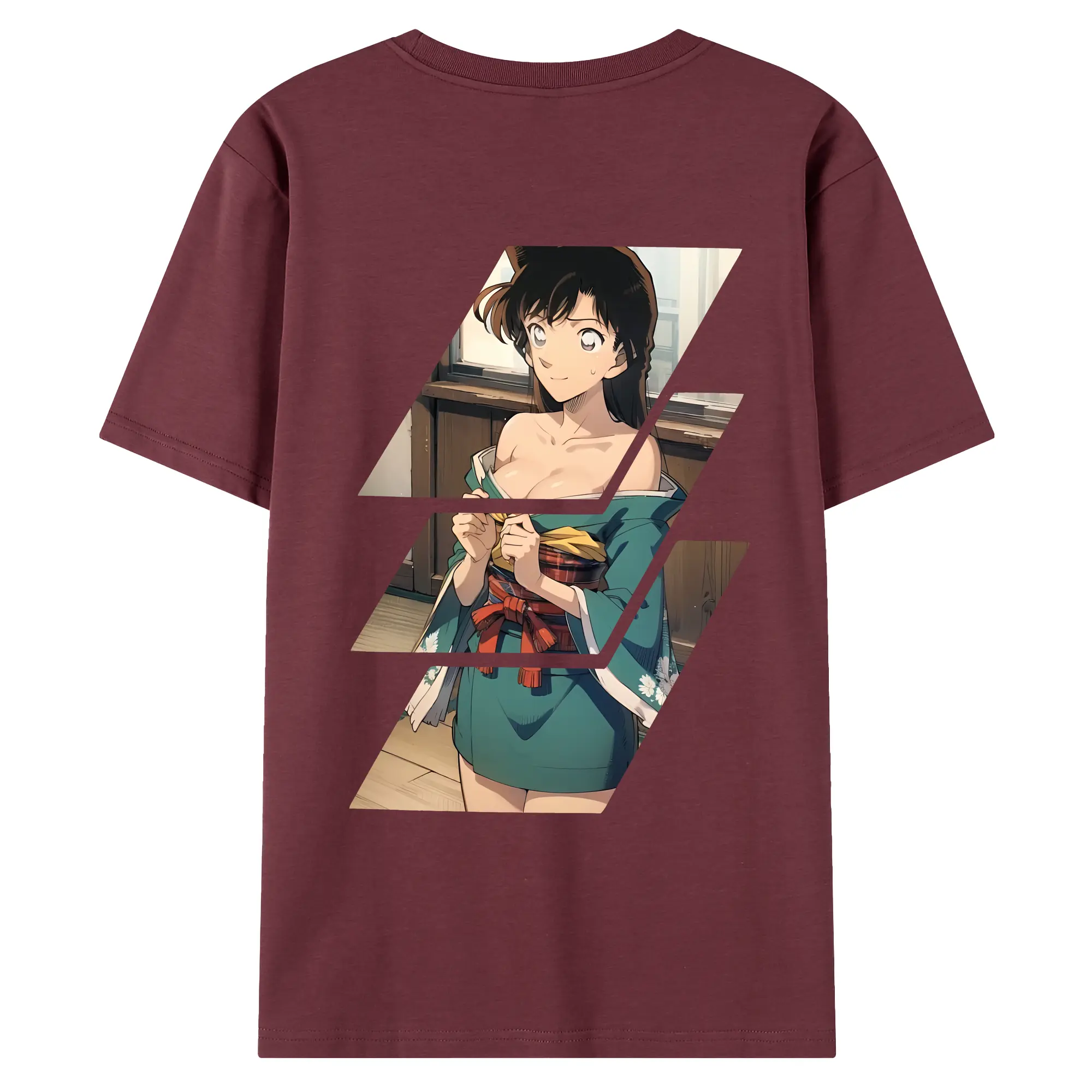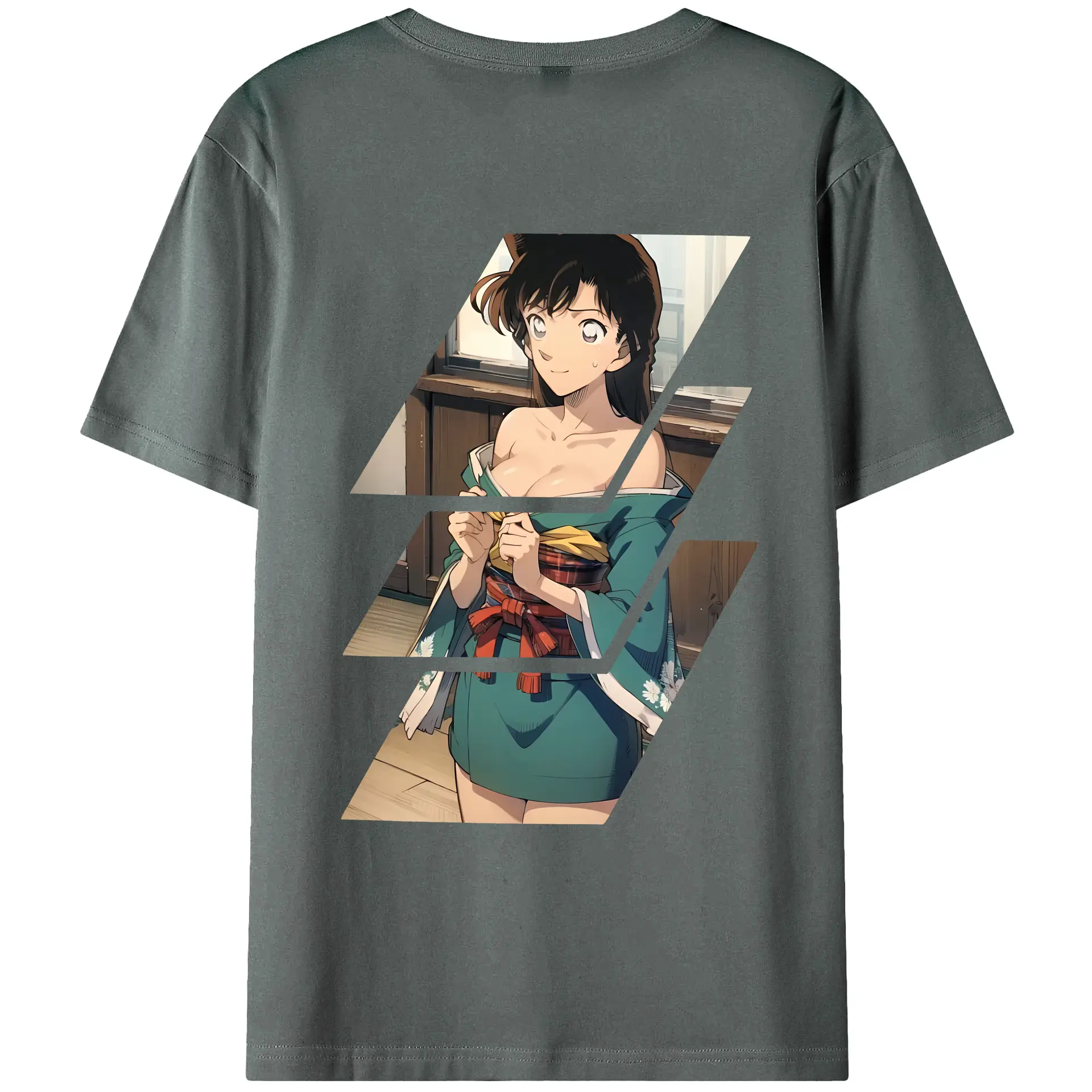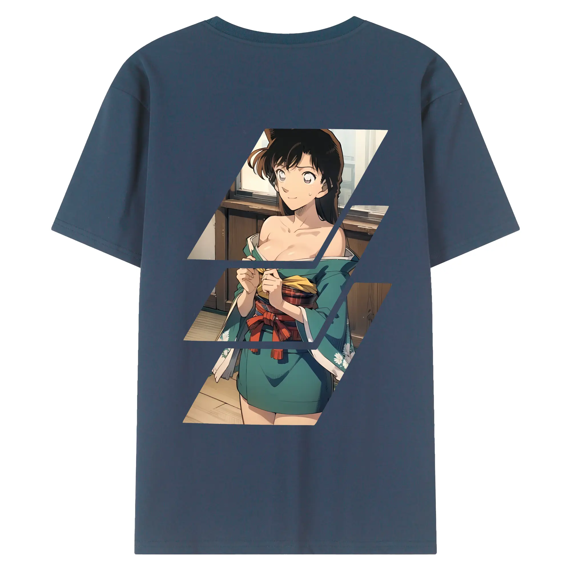 名探偵コナン グッズ 毛利 蘭 - 綿100% ヴィンテージ風 半袖Tシャツ ・ 背面プリント ・ 柔らか肌触り ・ 通気性 快適 ・ スポーツ カジュアル 外出用