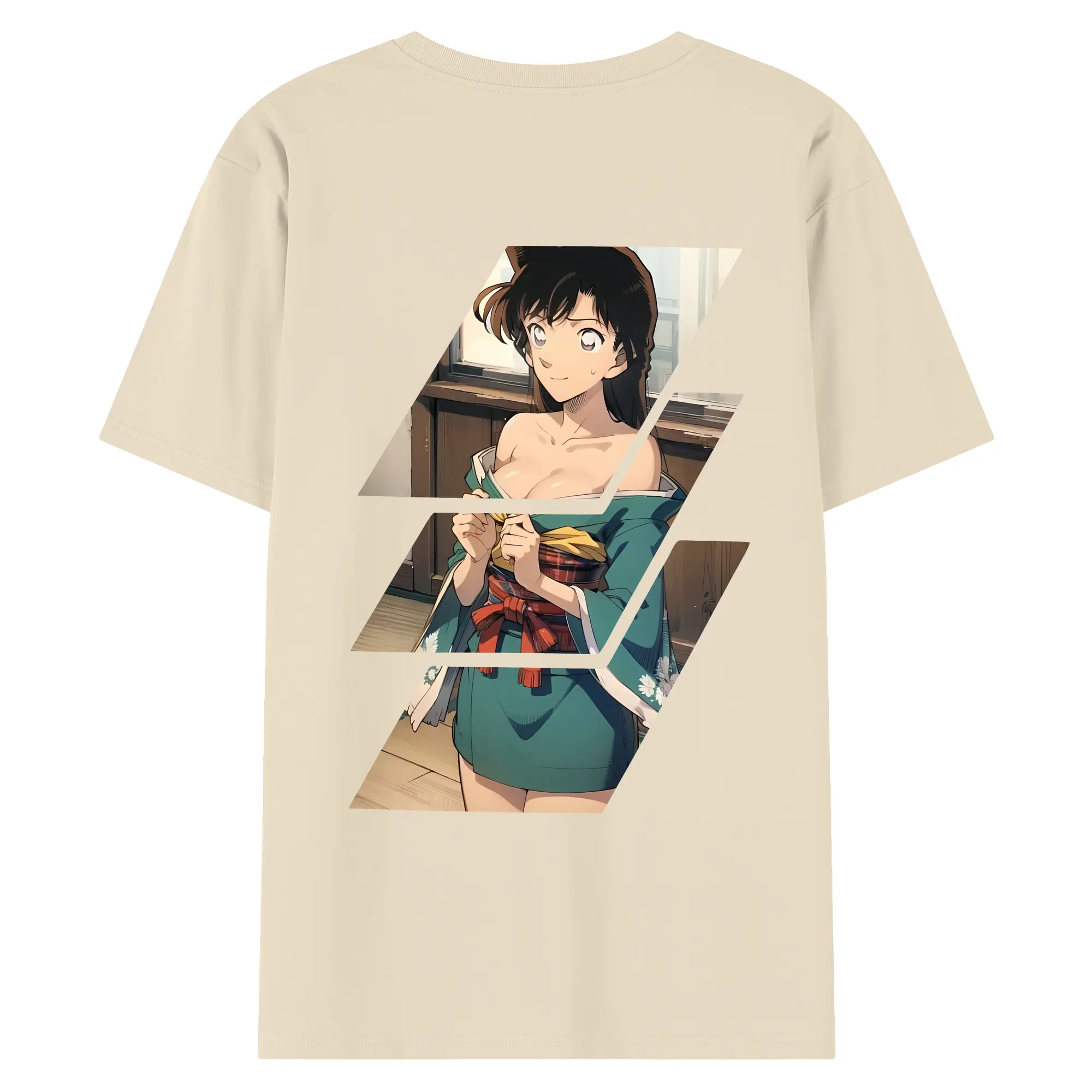 名探偵コナン グッズ 毛利 蘭 - 綿100% ヴィンテージ風 半袖Tシャツ ・ フロントプリント ・ 柔らか肌触り ・ 通気性 快適 ・ スポーツ カジュアル 外出用