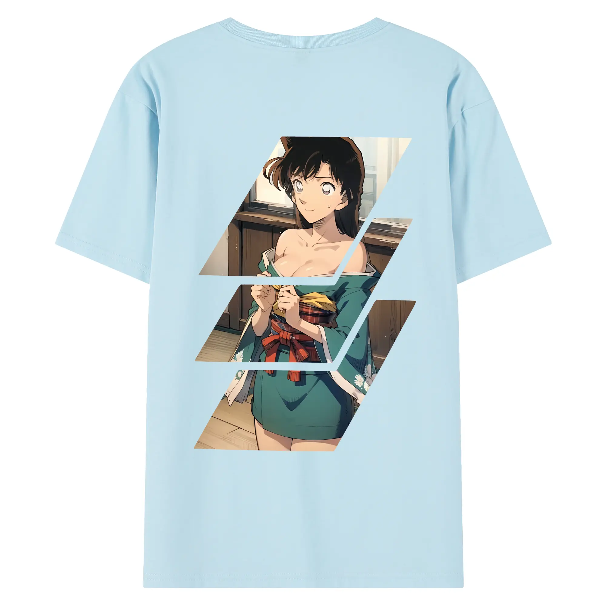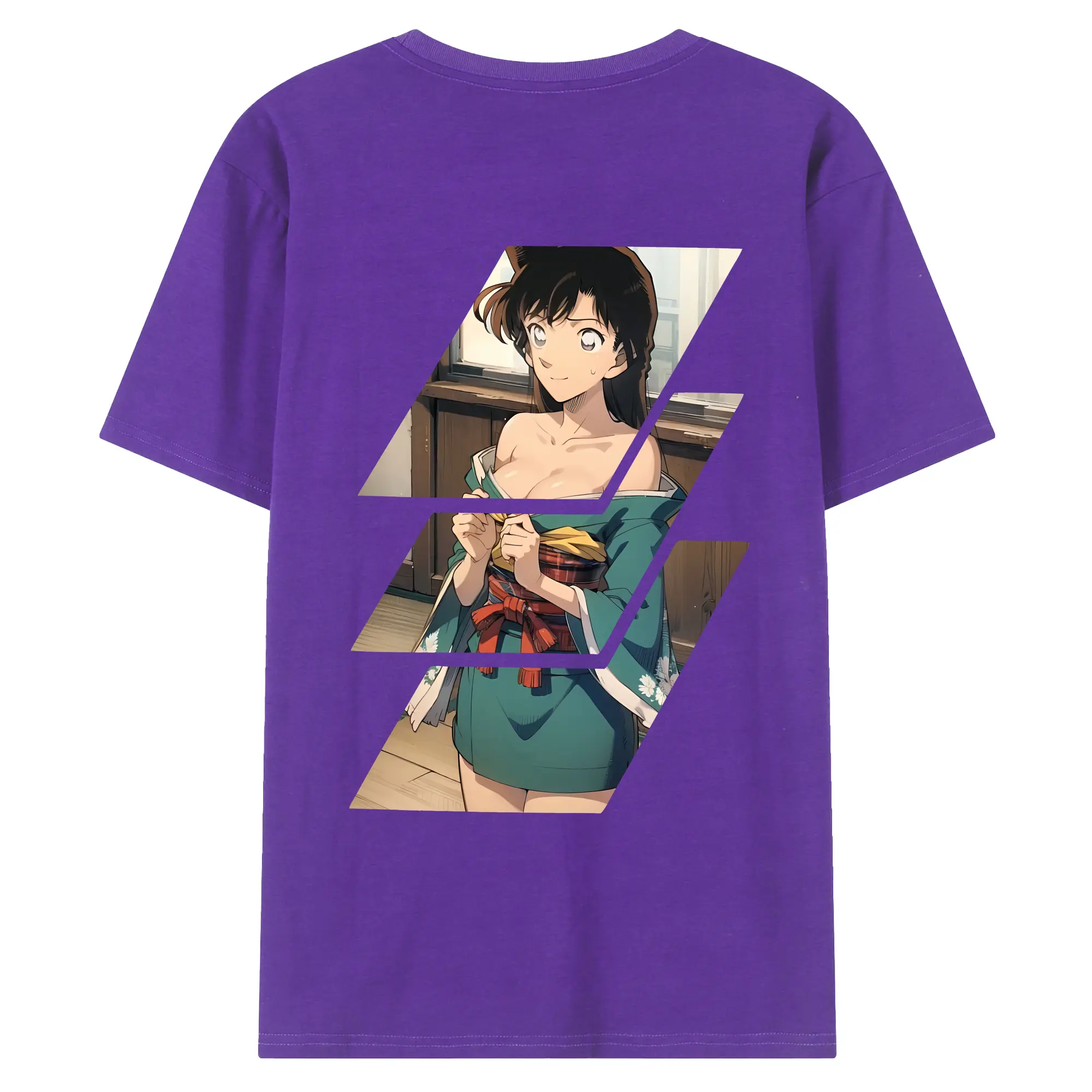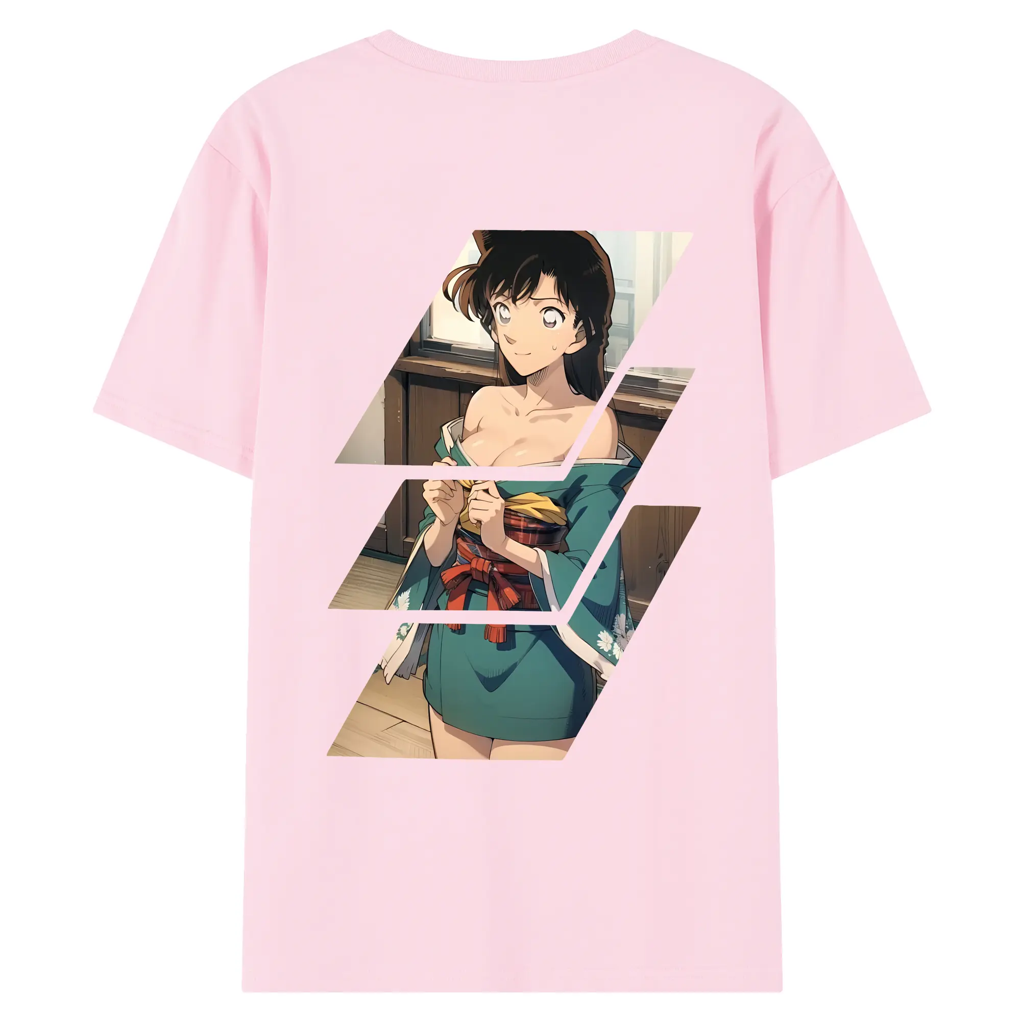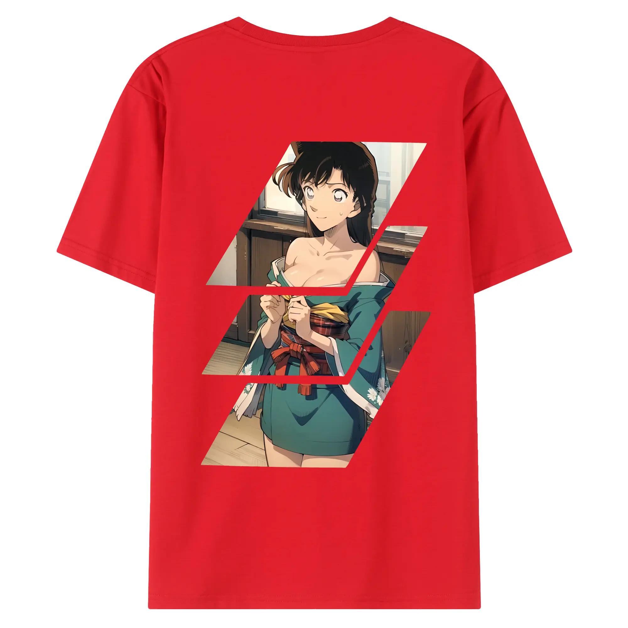 名探偵コナン グッズ 毛利 蘭 - 綿100% 半袖Tシャツ ・ フロントプリント ・ 快適 通気性 ・ 日常使い 散歩 スポーツ用