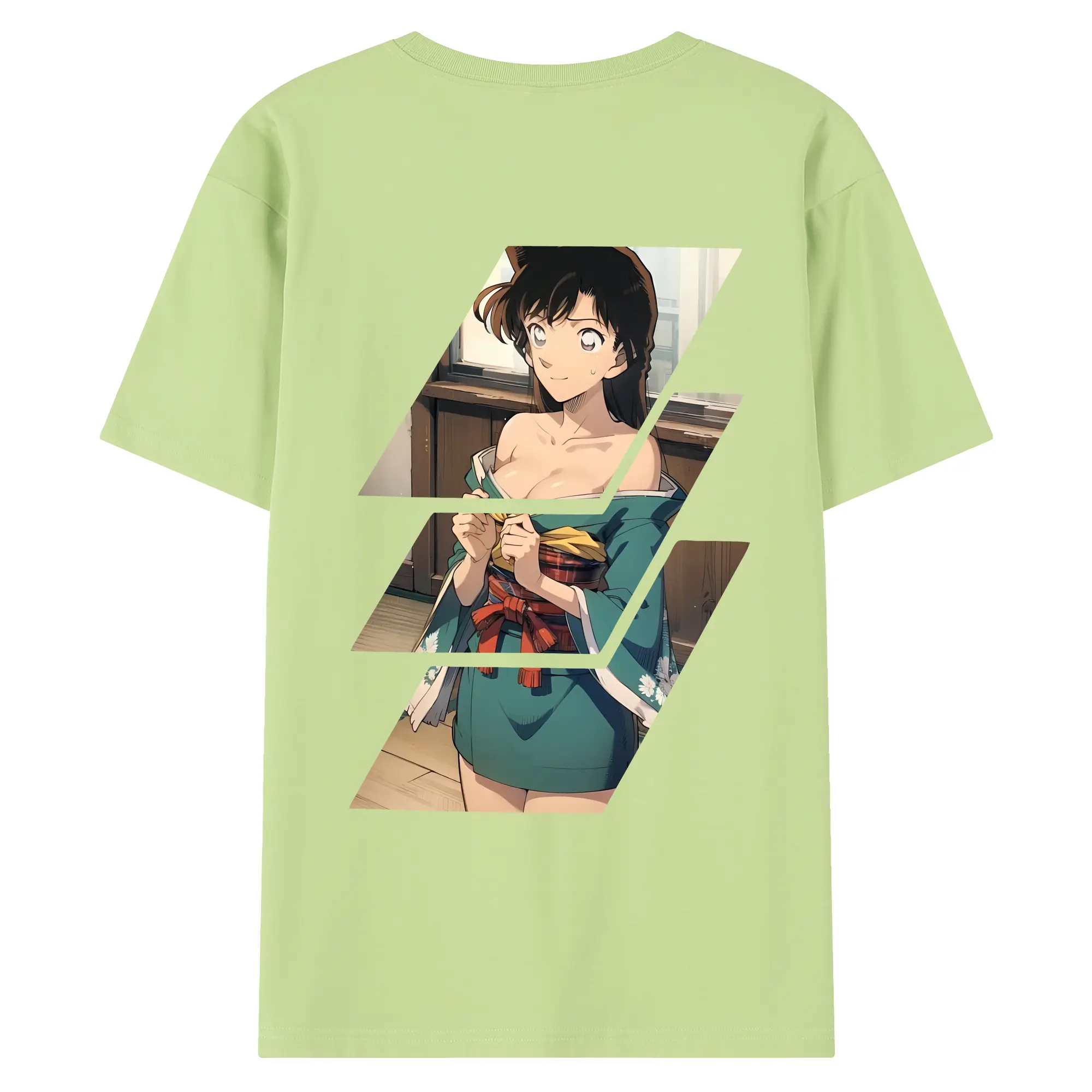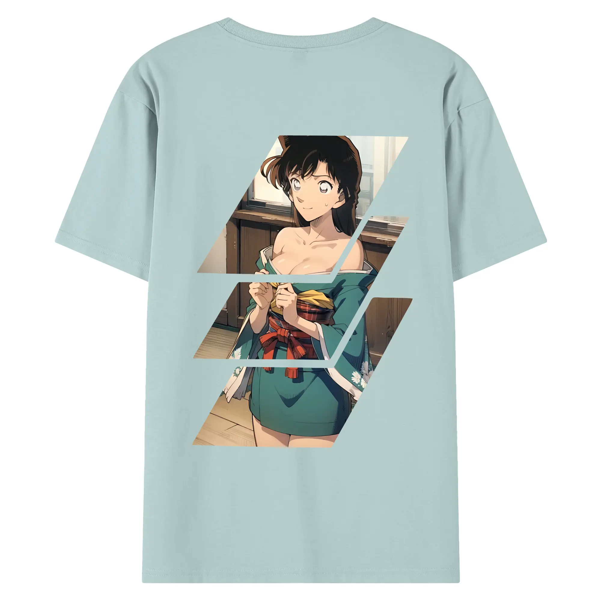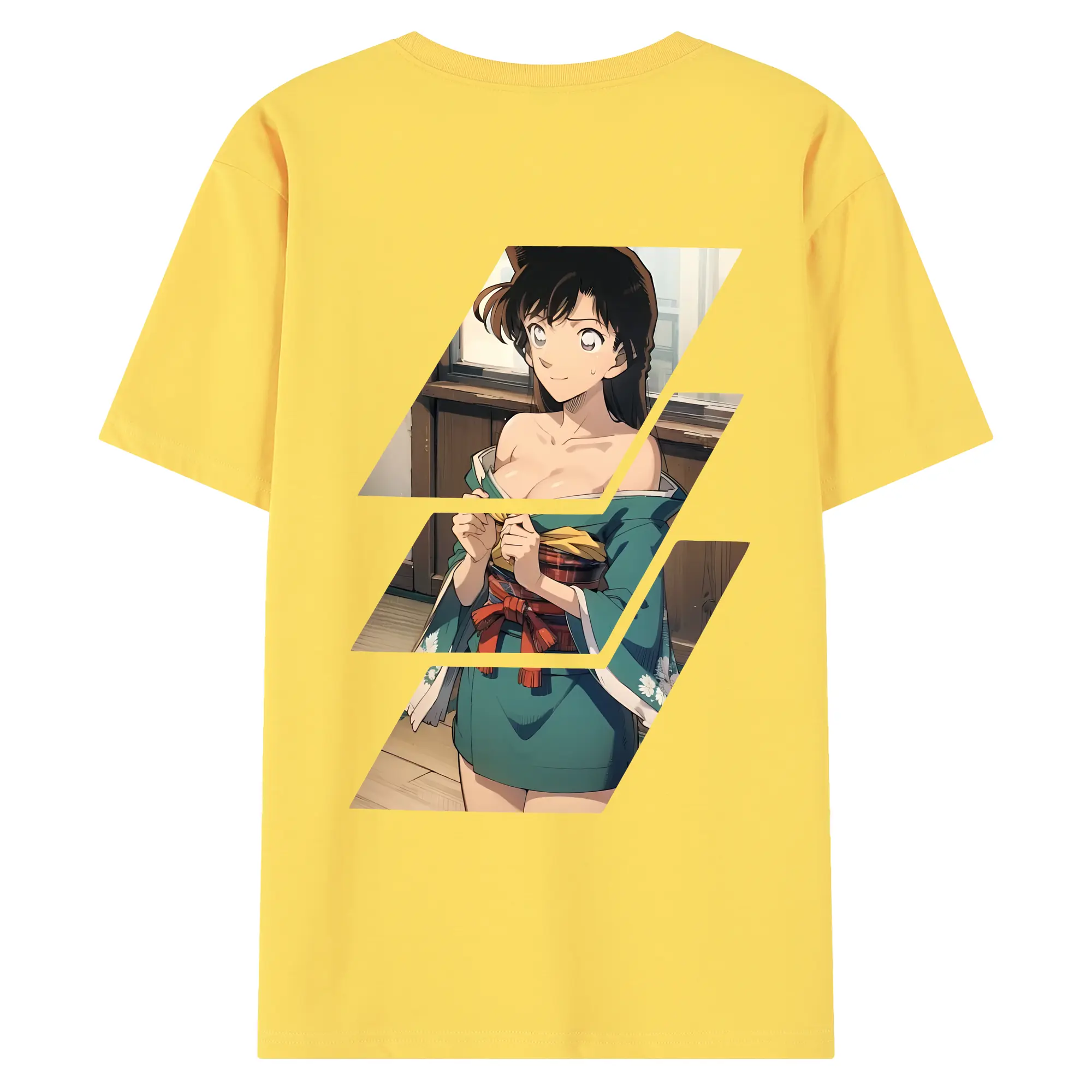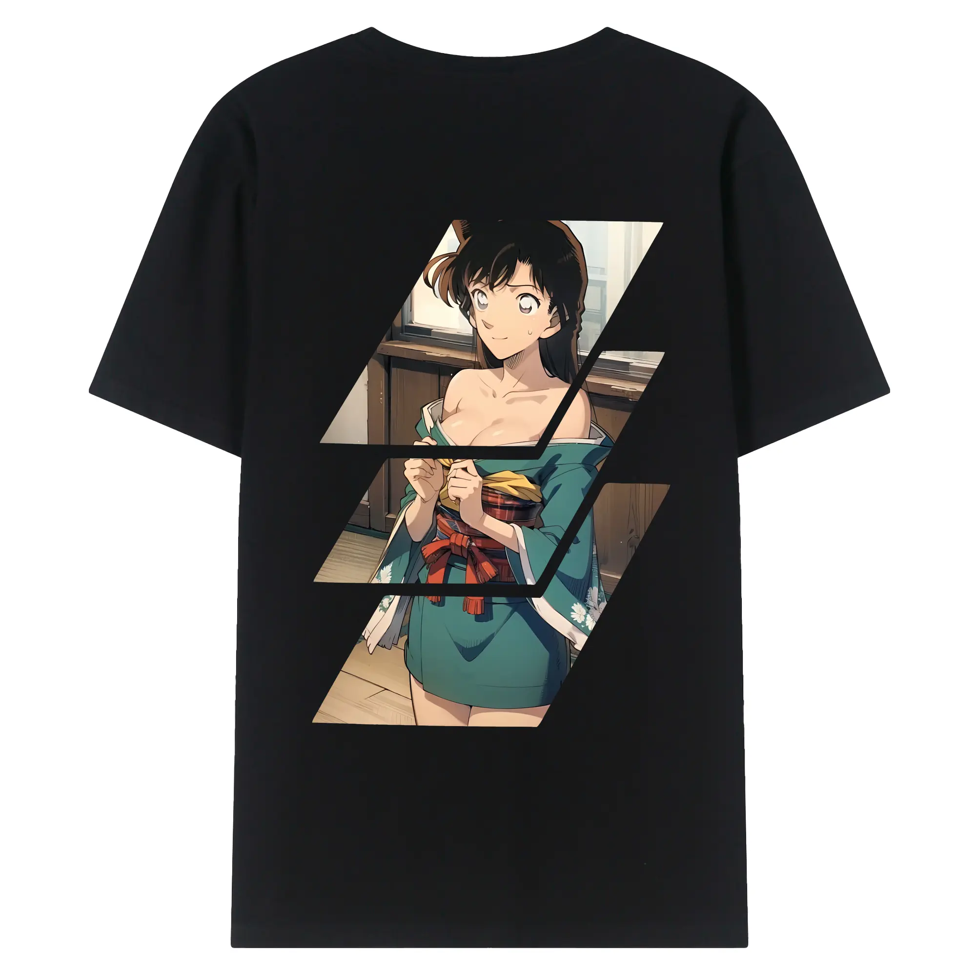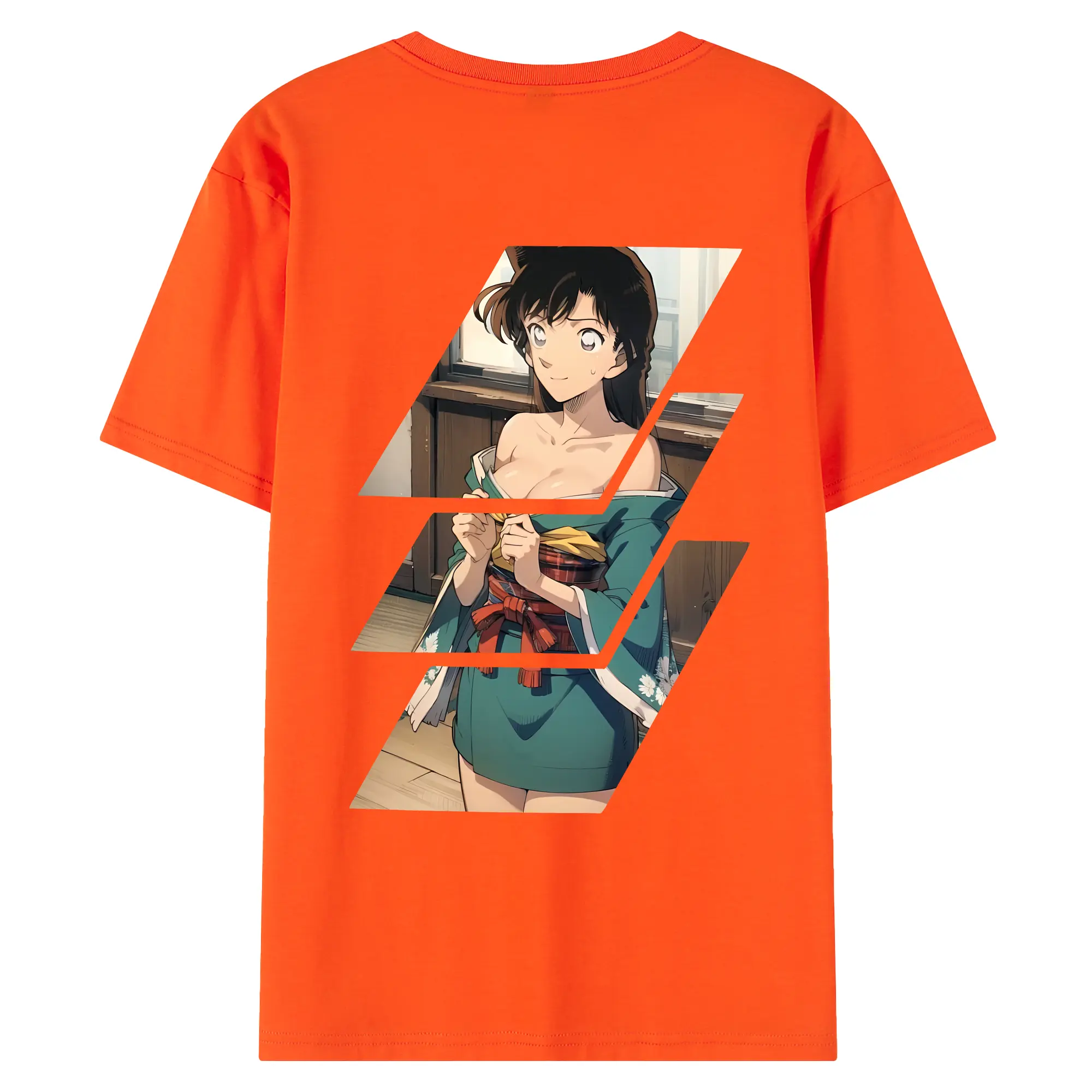 名探偵コナン グッズ 毛利 蘭 - 綿100% 半袖Tシャツ ・ フロントプリント ・ 快適 通気性 ・ 日常使い 散歩 スポーツ用