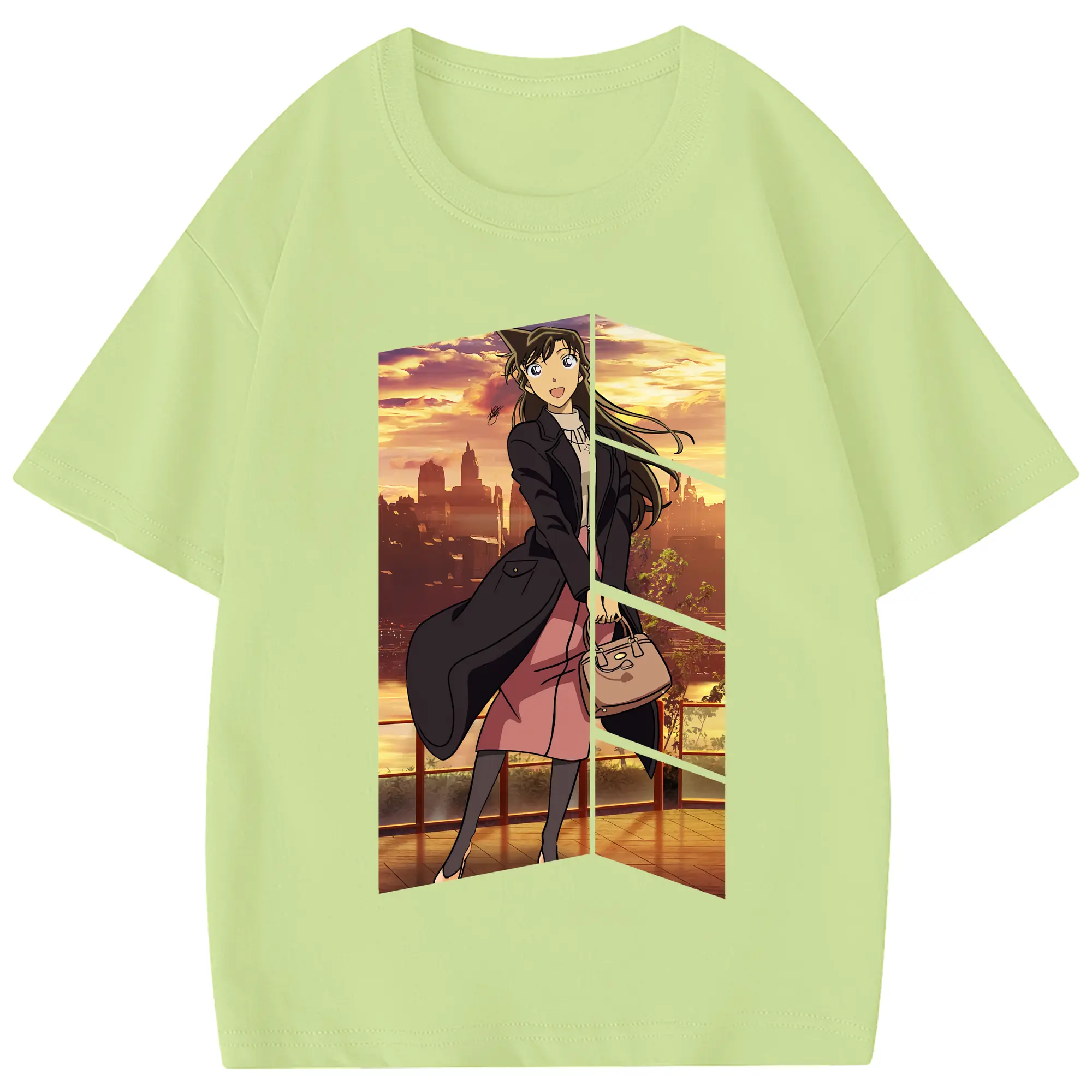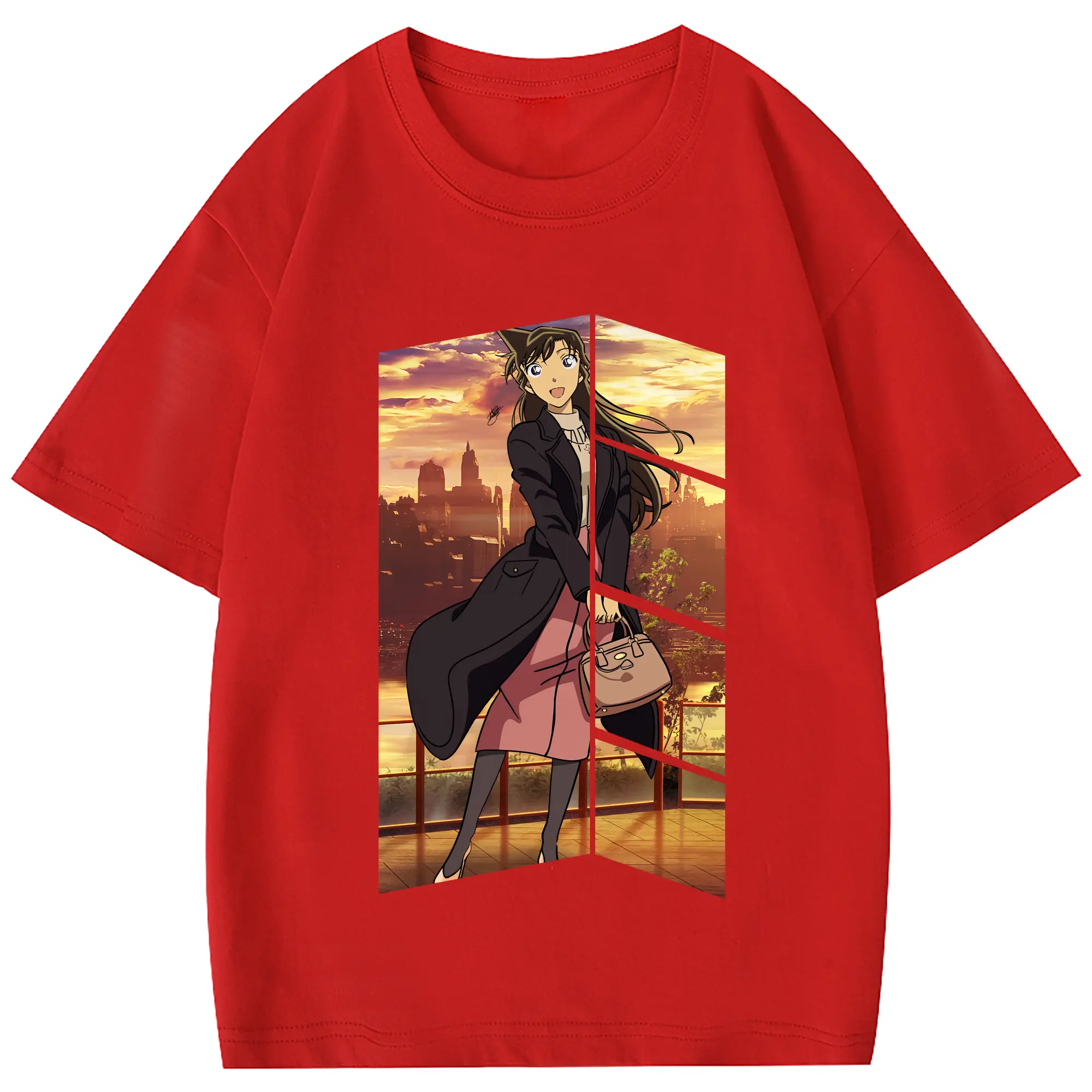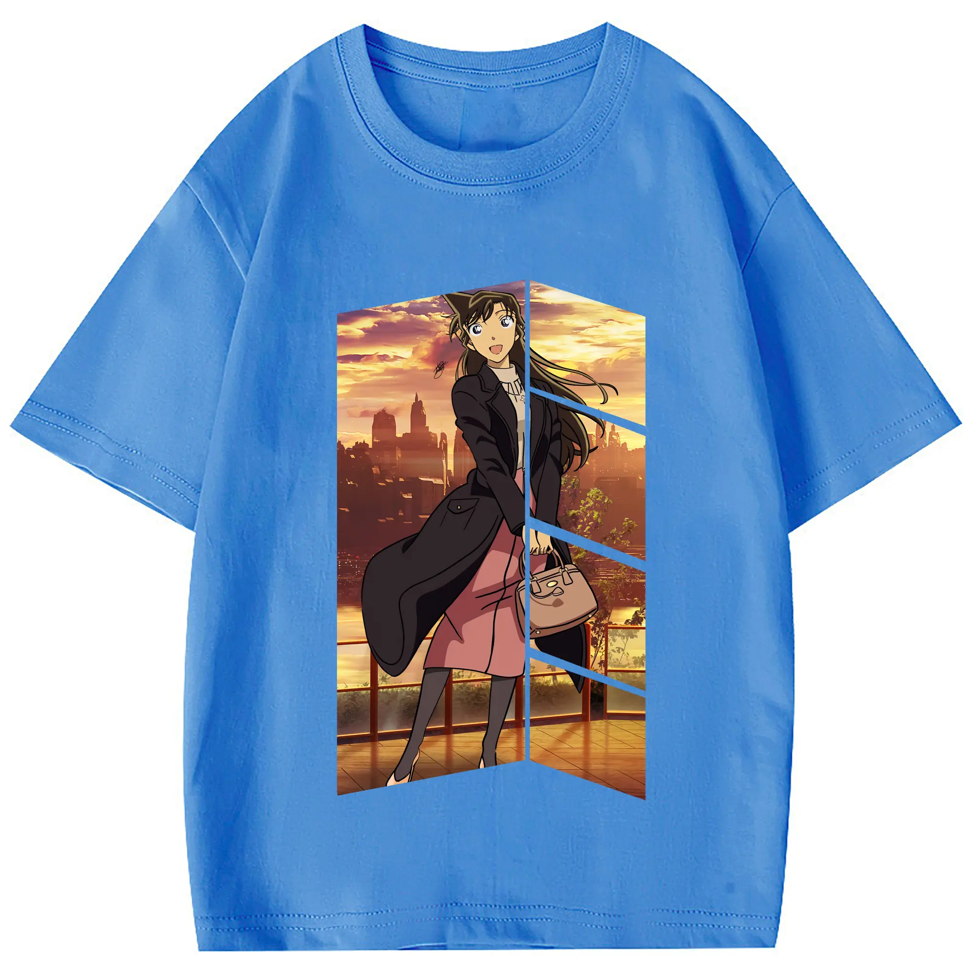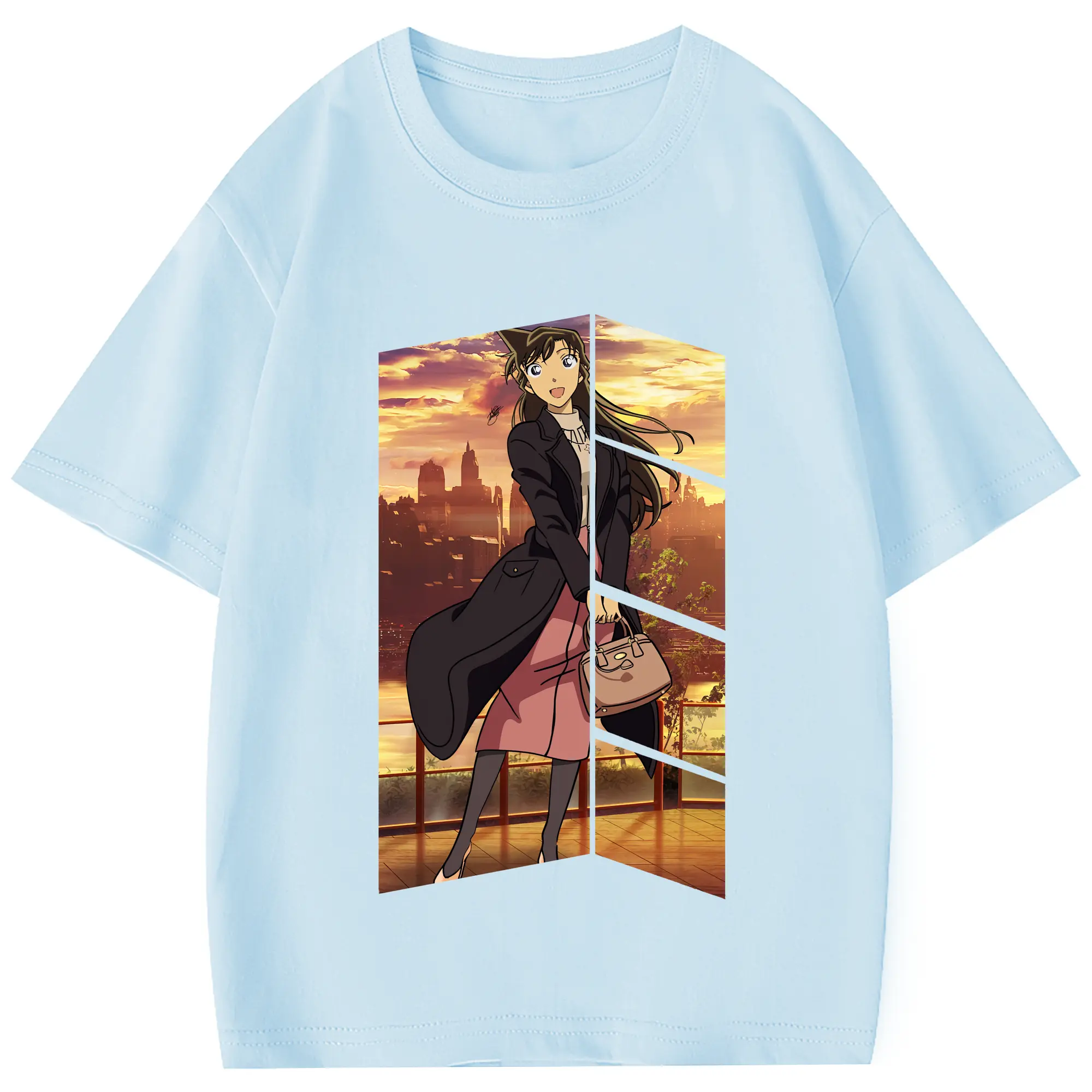 名探偵コナン グッズ 毛利 蘭 - 綿100% 半袖Tシャツ ・ フロントプリント ・ 快適 通気性 ・ 日常使い 散歩 スポーツ用